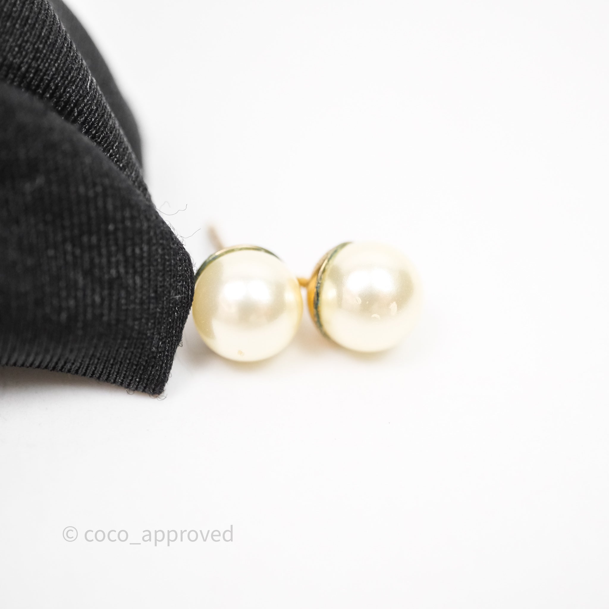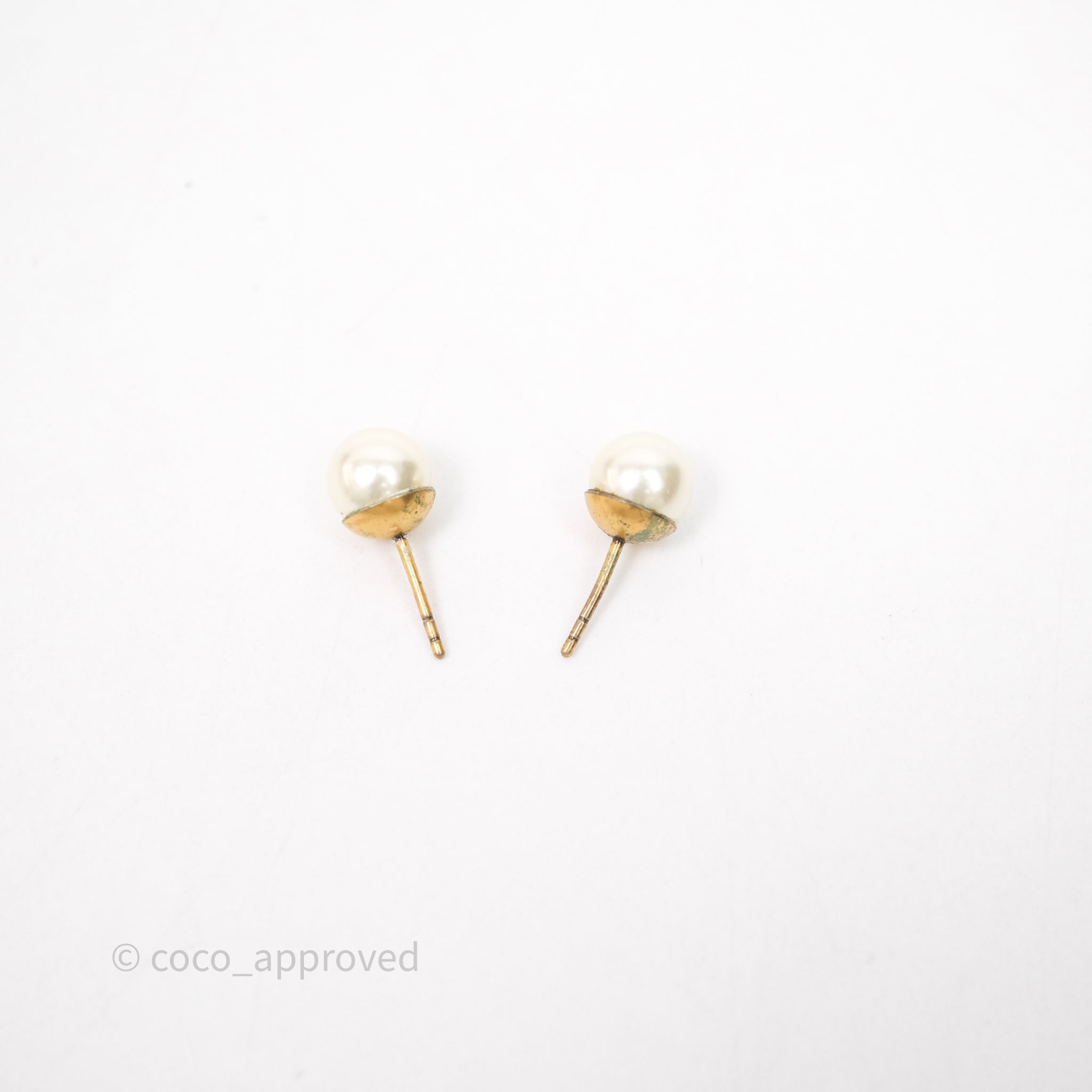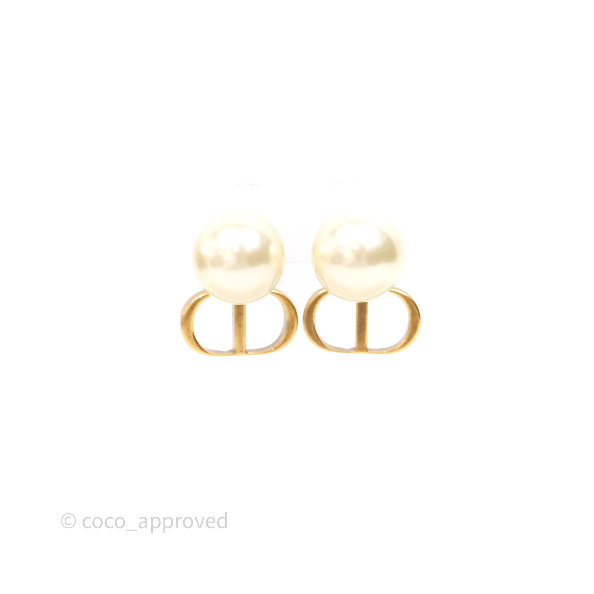Christian Dior Tribales Pearl CD Earrings Gold Tone
