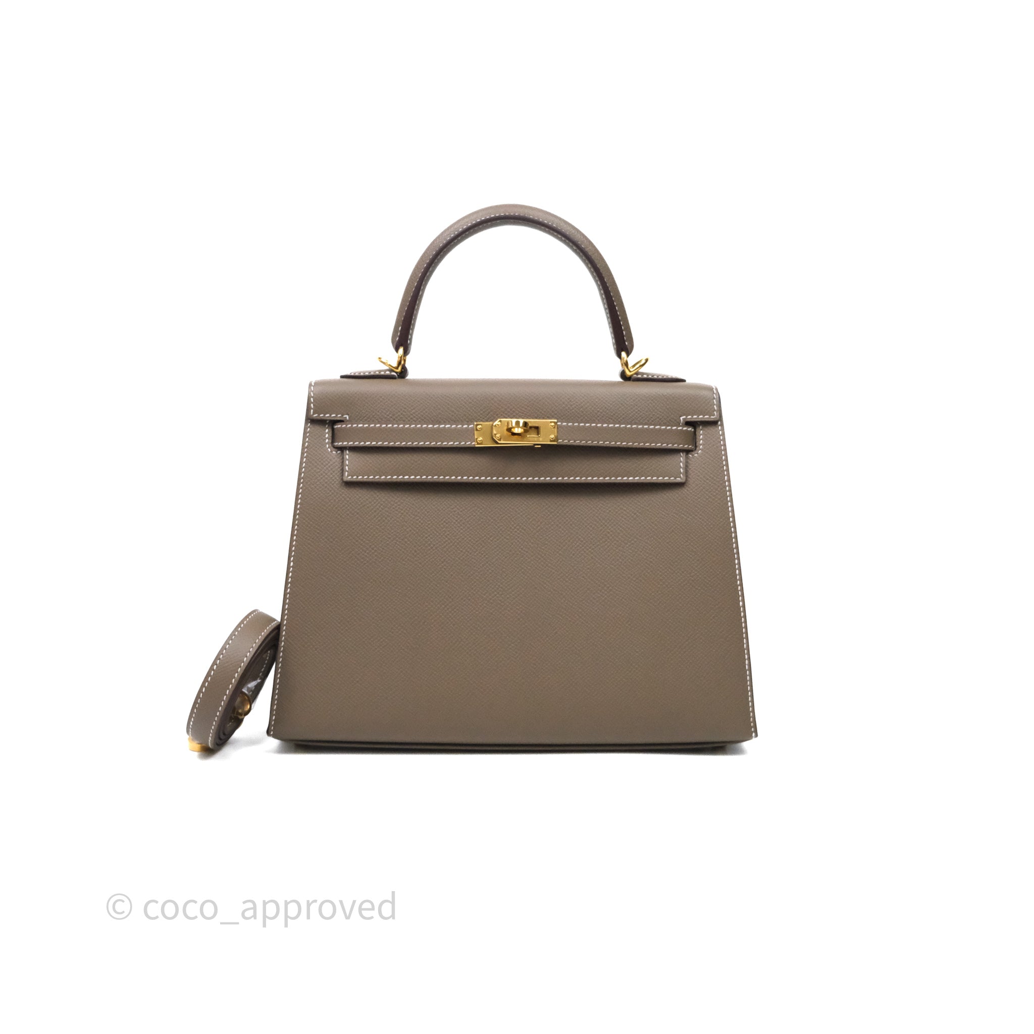 - DM/Email To Purchase - Hermes Kelly 25 Etoupe 18 Gold Hardware