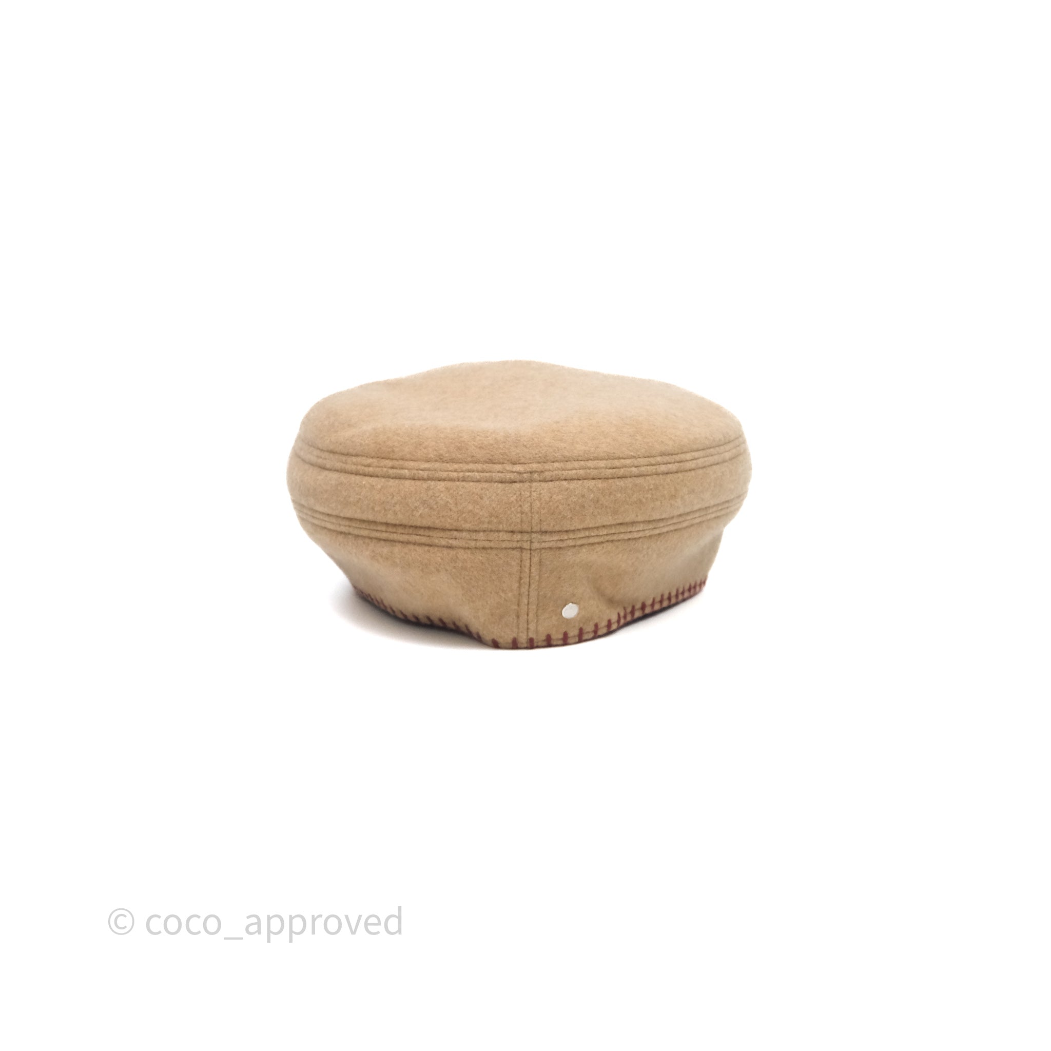 Hermès Saint Honore Beret Cashmere Biscuit 48/ Rouge H 55