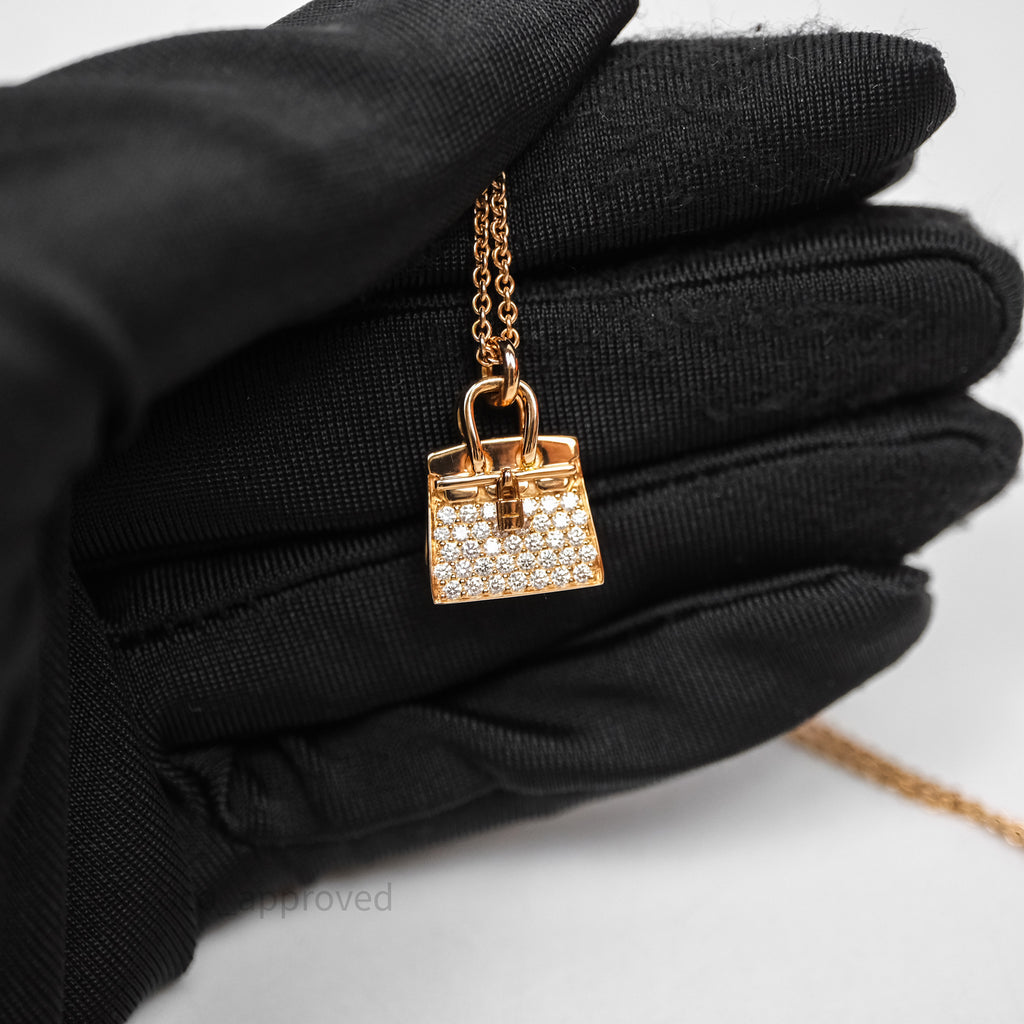 Hermès Birkin Amulettes Diamonds Pendant Necklace Rose Gold