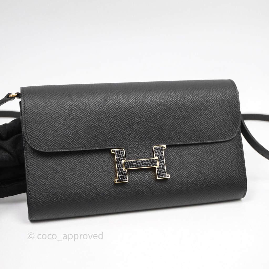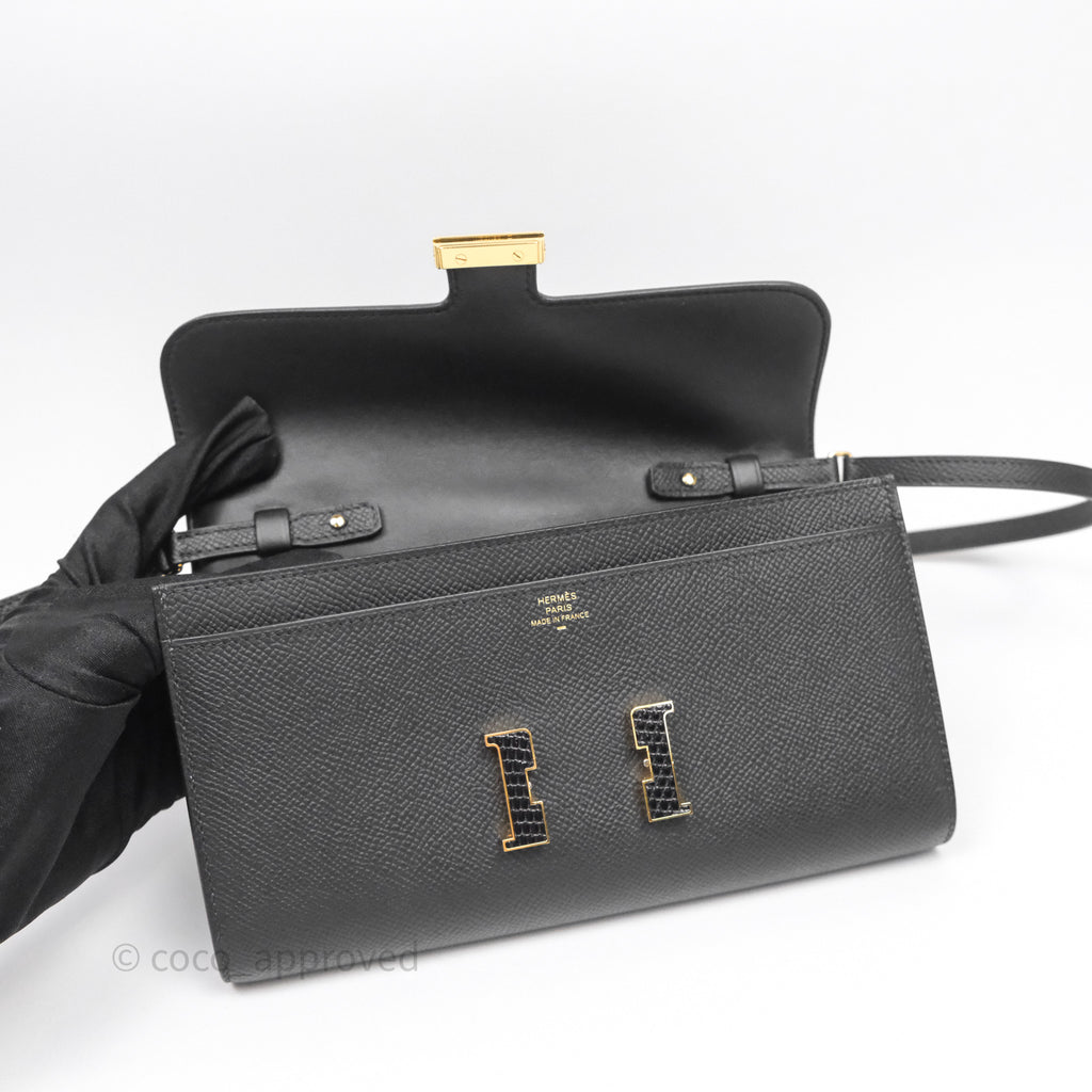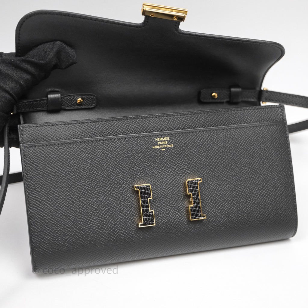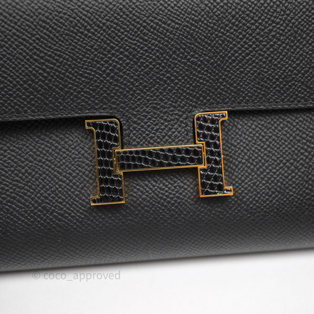 Hermès Constance Long To Go Wallet Black Noir 89 Epsom Lizard Gold Hardware