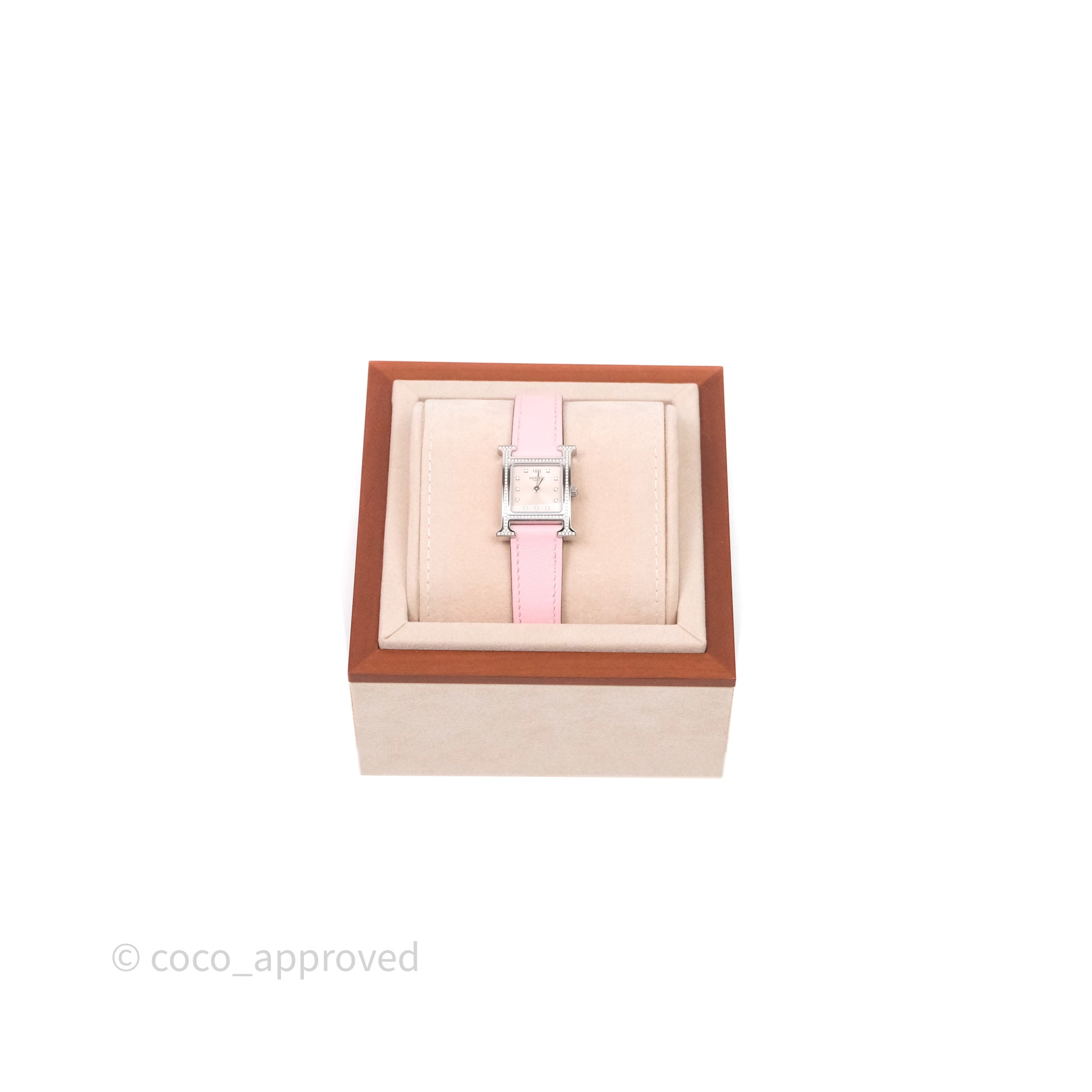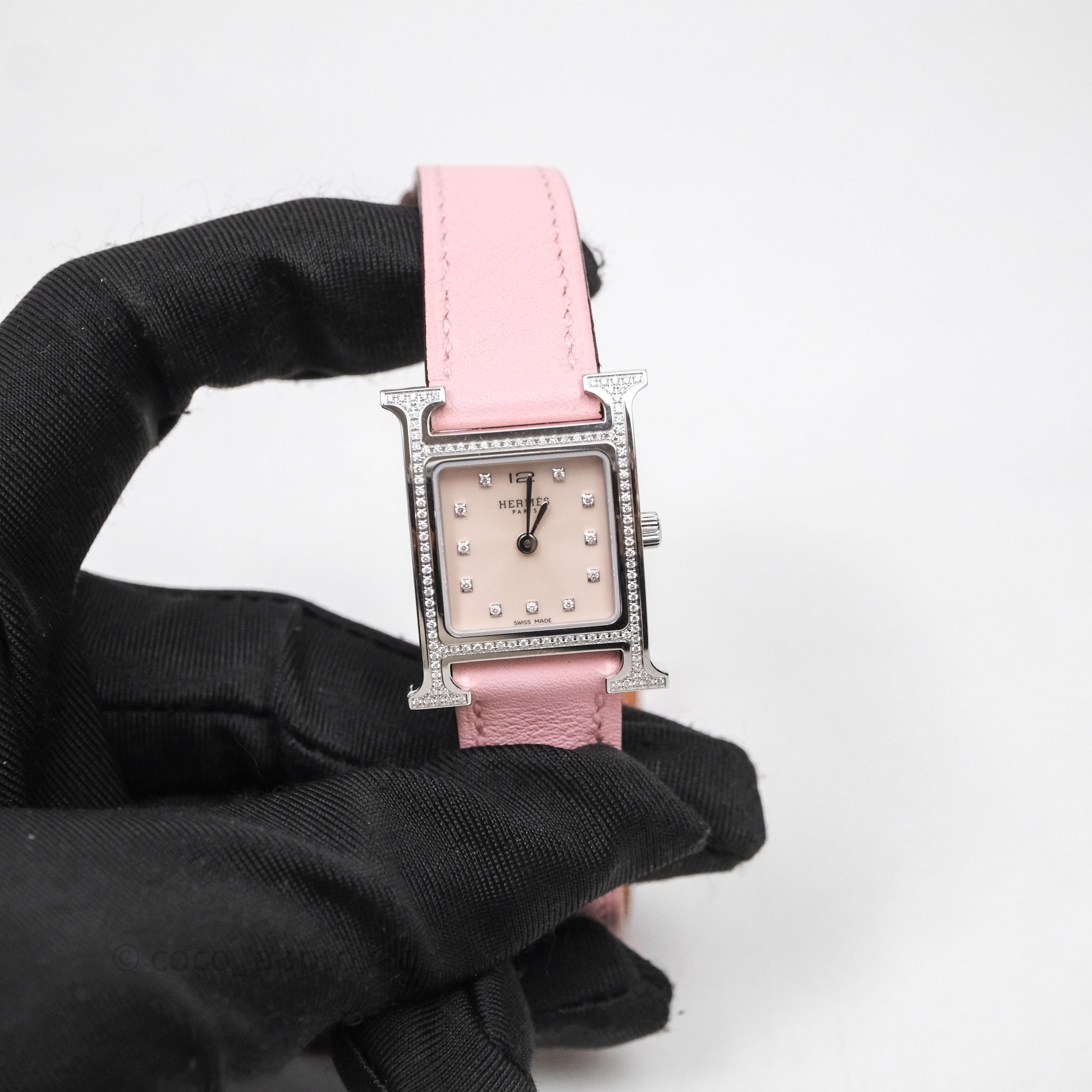 Hermès Heure H Watch Diamond Rose Sakura Swift Palladium Hardware is now sold. Please subscribe for any updates if similar item becomes available.