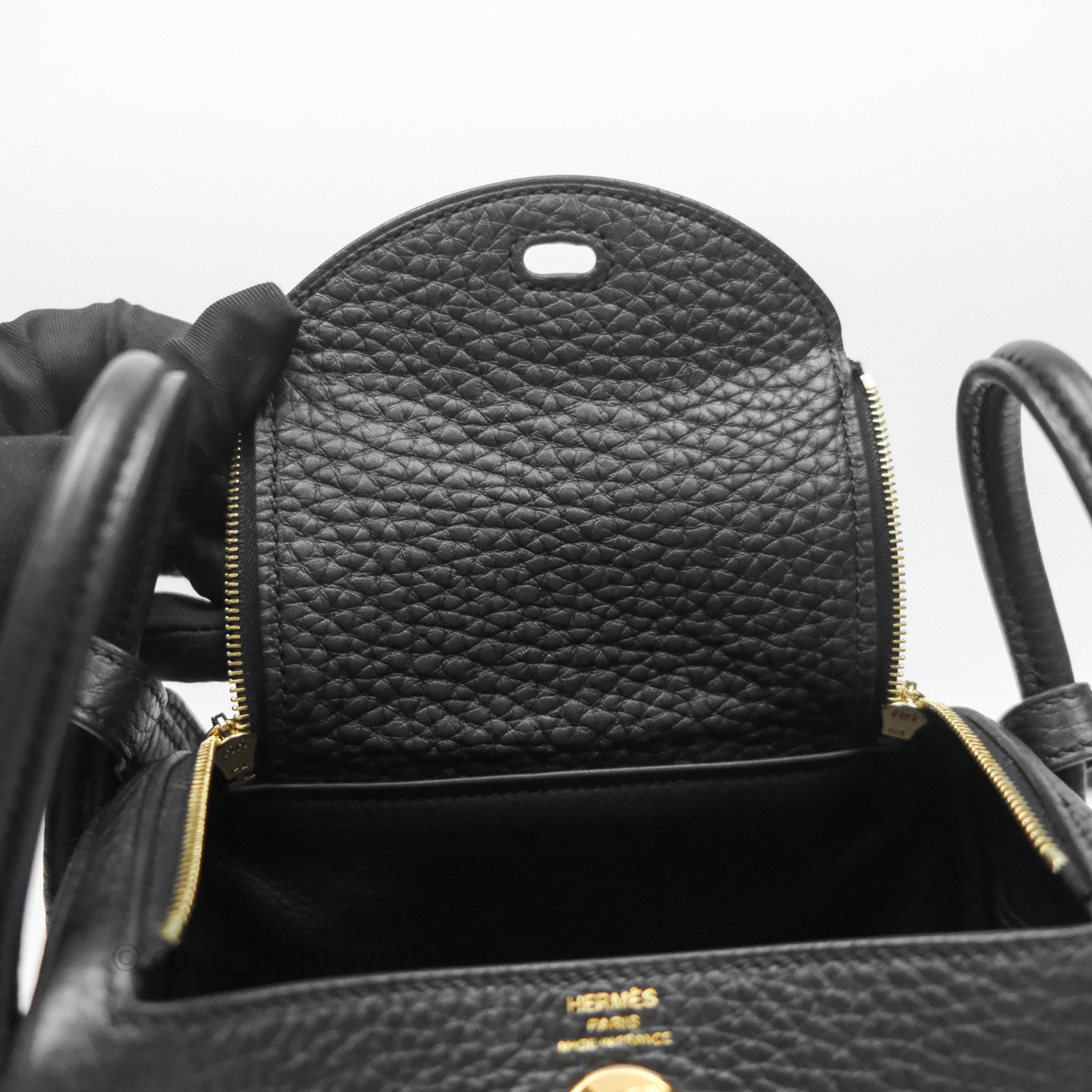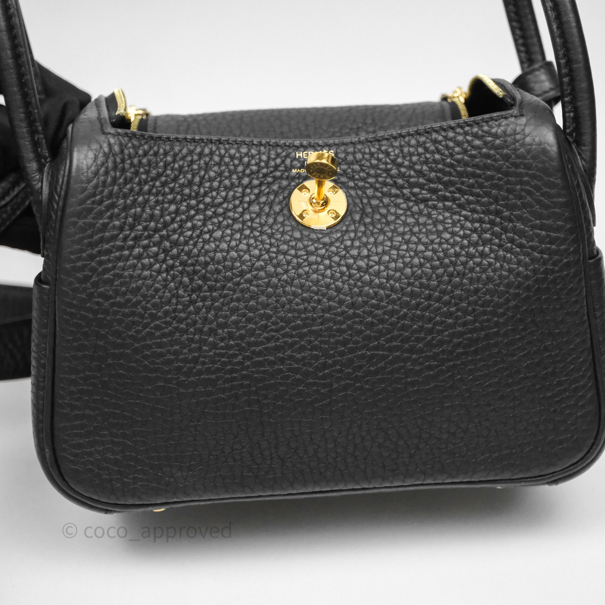Hermès Mini Lindy 20 Noir 89 Clemence Gold Hardware