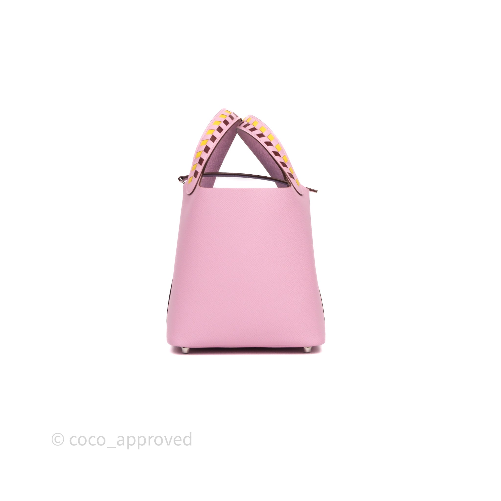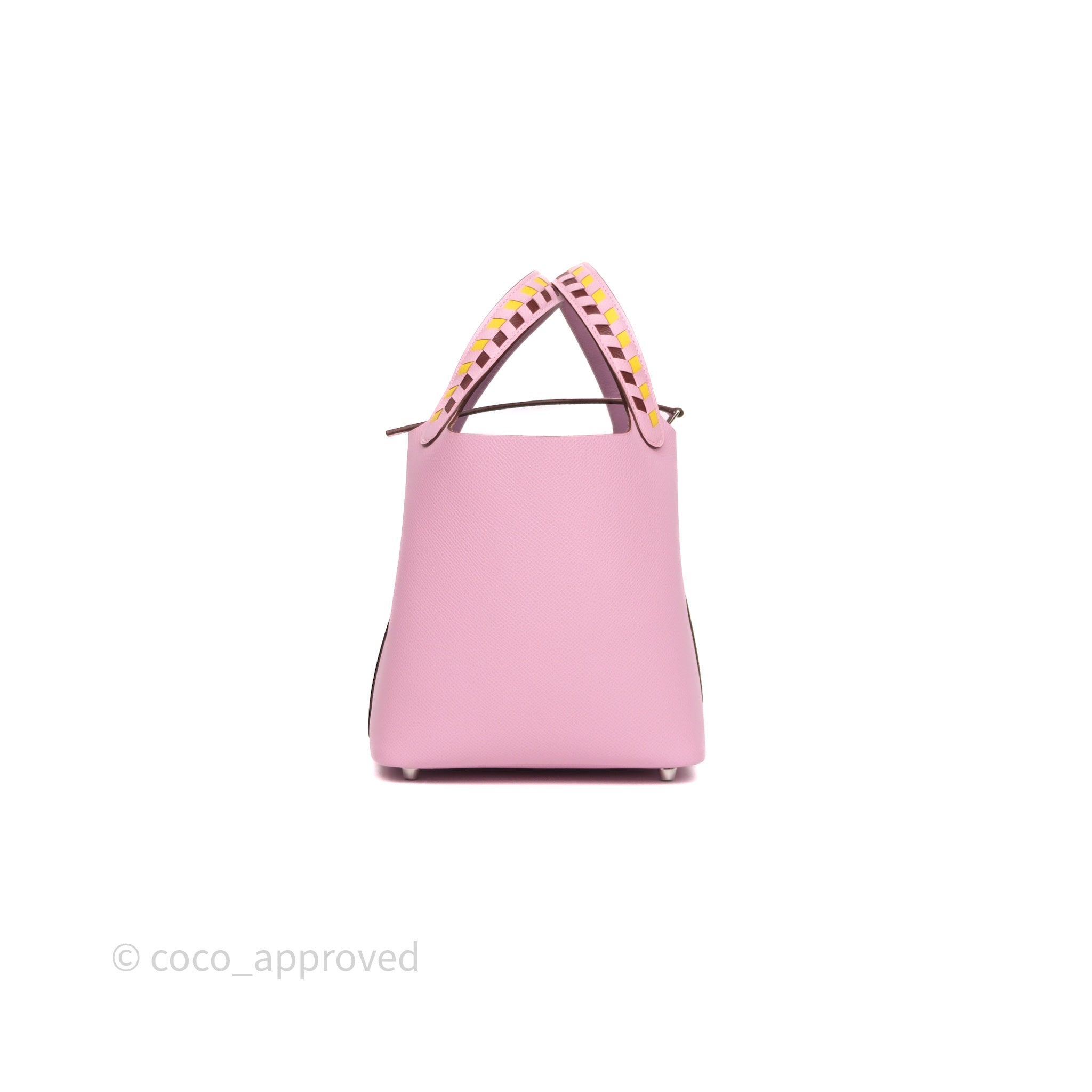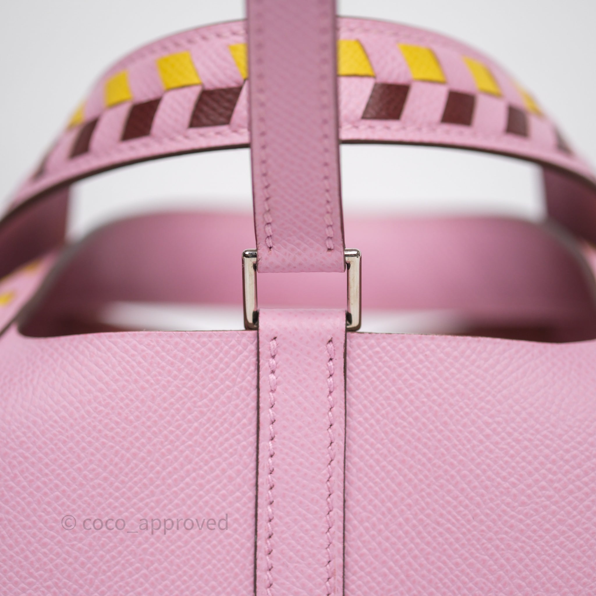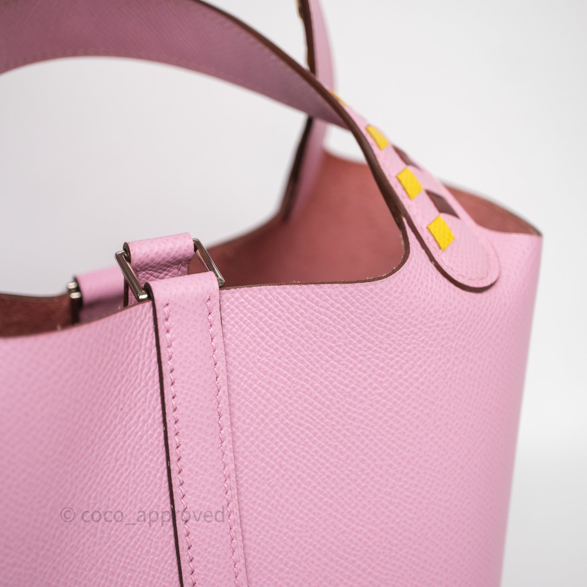 Hermès Tressage De Cuir Picotin Lock 18 Mauve Sylvestre X9/ Jaune de Naples 9O/Rouge H 55 Epsom Palladium Hardware