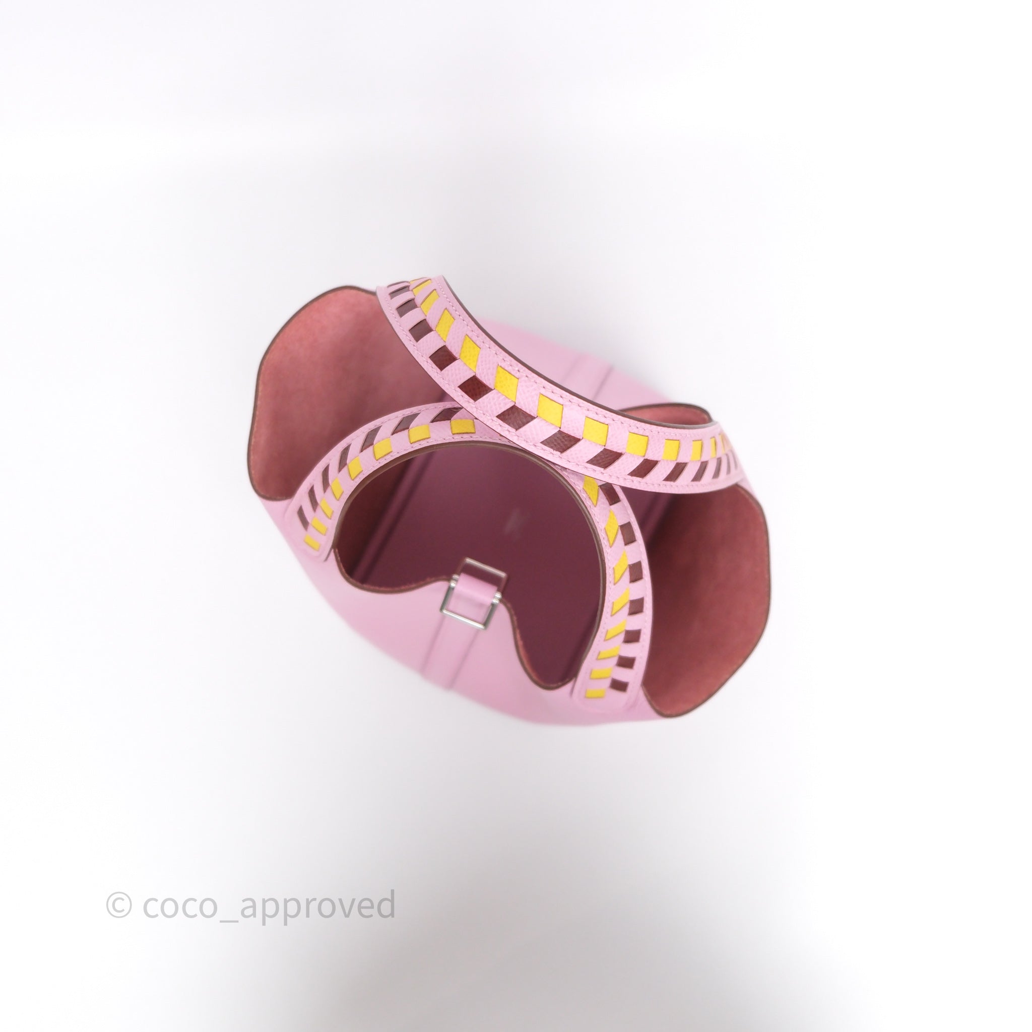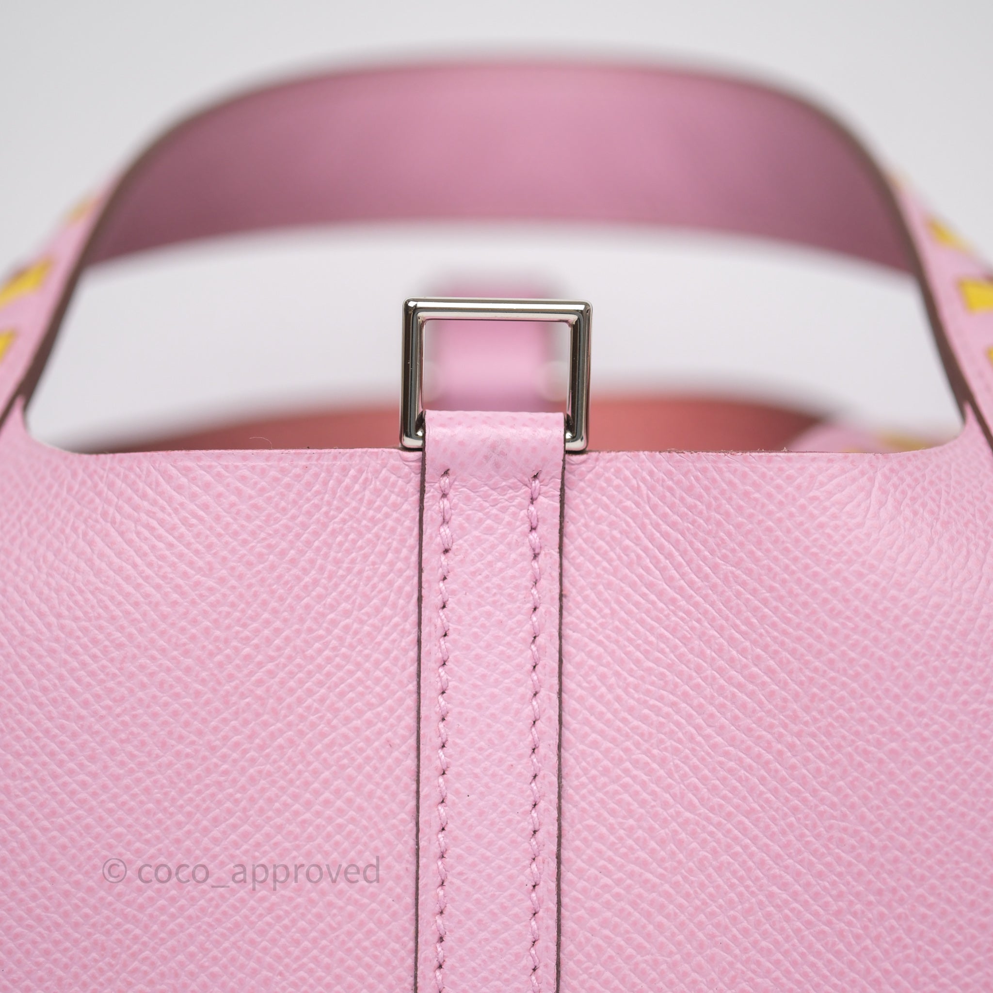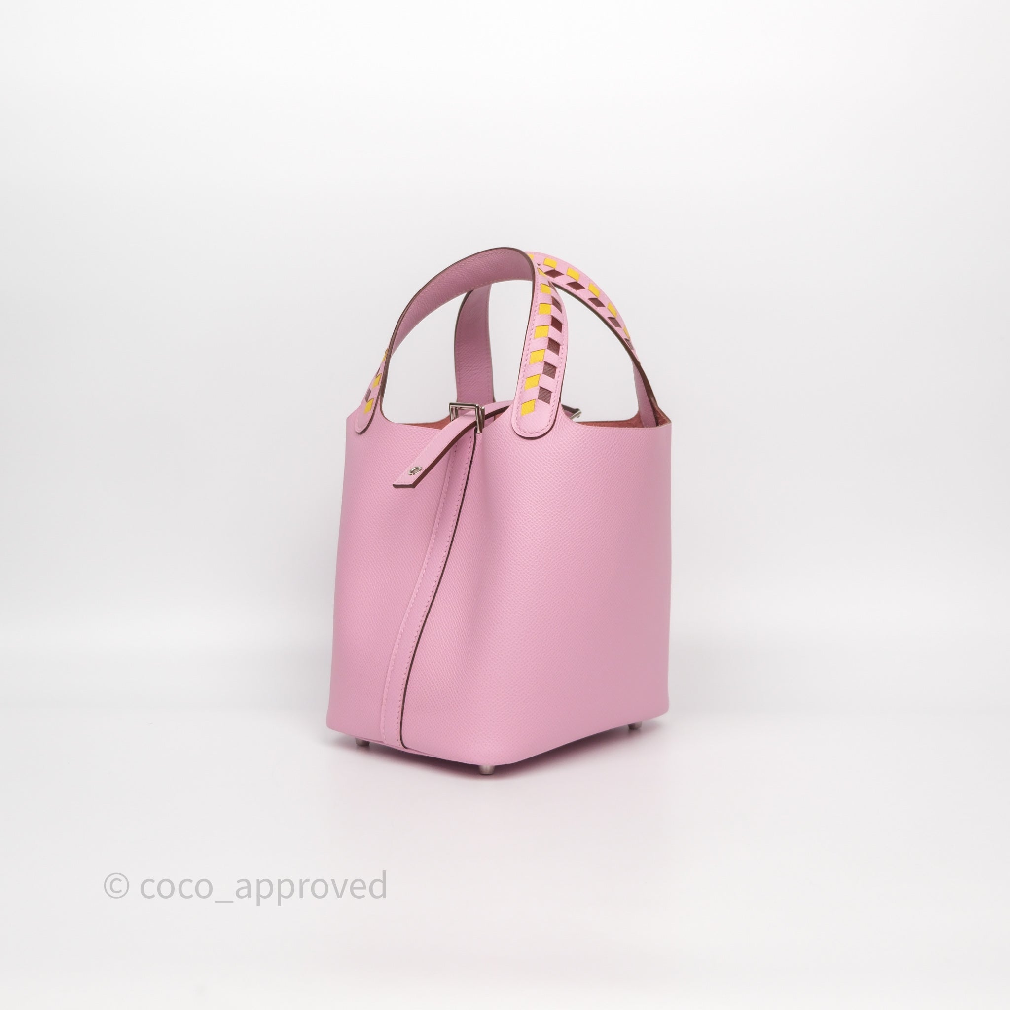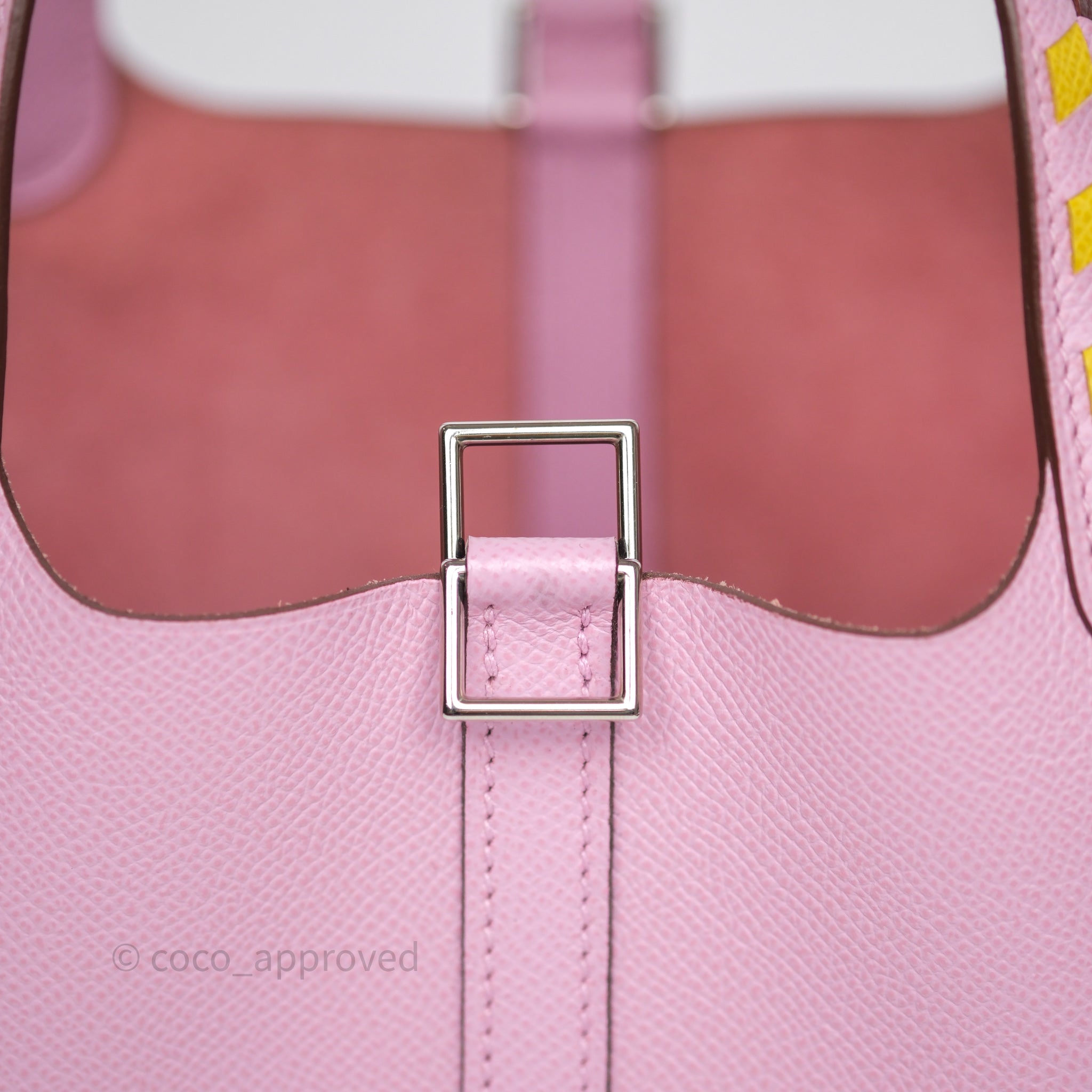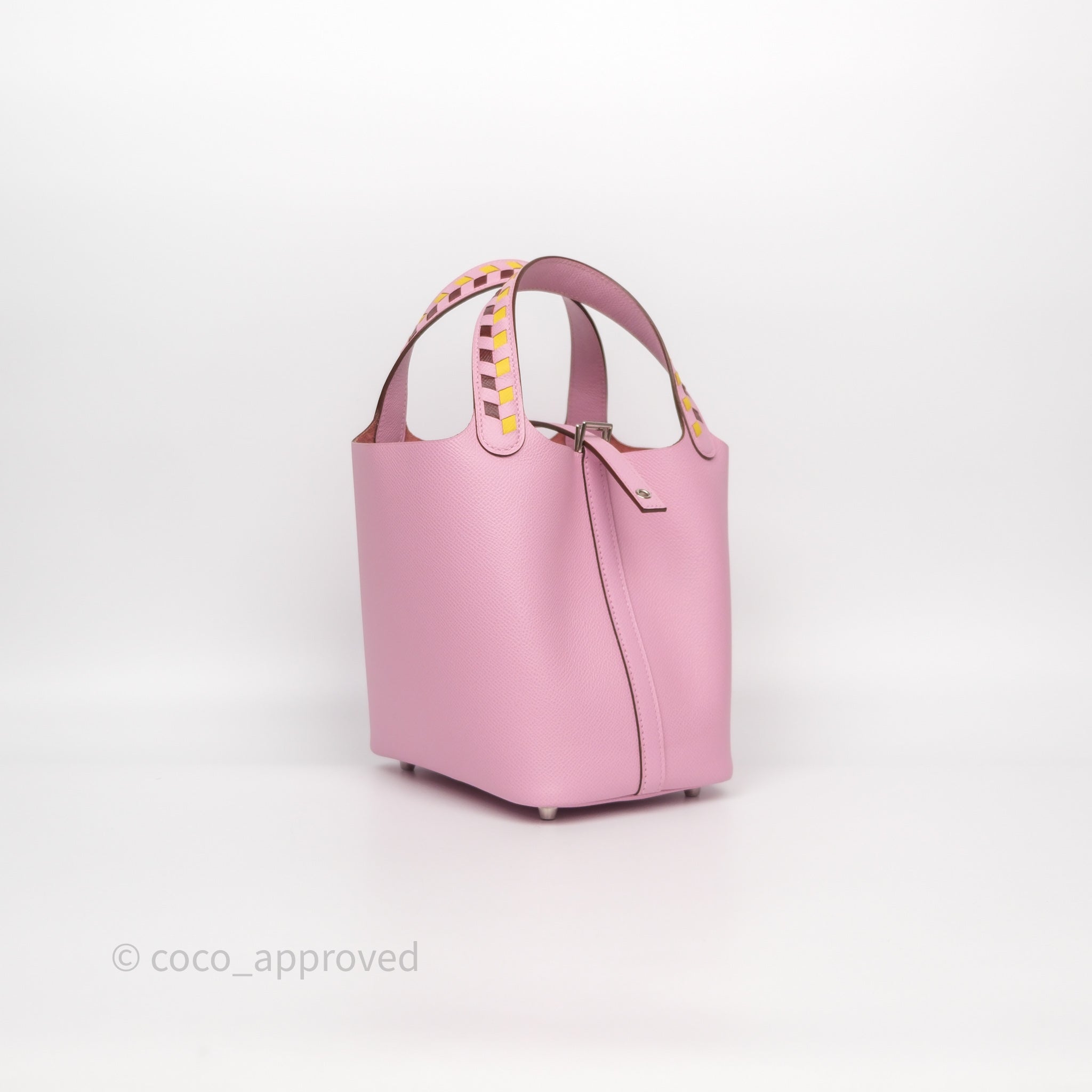 Hermès Tressage De Cuir Picotin Lock 18 Mauve Sylvestre X9/ Jaune de Naples 9O/Rouge H 55 Epsom Palladium Hardware