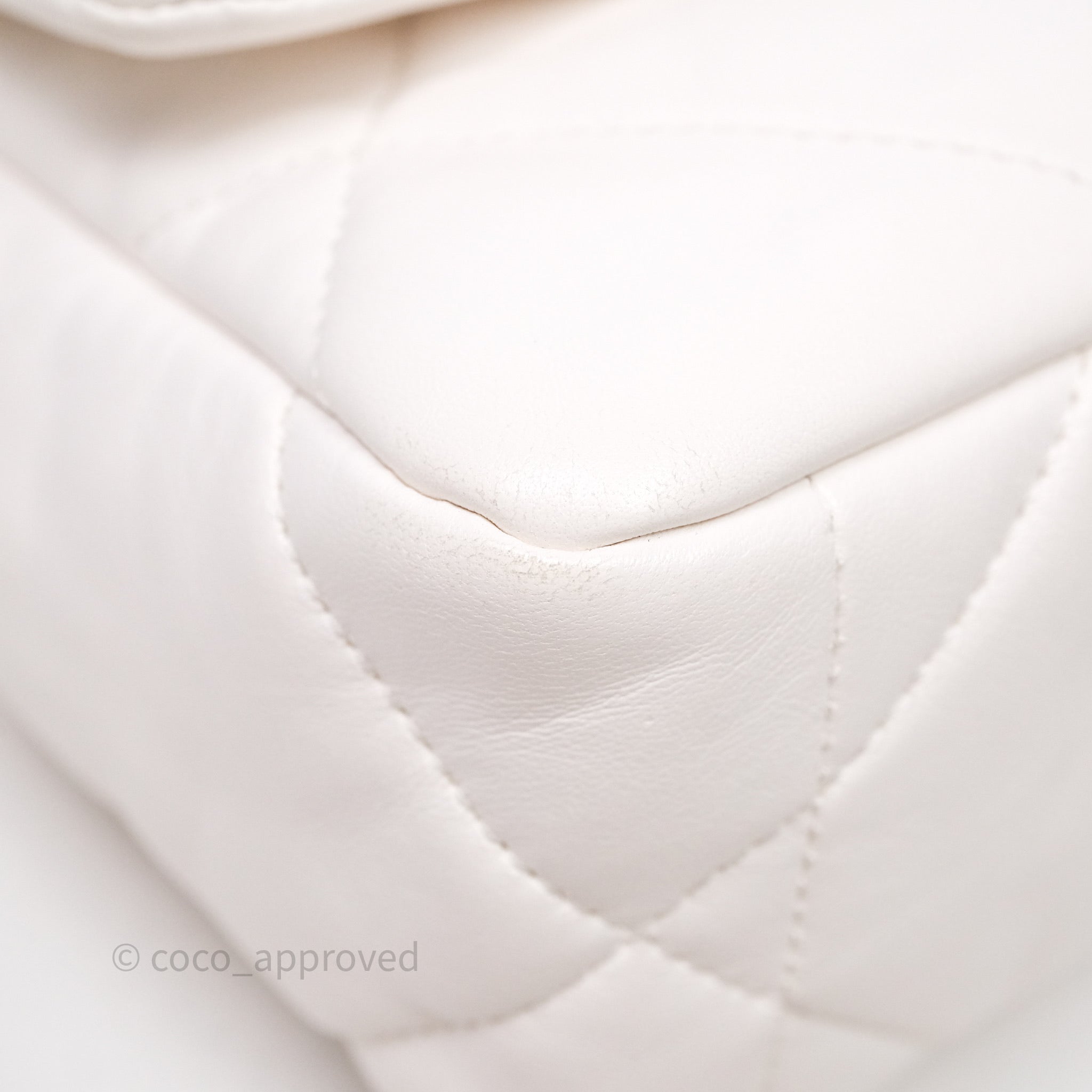 9.3/10 excellent condition. Rubbing on corners, back rims , cc logo and strap. Minor marks on front, back and under flap.