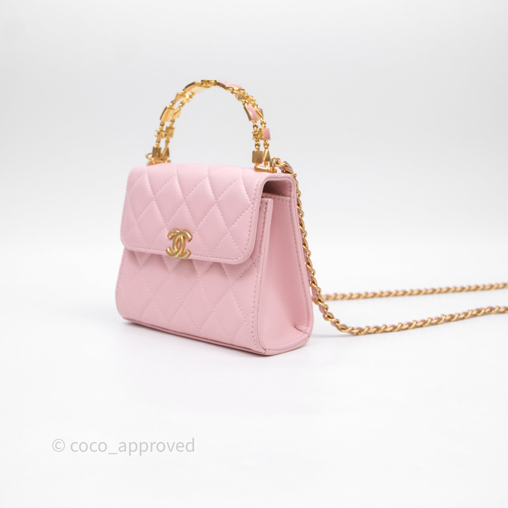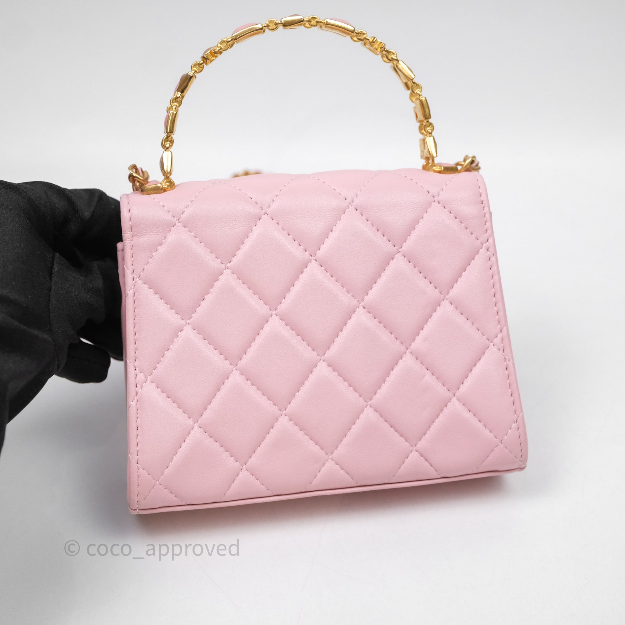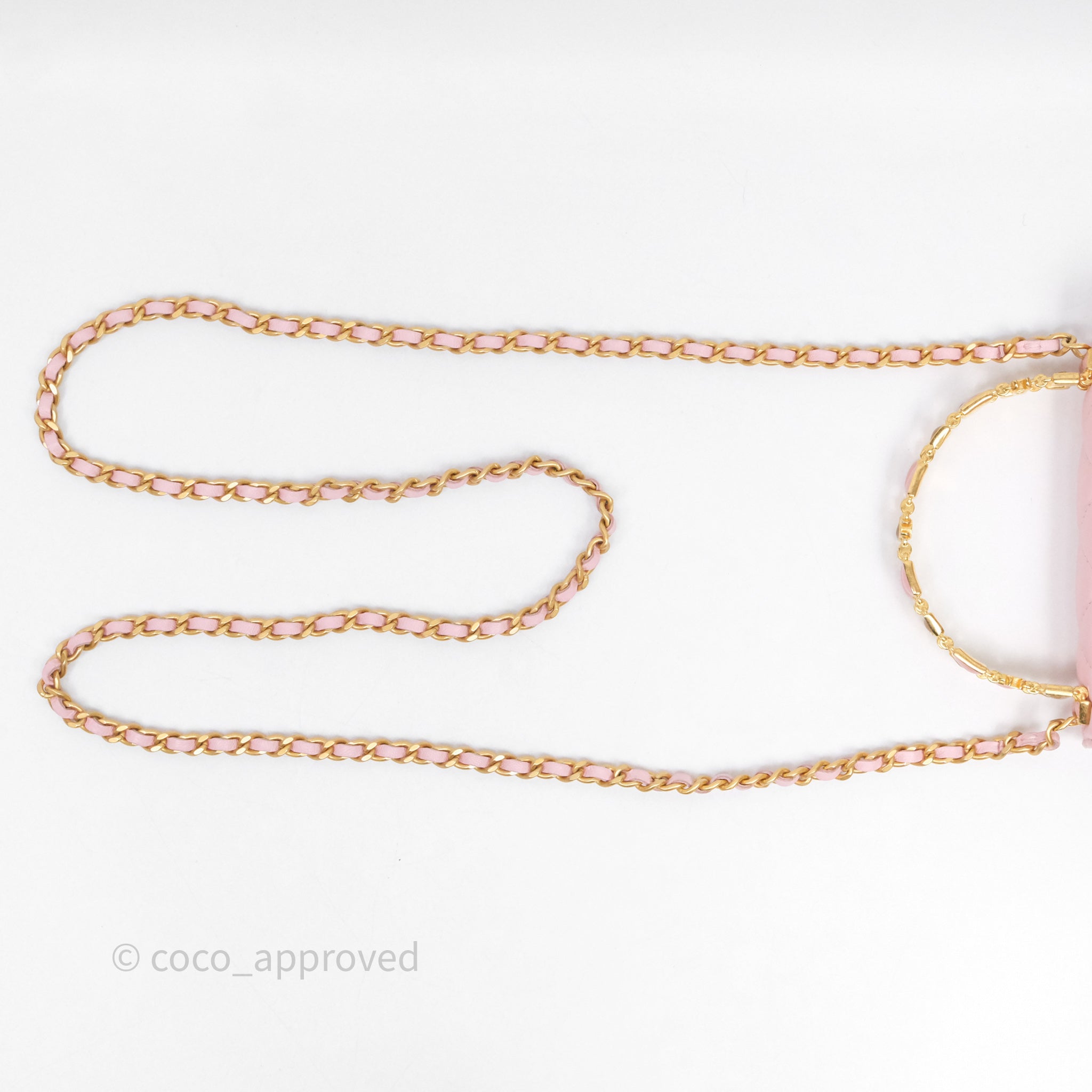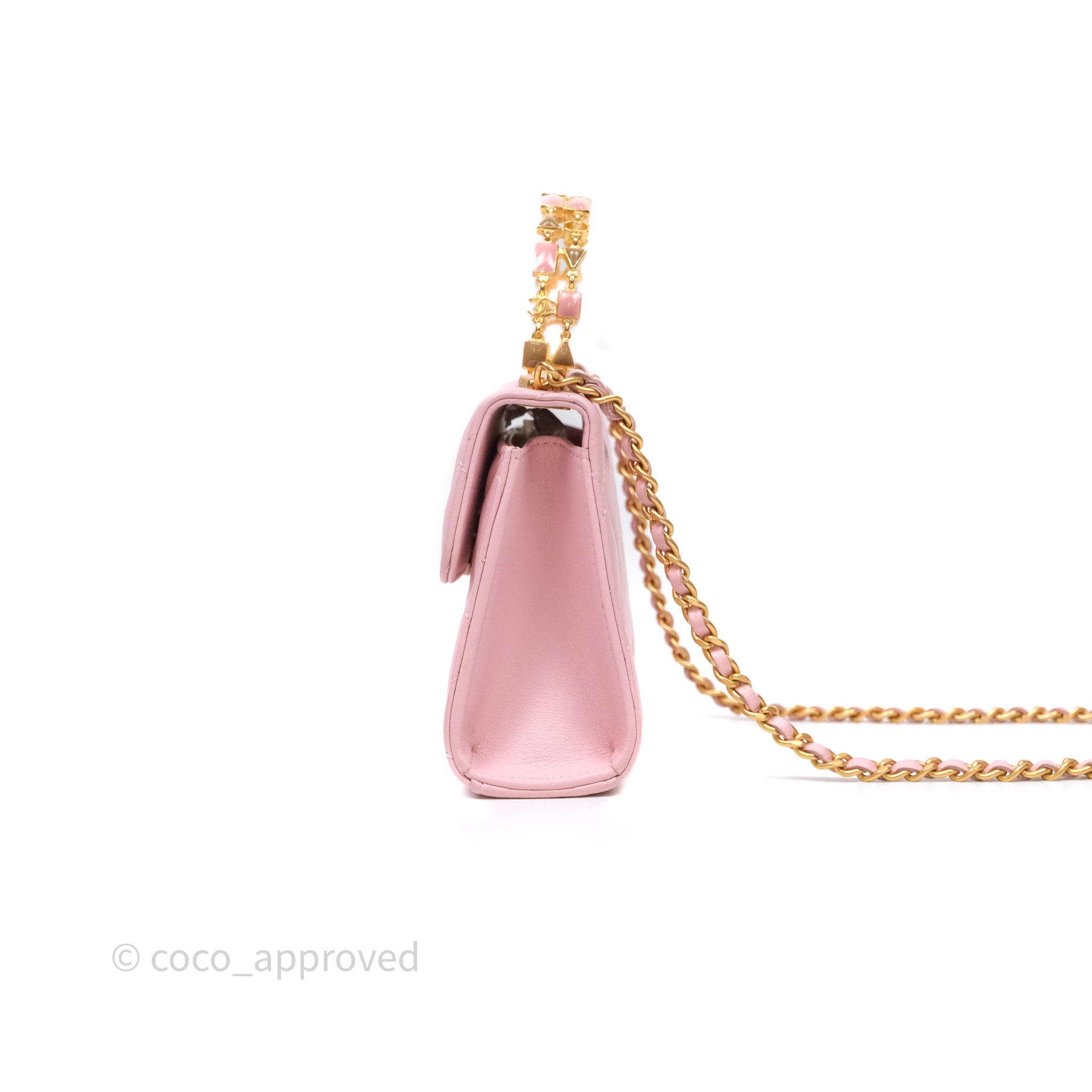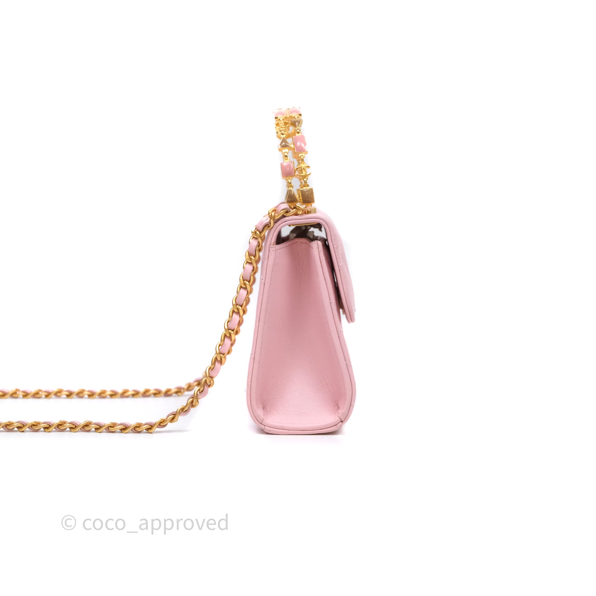 Chanel Mini Enamel Handle Clutch on Chain Pink Lambskin Gold Hardware