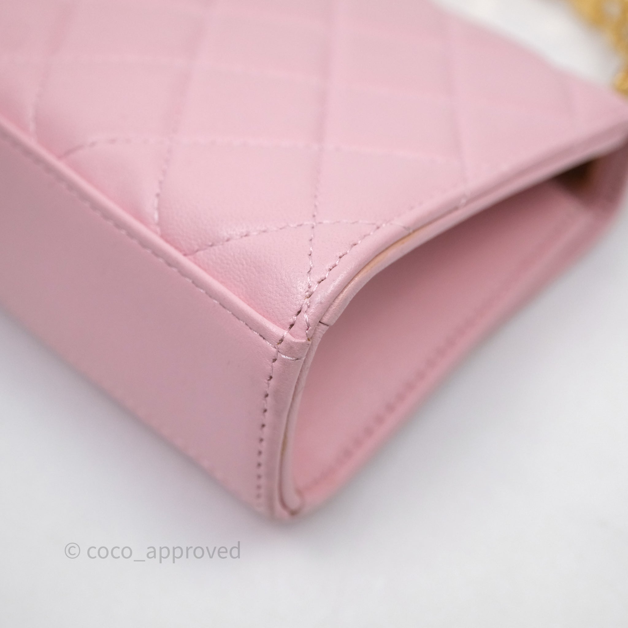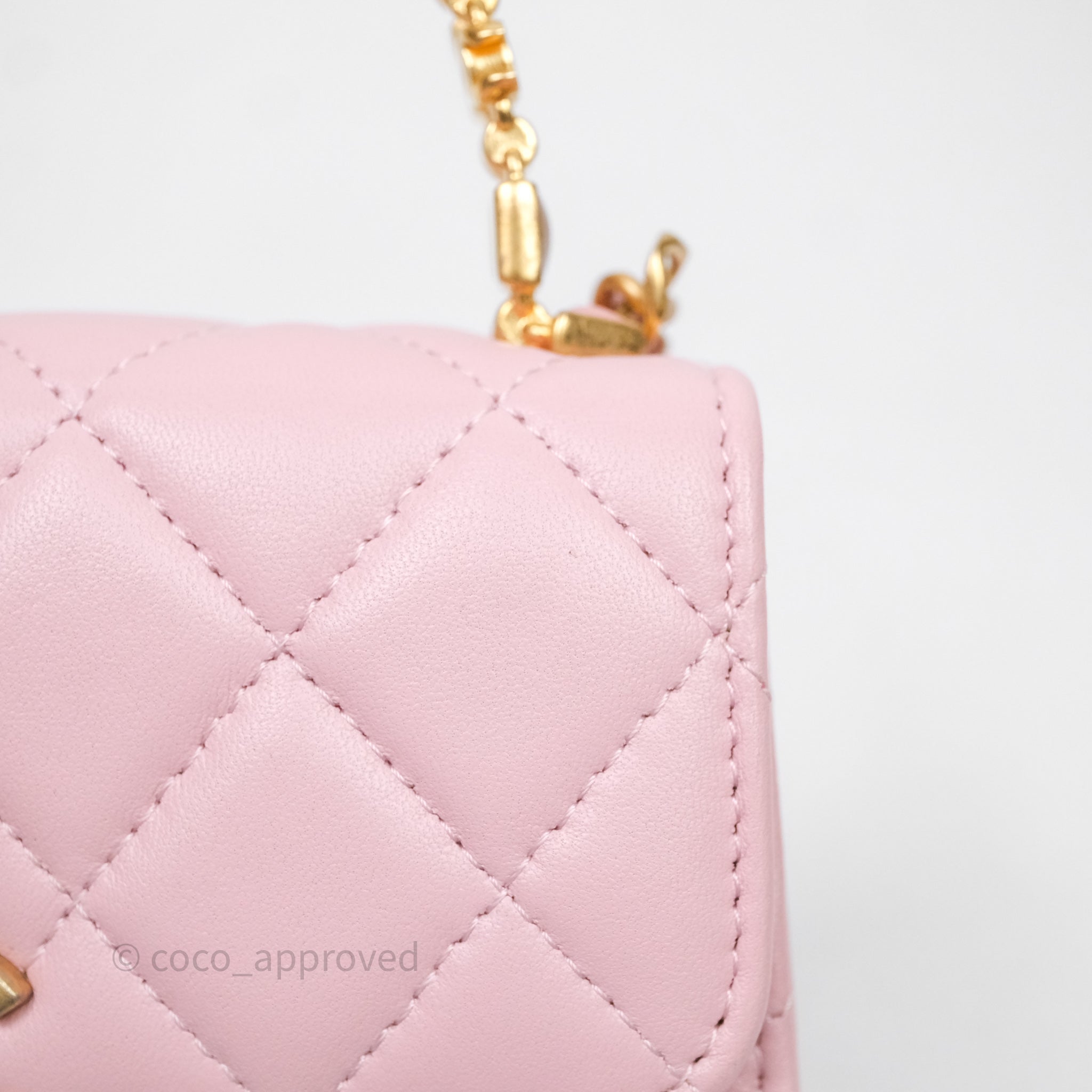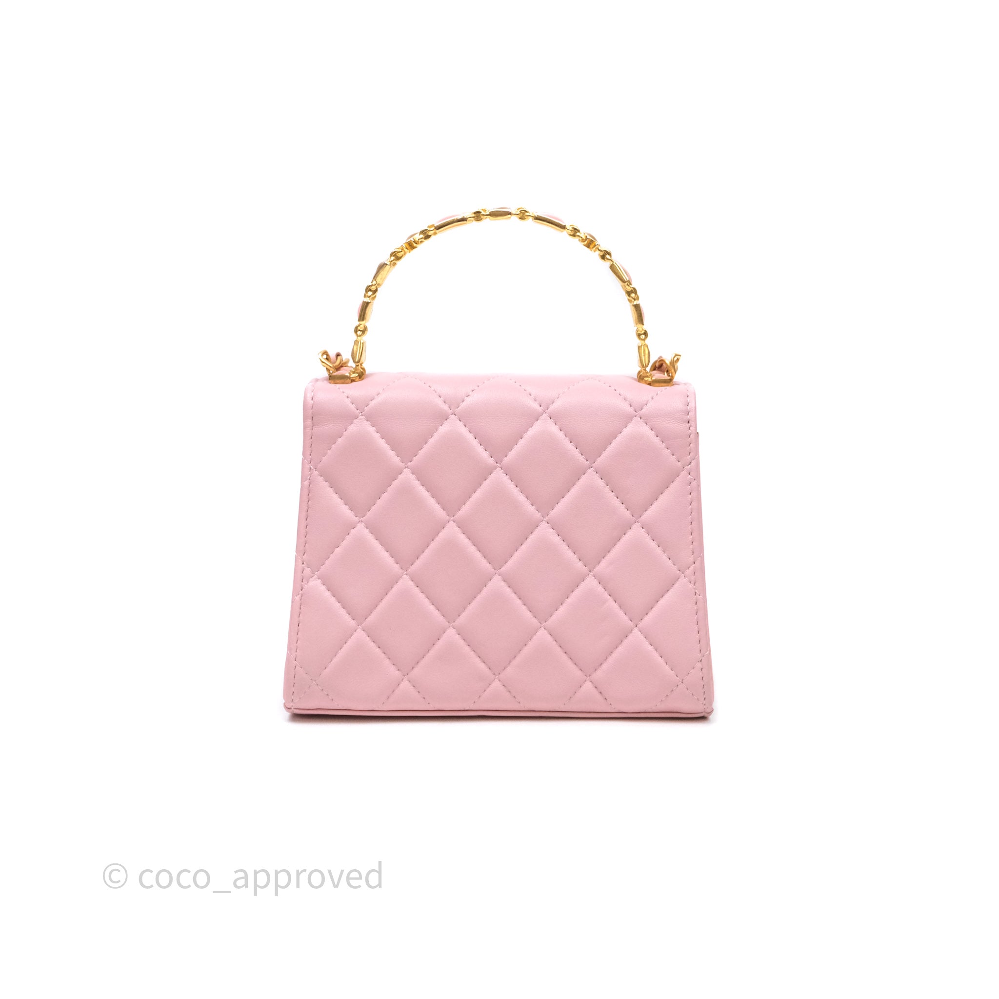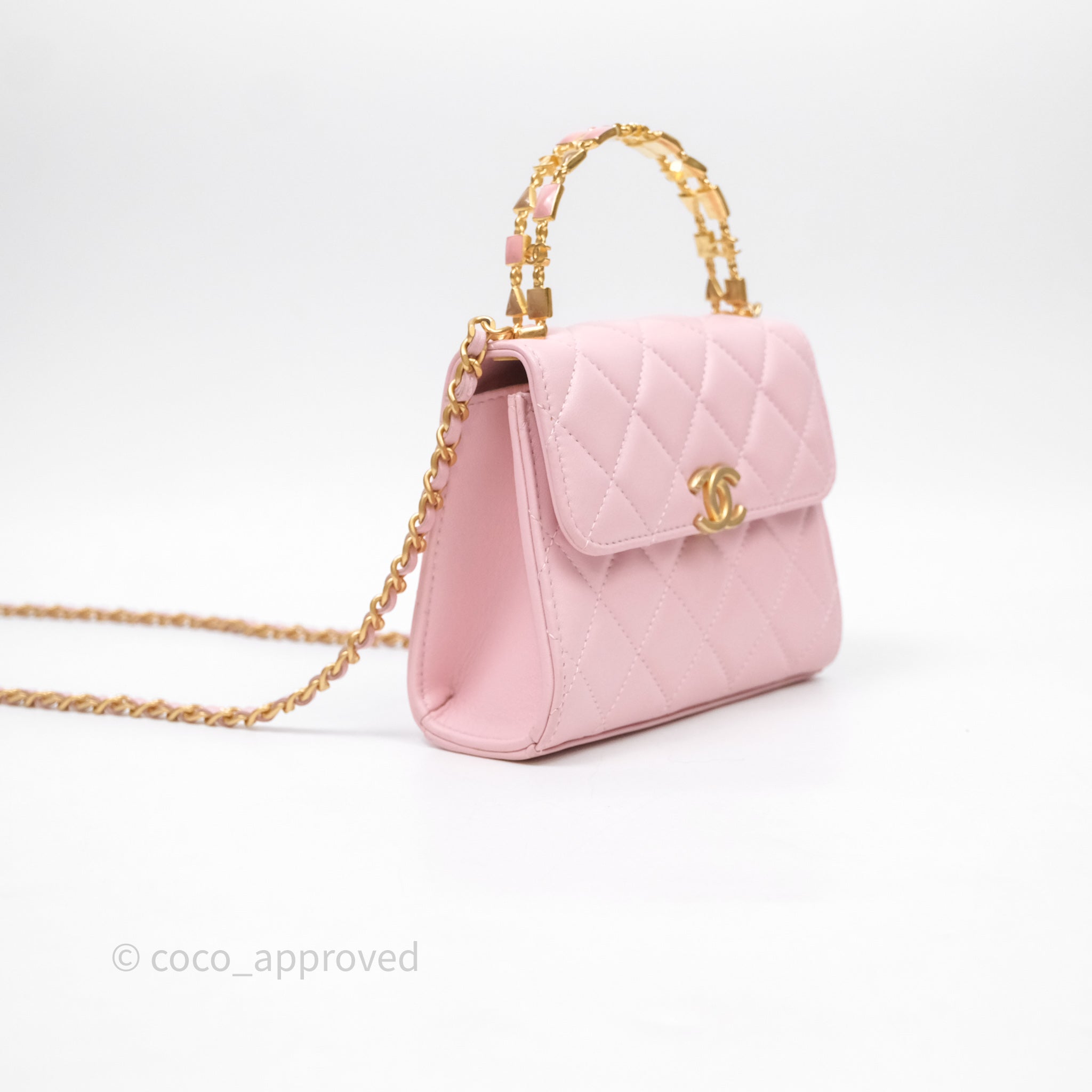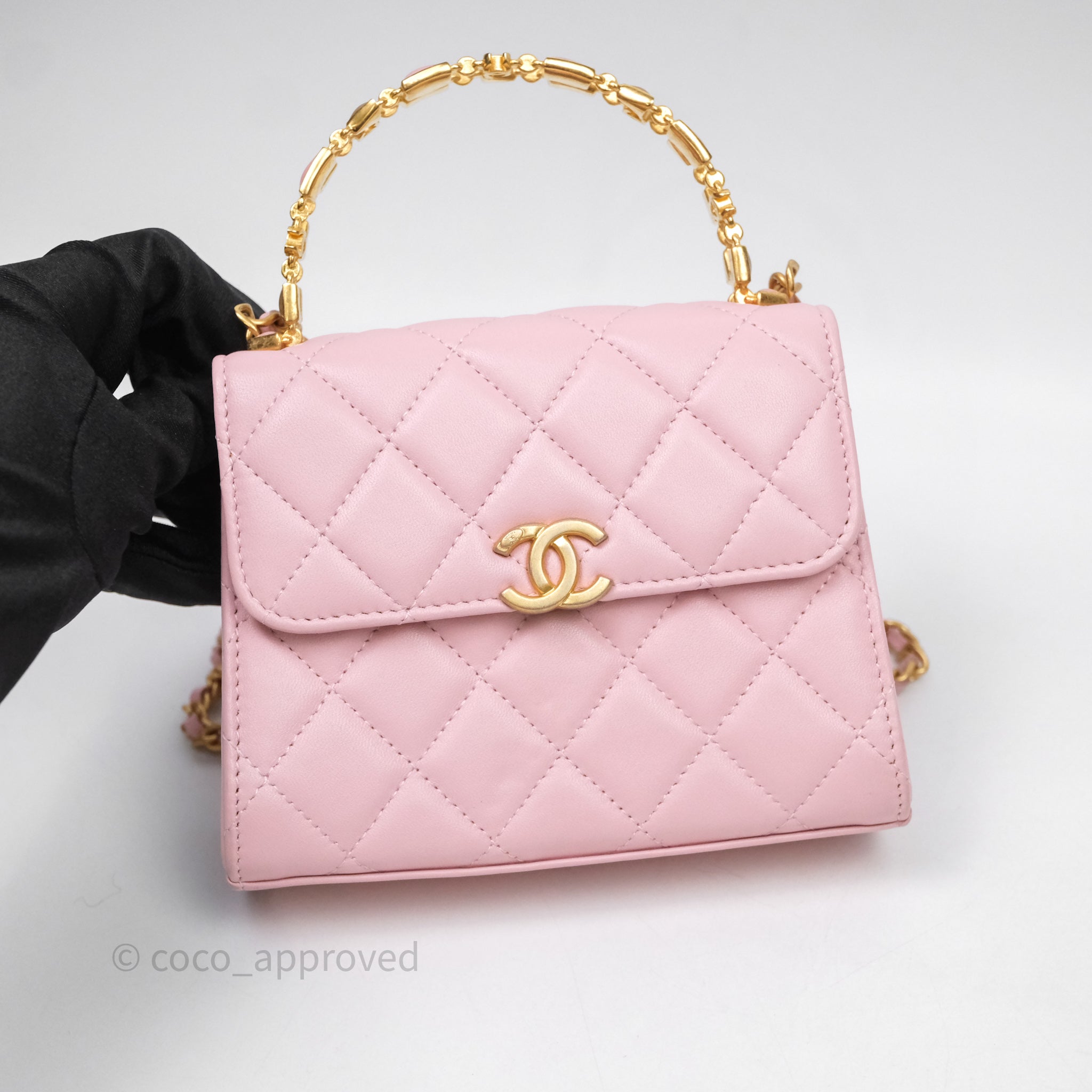 Chanel Mini Enamel Handle Clutch on Chain Pink Lambskin Gold Hardware
