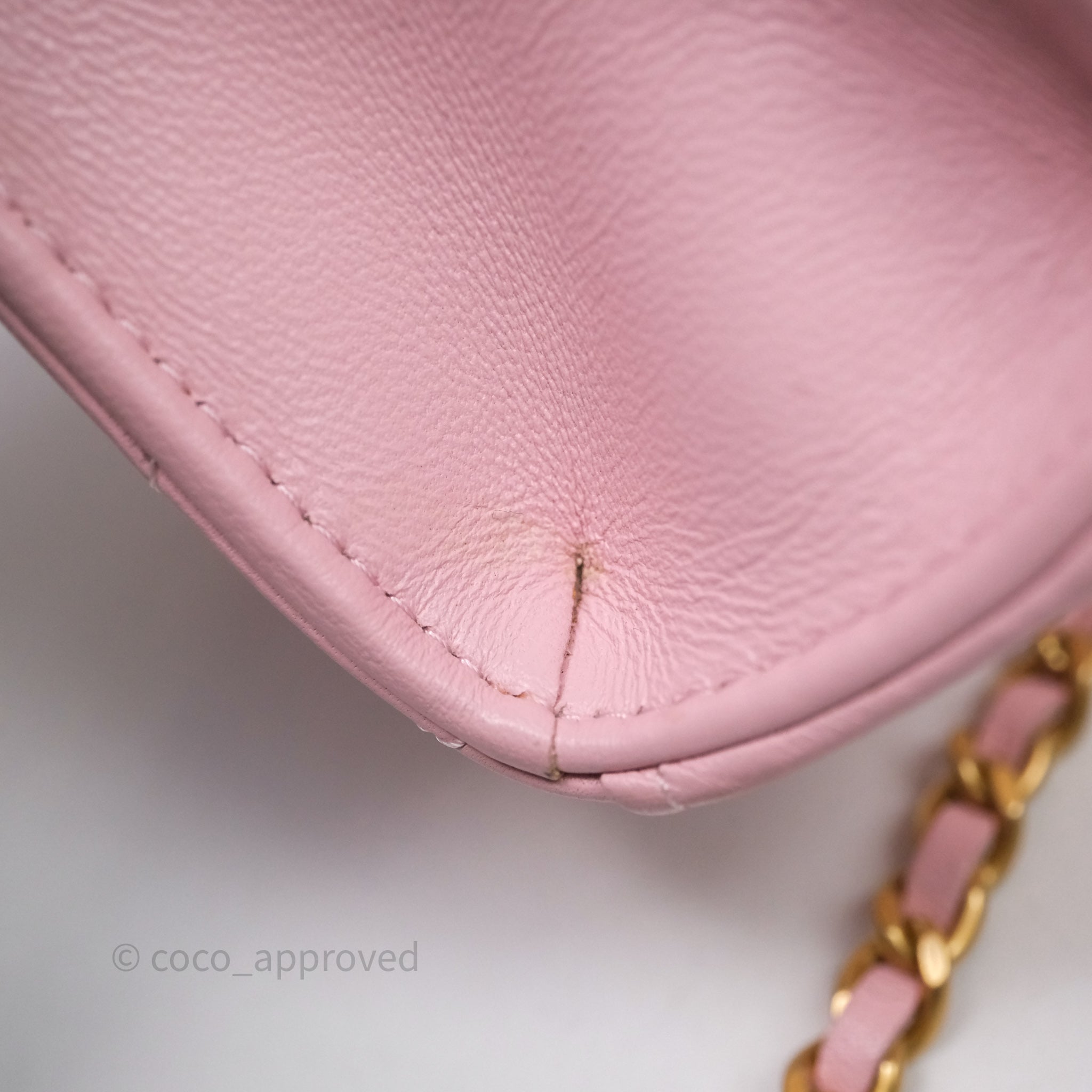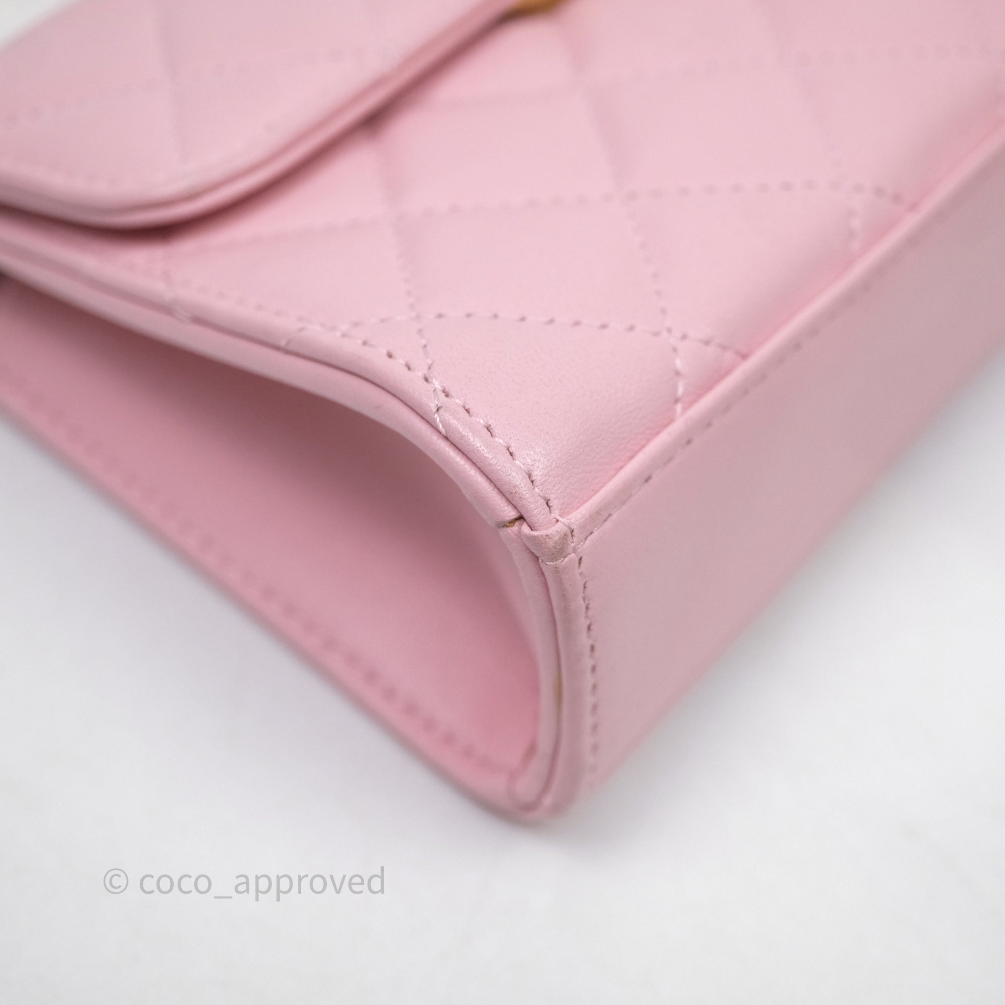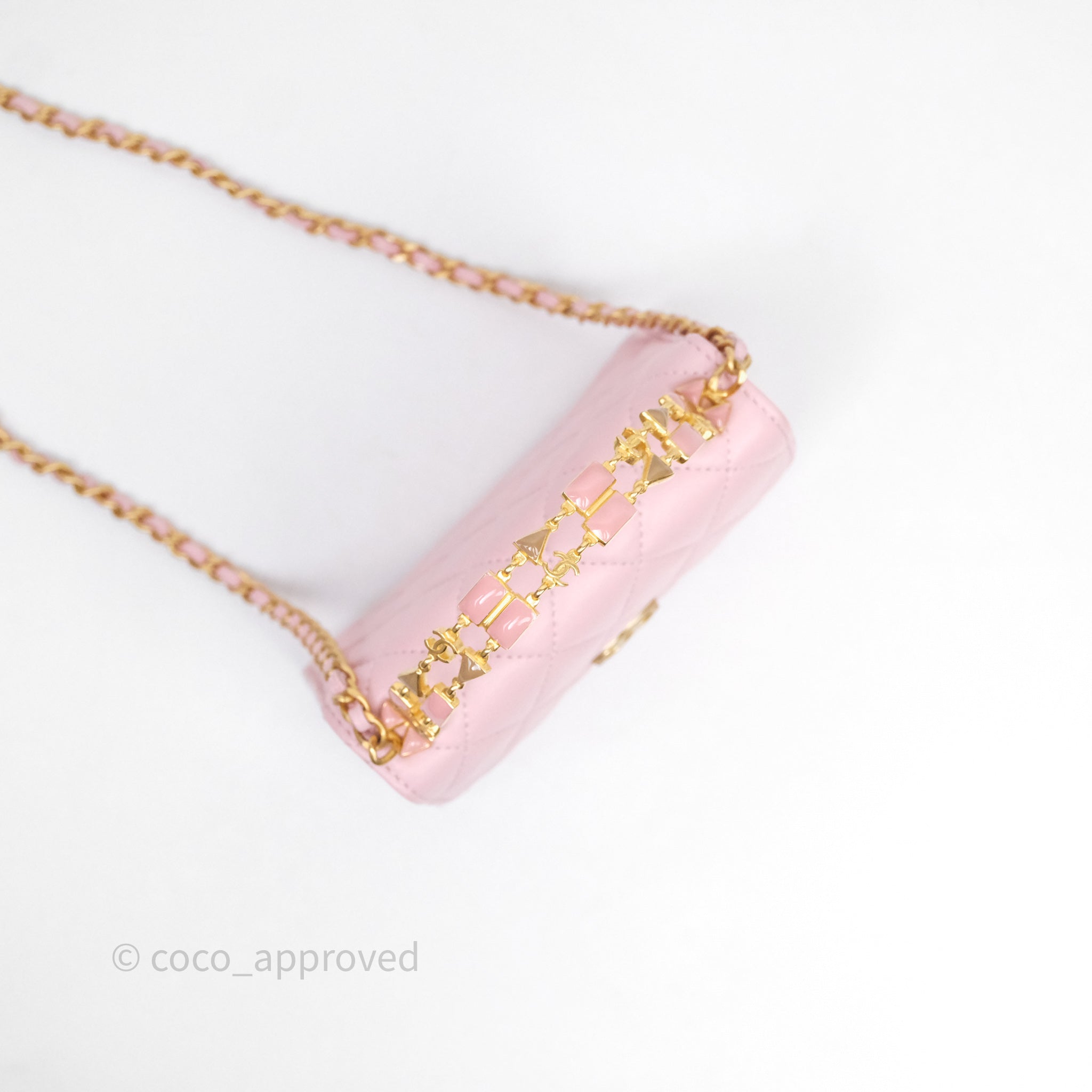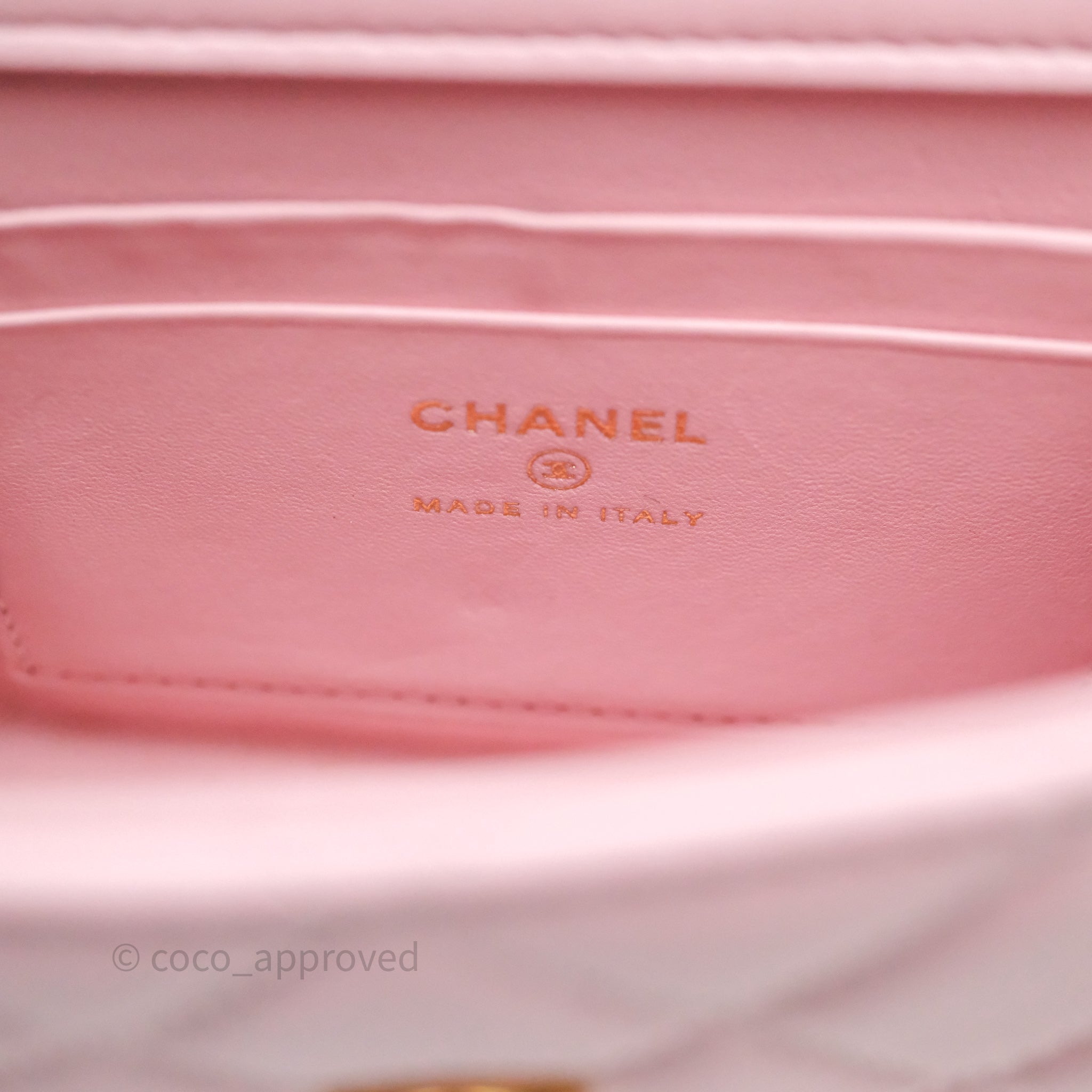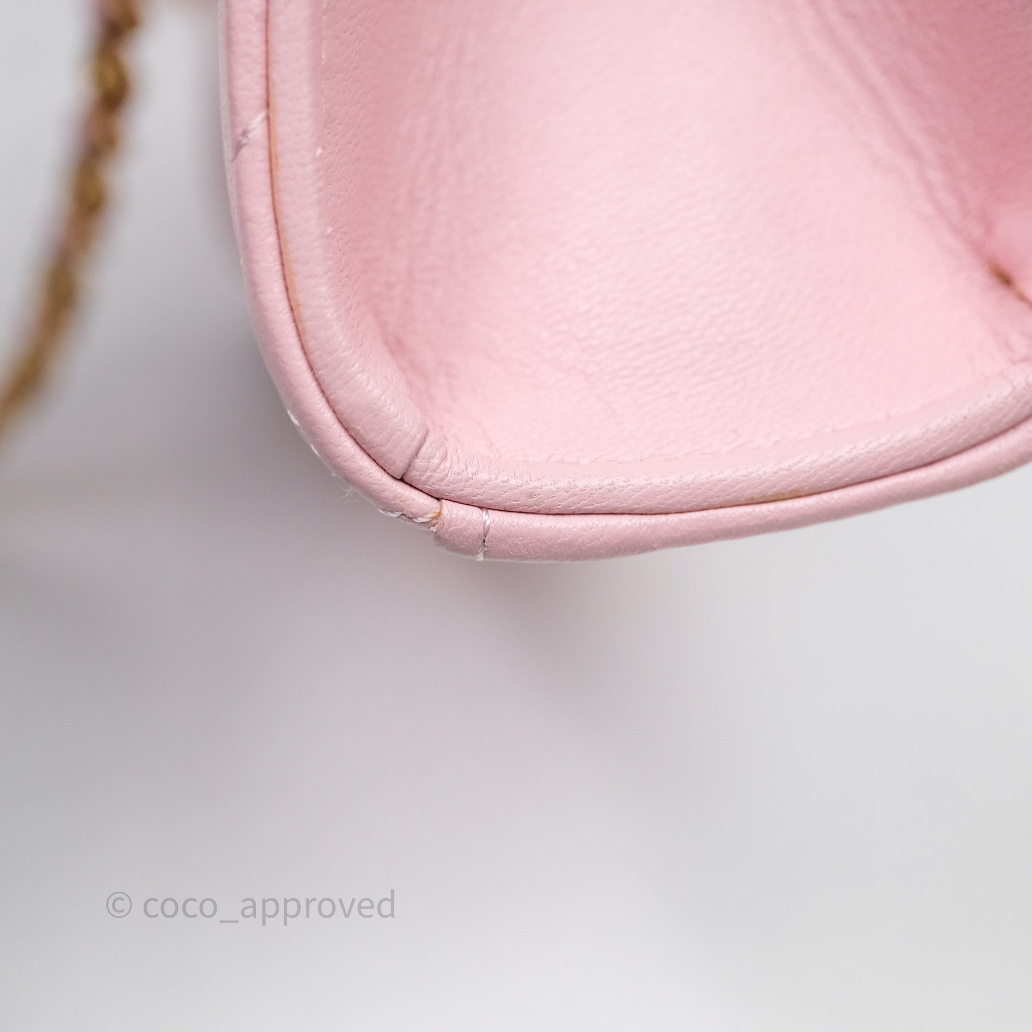 Chanel Mini Enamel Handle Clutch on Chain Pink Lambskin Gold Hardware