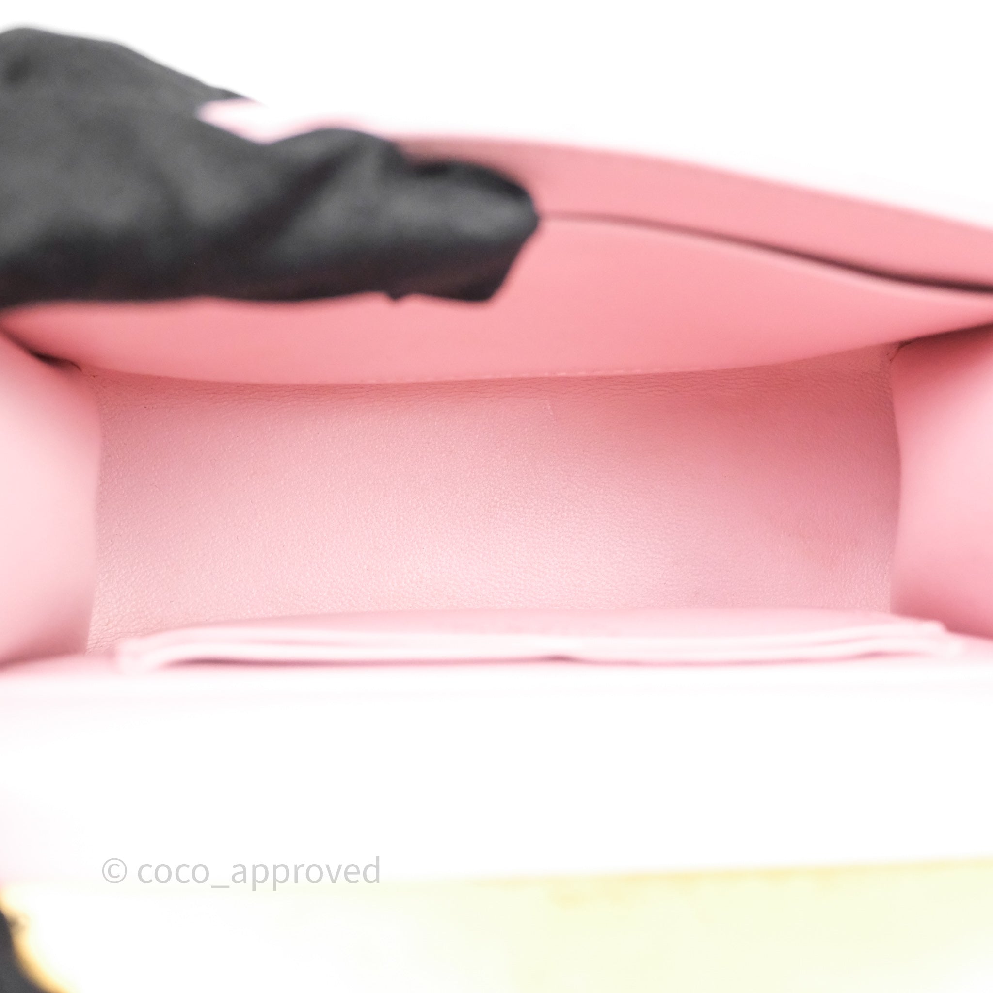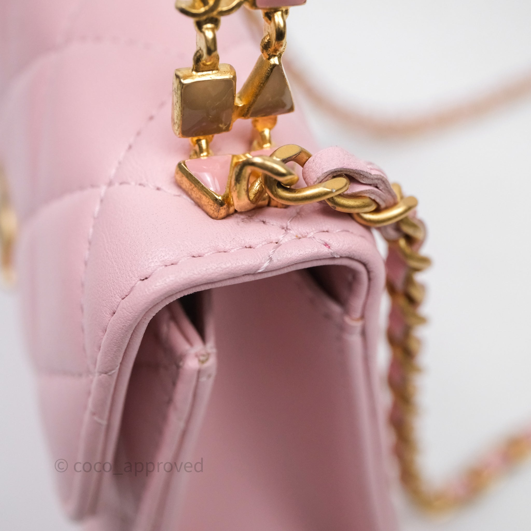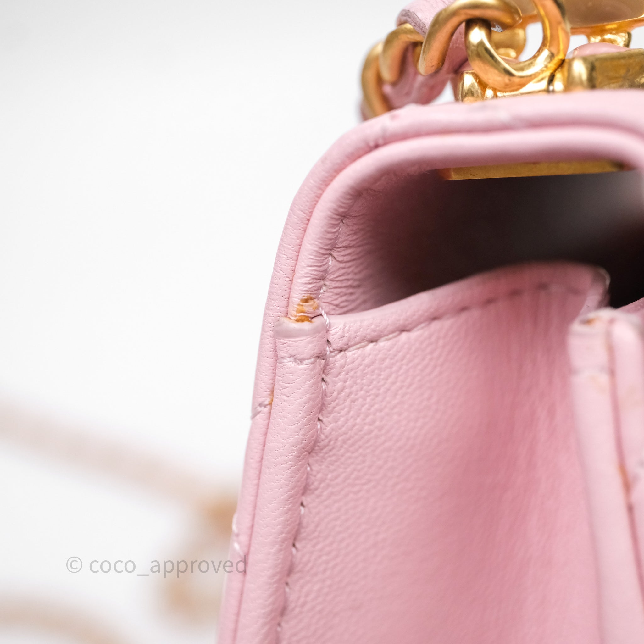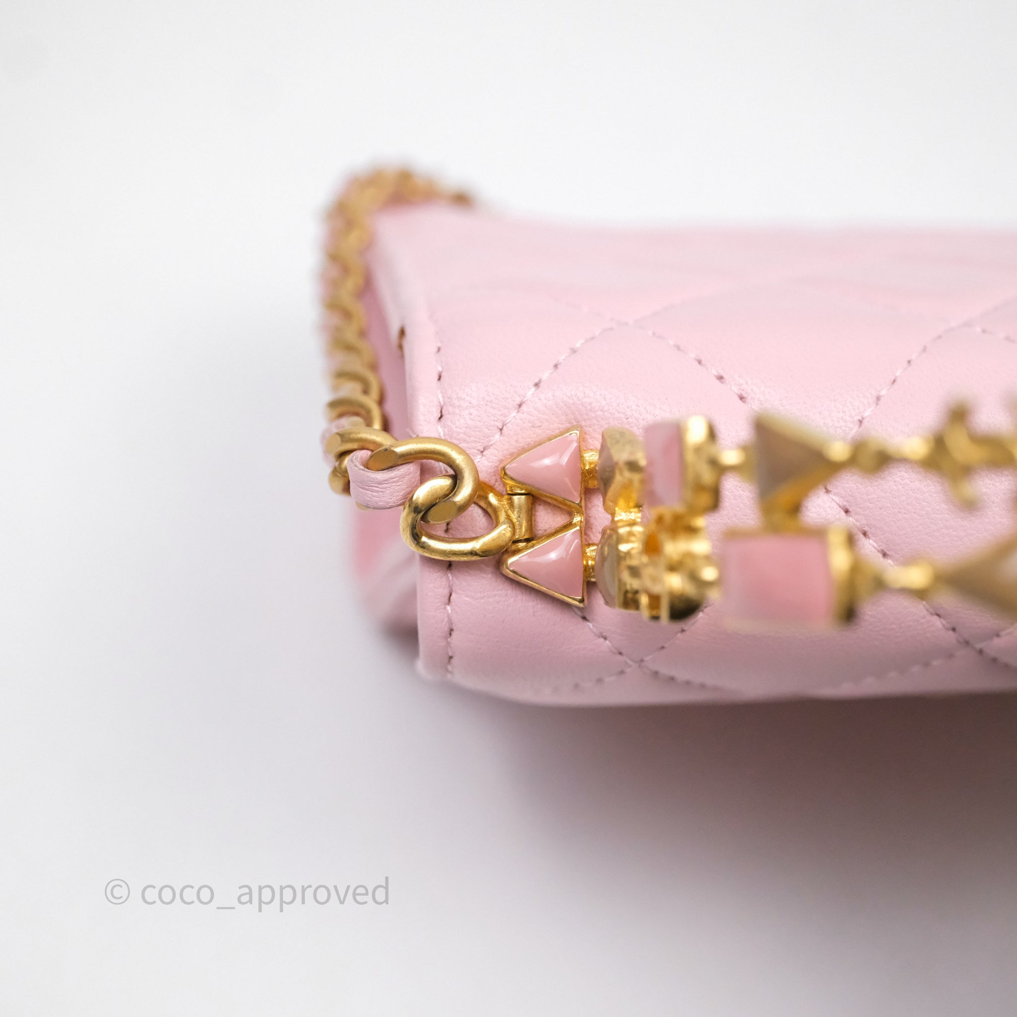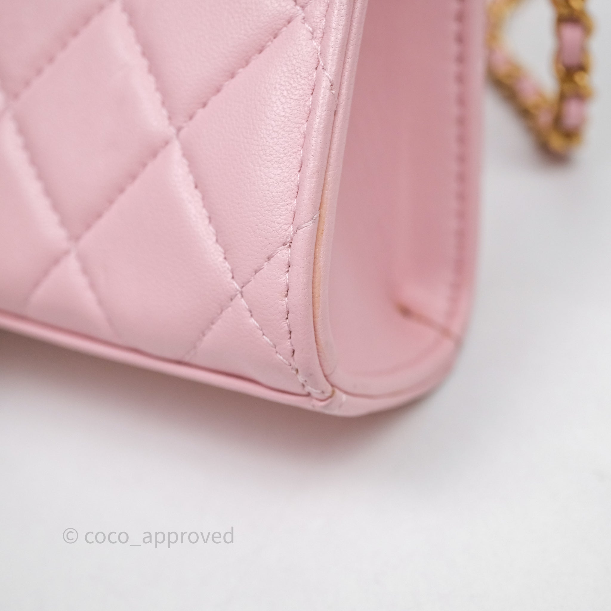 Chanel Mini Enamel Handle Clutch on Chain Pink Lambskin Gold Hardware