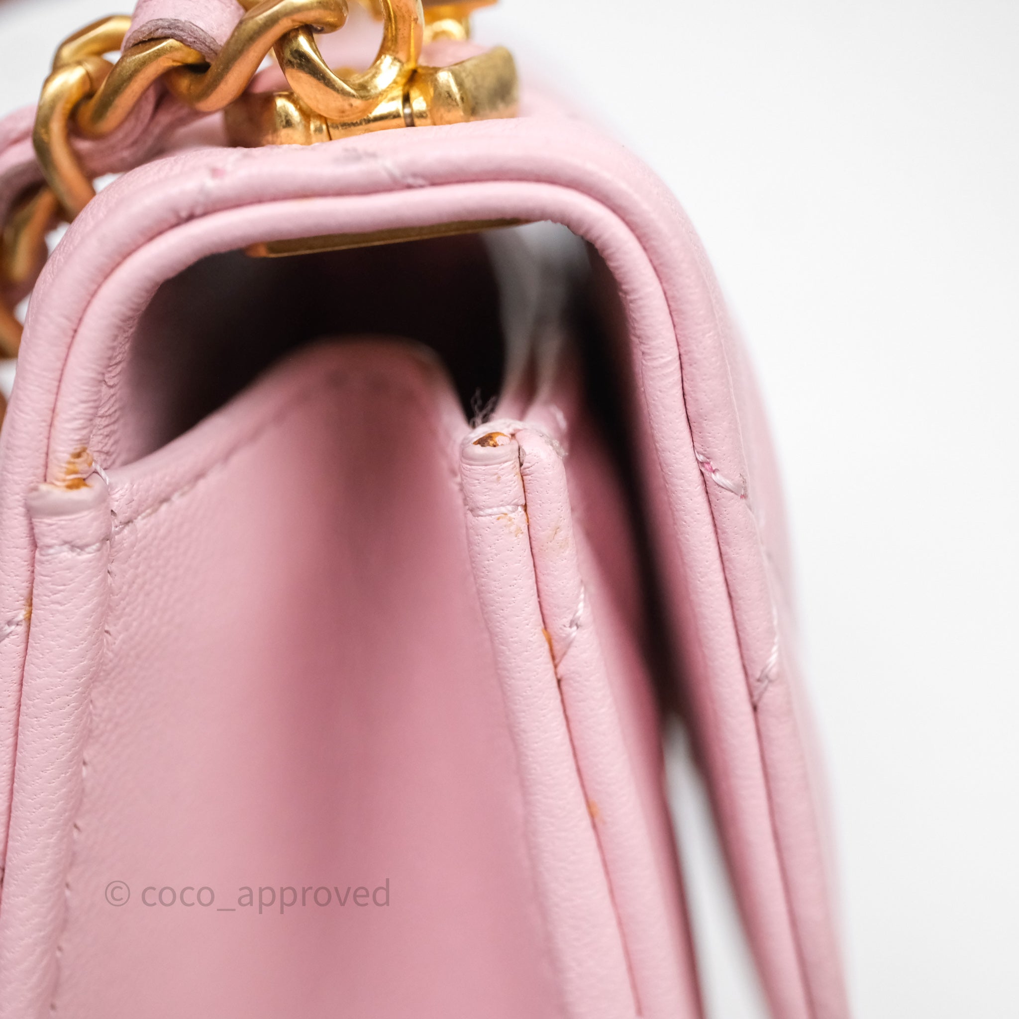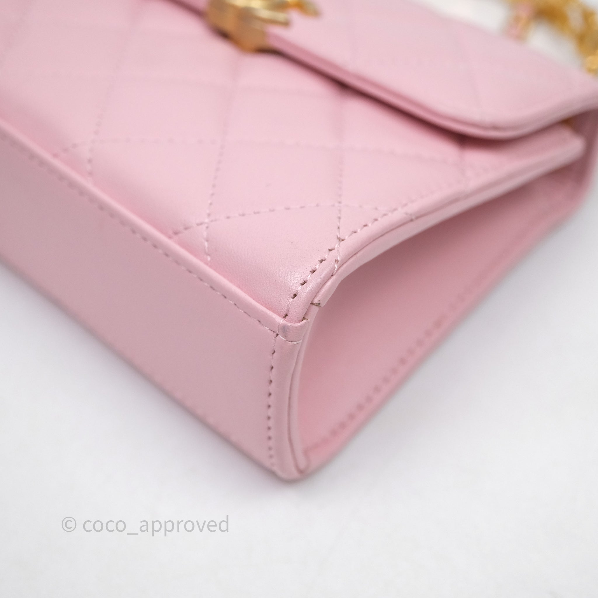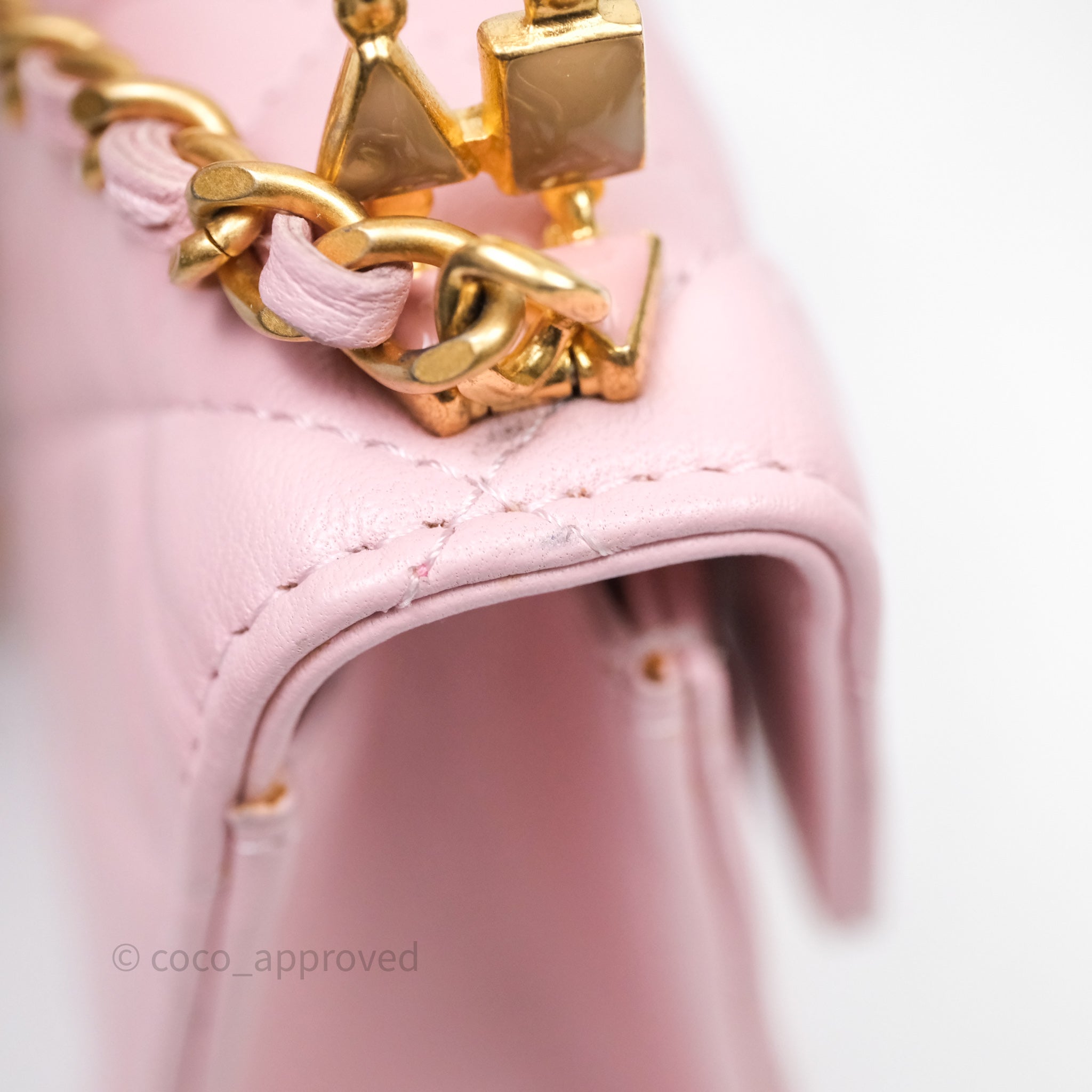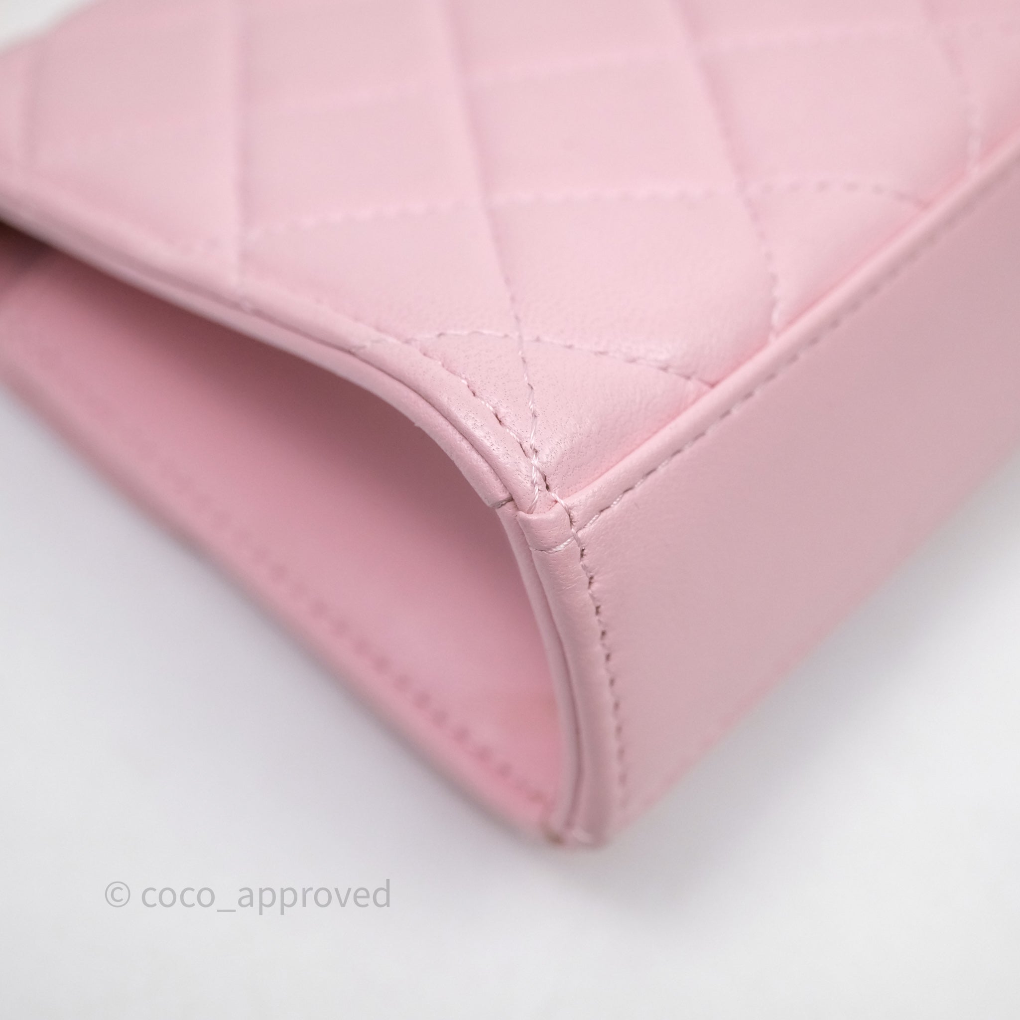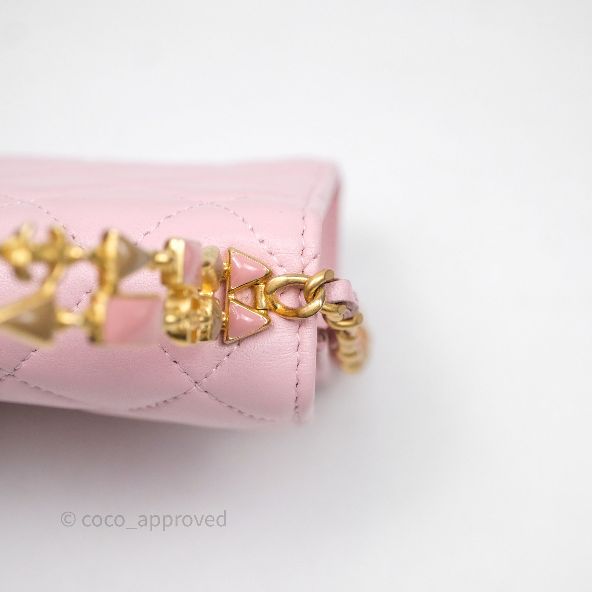 Chanel Mini Enamel Handle Clutch on Chain Pink Lambskin Gold Hardware