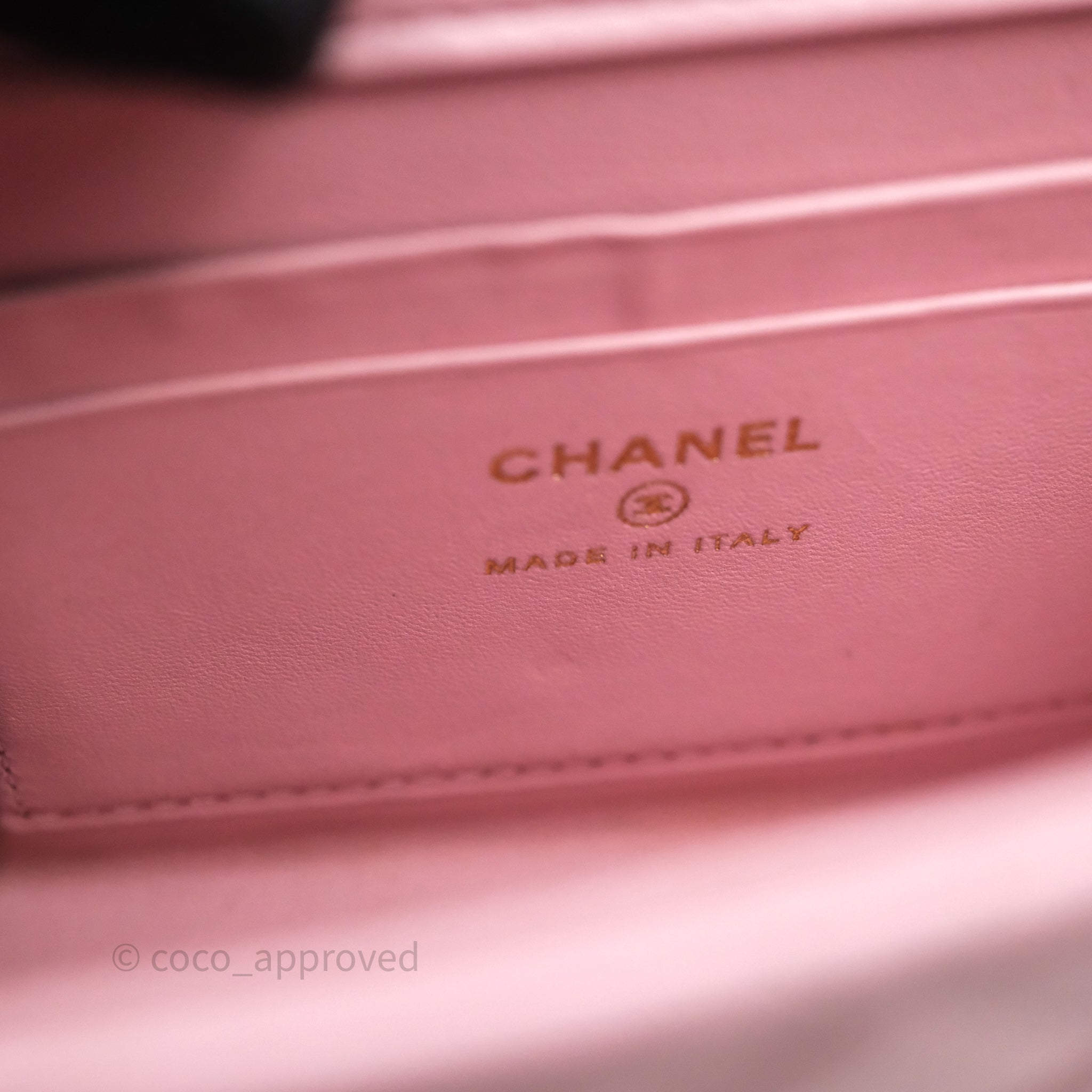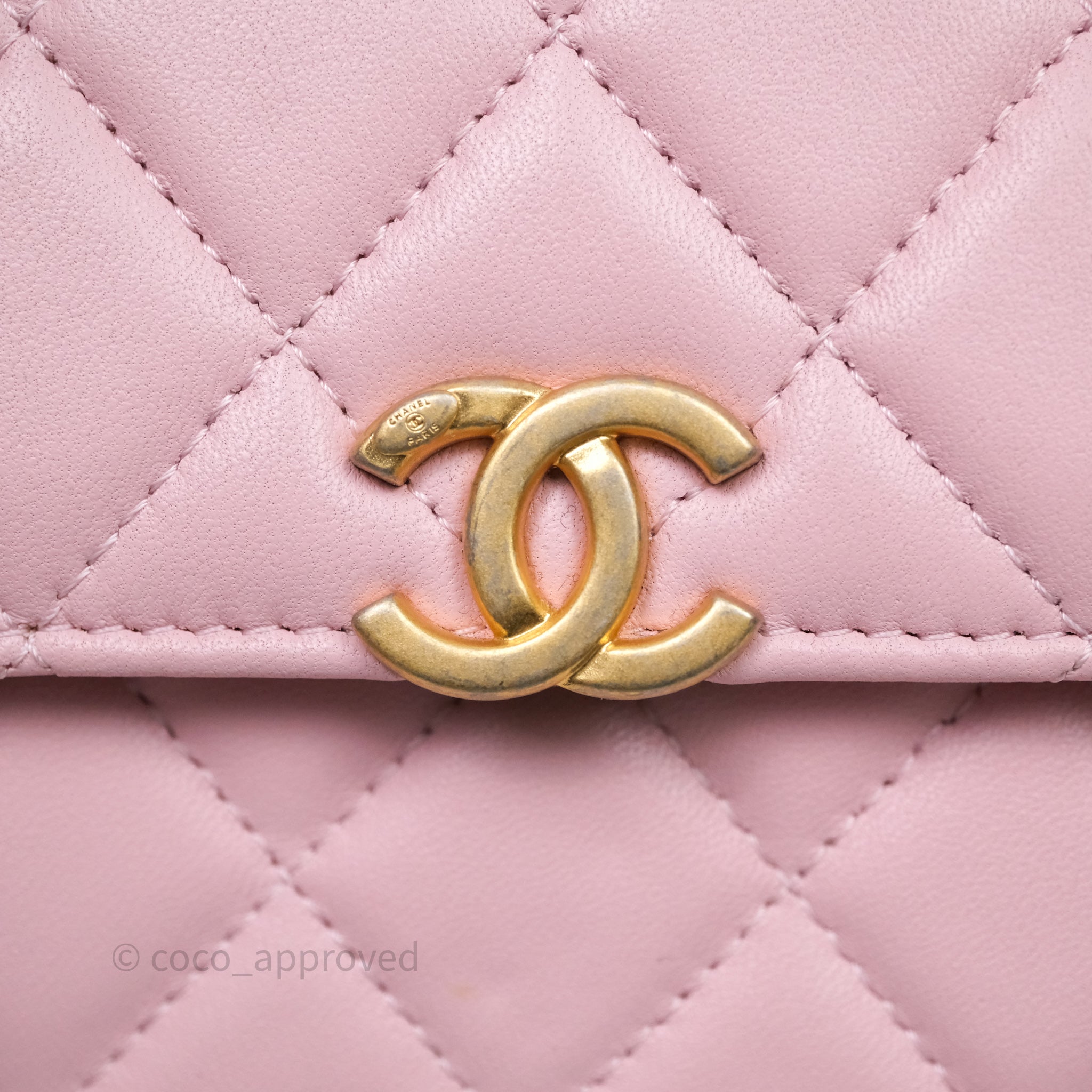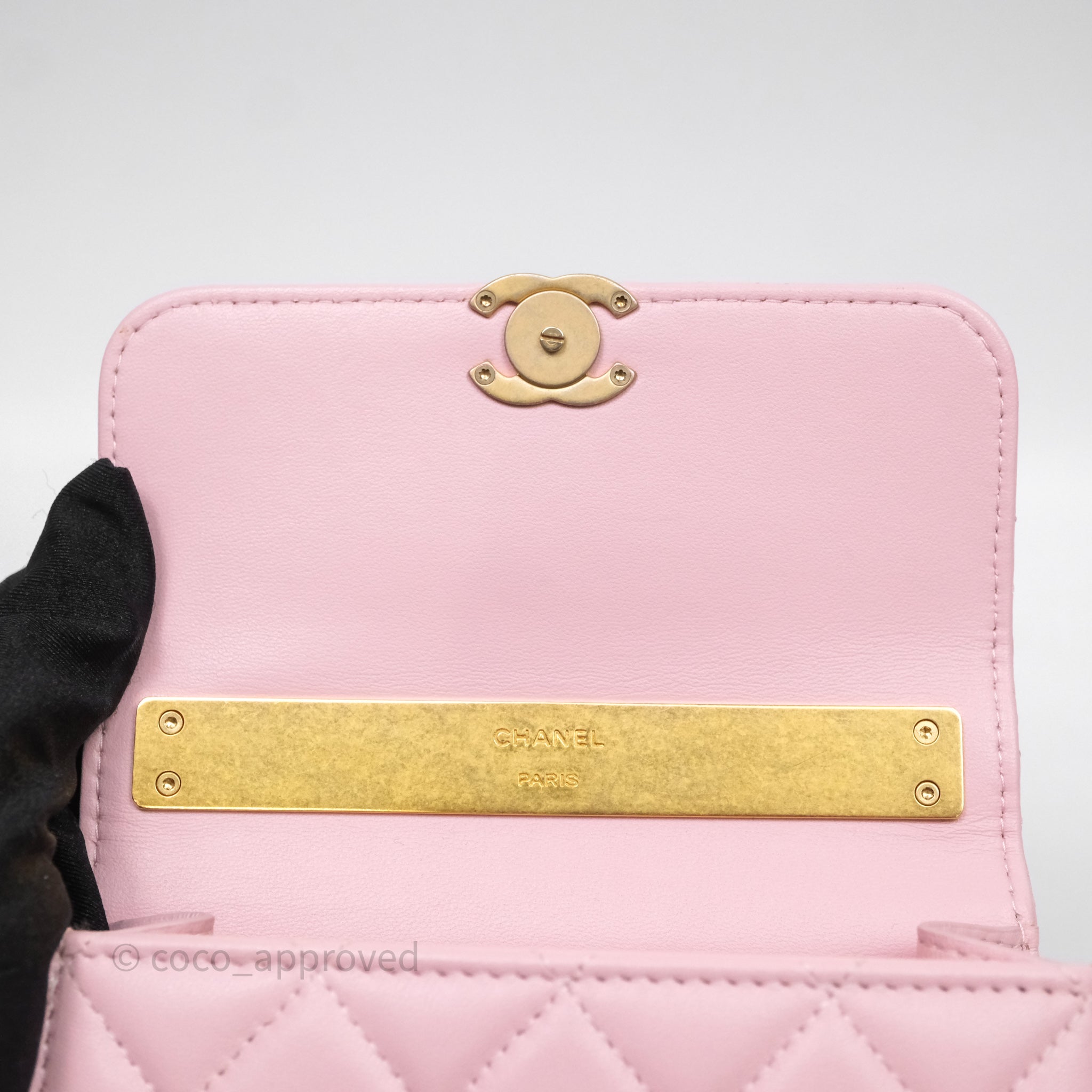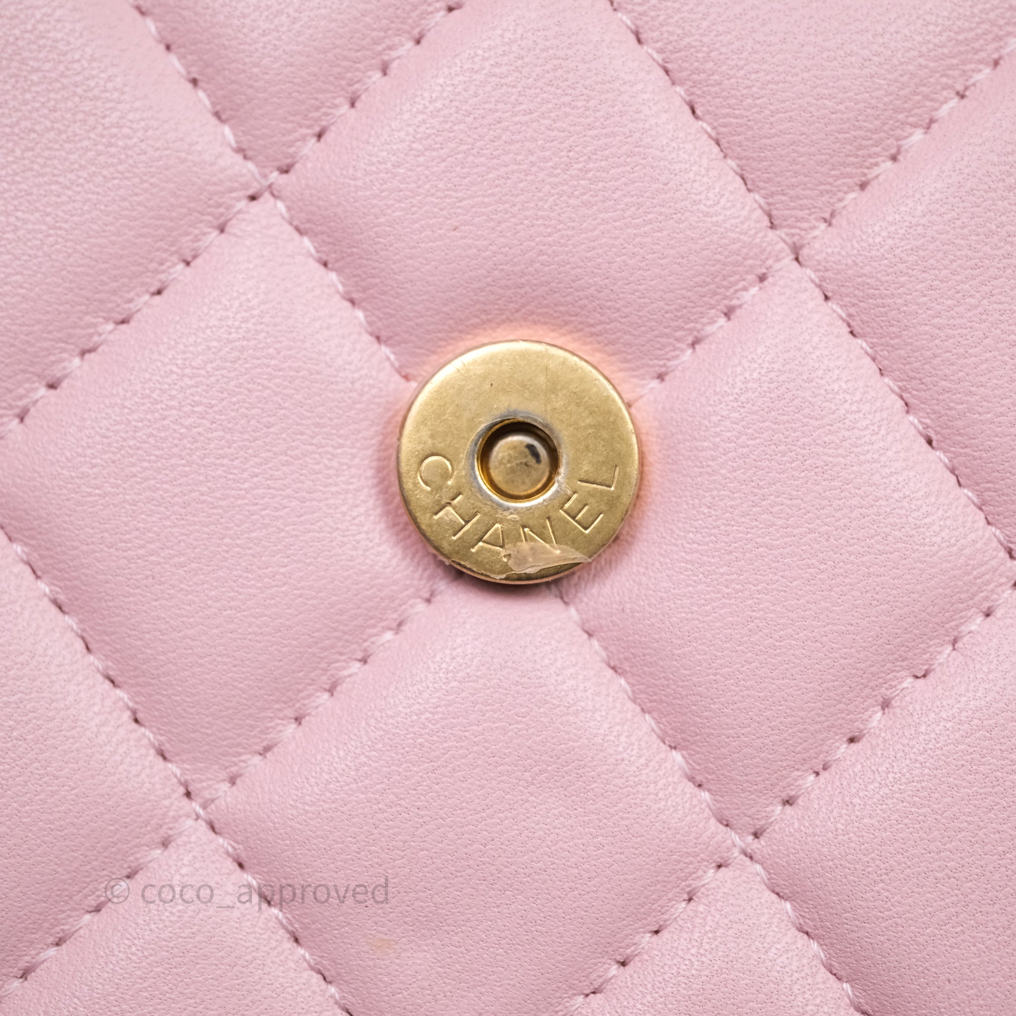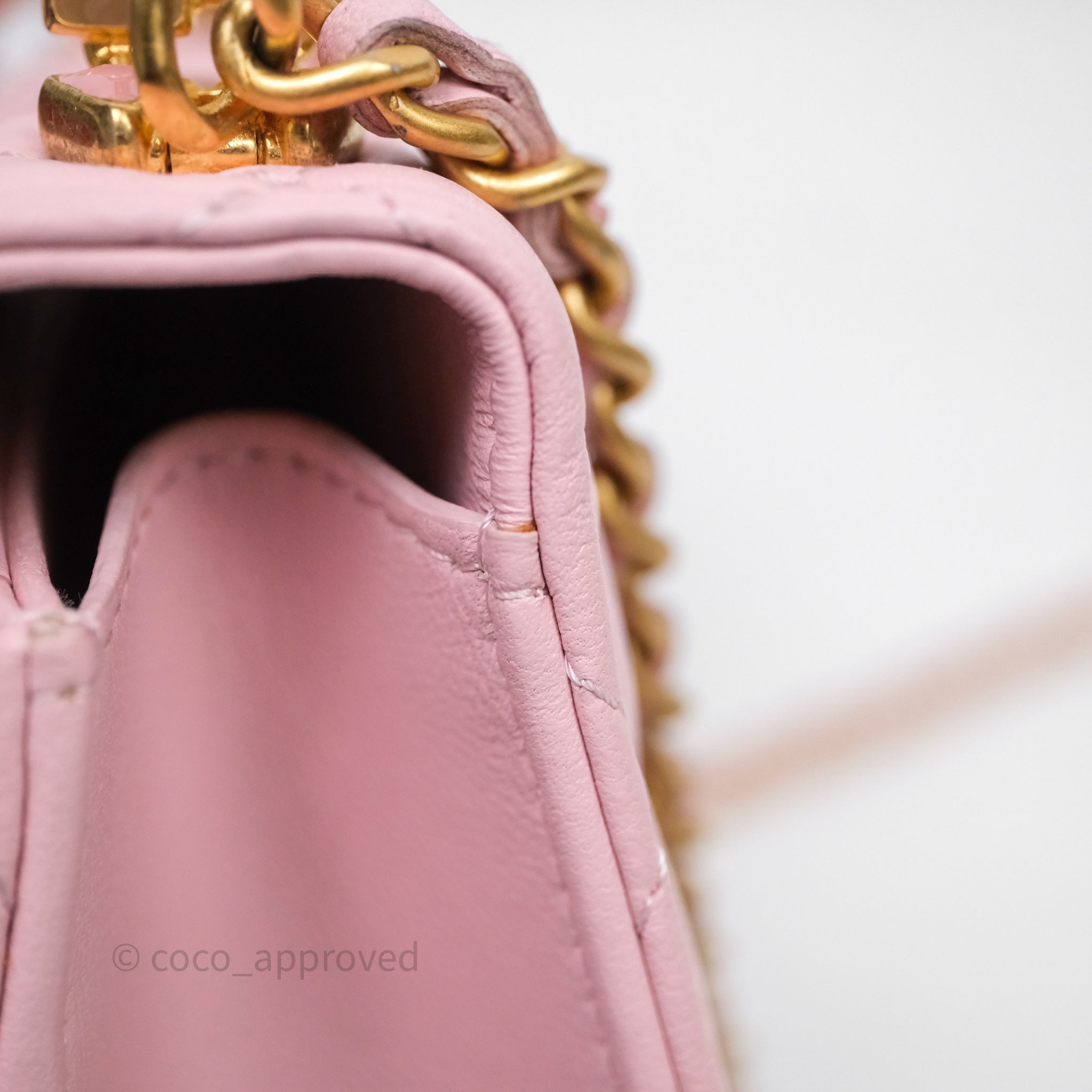 Chanel Mini Enamel Handle Clutch on Chain Pink Lambskin Gold Hardware