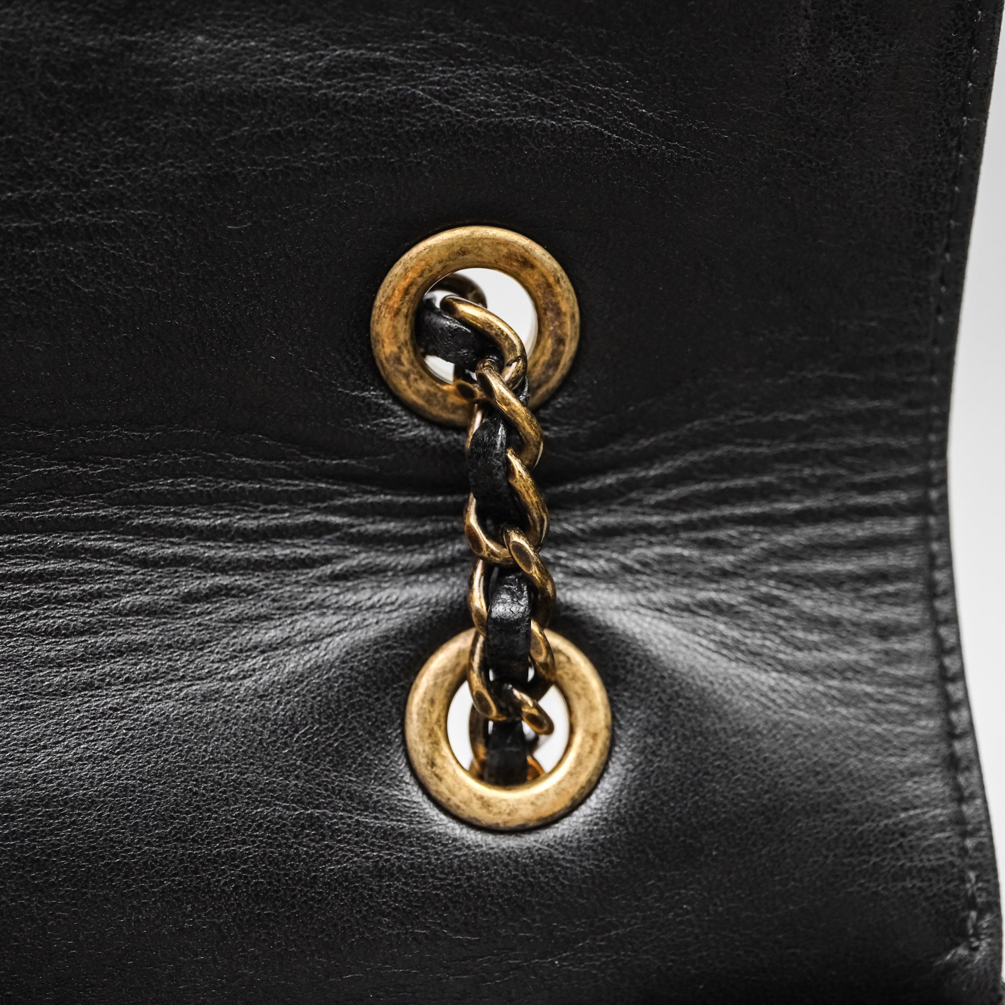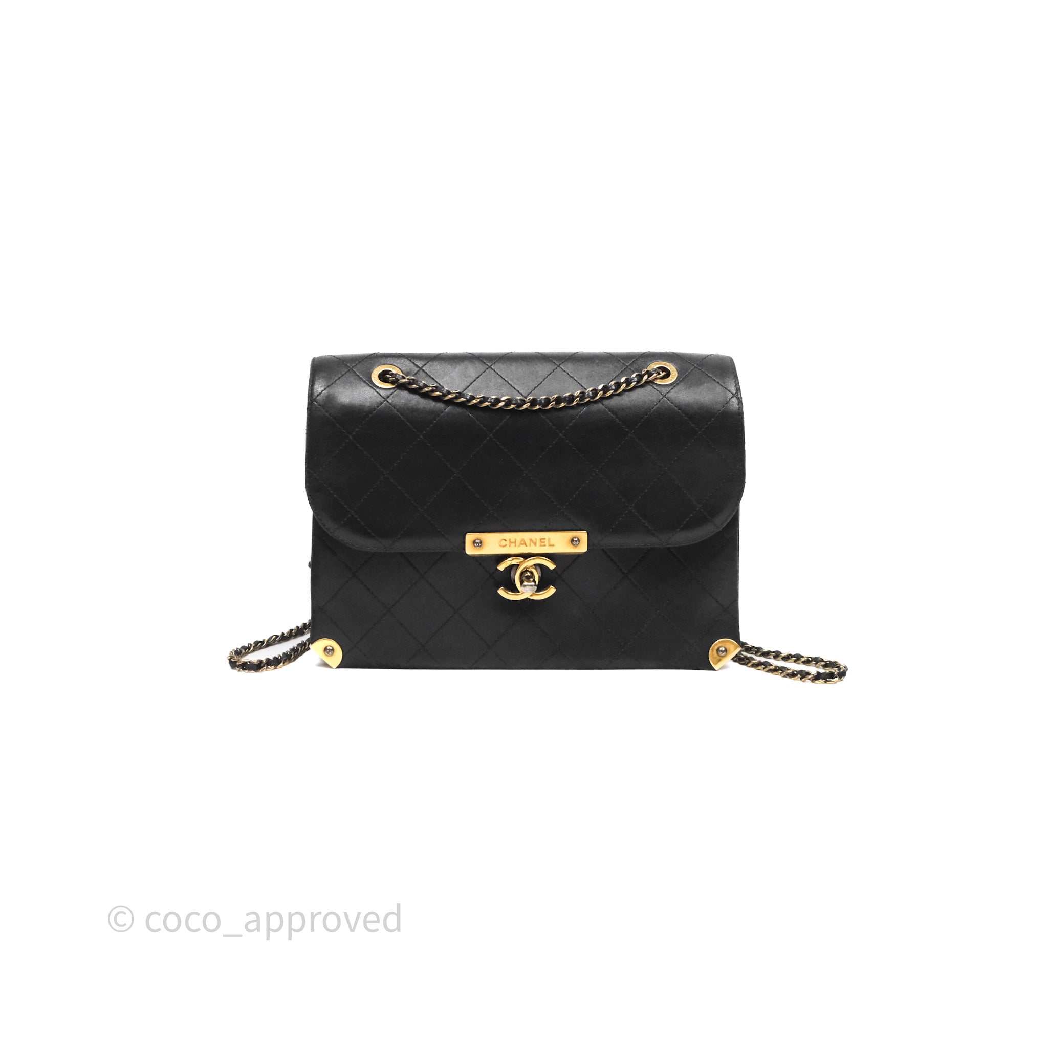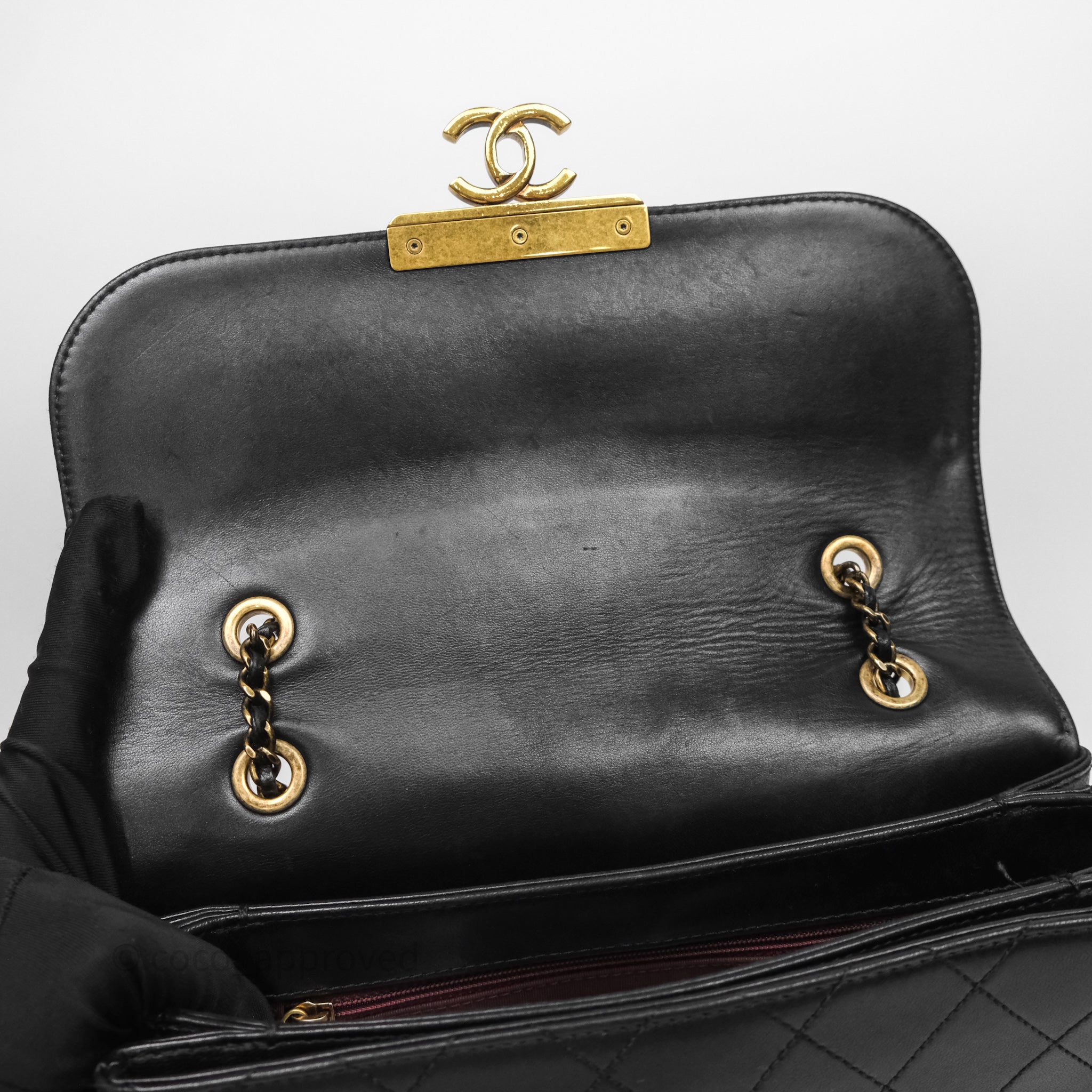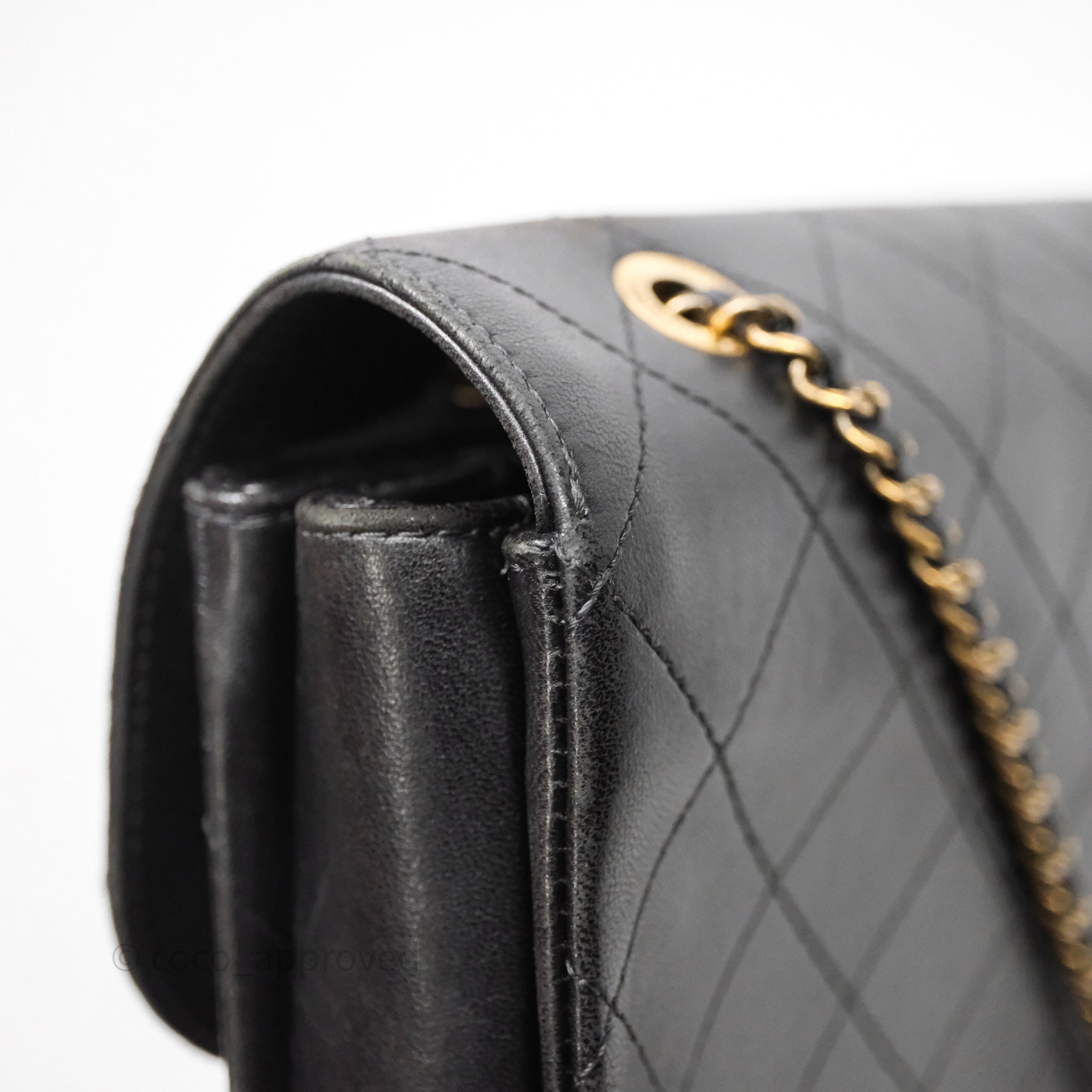 Chanel Quilted Flap Bag Black Calfskin Aged Gold Hardware