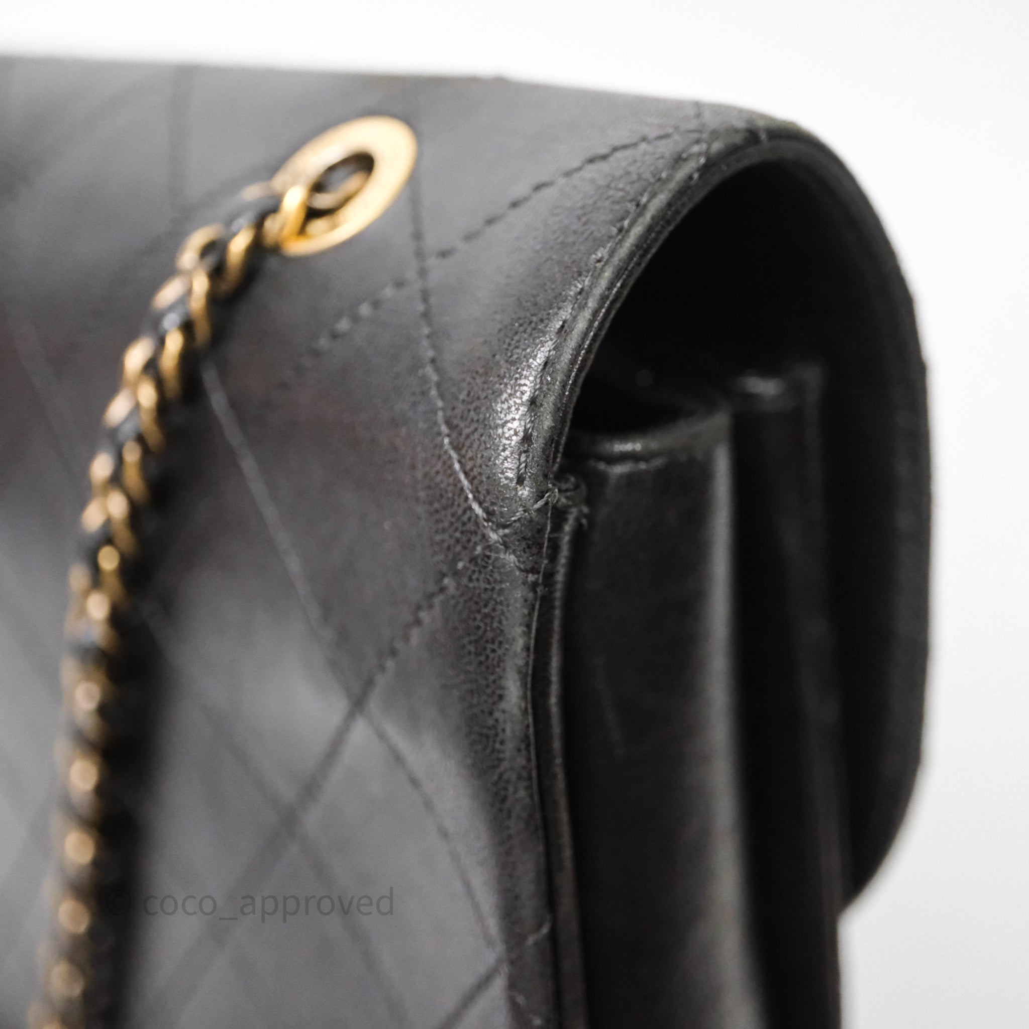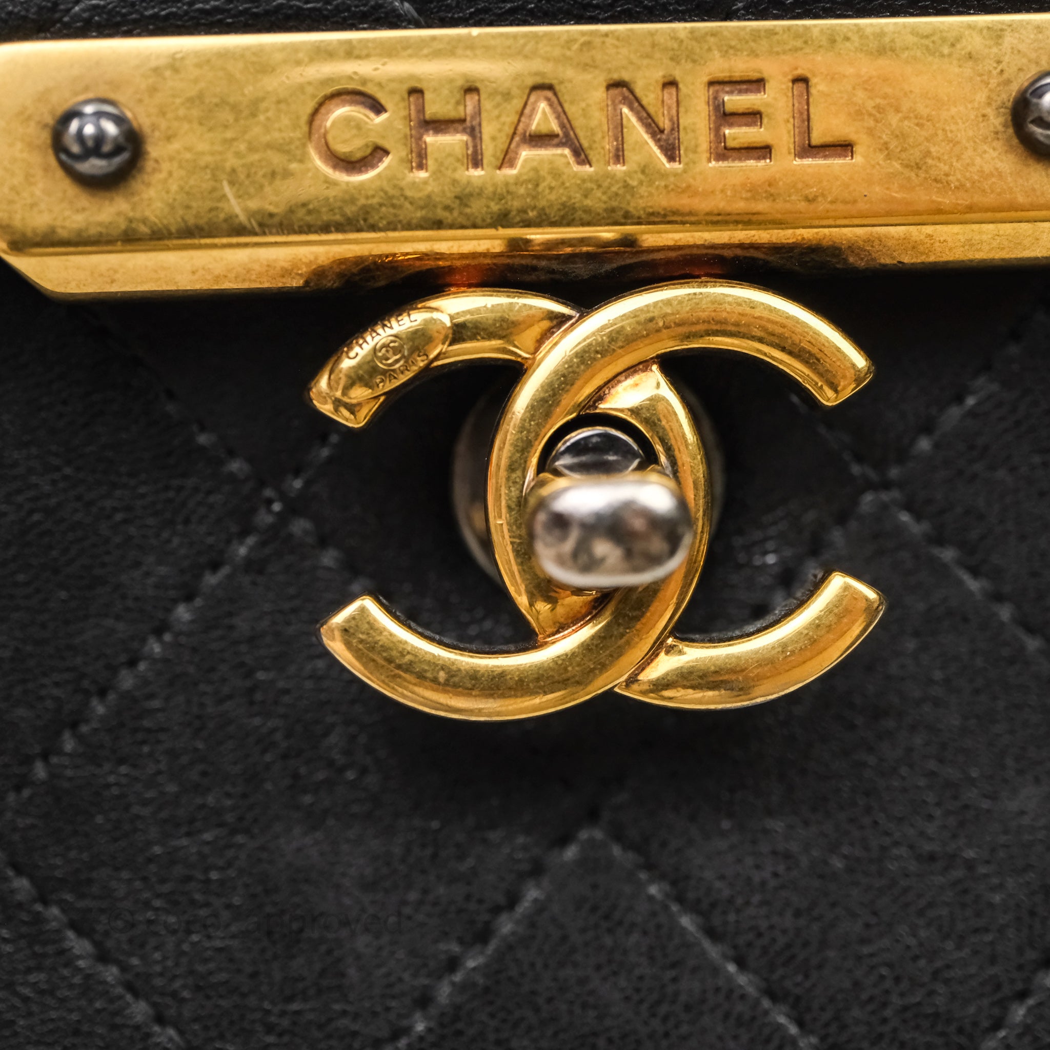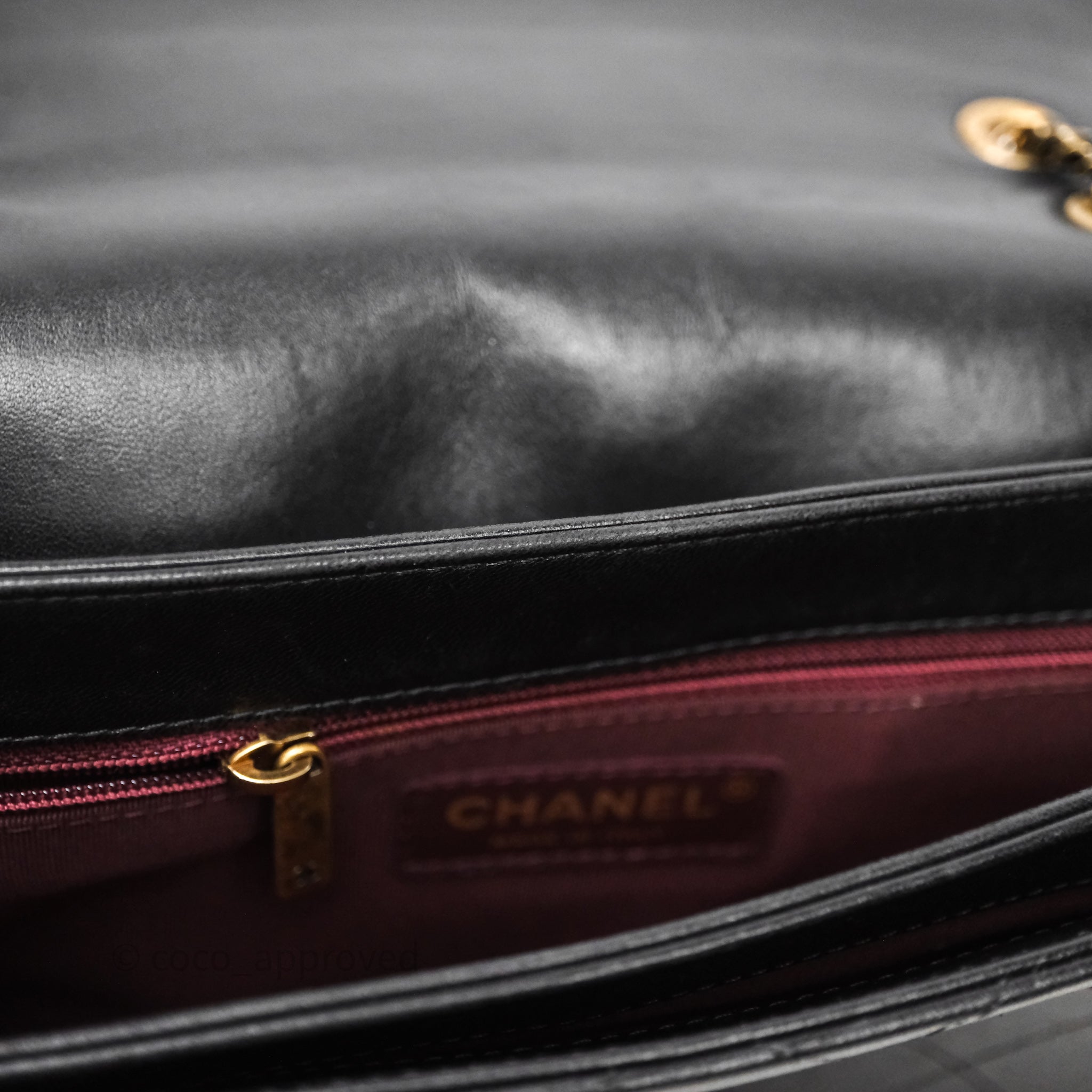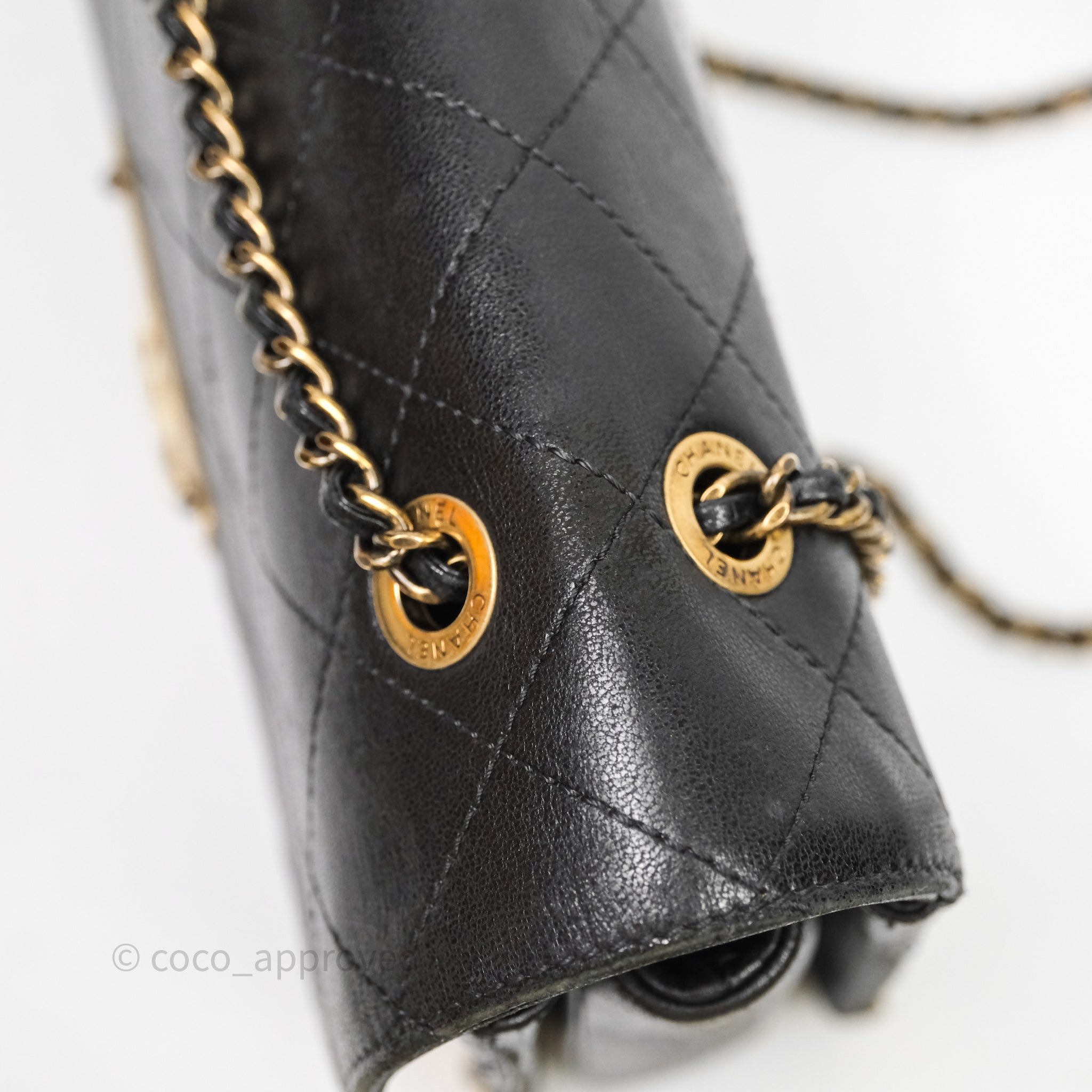 Chanel Quilted Flap Bag Black Calfskin Aged Gold Hardware