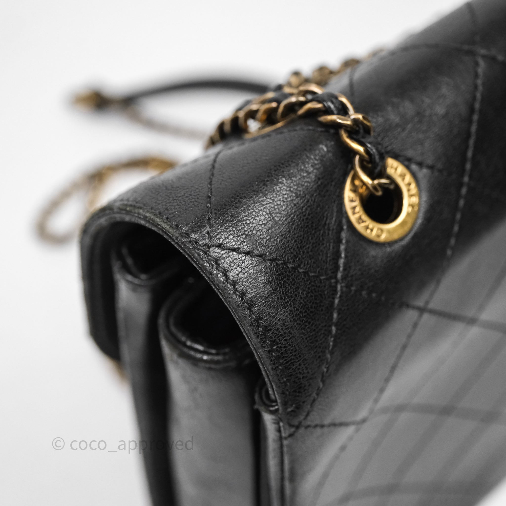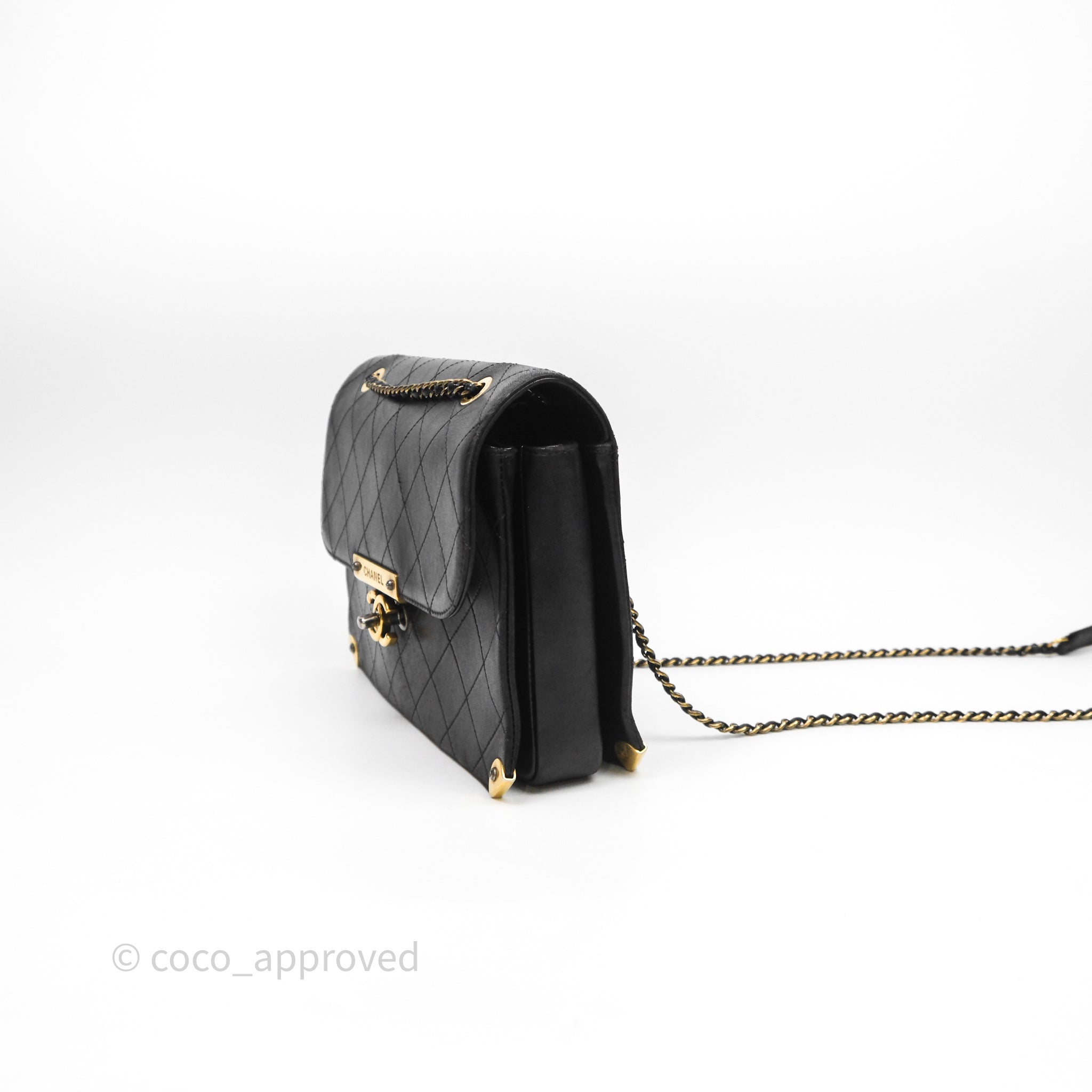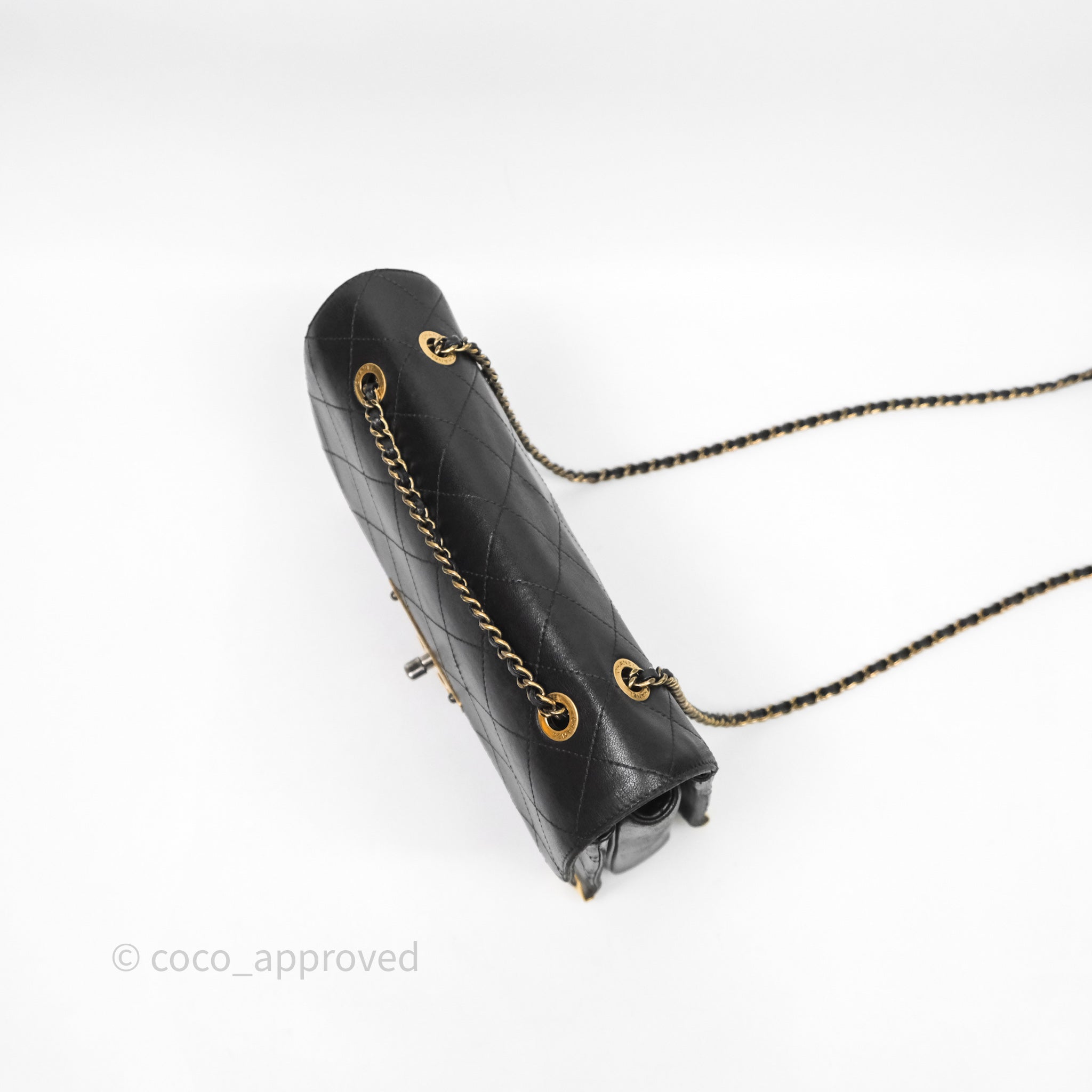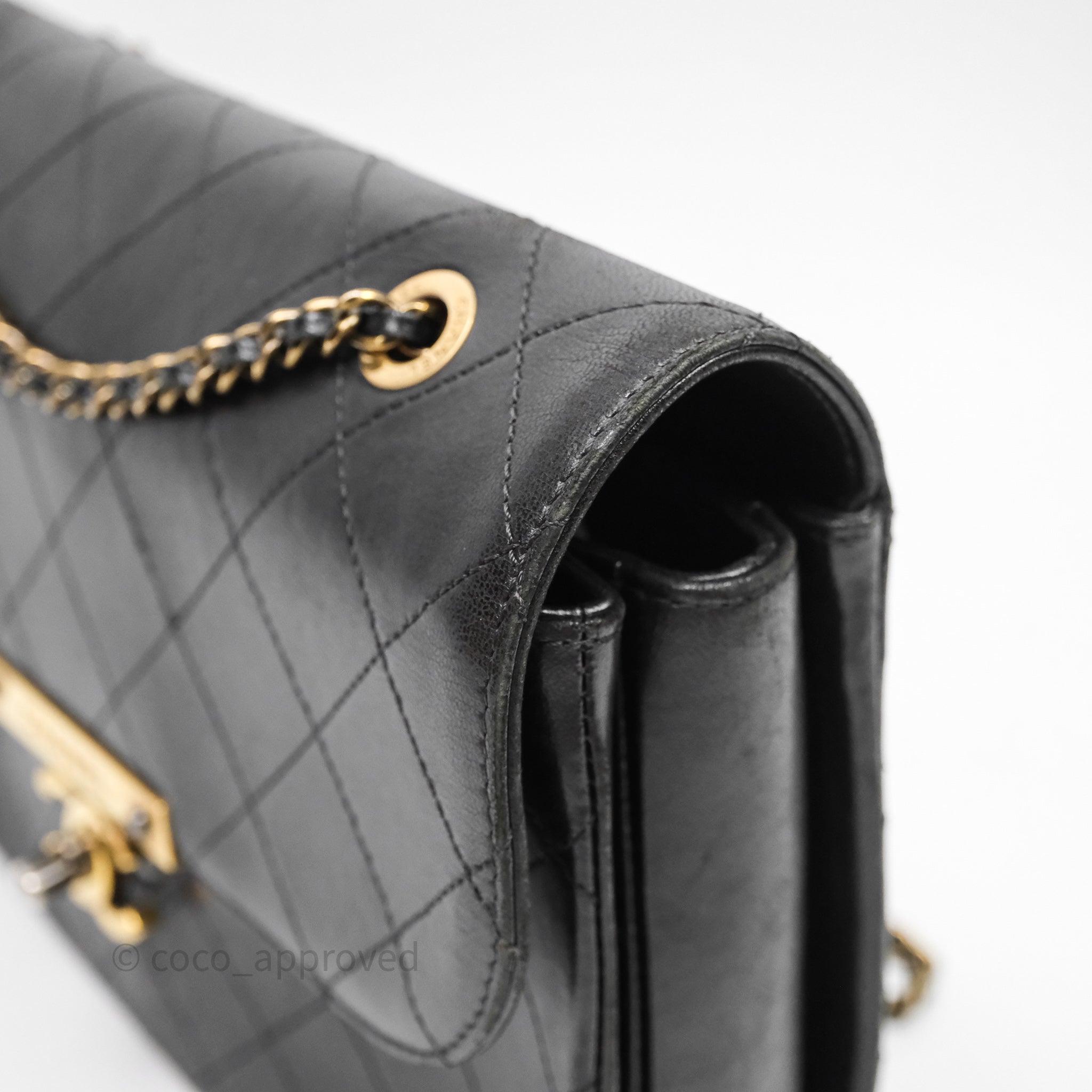 Chanel Quilted Flap Bag Black Calfskin Aged Gold Hardware