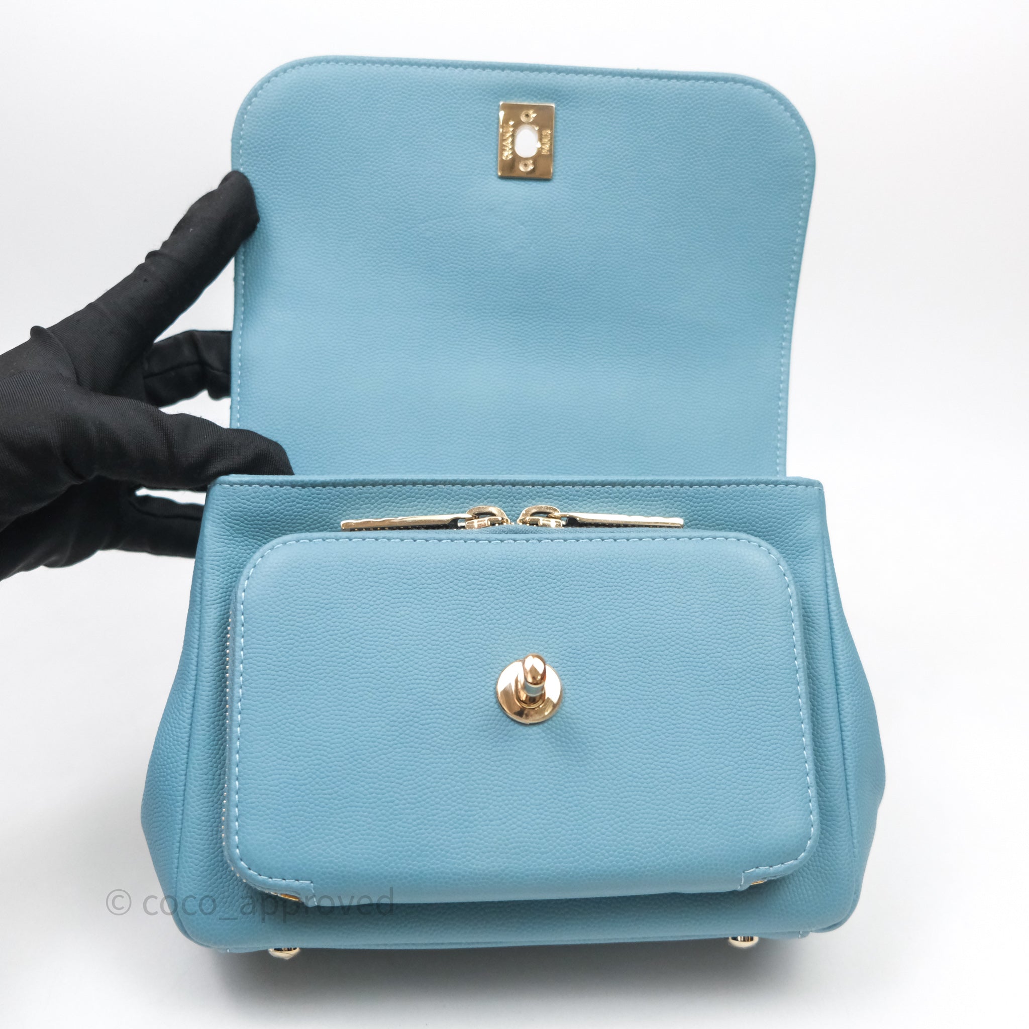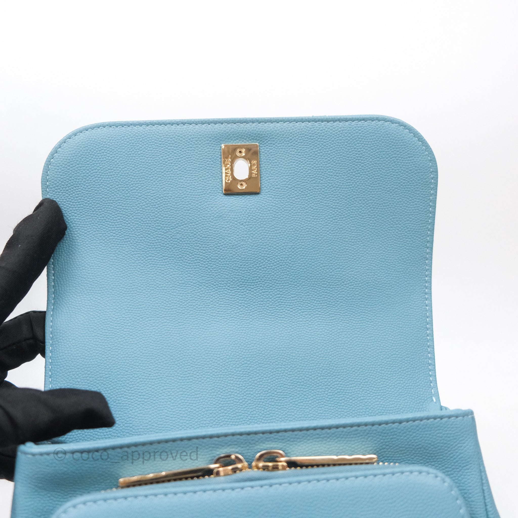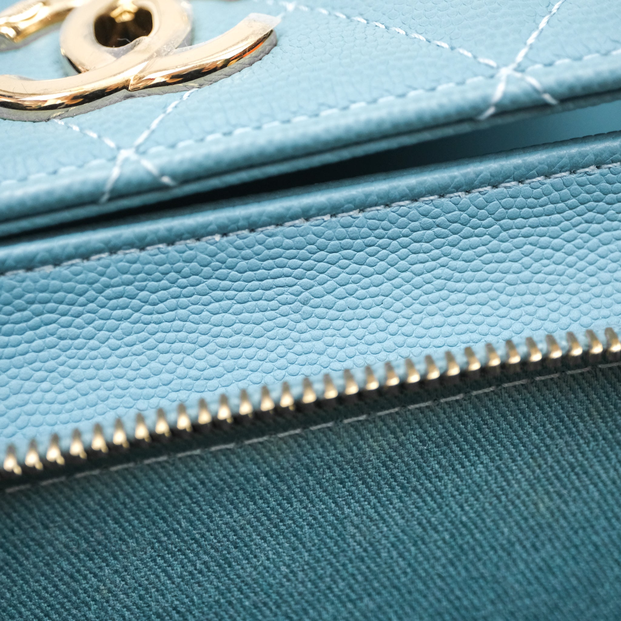 Chanel Small Quilted Business Affinity Flap Caviar Blue Gold Hardware