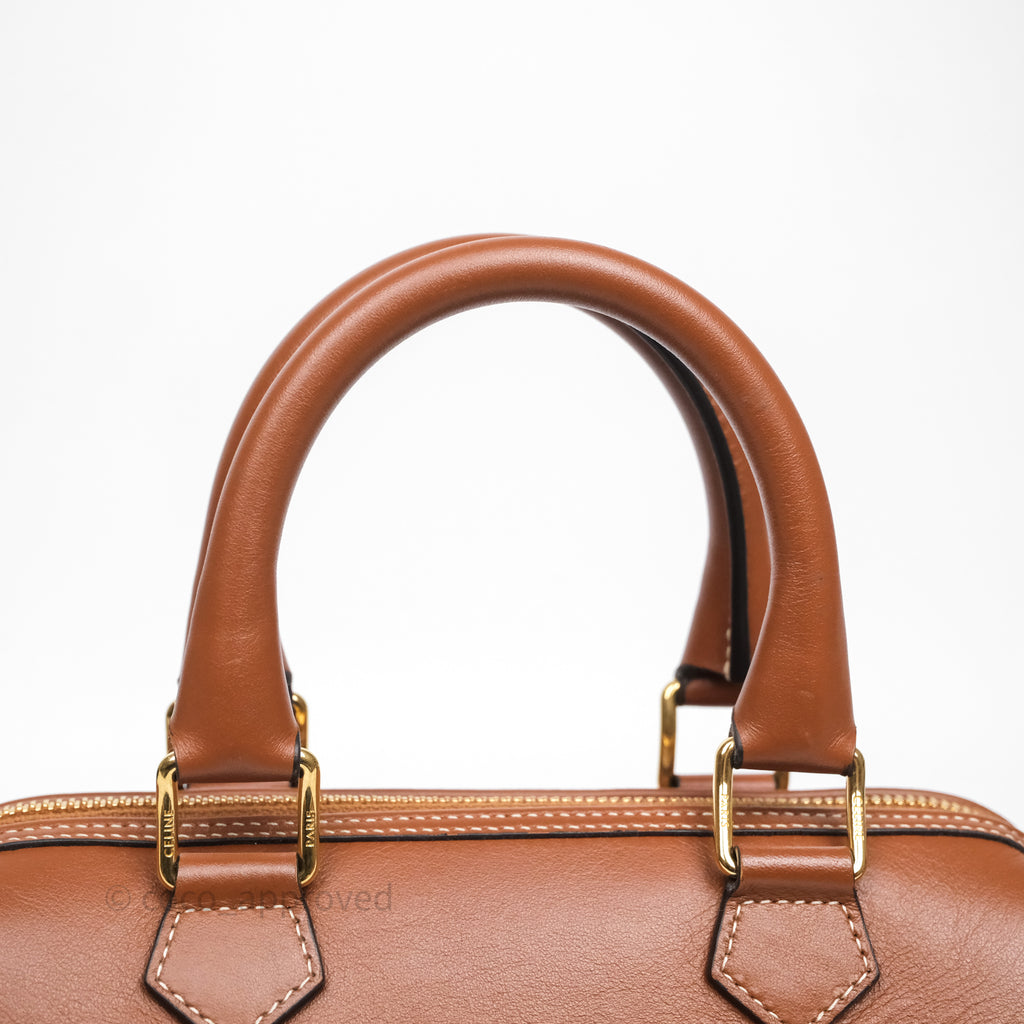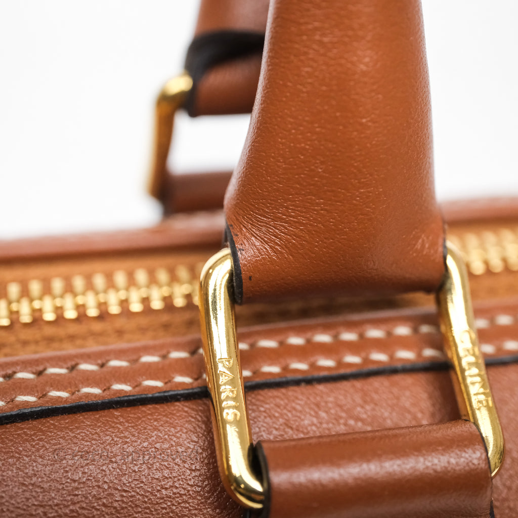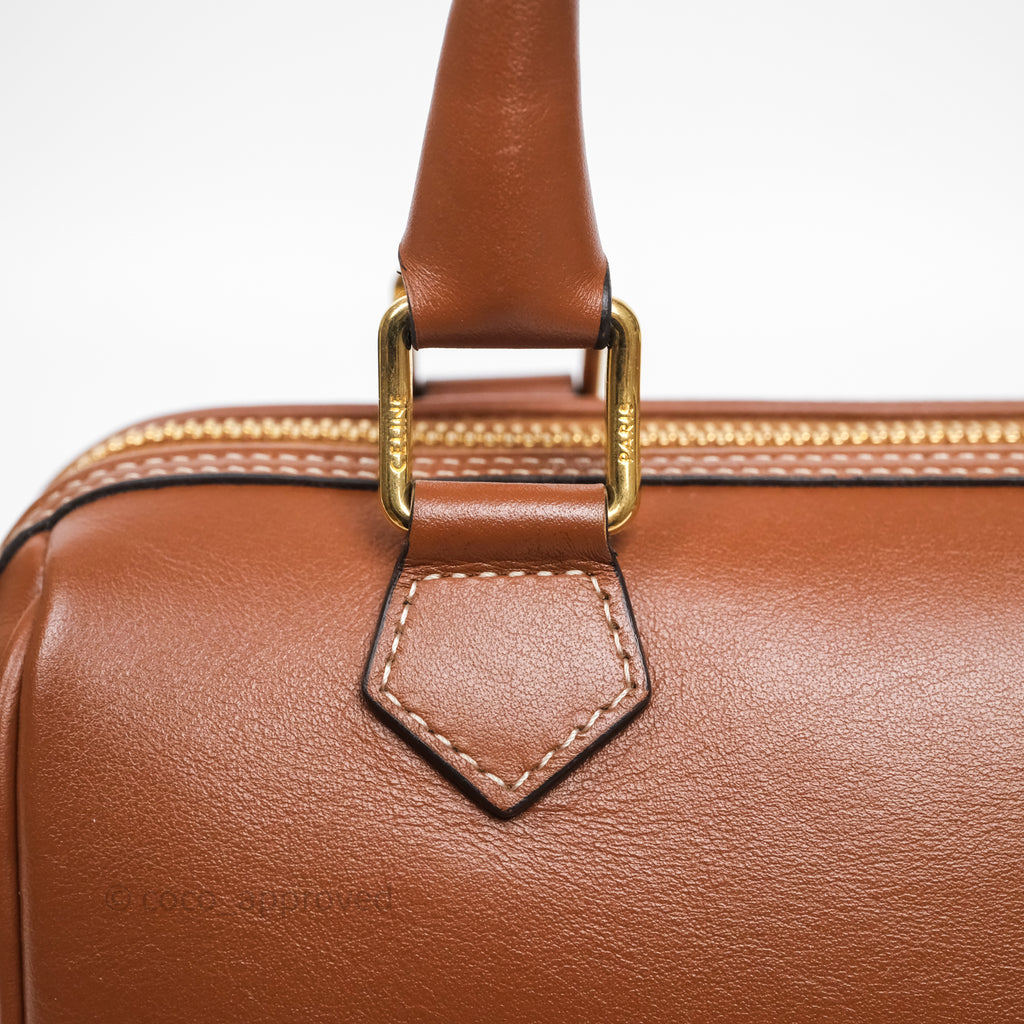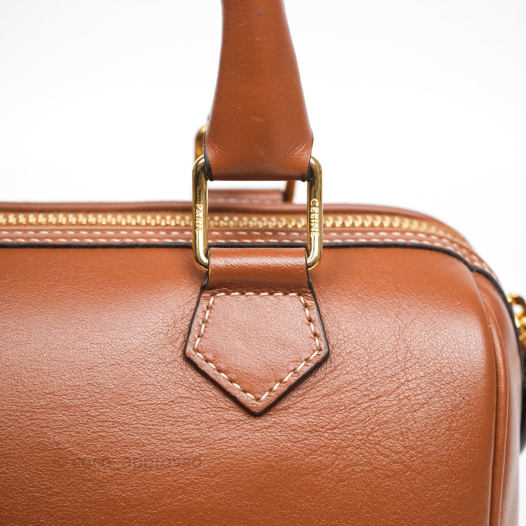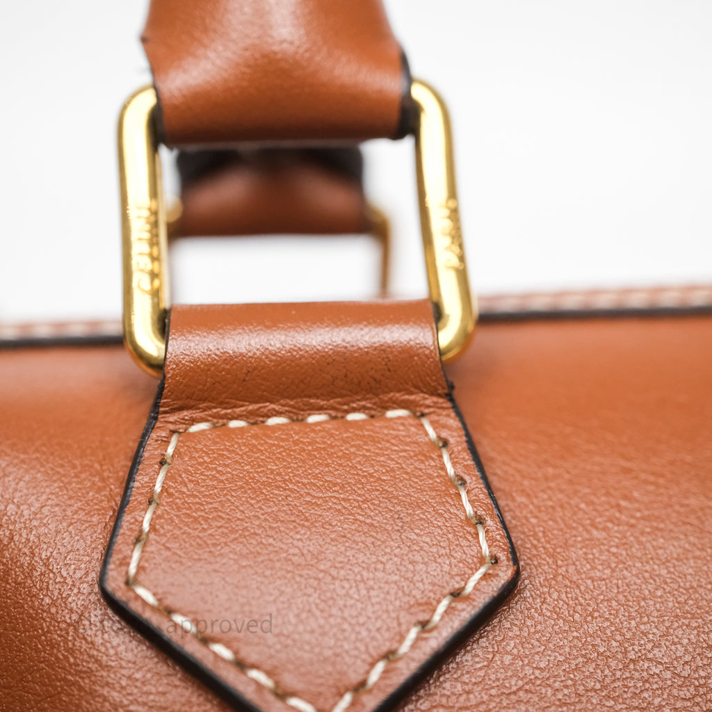 Celine Small Boston Bag Tan Calfskin Gold Hardware