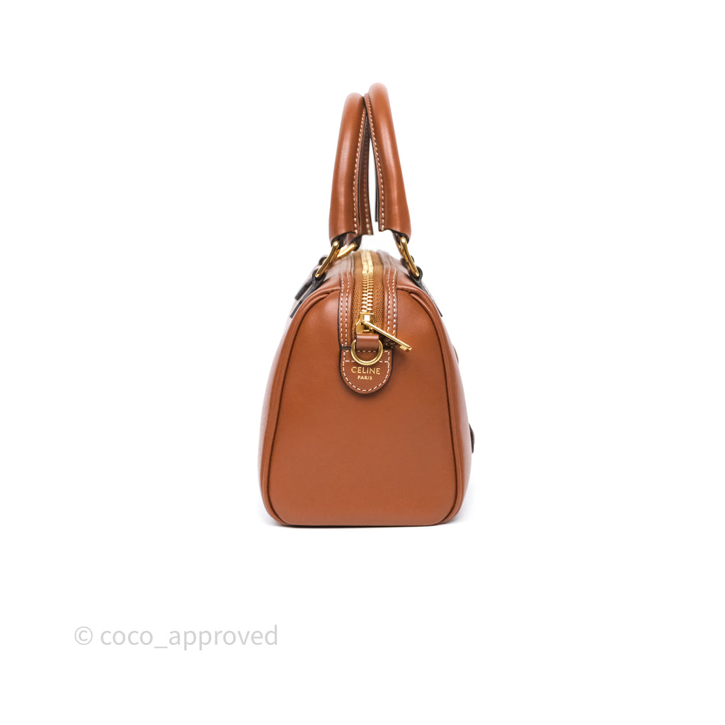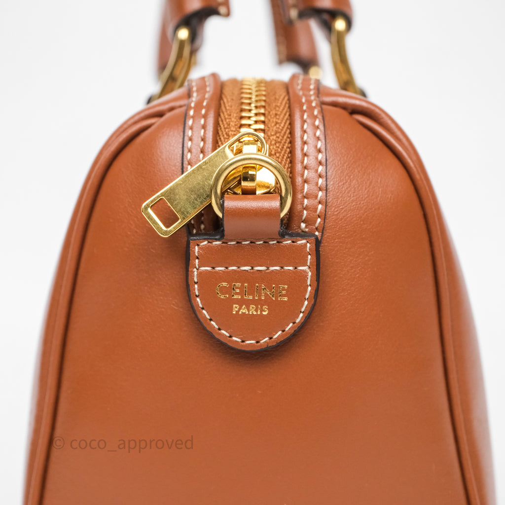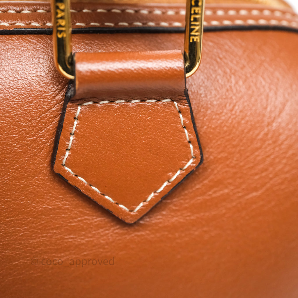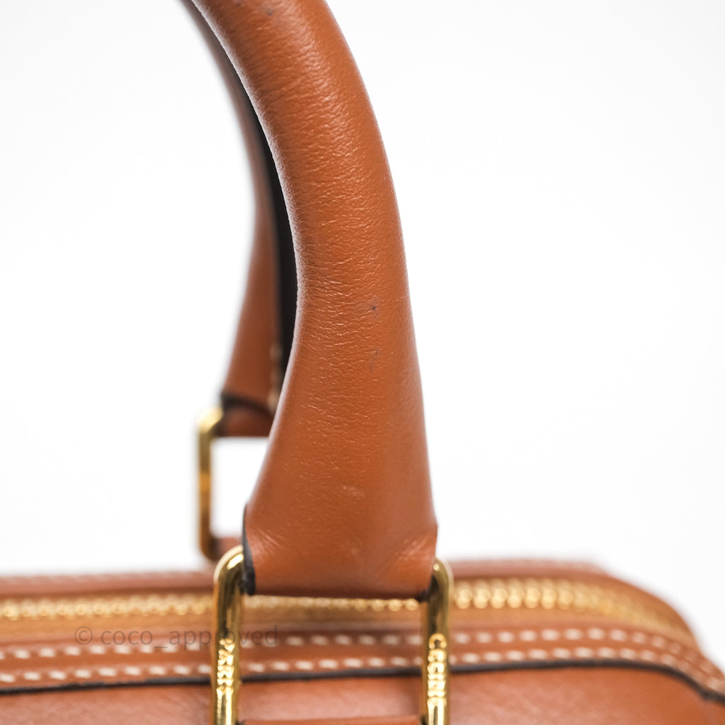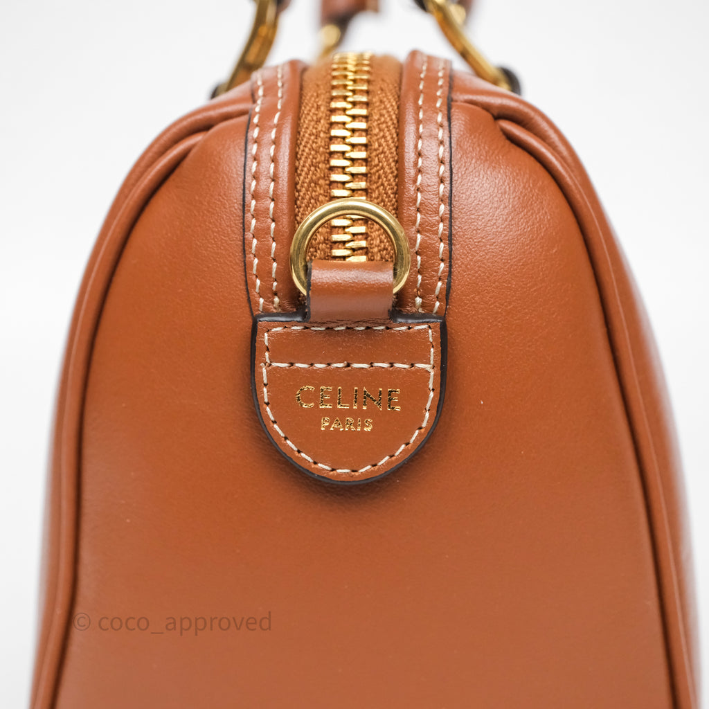 Celine Small Boston Bag Tan Calfskin Gold Hardware