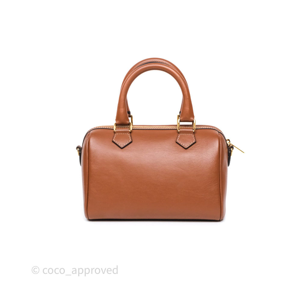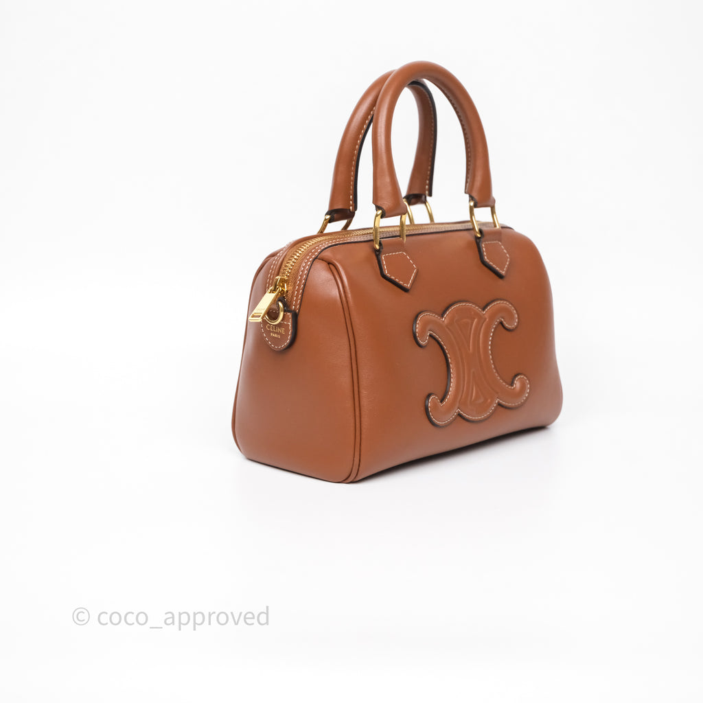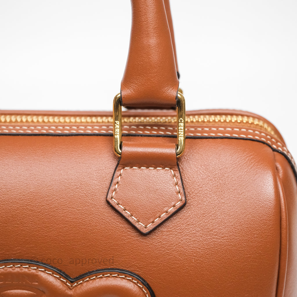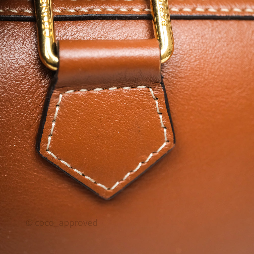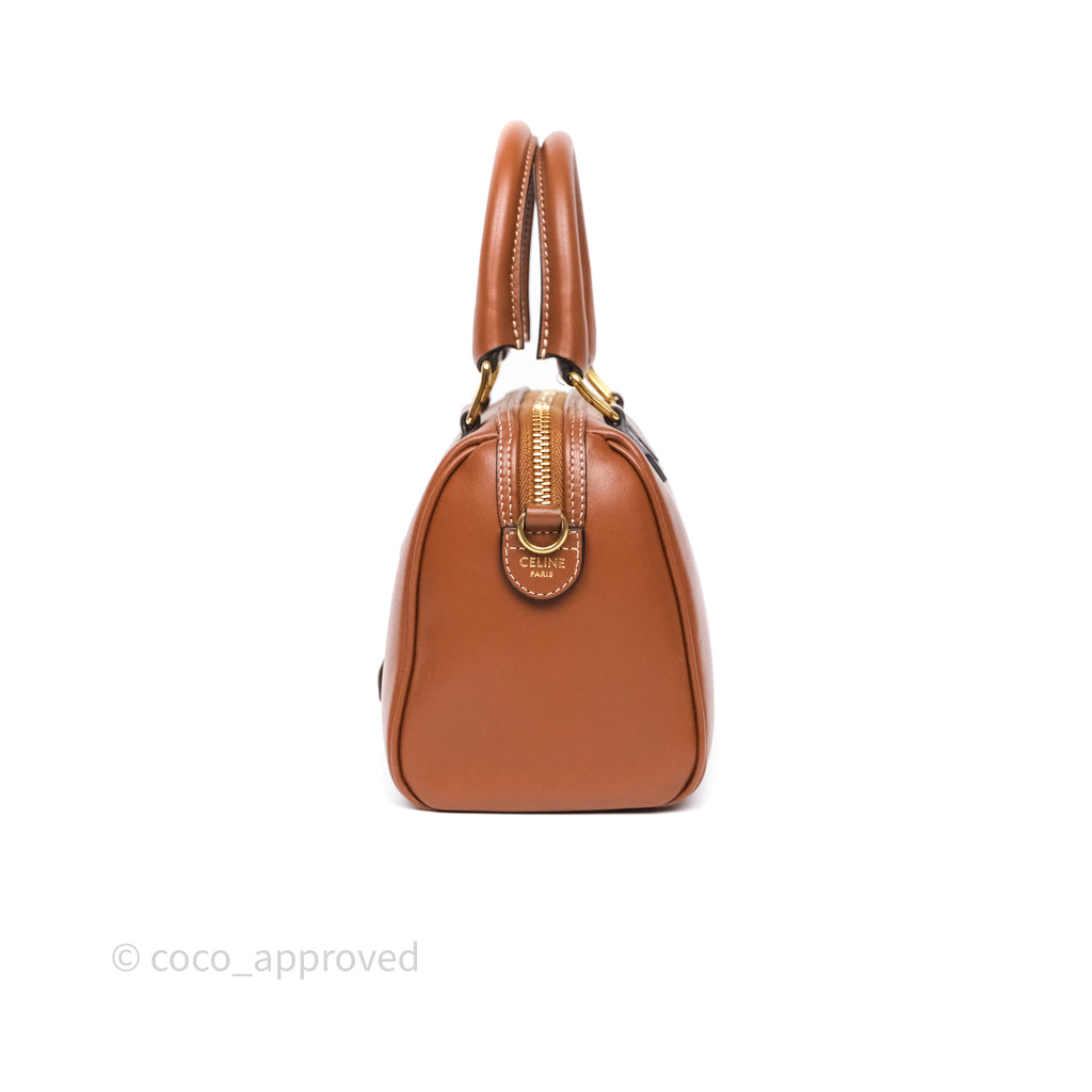 Celine Small Boston Bag Tan Calfskin Gold Hardware