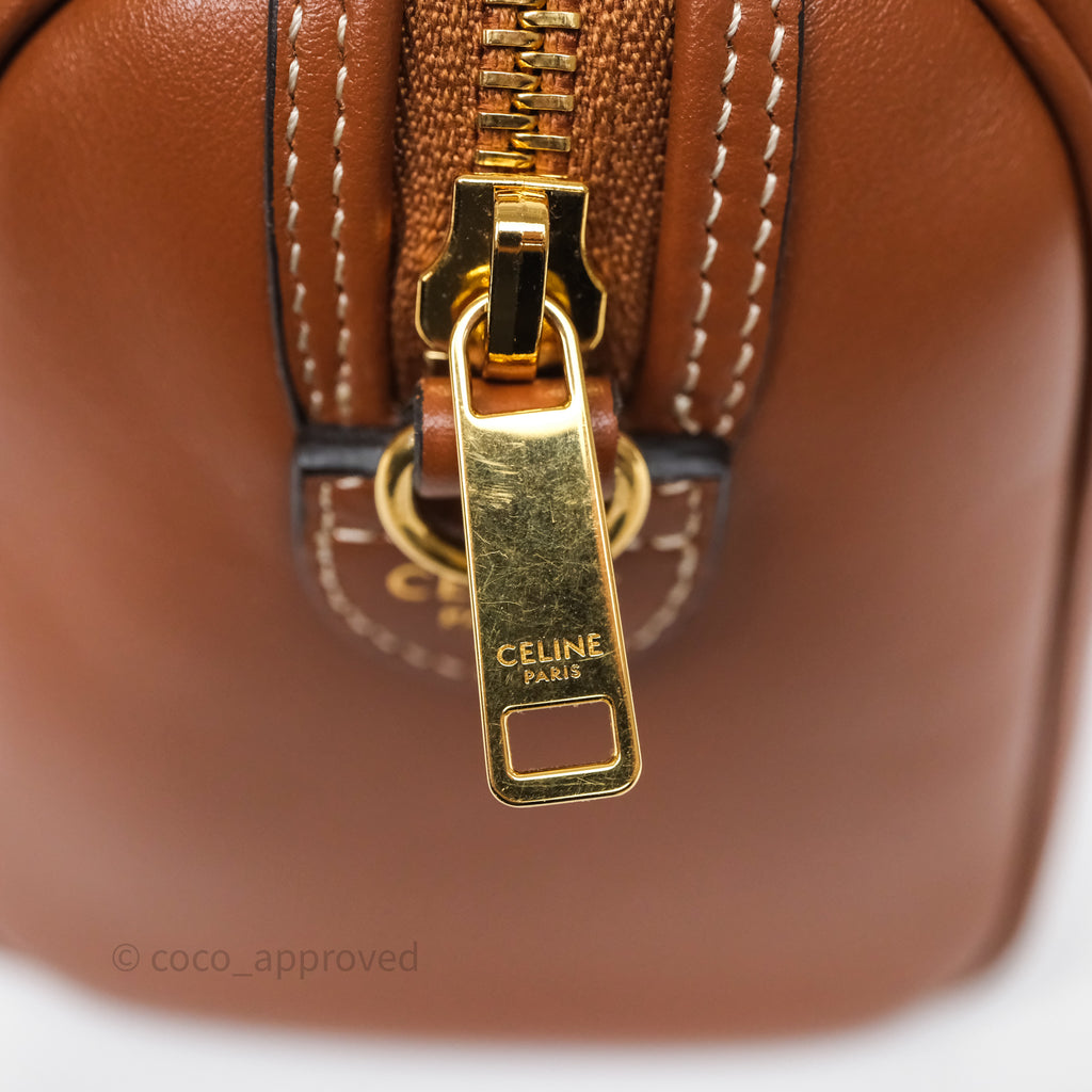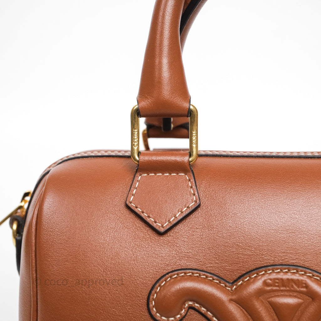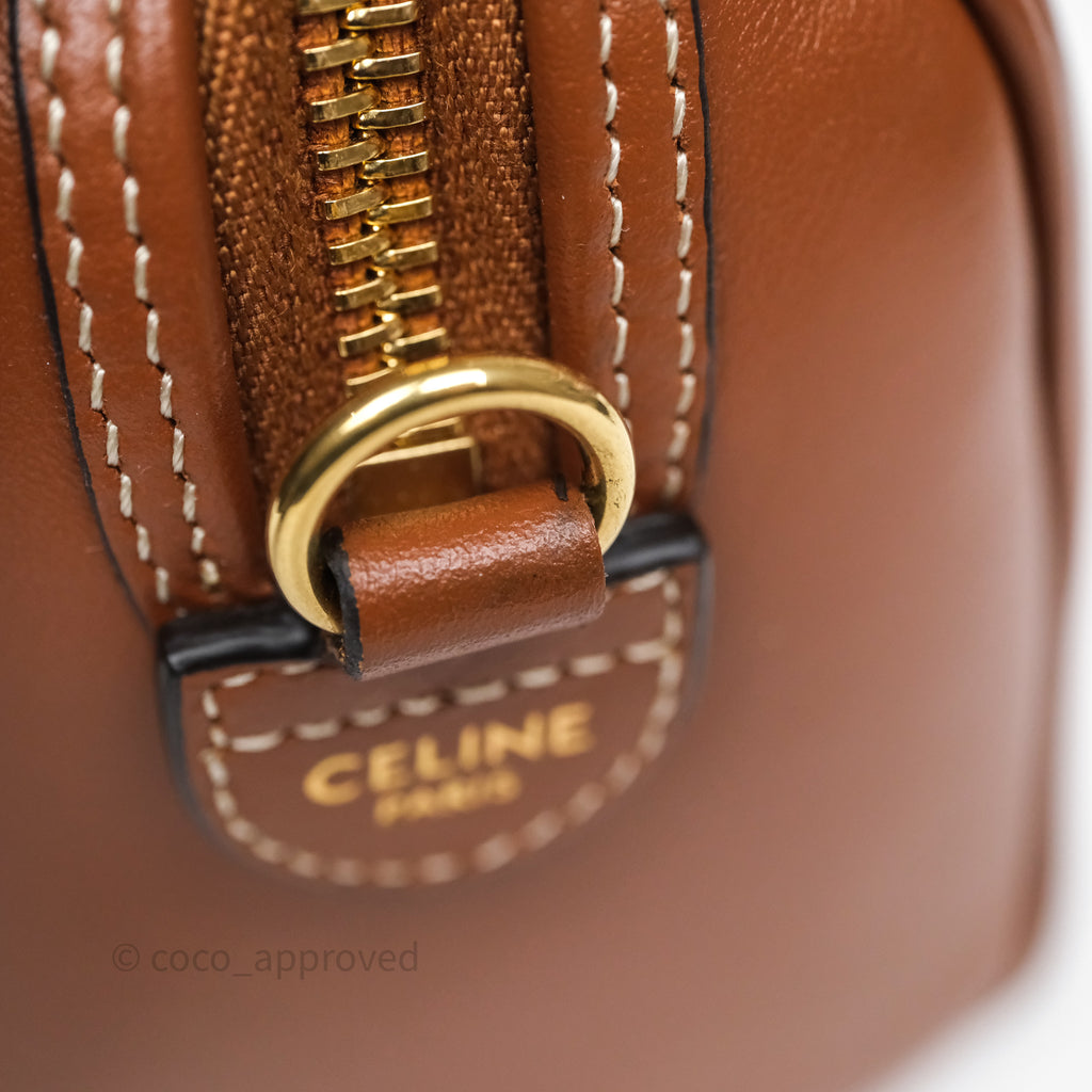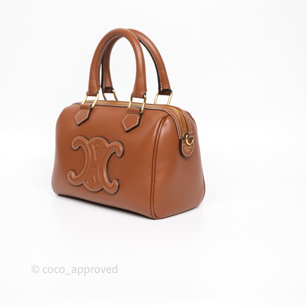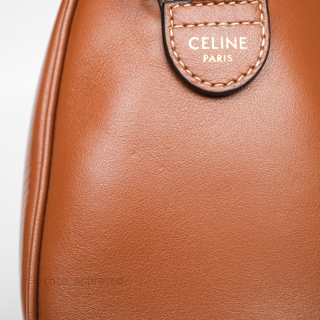 Celine Small Boston Bag Tan Calfskin Gold Hardware