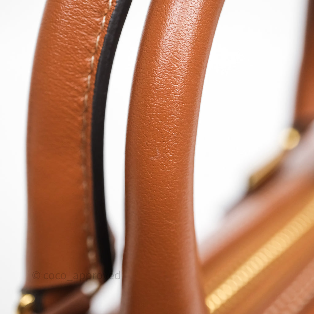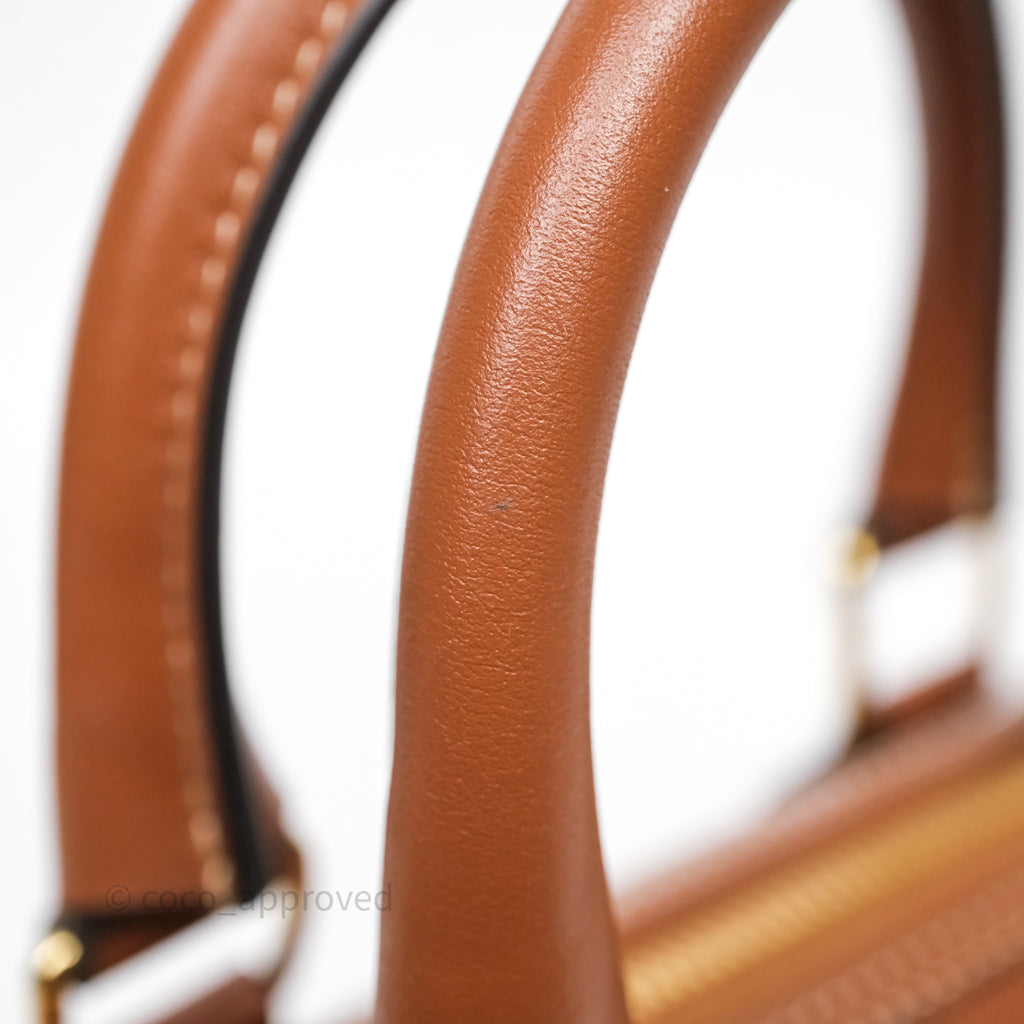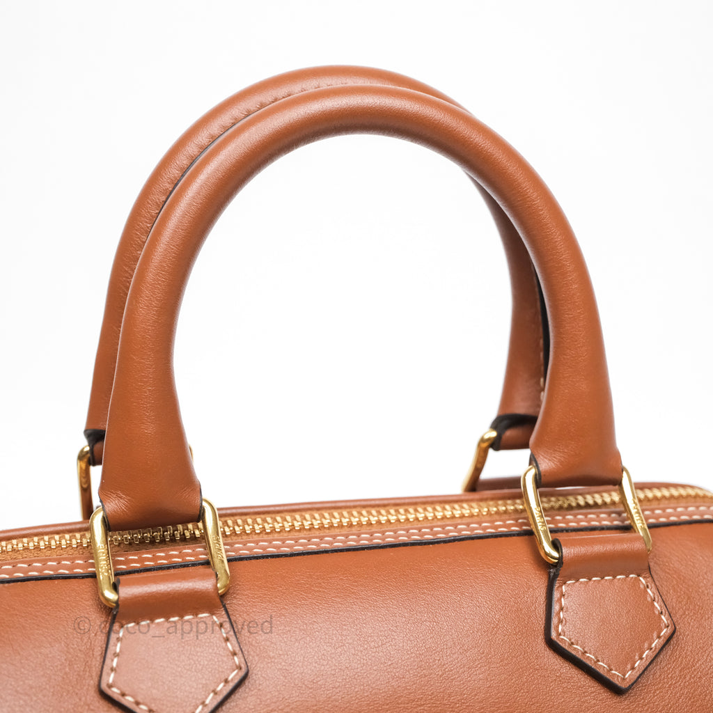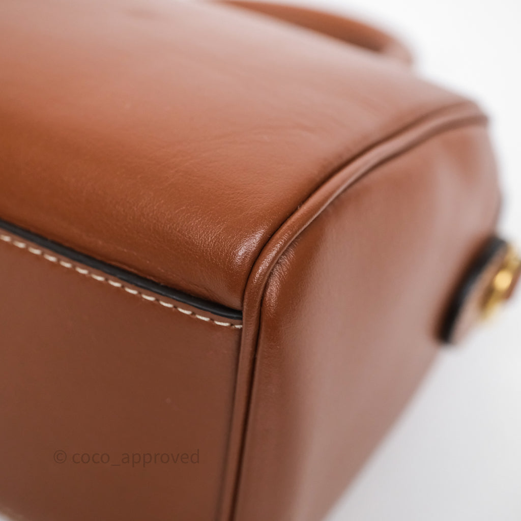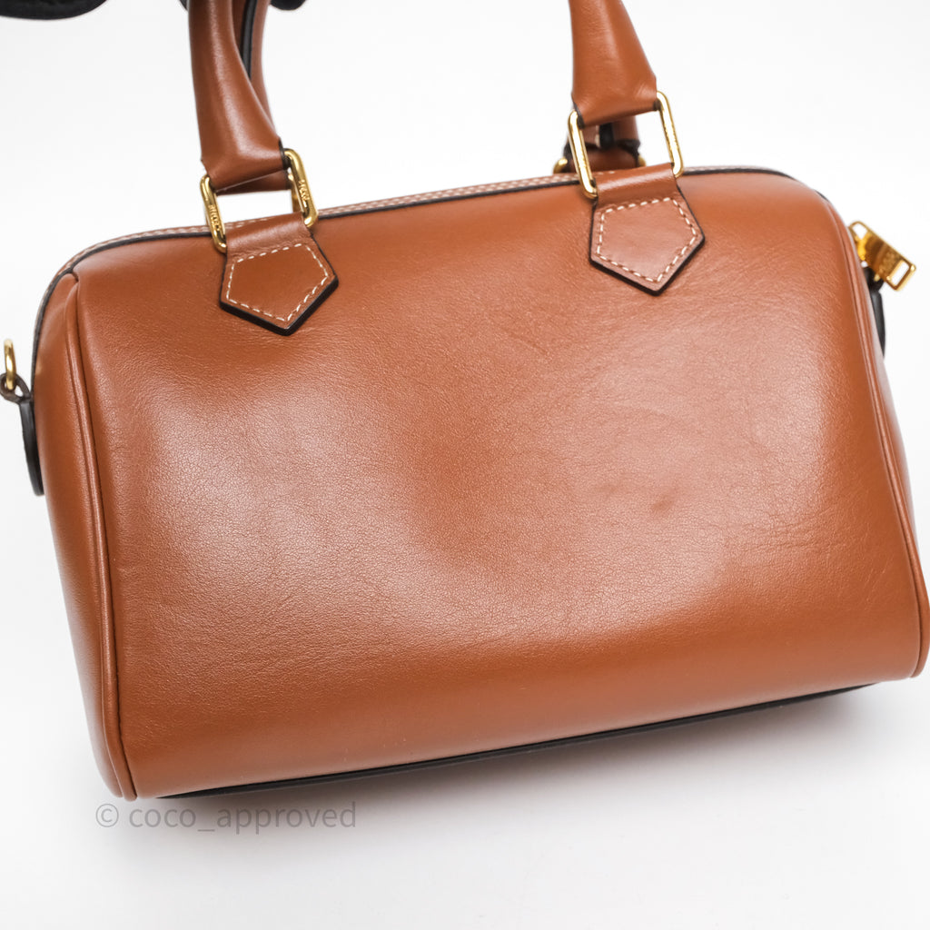 Celine Small Boston Bag Tan Calfskin Gold Hardware