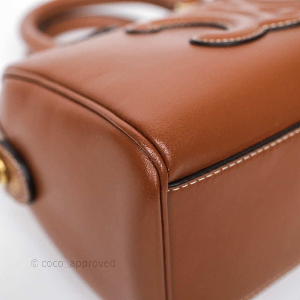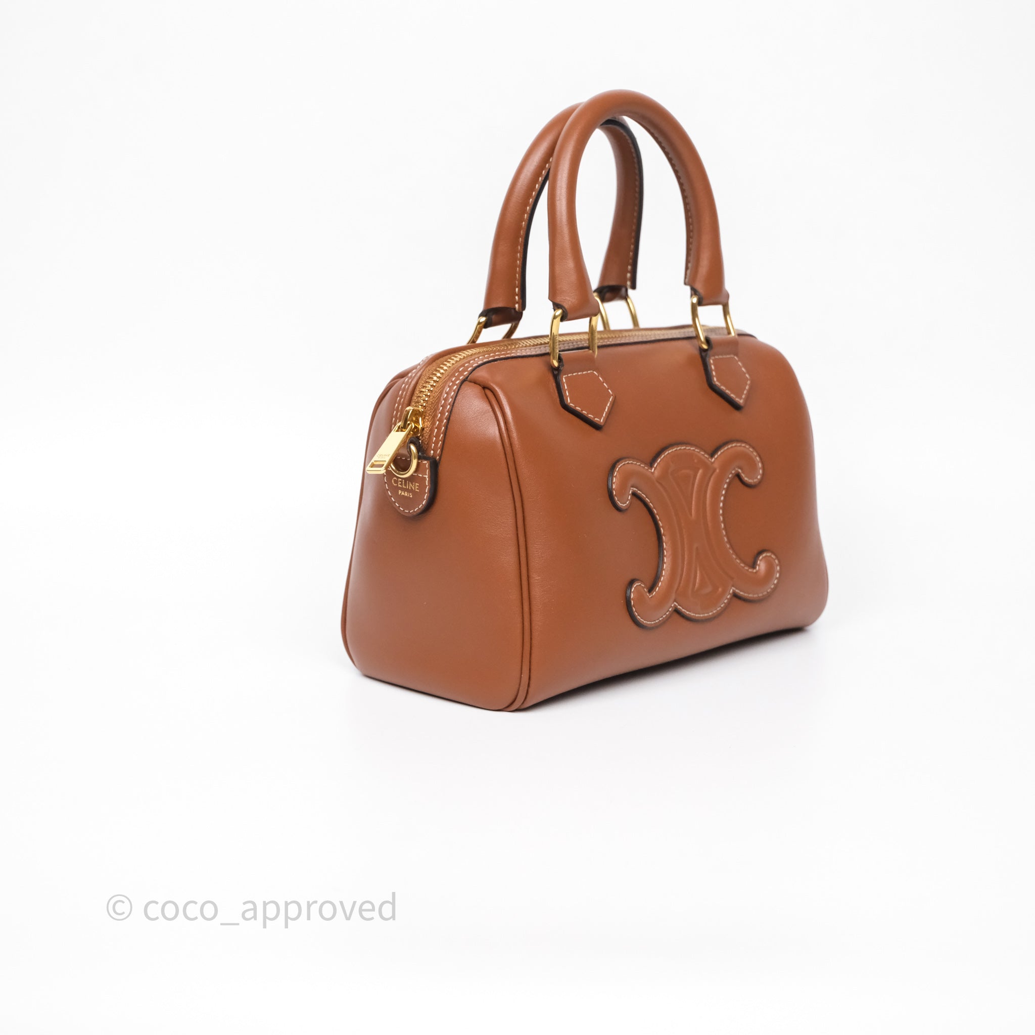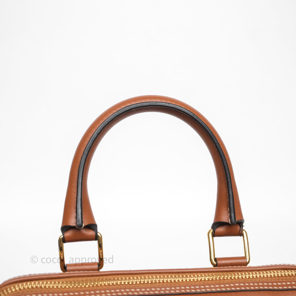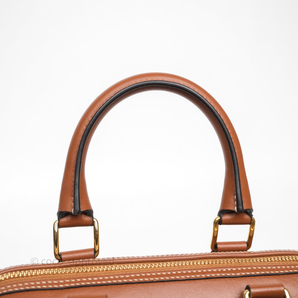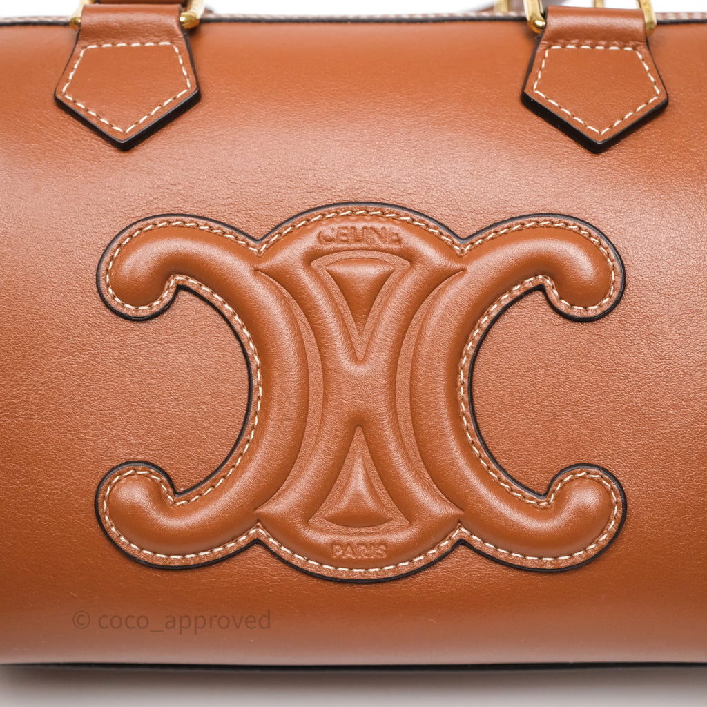 Celine Small Boston Bag Tan Calfskin Gold Hardware