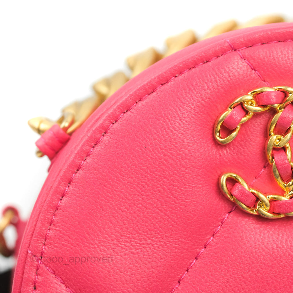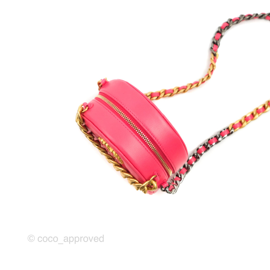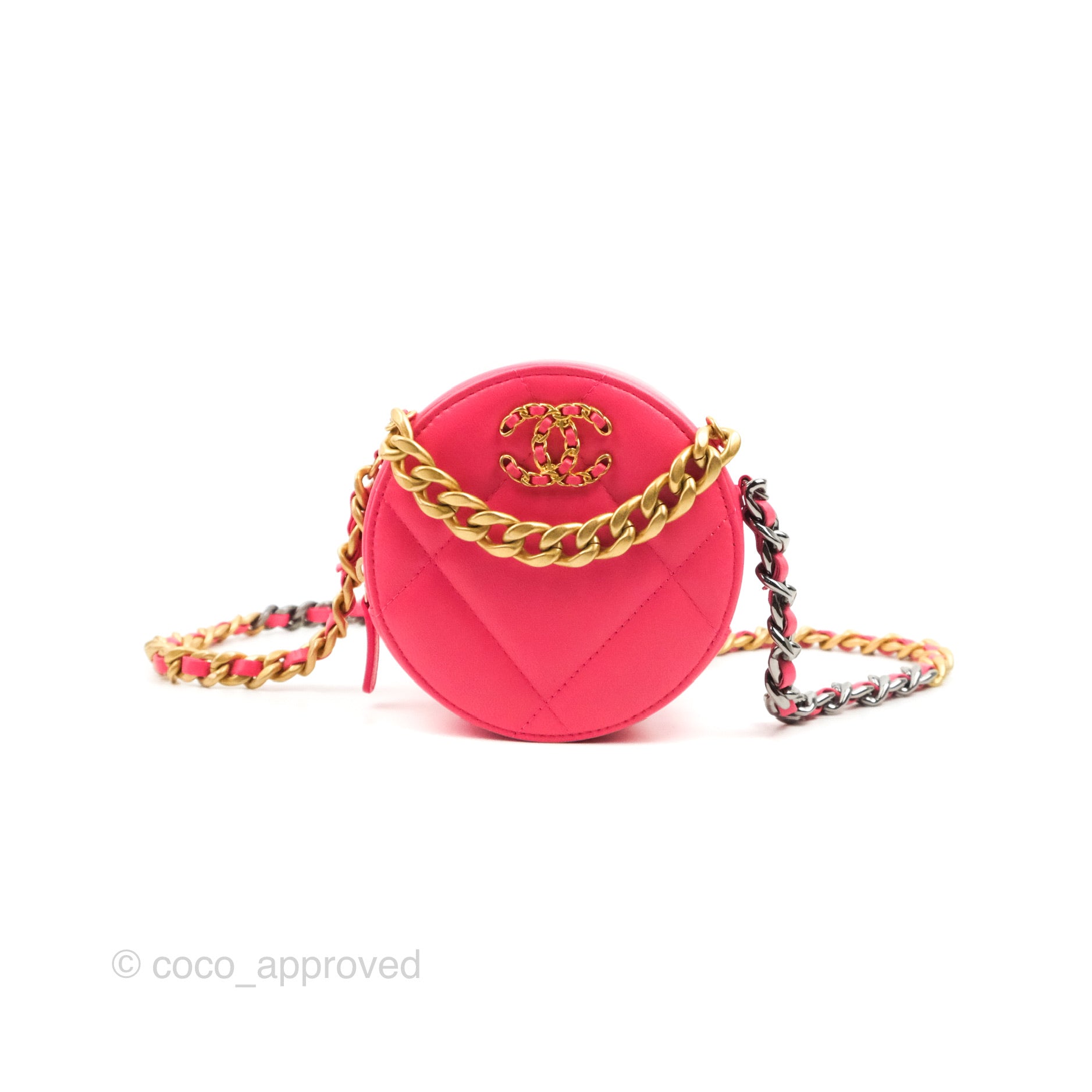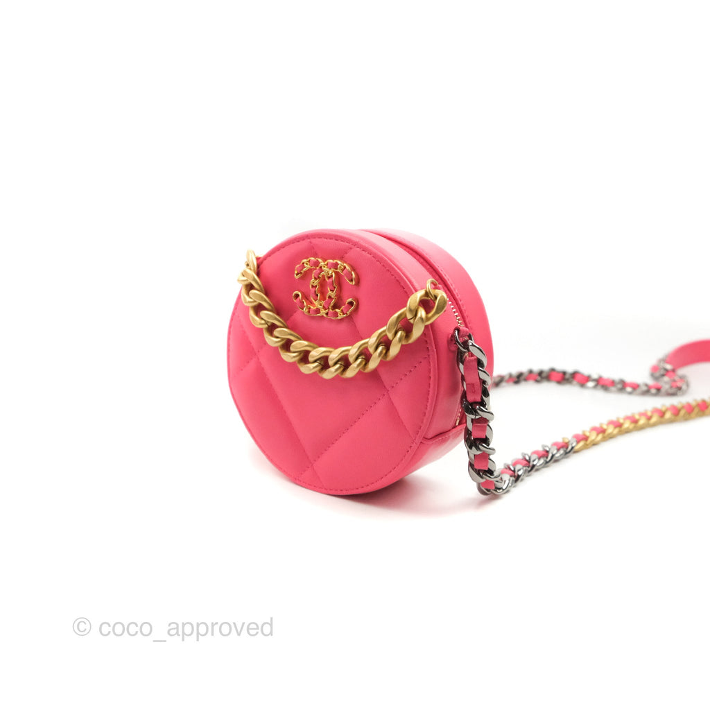 Chanel 19 Round Clutch With Chain Dark Pink Mixed Hardware