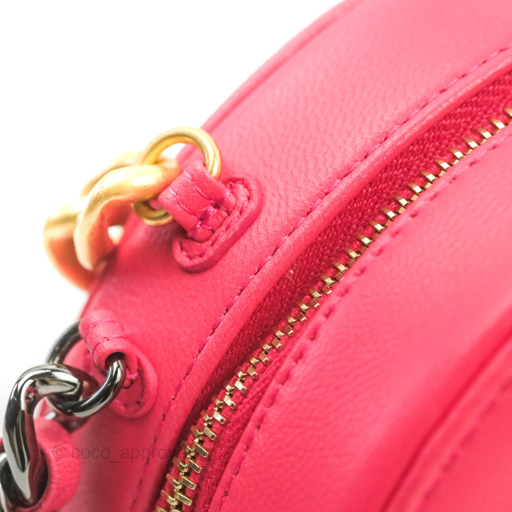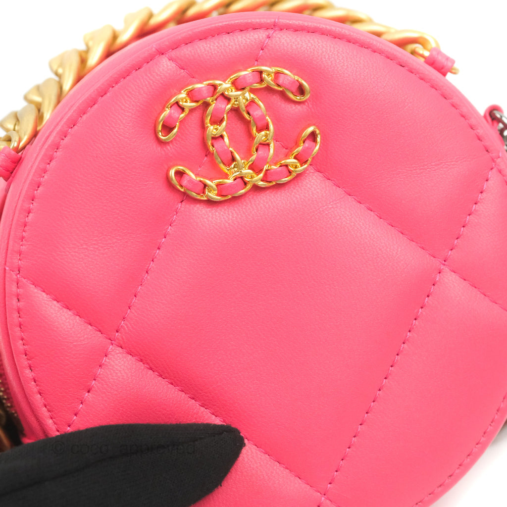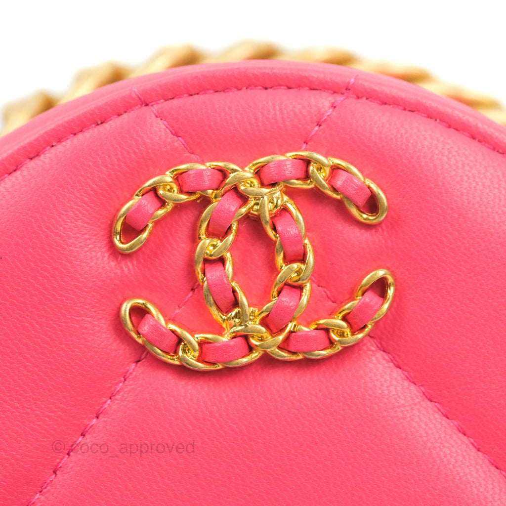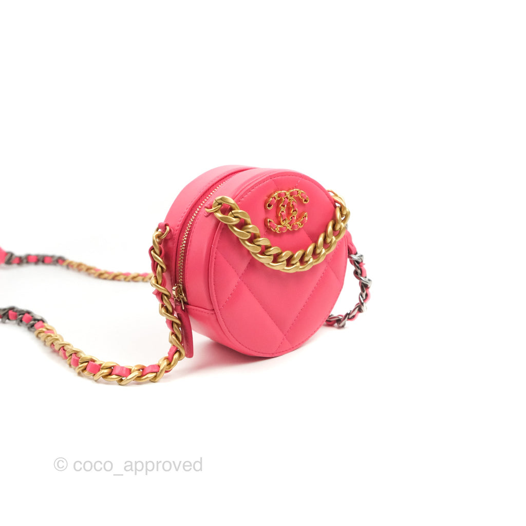 Chanel 19 Round Clutch With Chain Dark Pink Mixed Hardware