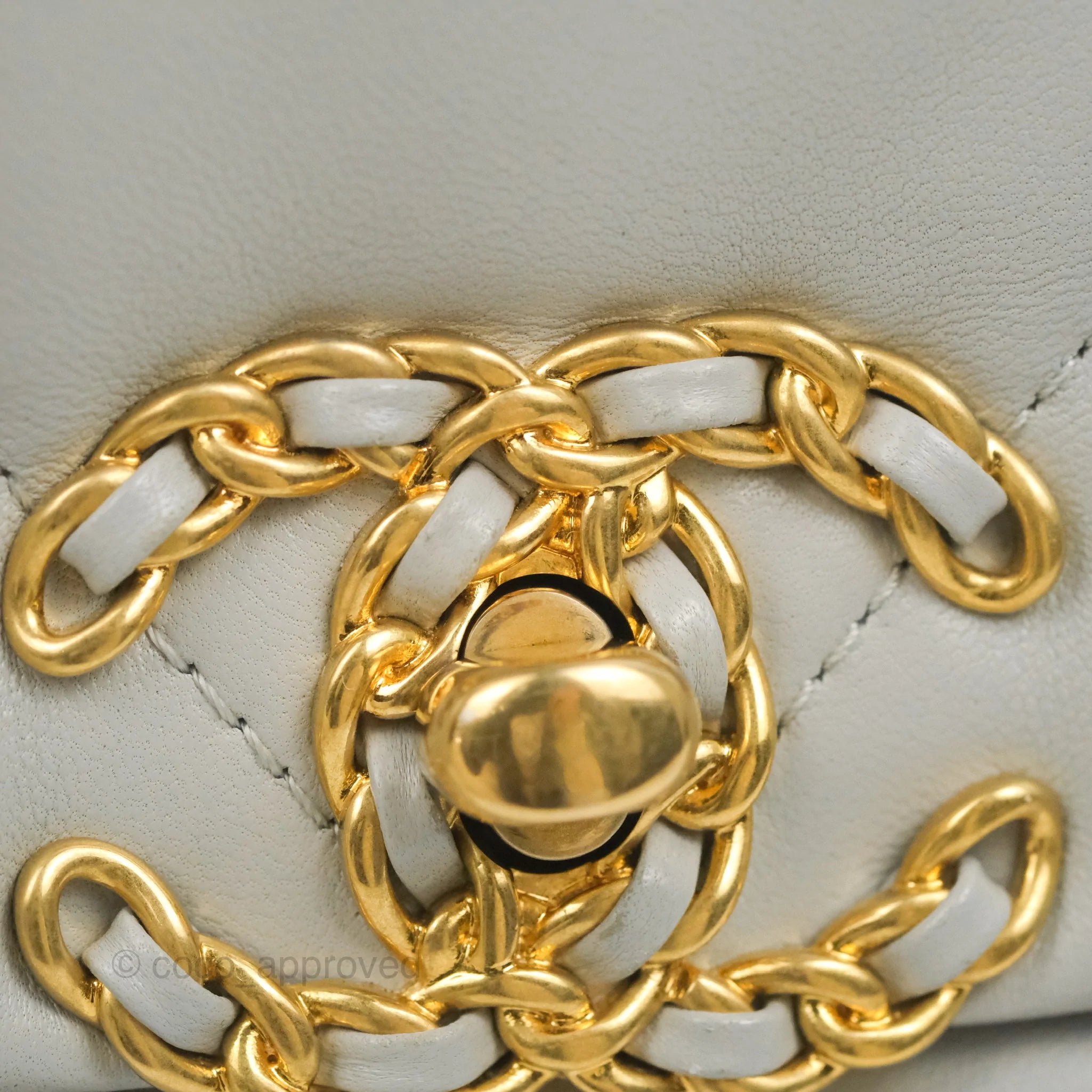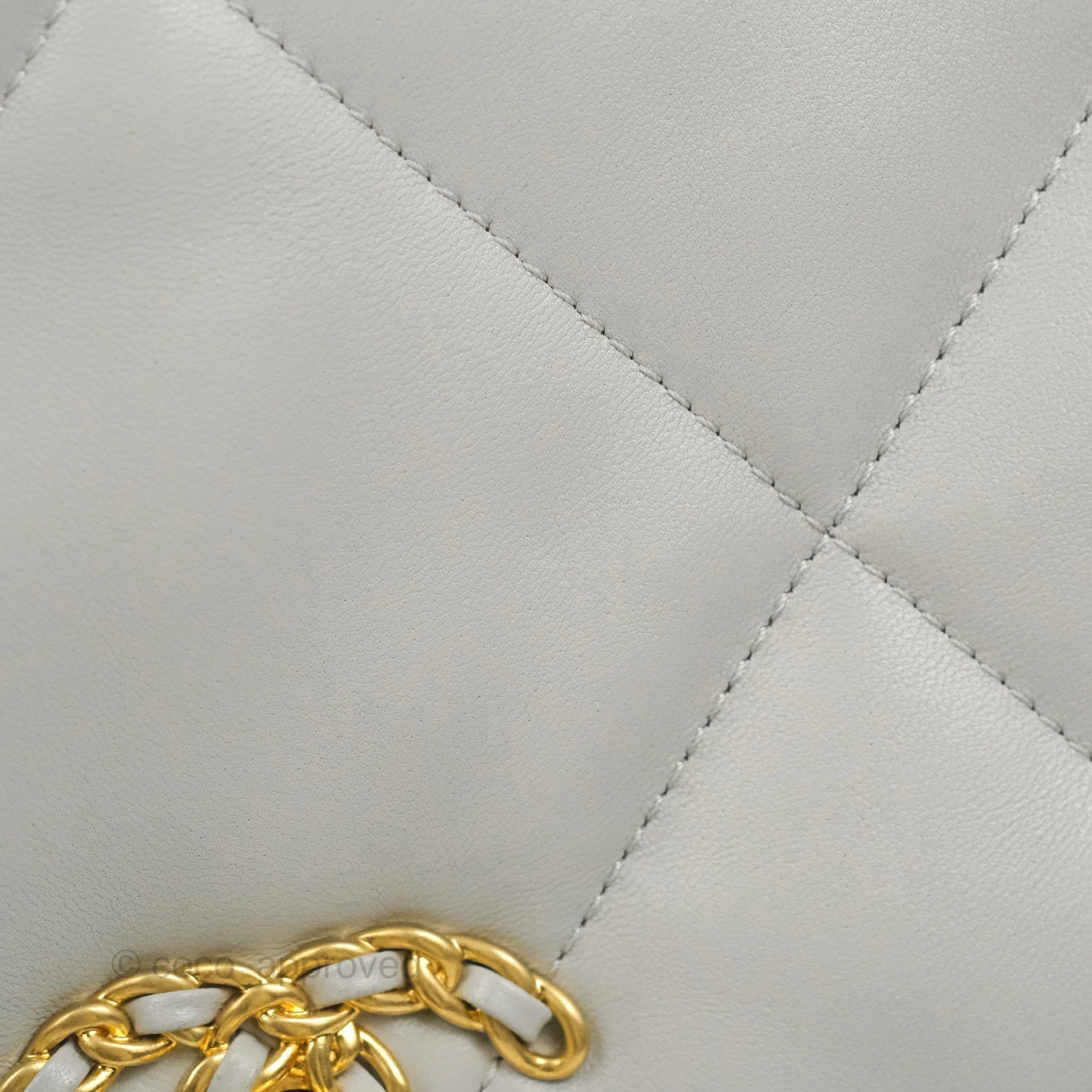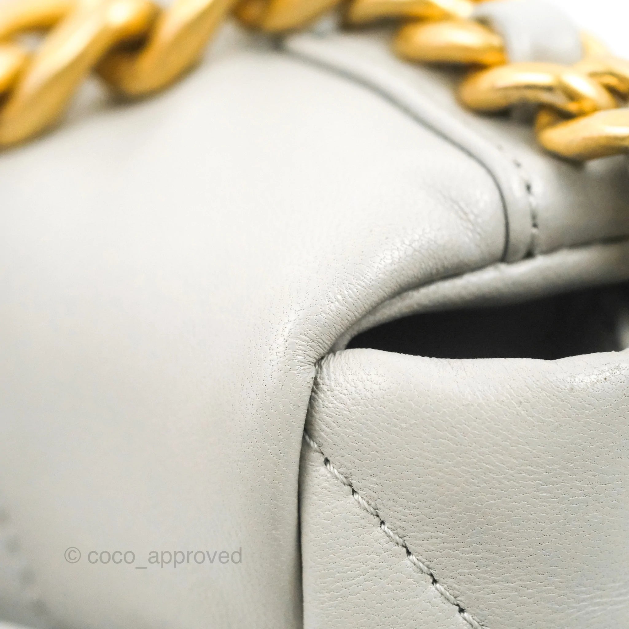 9.5/10 mint condition. Minor mark on interior. Minor scratches under the flap and back. Tiny rubbing on front left corner and CC lock leather. Minor darkening on flap corners.