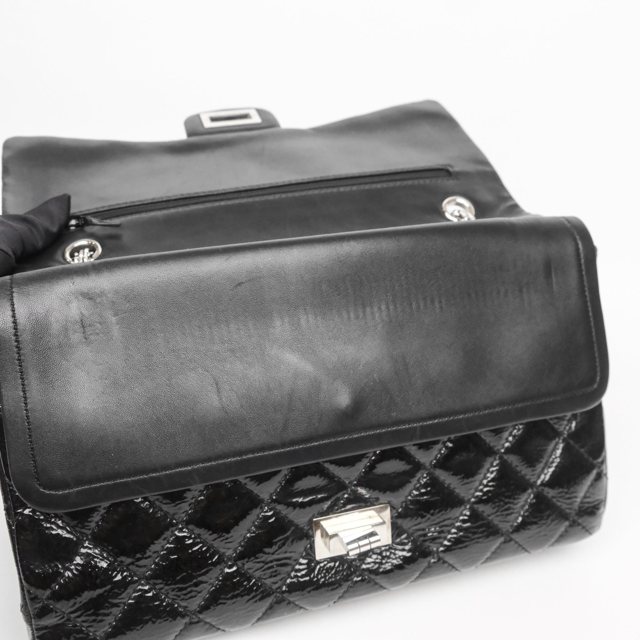 Chanel 2.55 Reissue Glazed Calfskin So Black 227 Silver Hardware