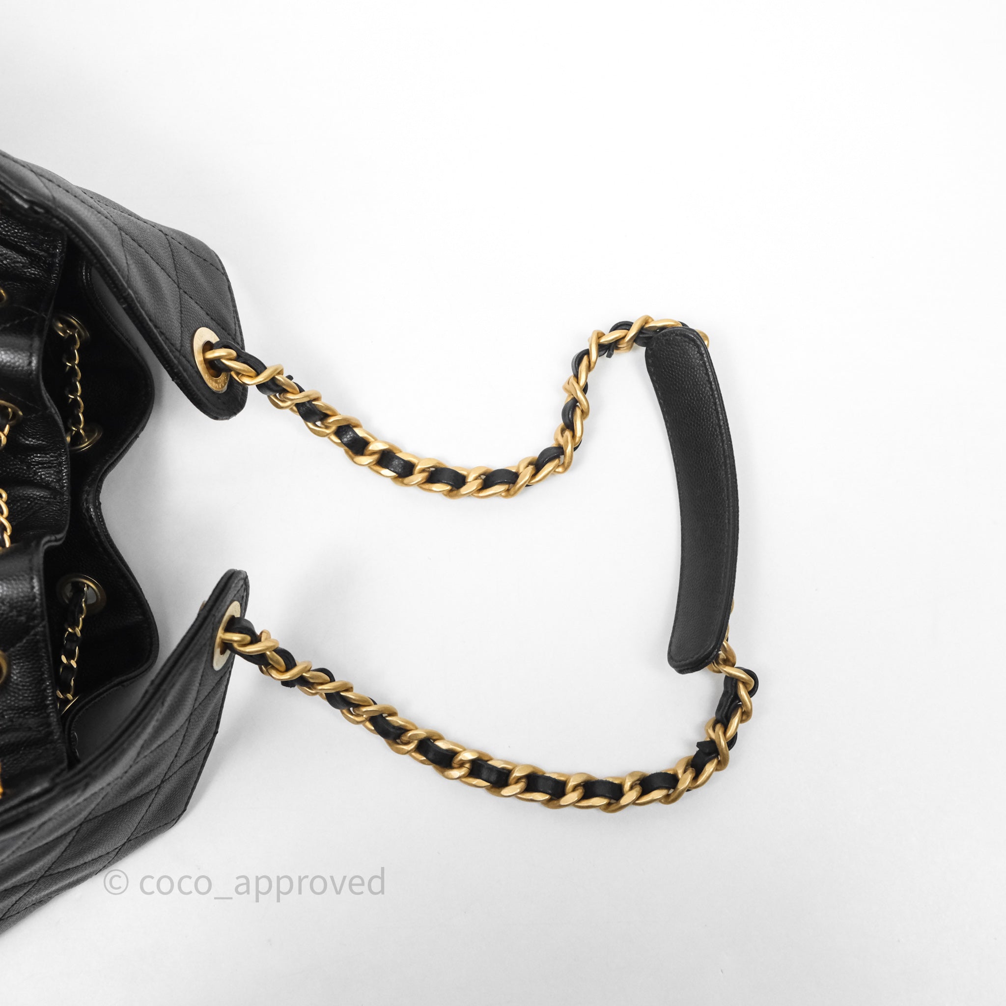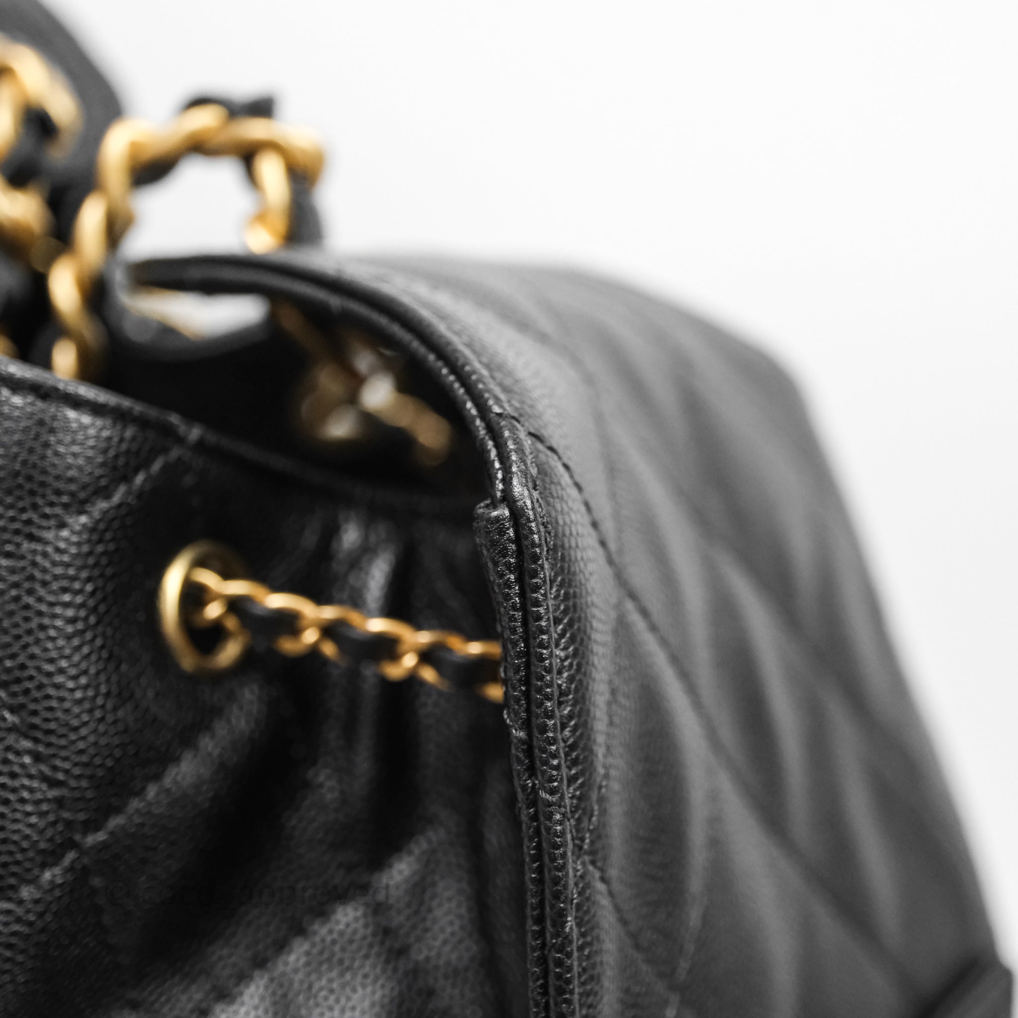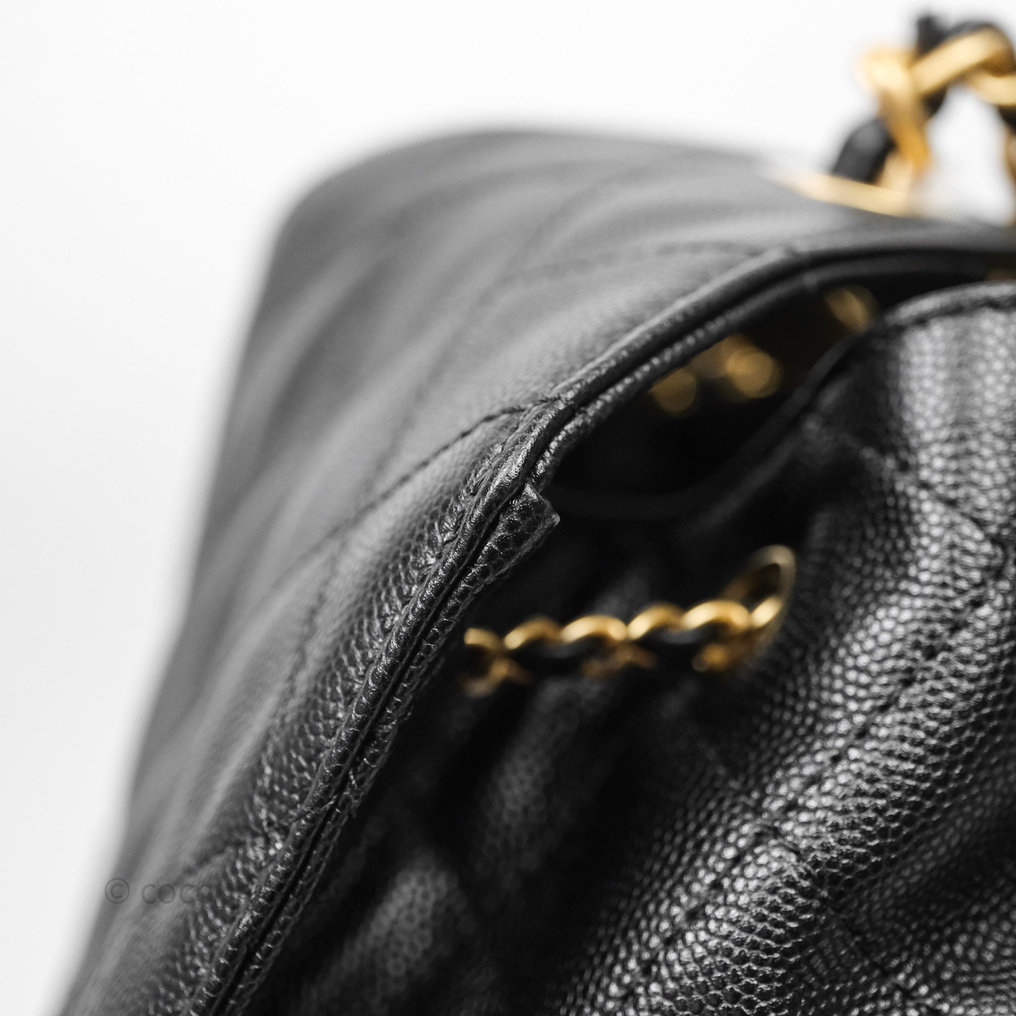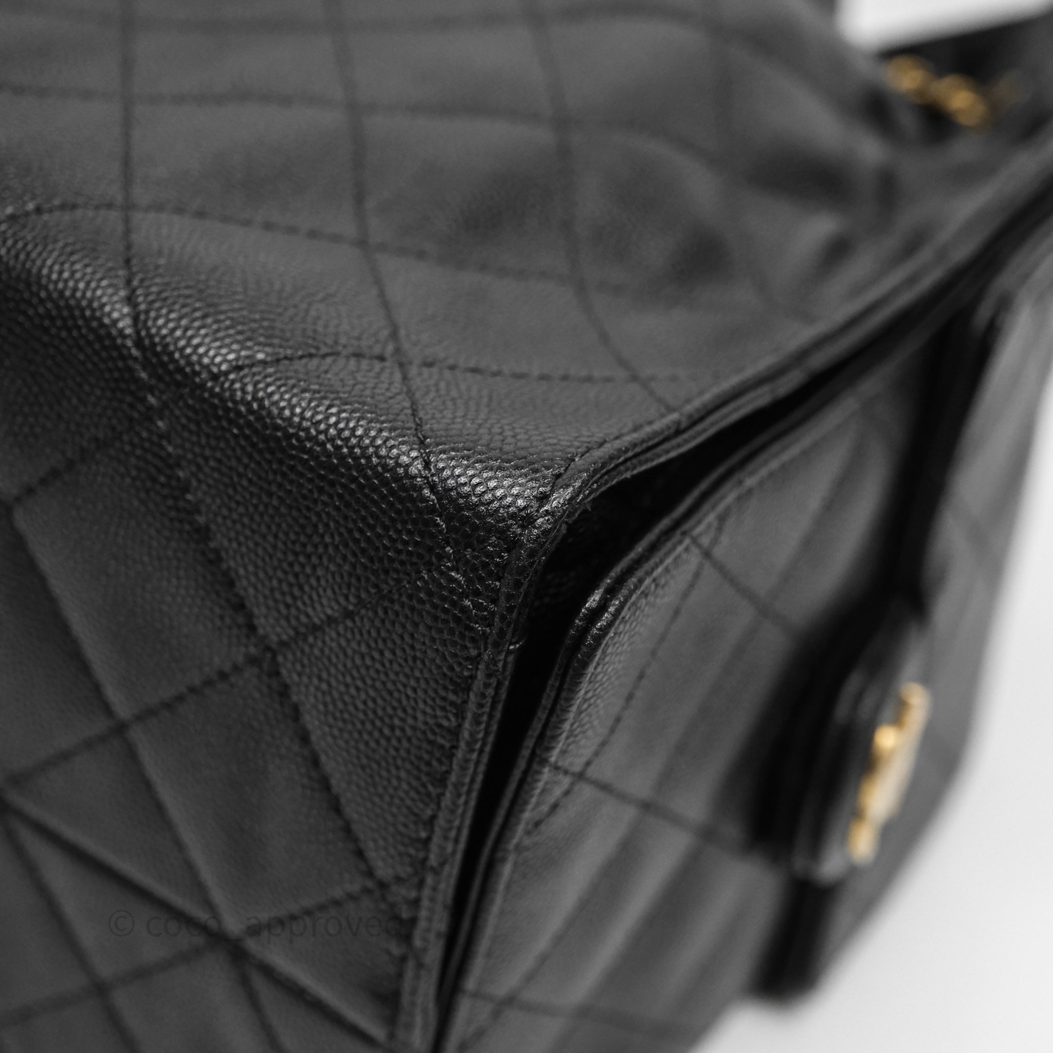 Chanel 25 Medium Black Caviar Aged Gold Hardware