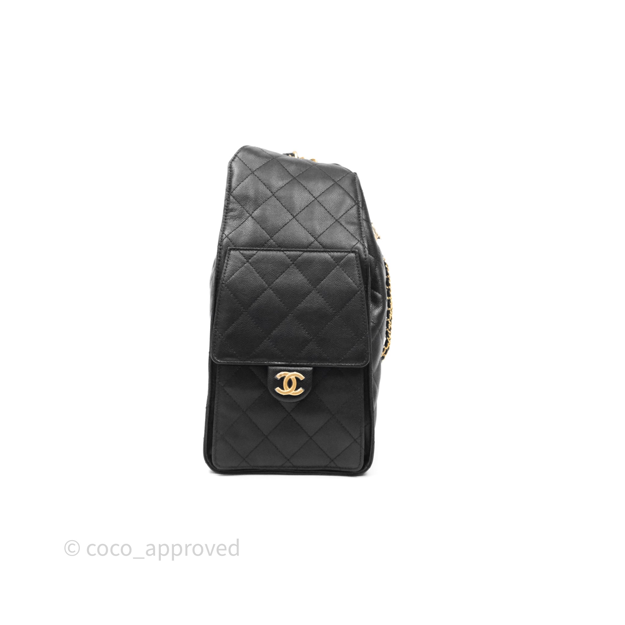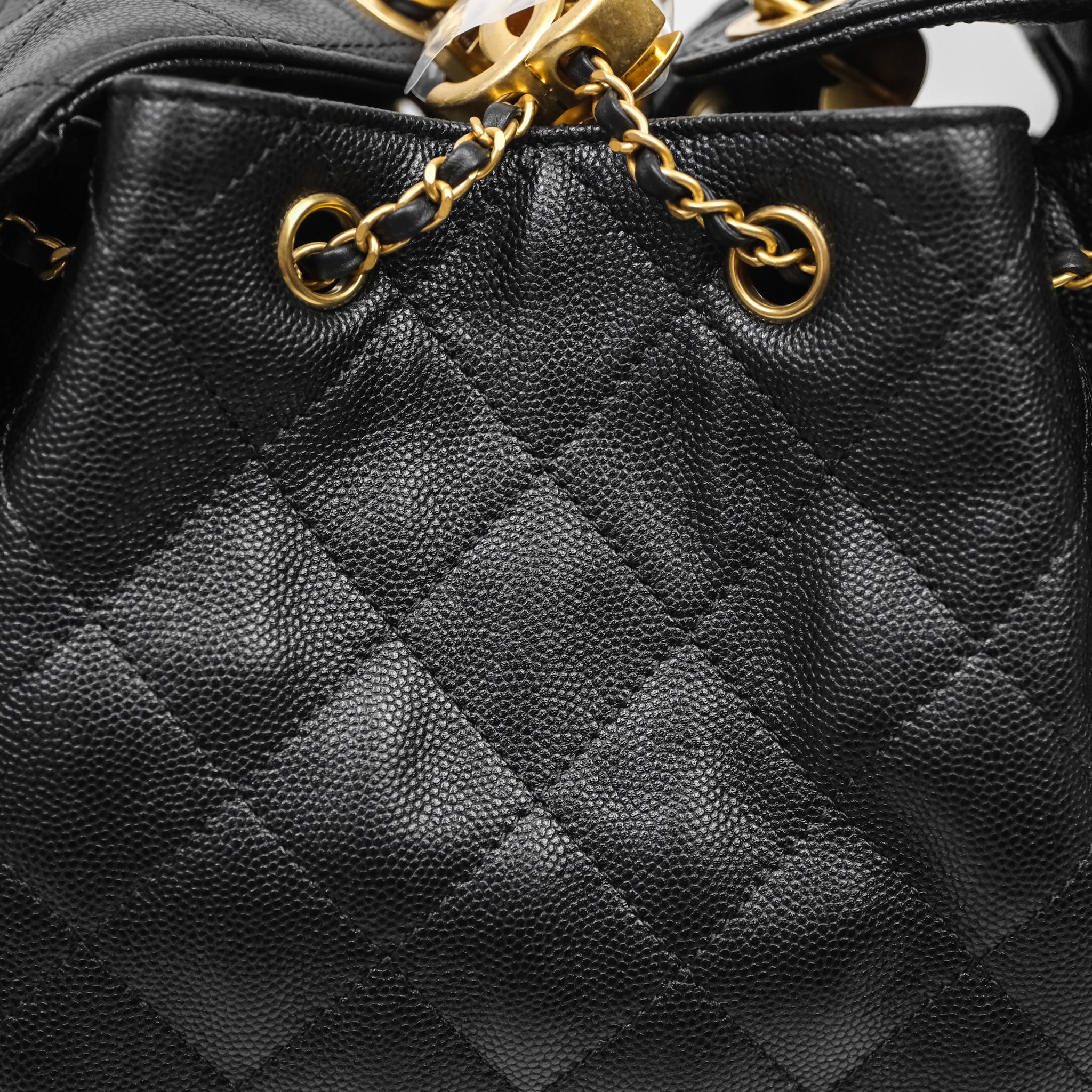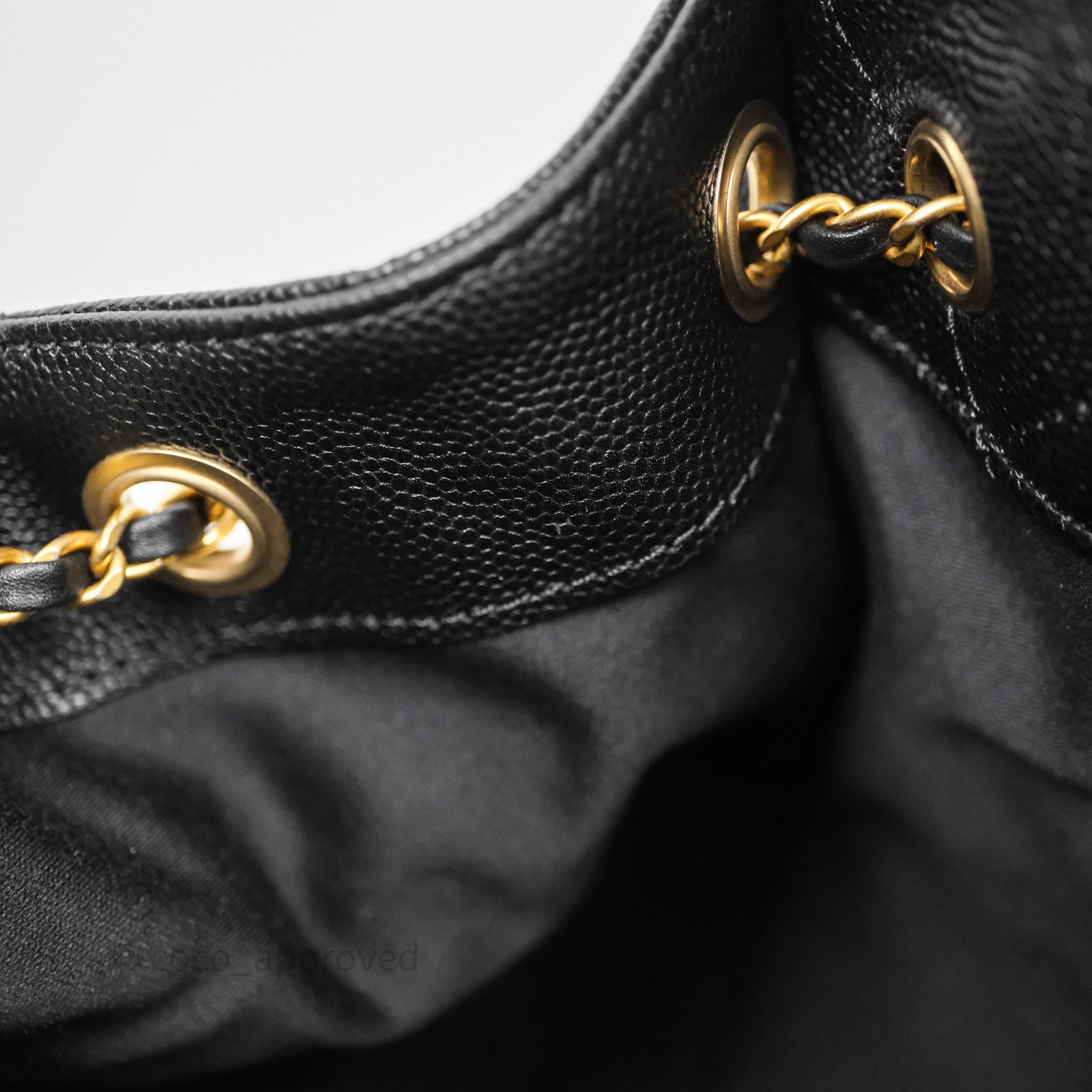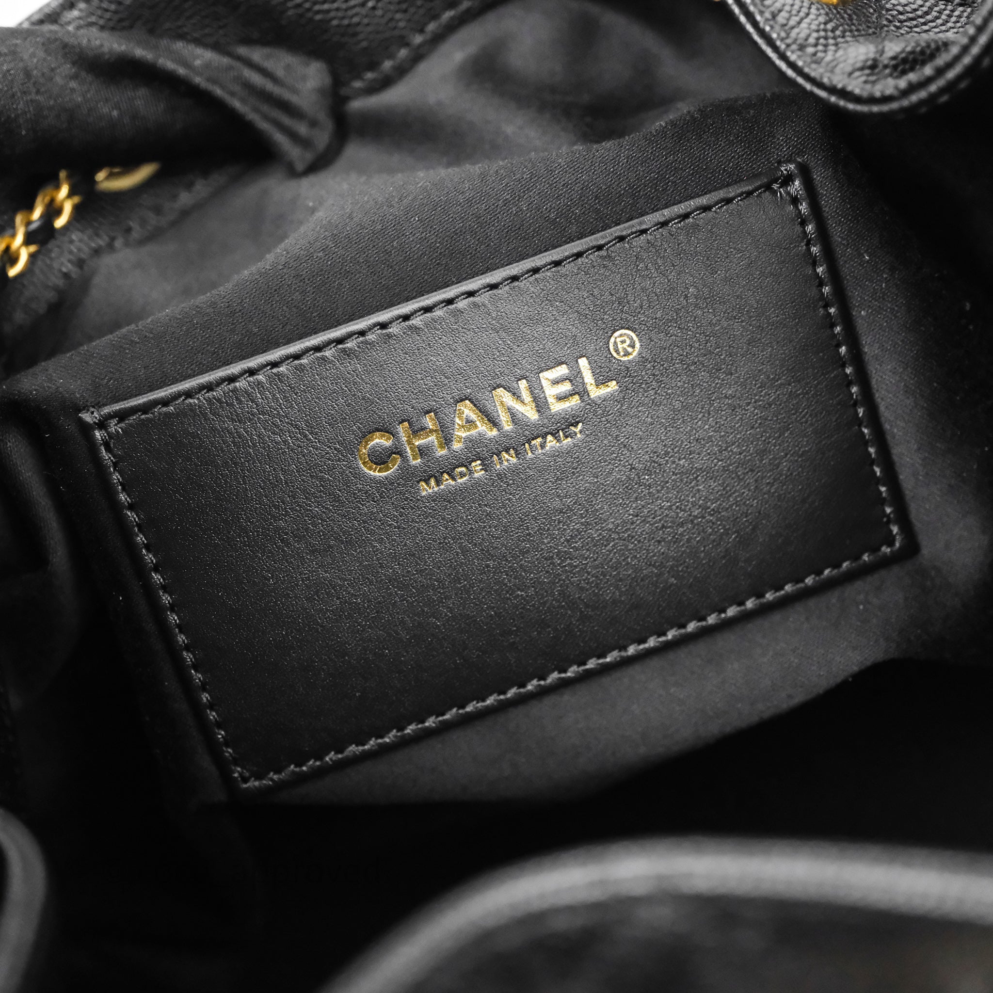 Chanel 25 Medium Black Caviar Aged Gold Hardware