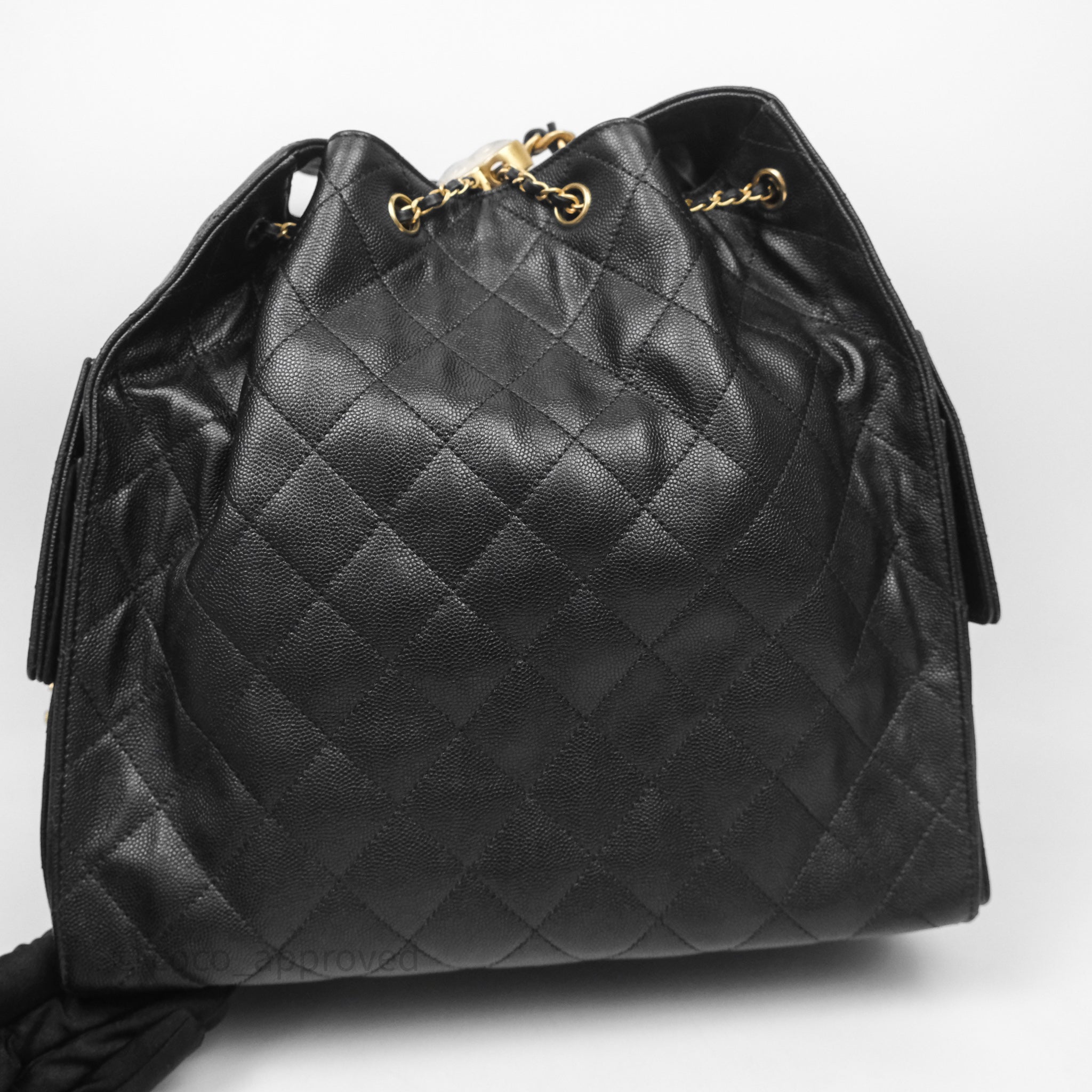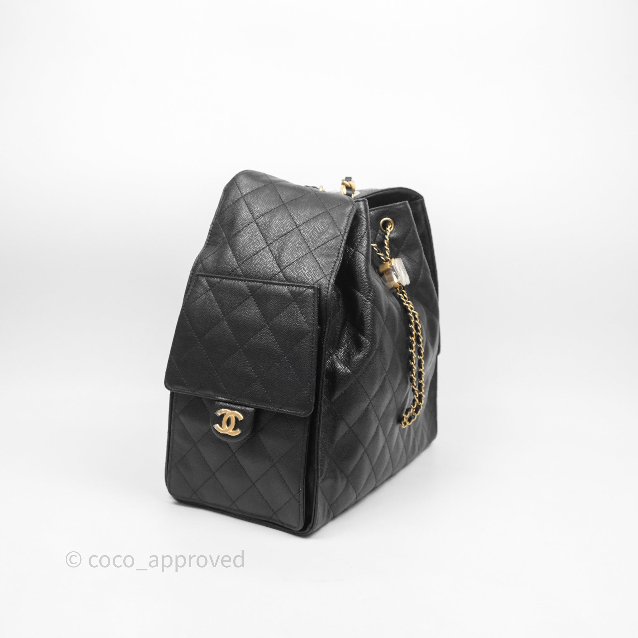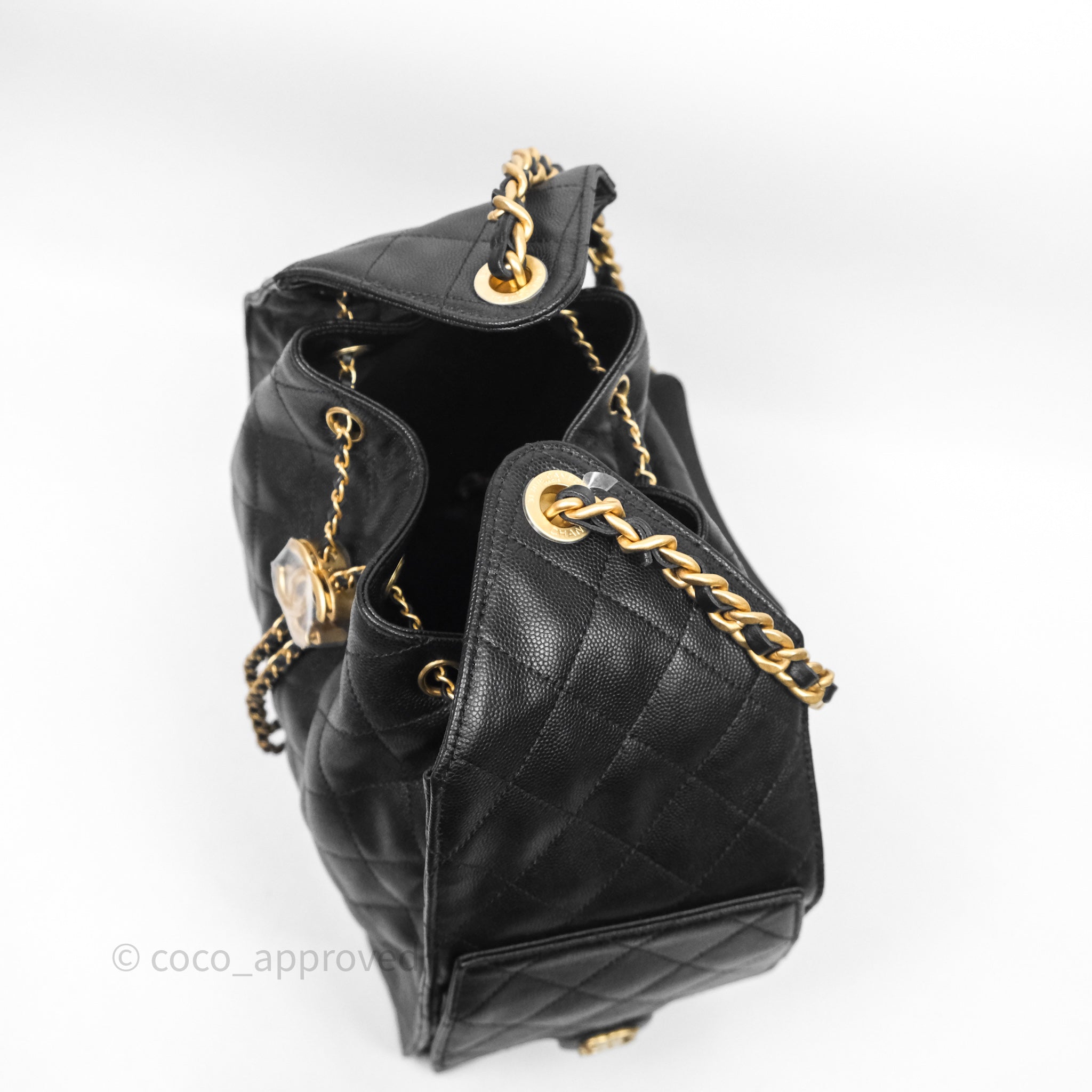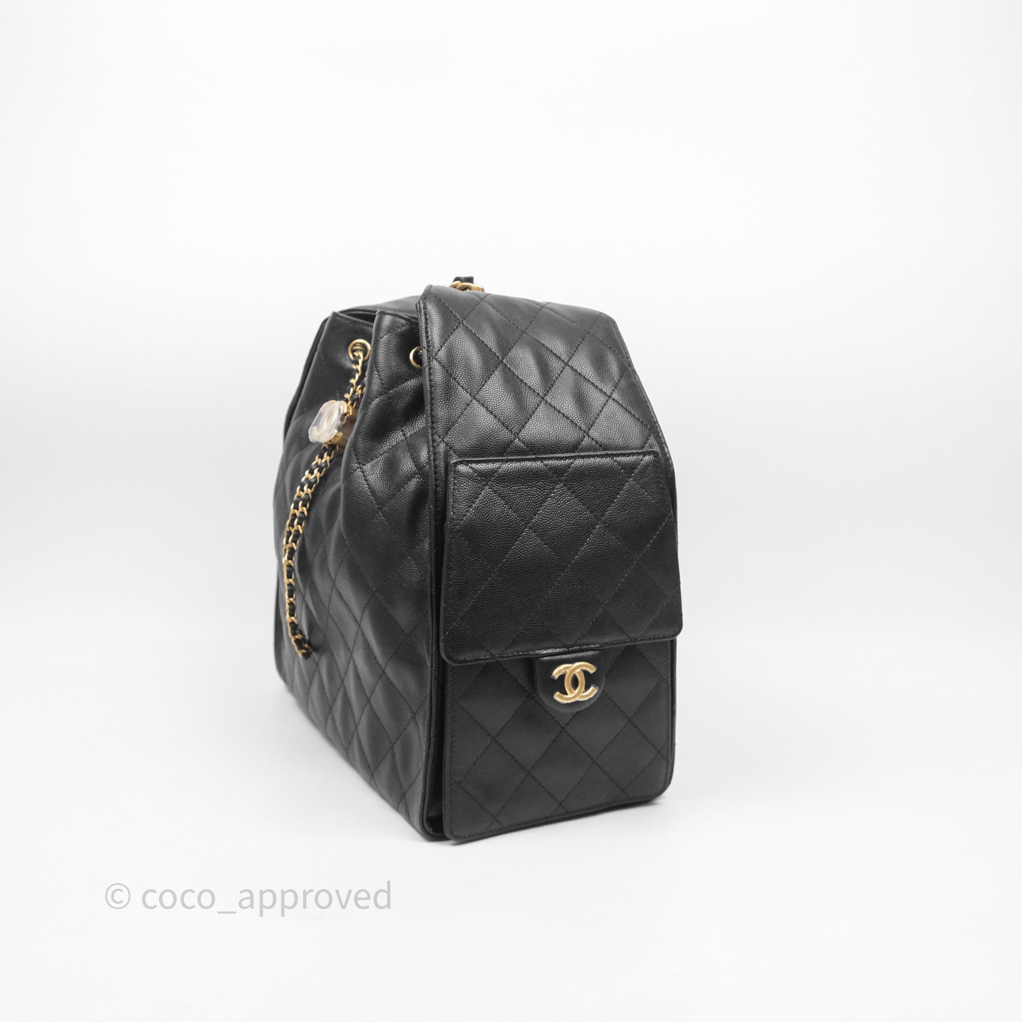 Chanel 25 Medium Black Caviar Aged Gold Hardware