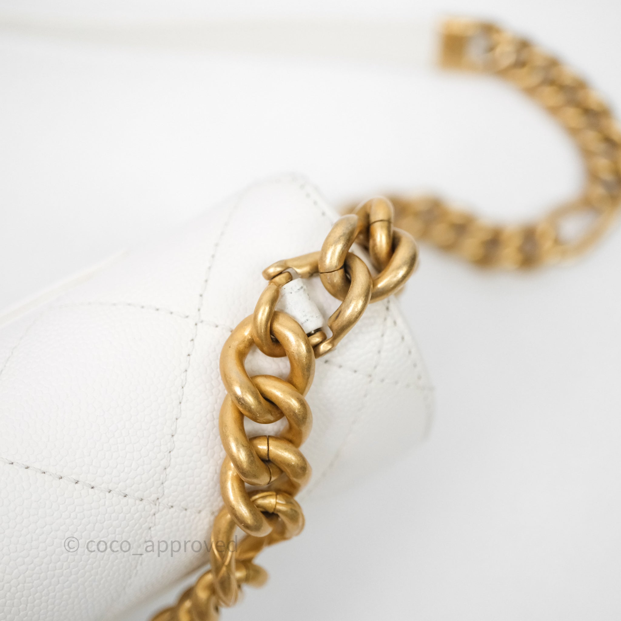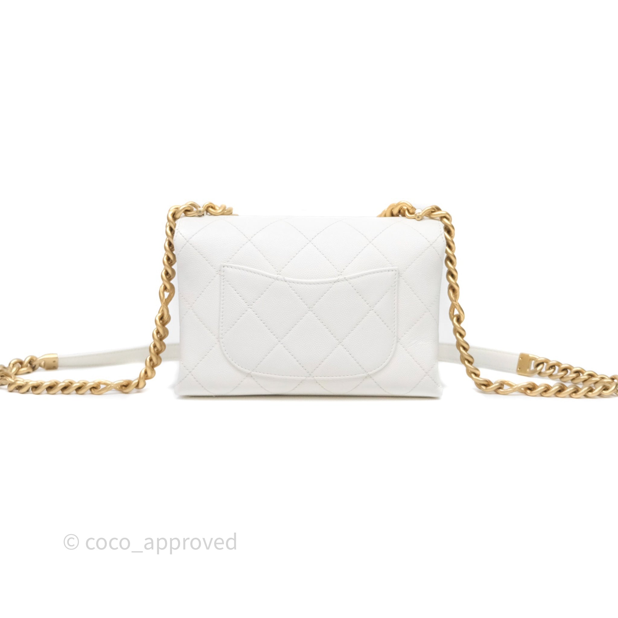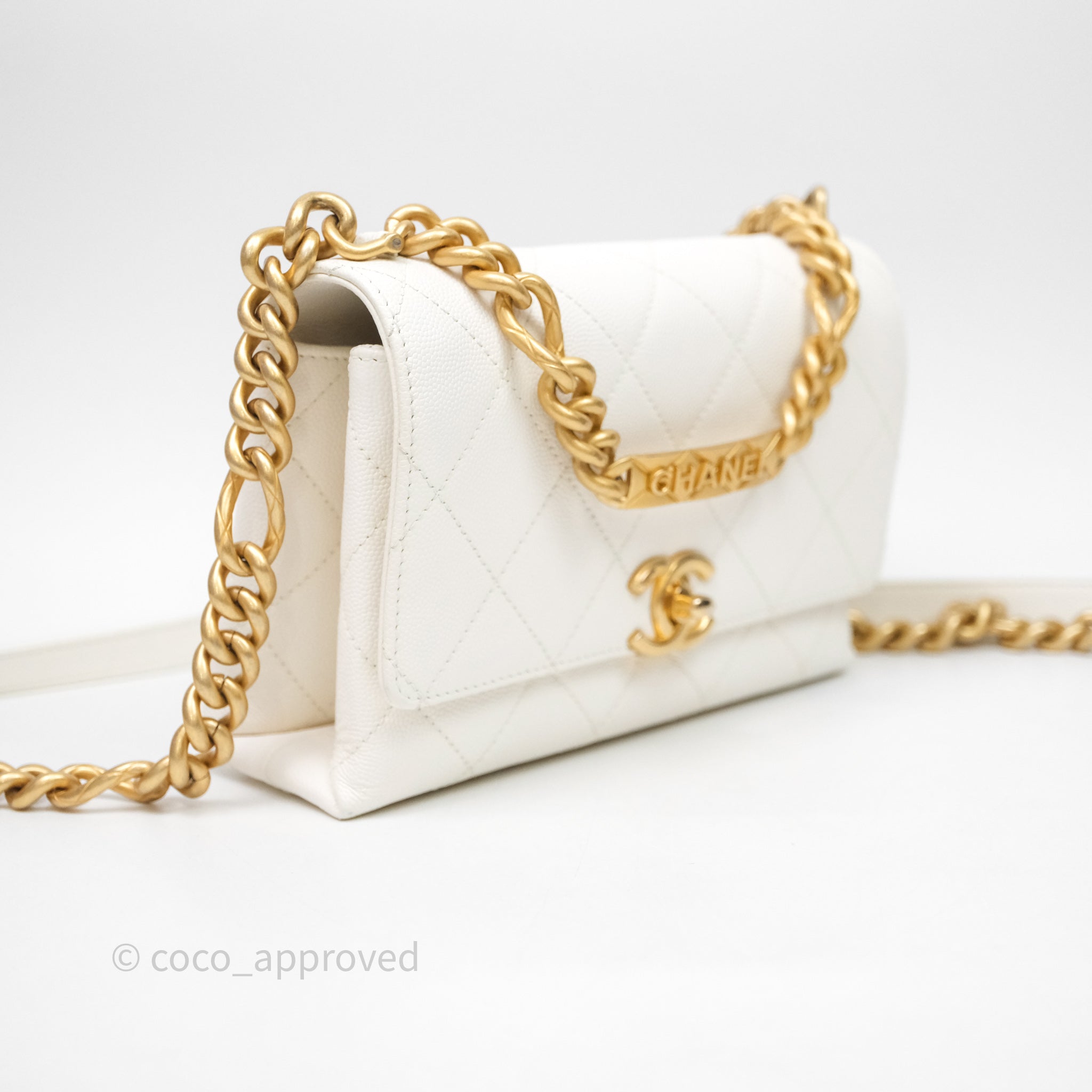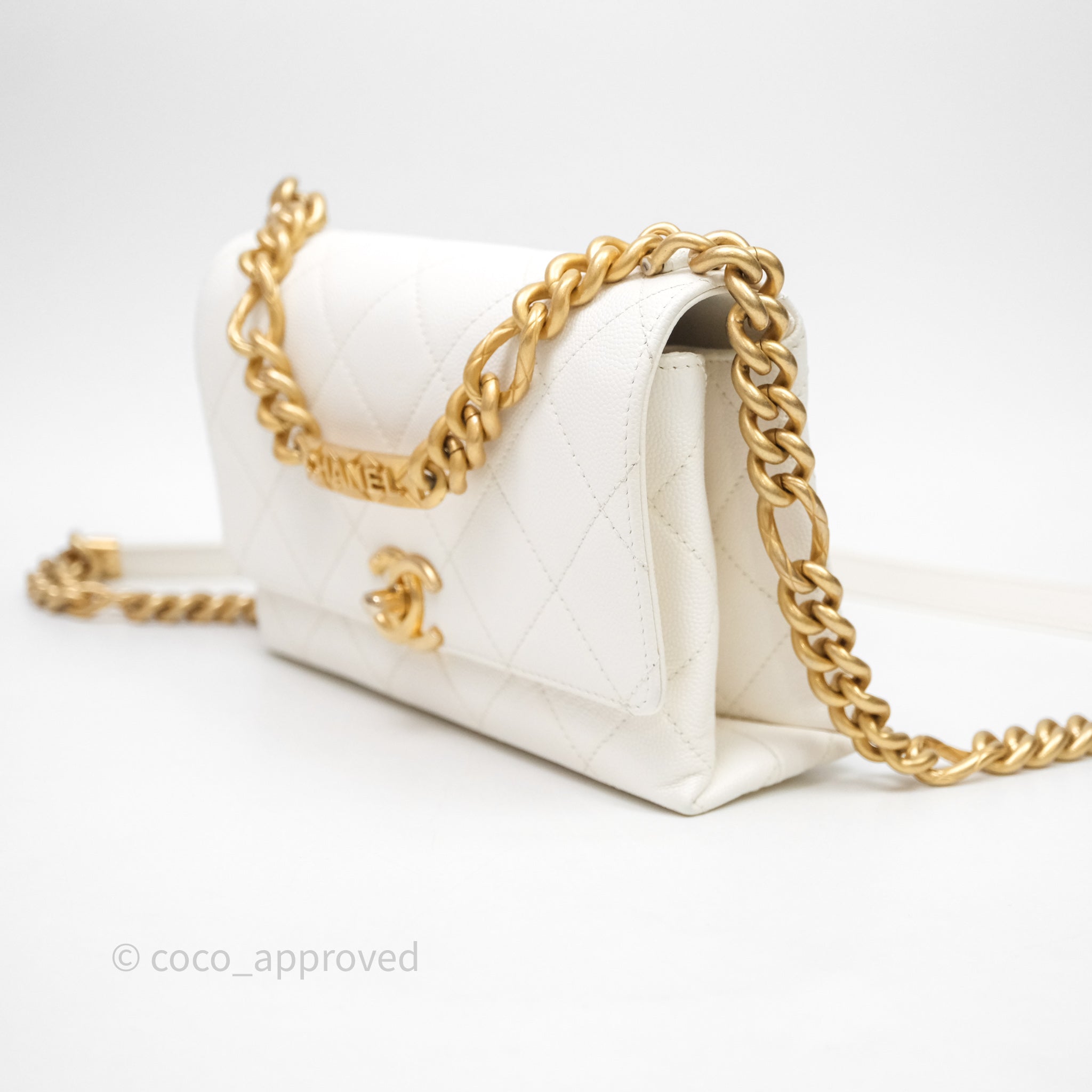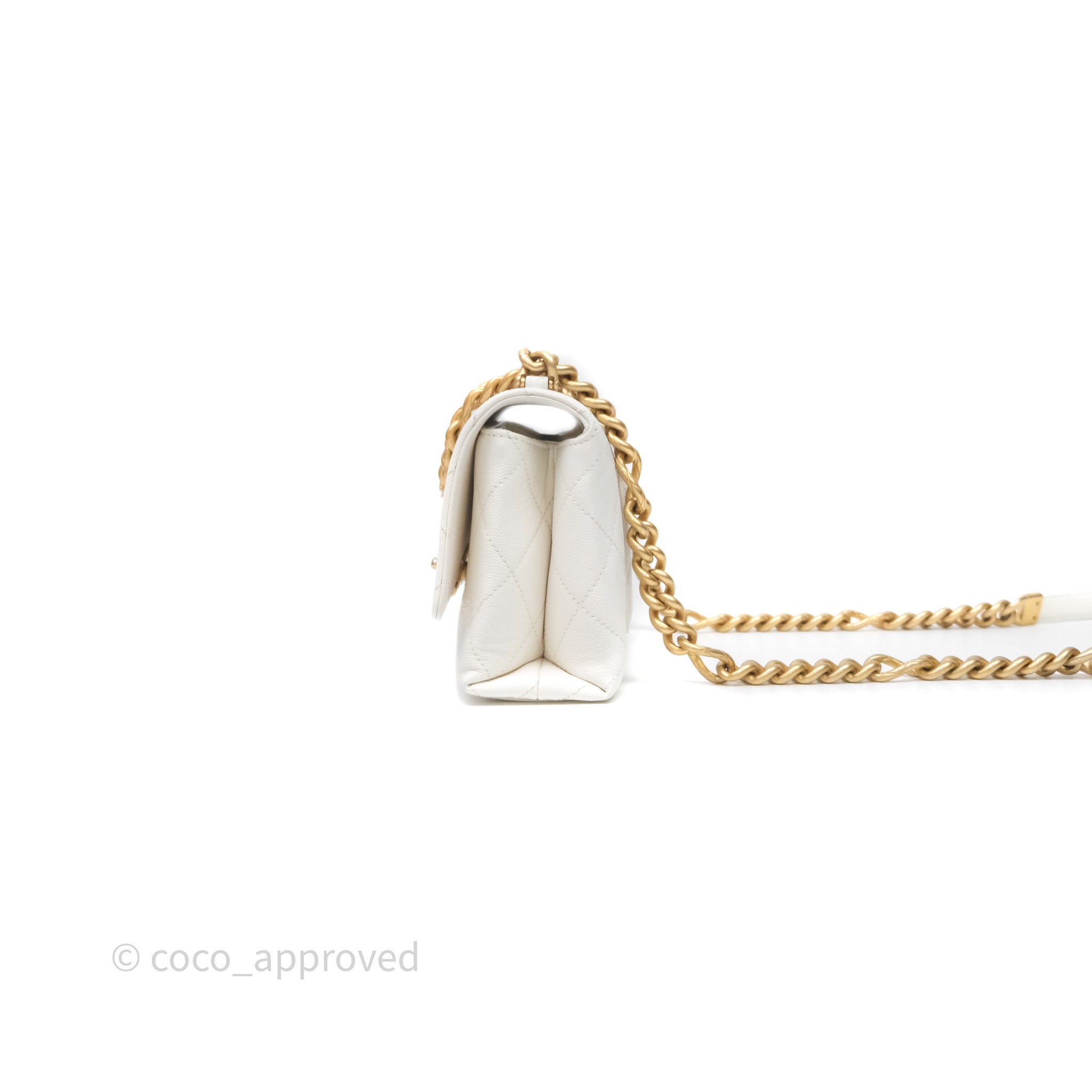 Chanel Bracelet On Chain Small Flap Bag White Caviar Aged Gold Hardware