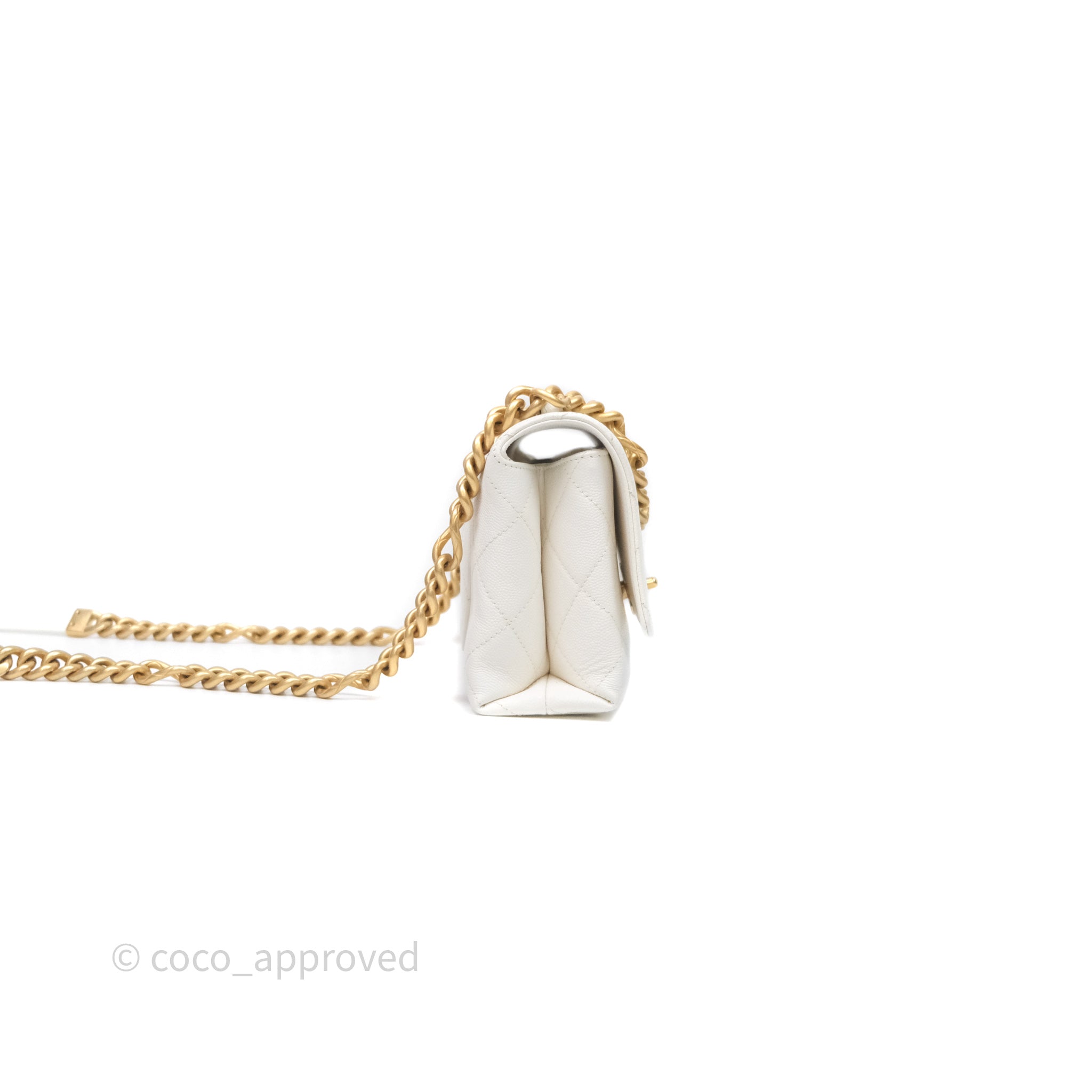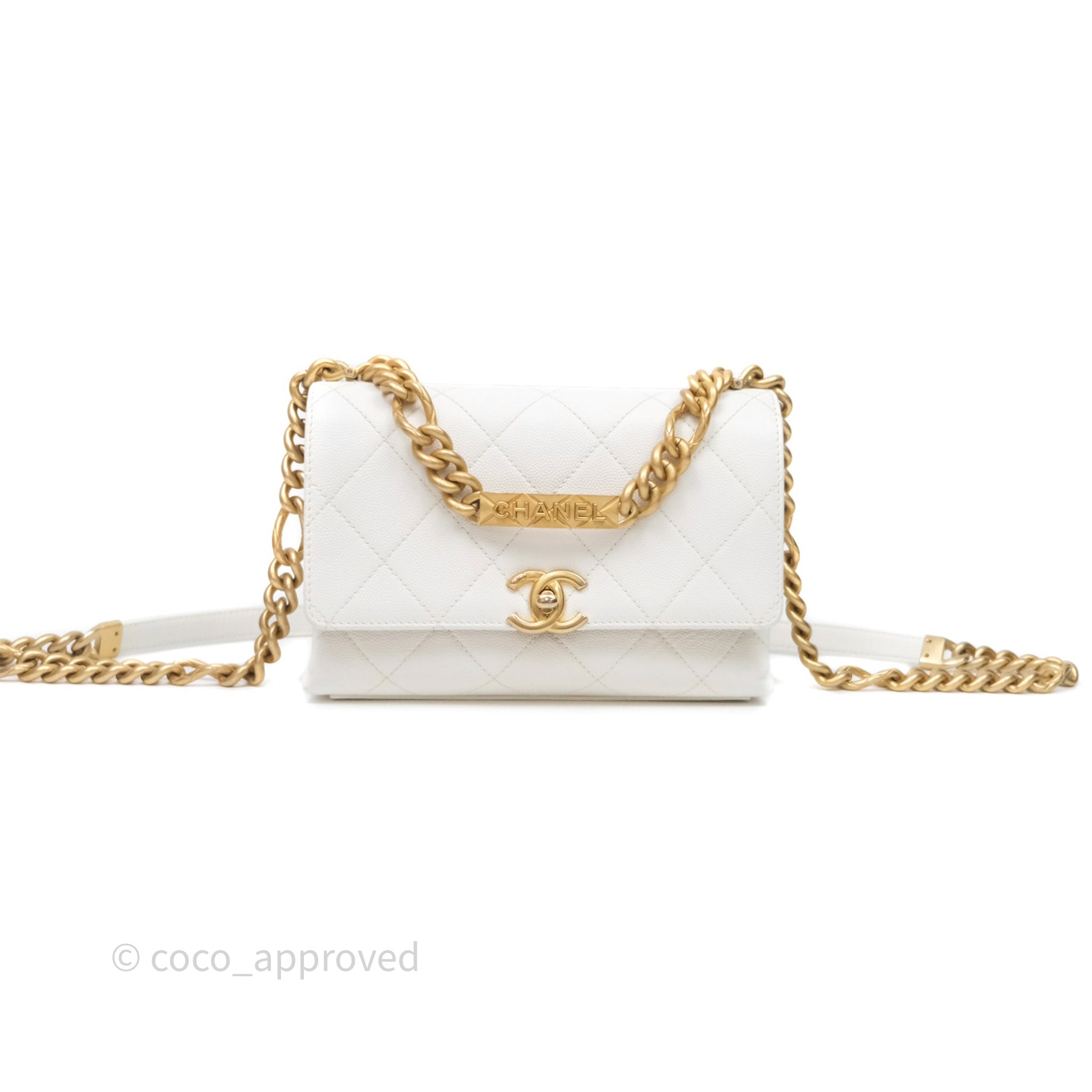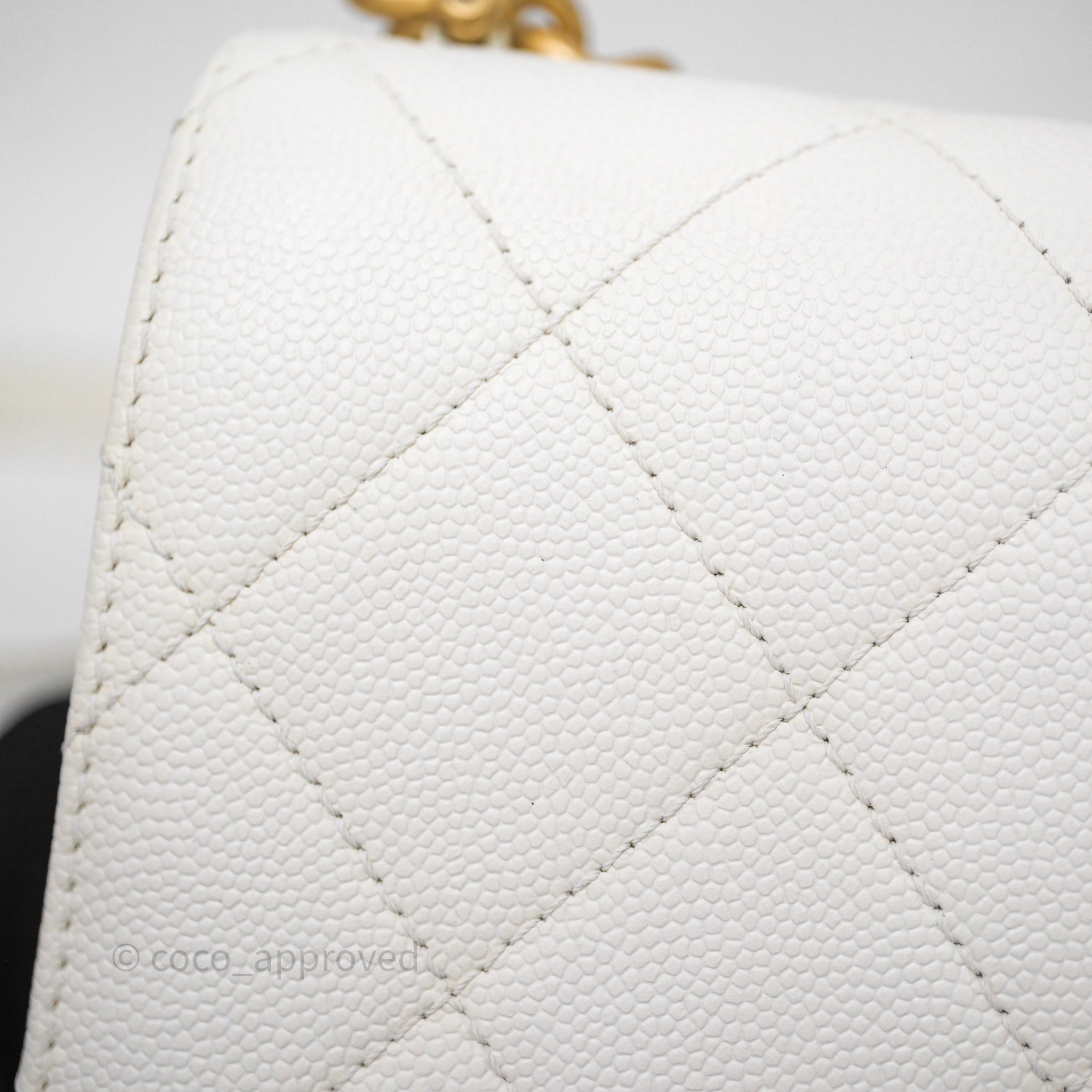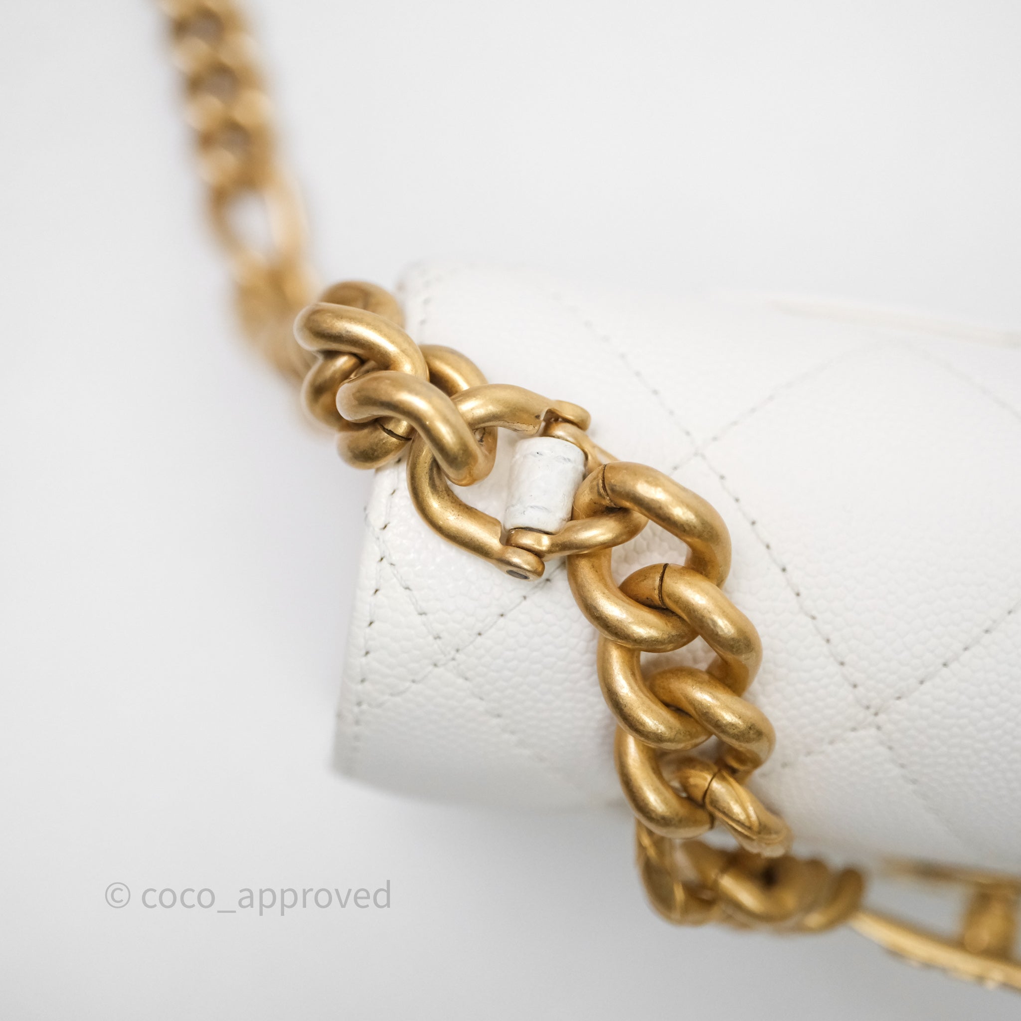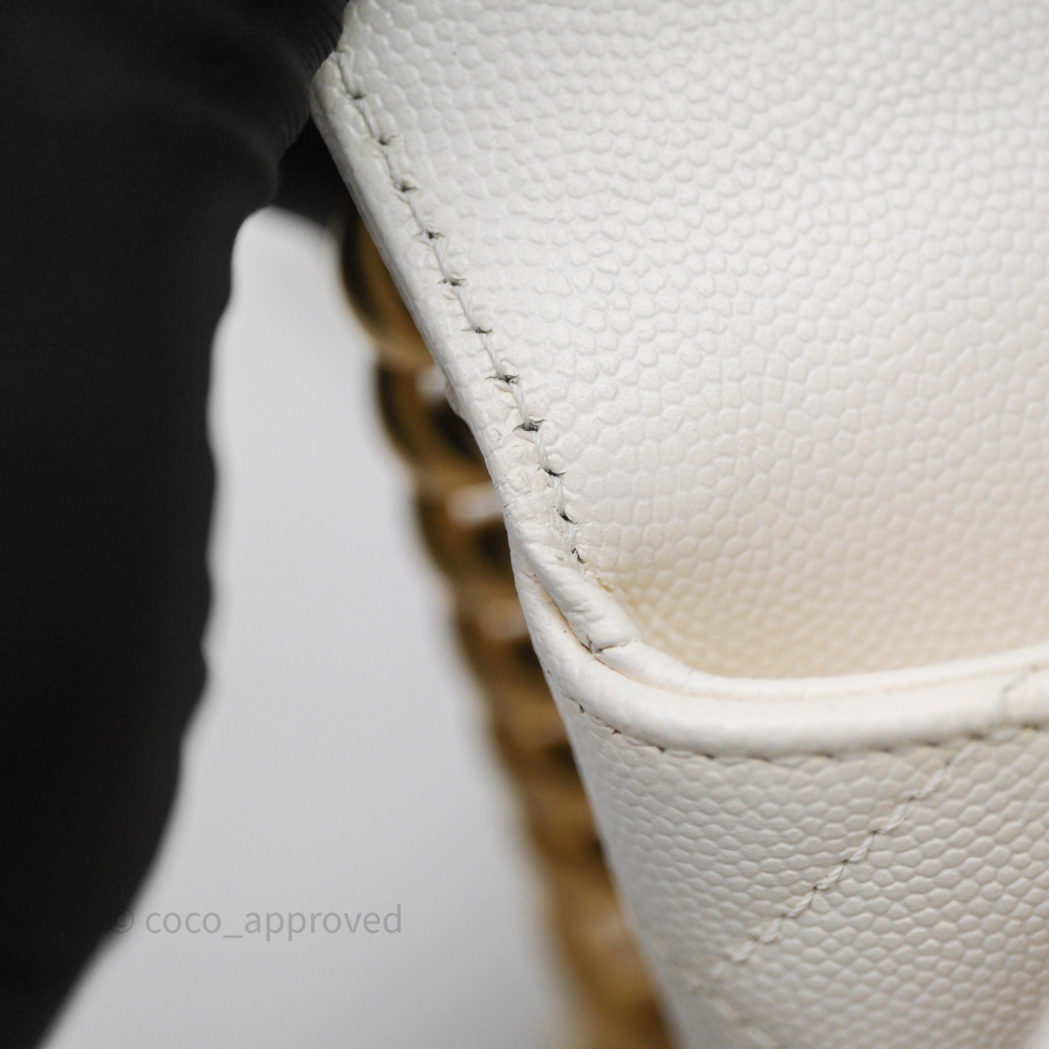Chanel Bracelet On Chain Small Flap Bag White Caviar Aged Gold Hardware