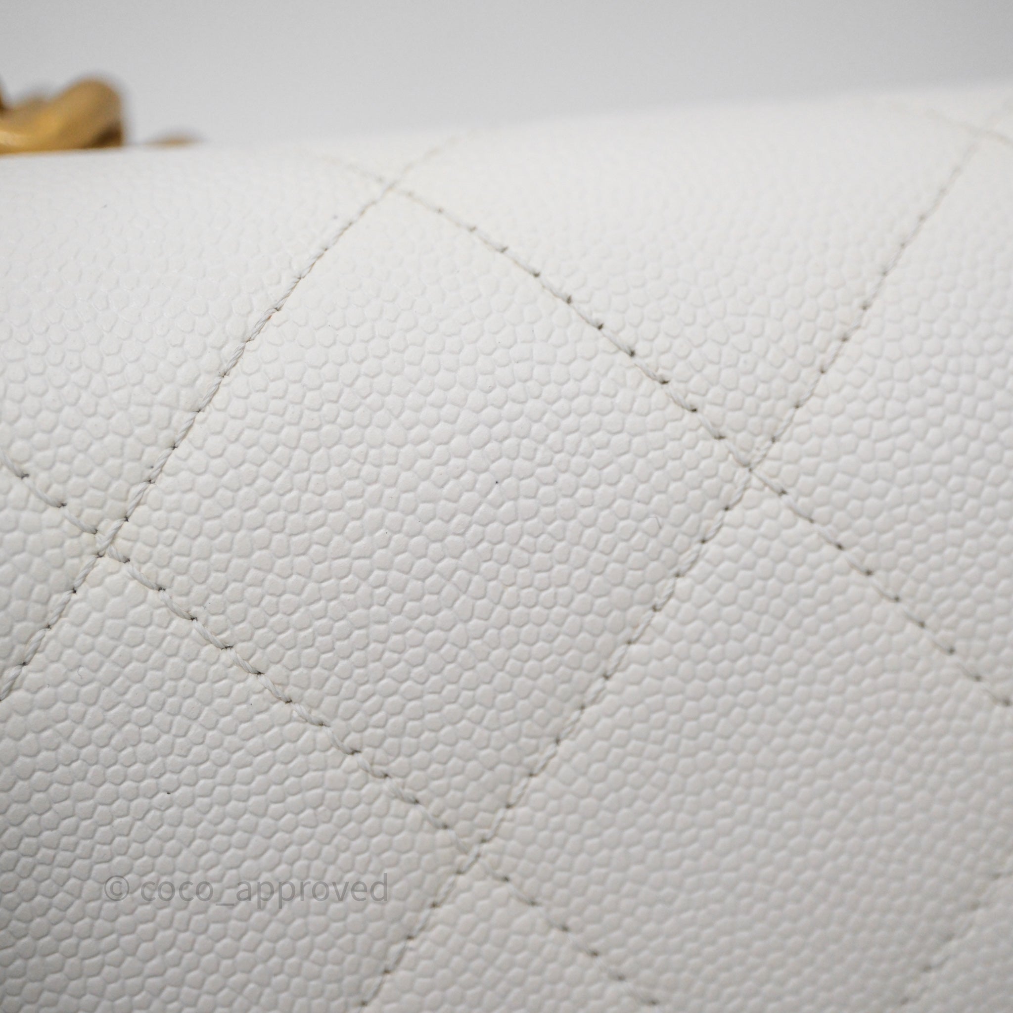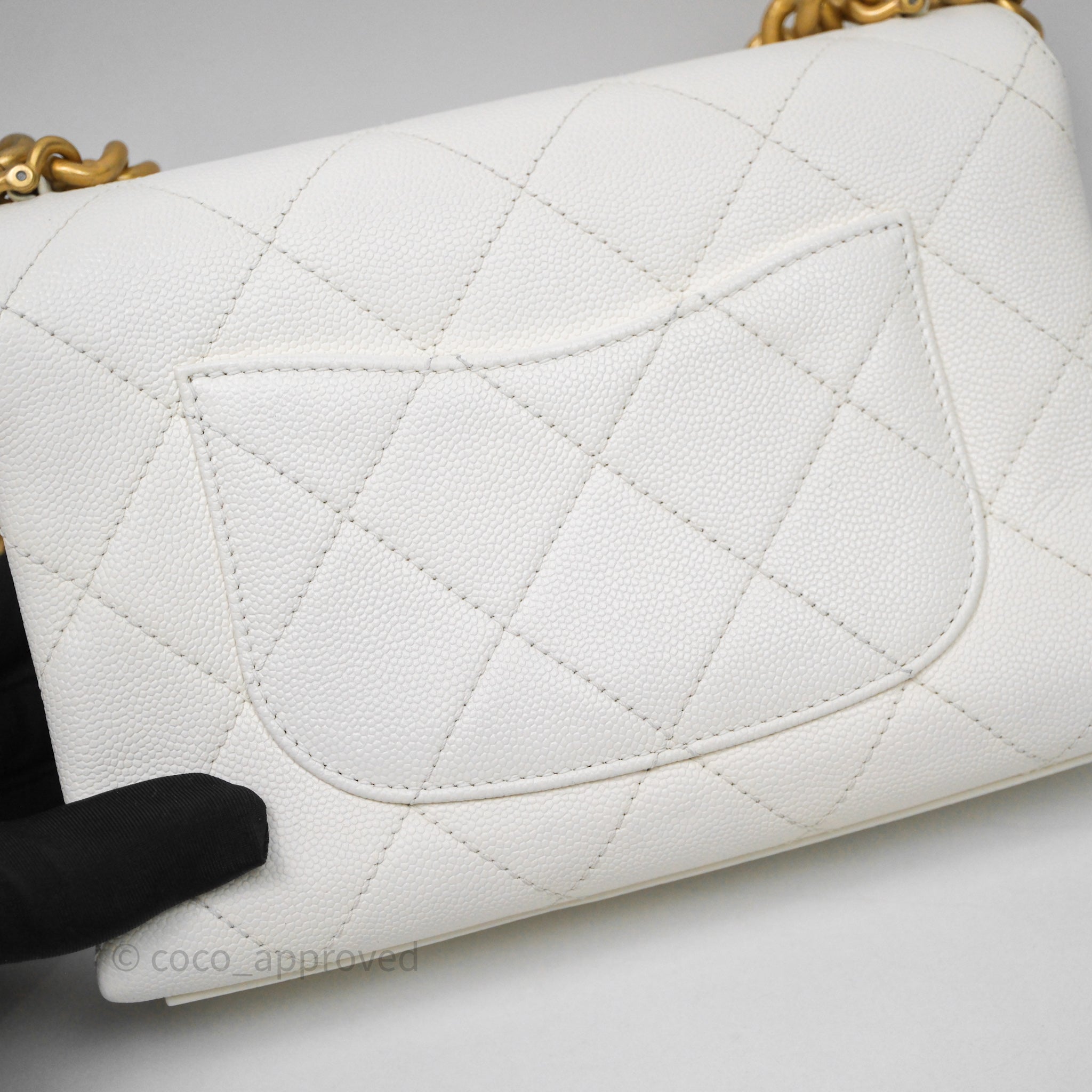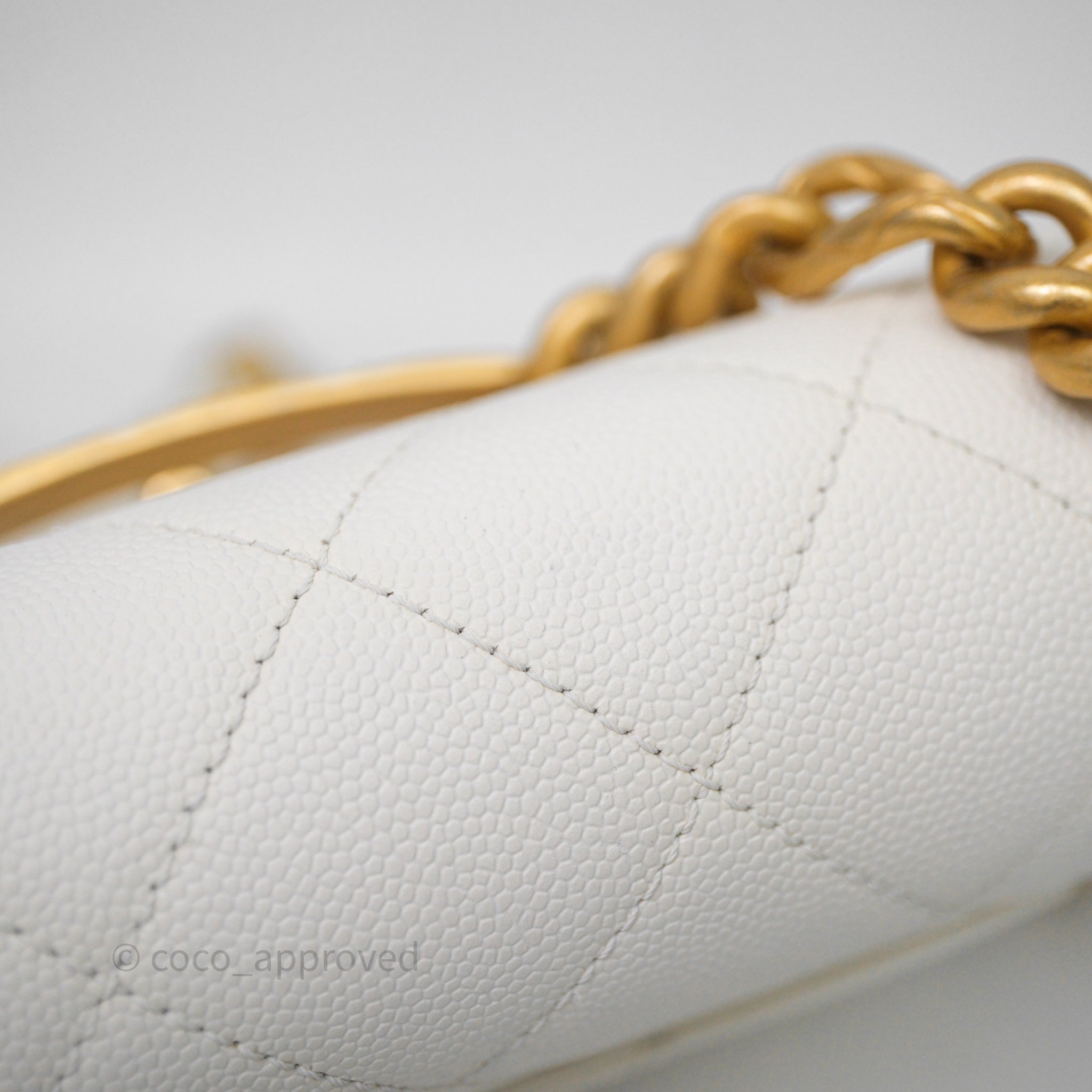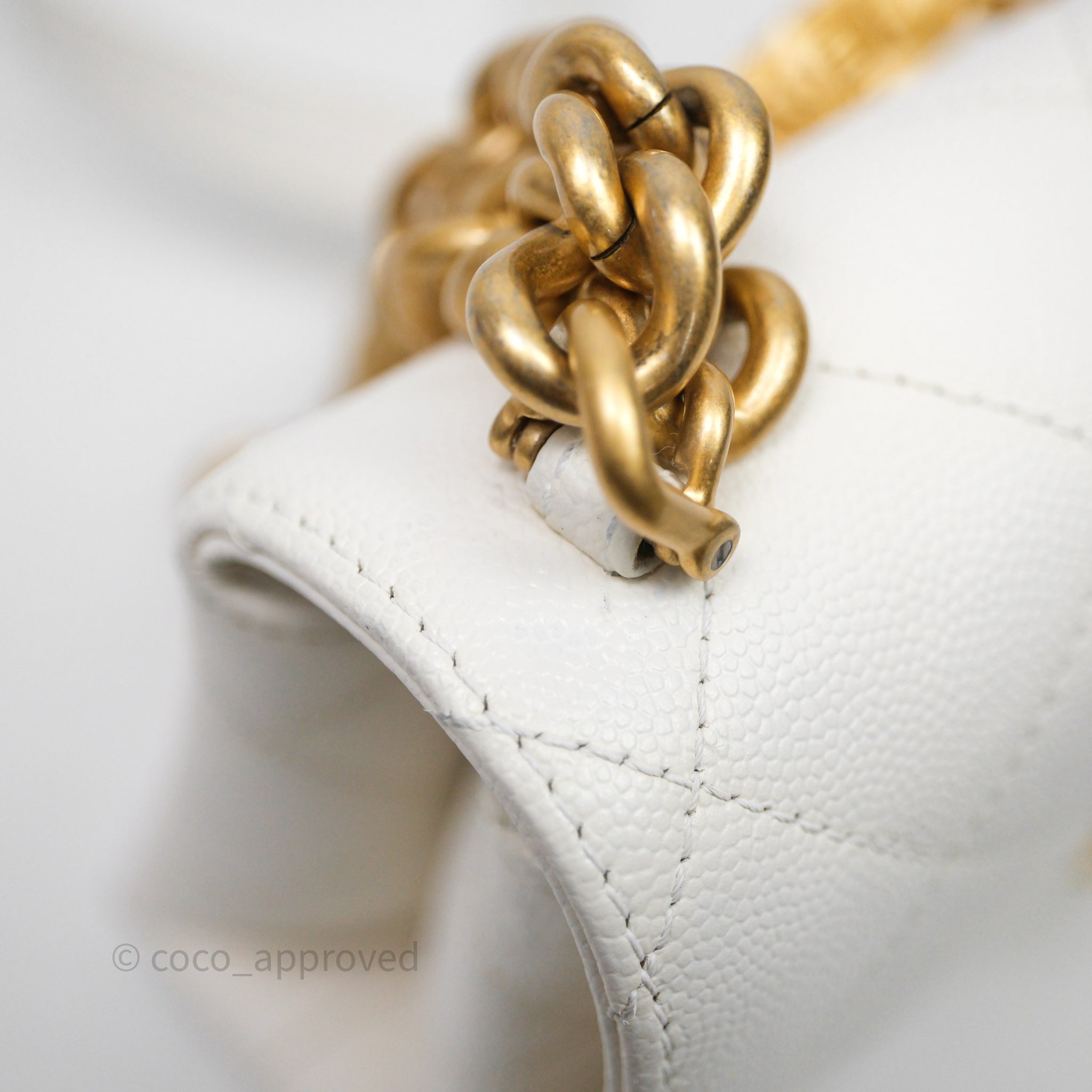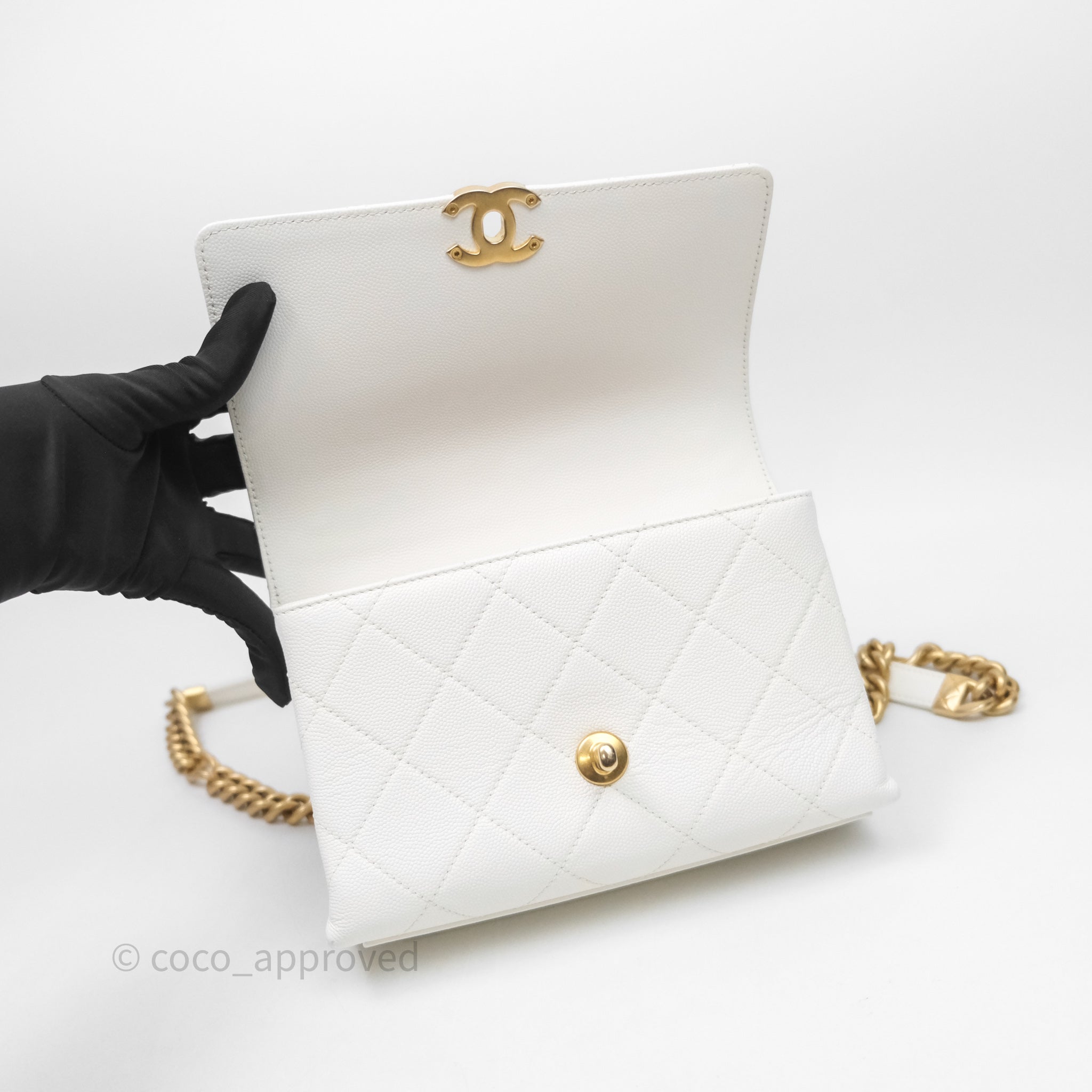 Chanel Bracelet On Chain Small Flap Bag White Caviar Aged Gold Hardware