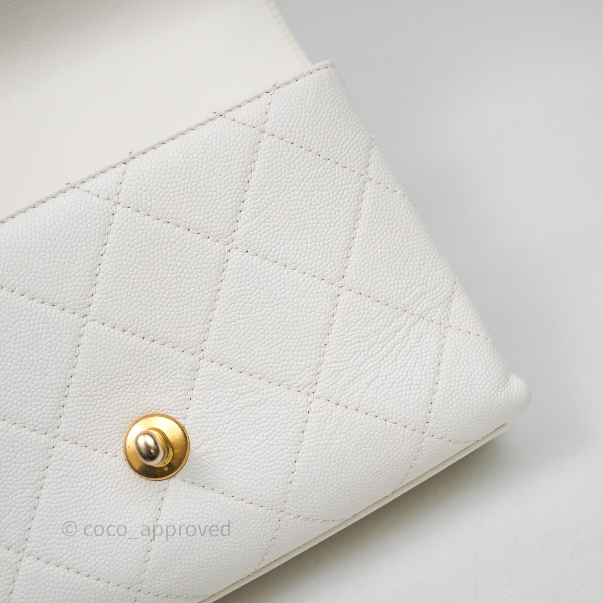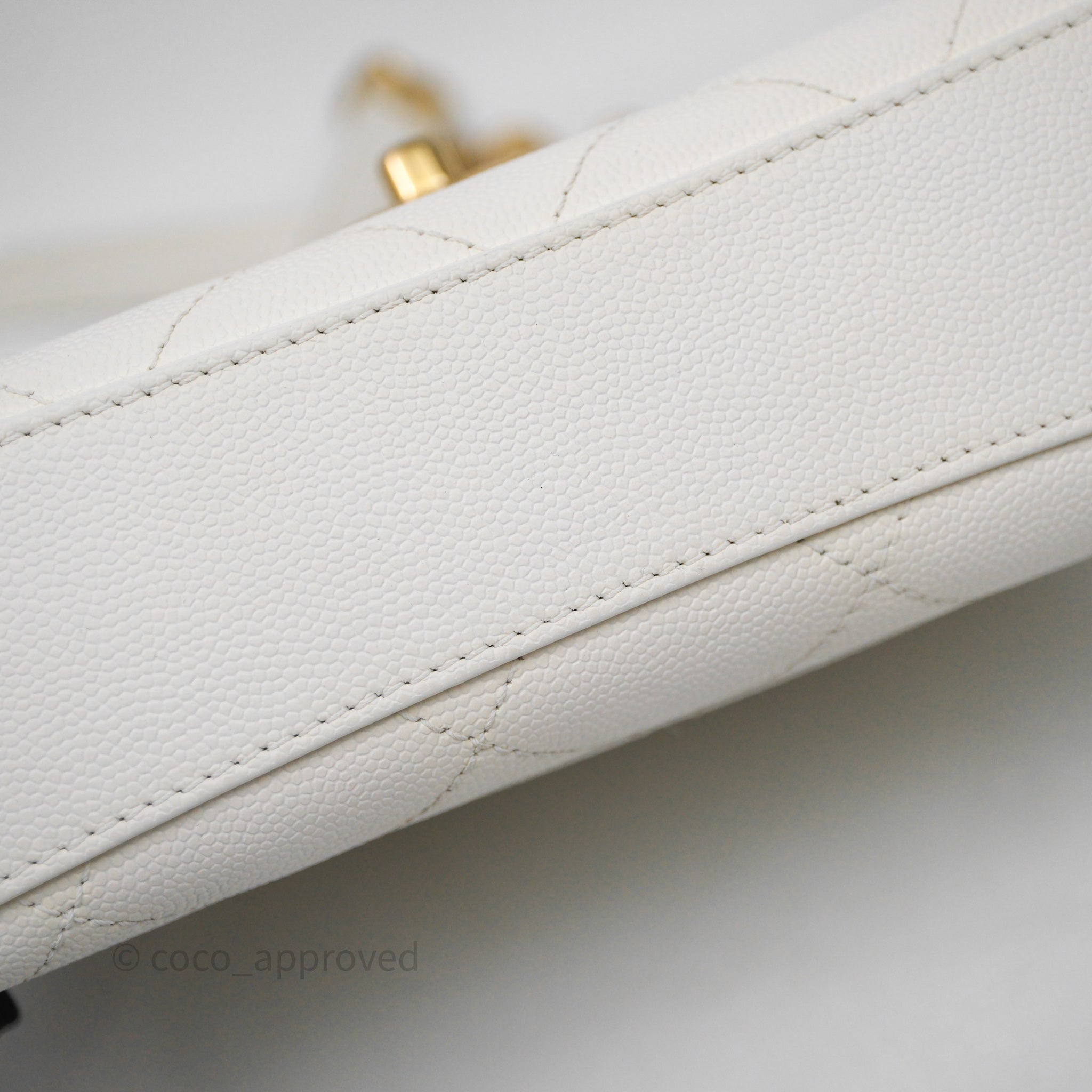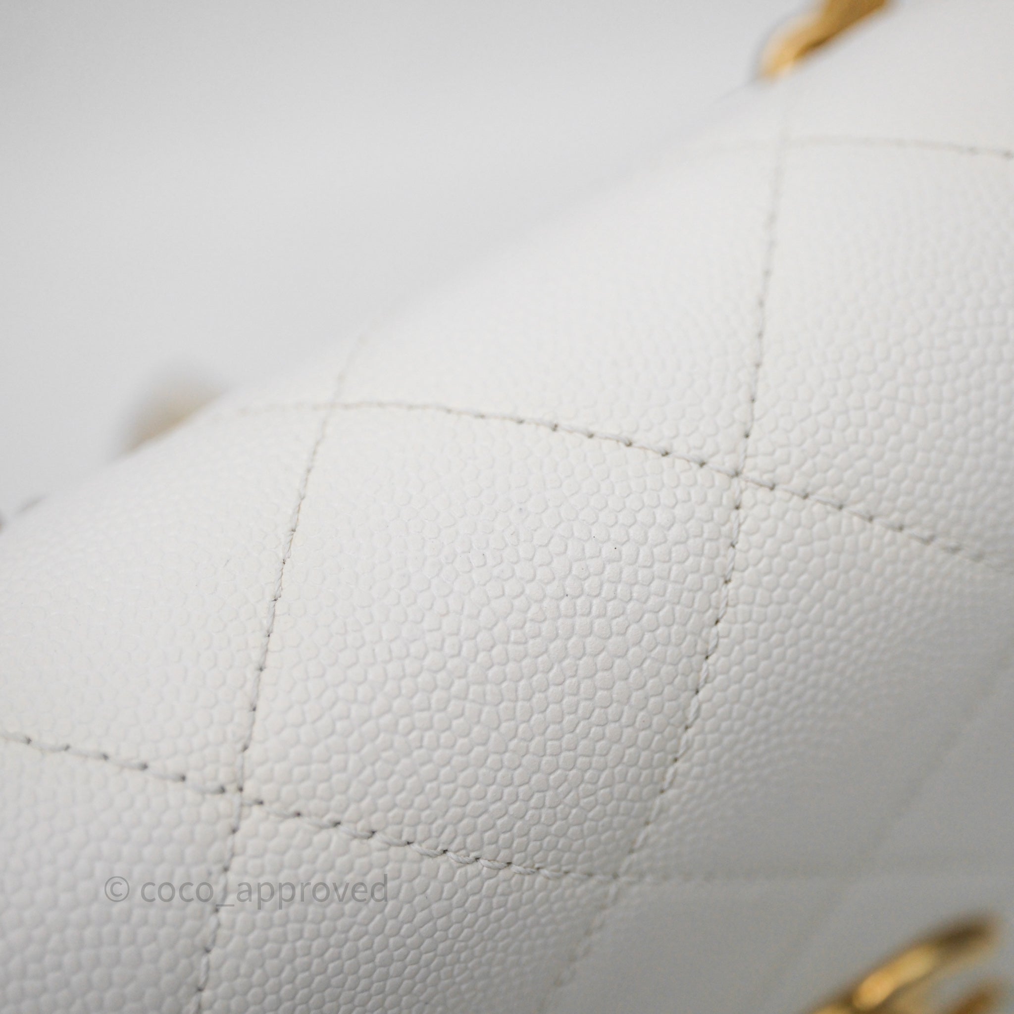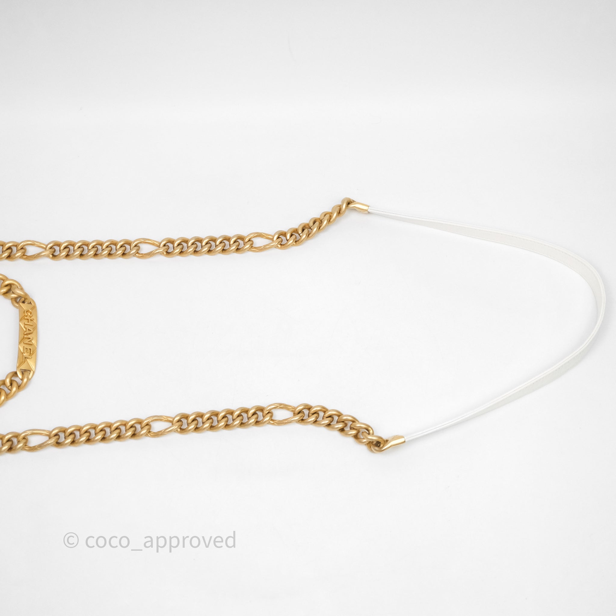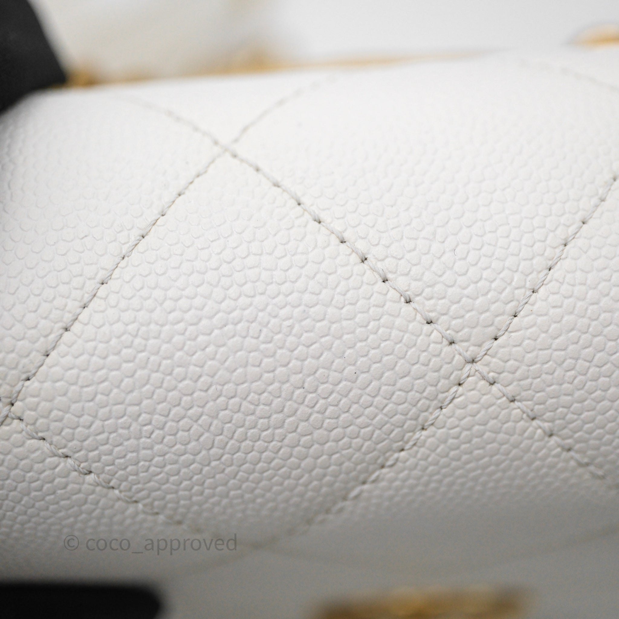Chanel Bracelet On Chain Small Flap Bag White Caviar Aged Gold Hardware