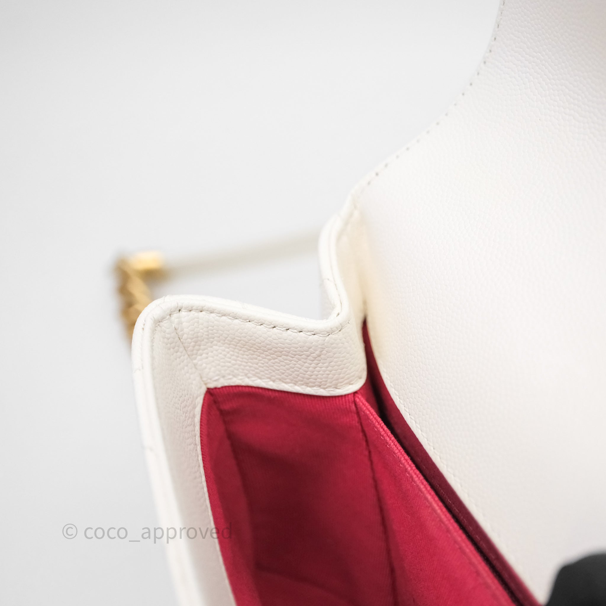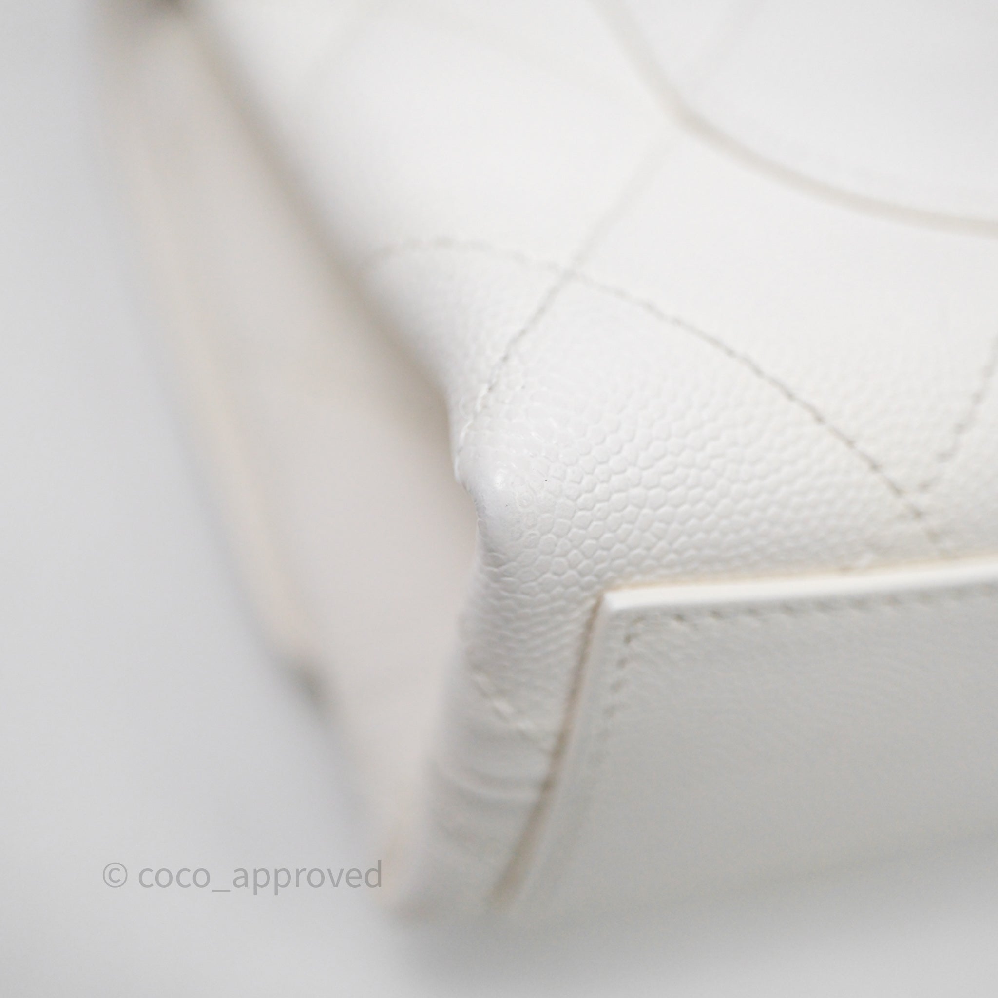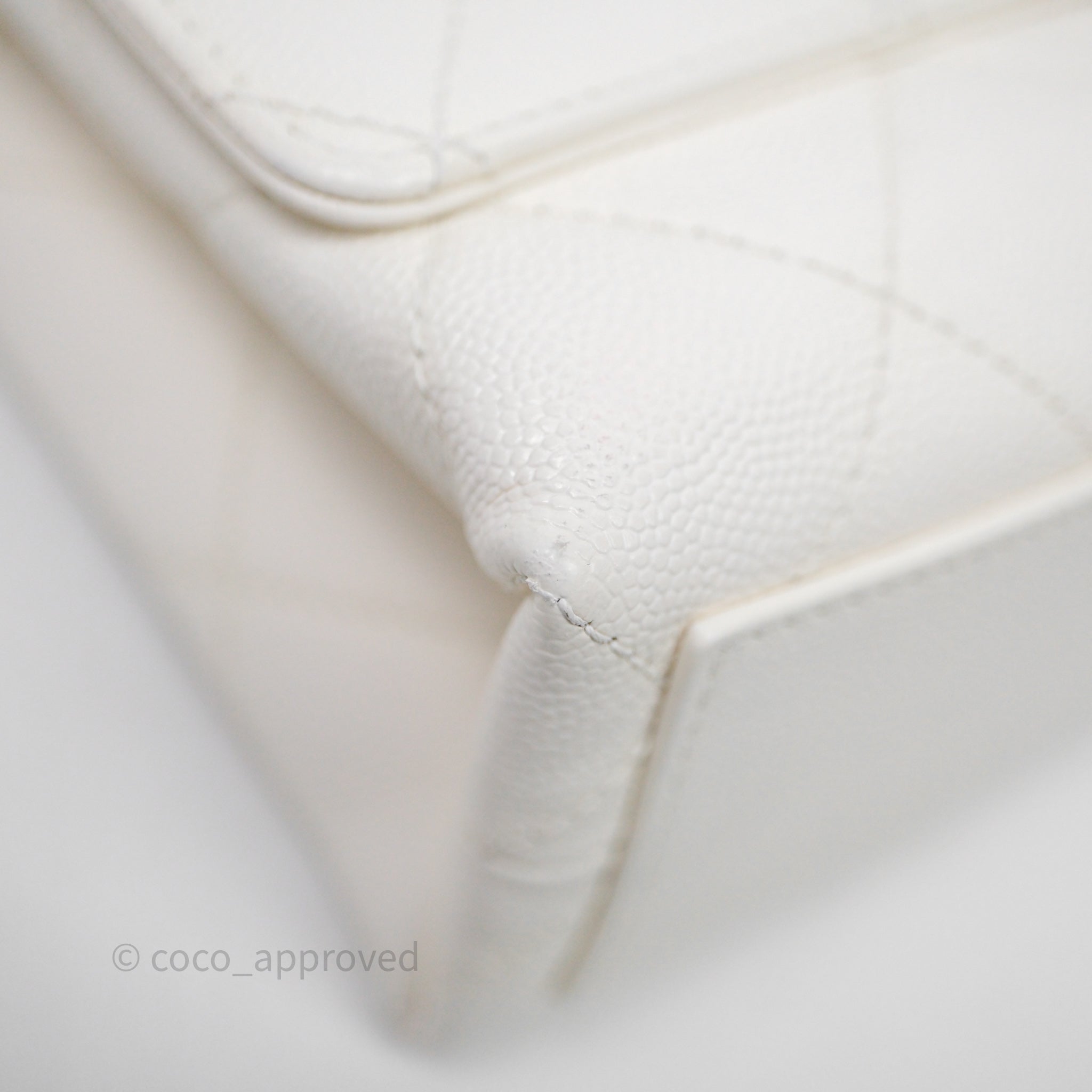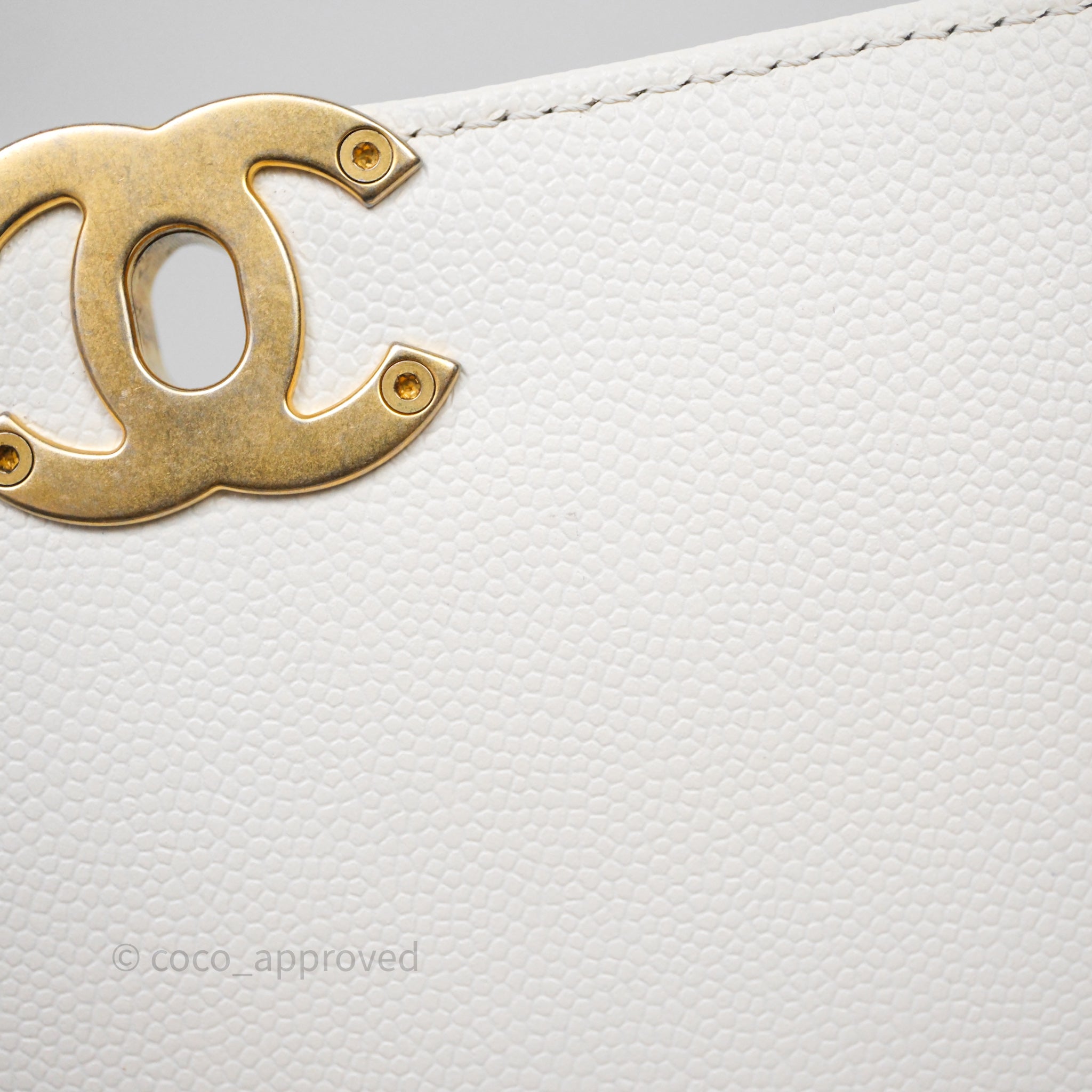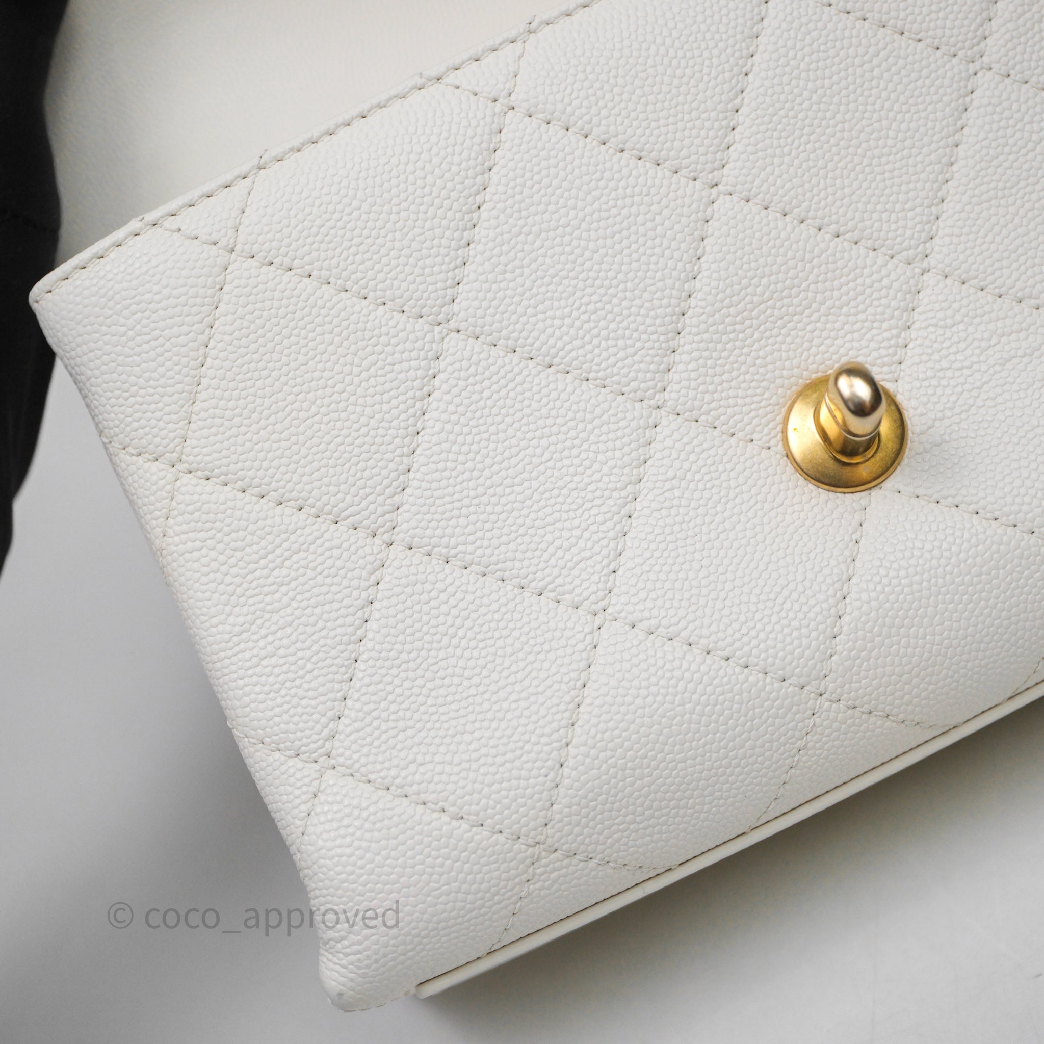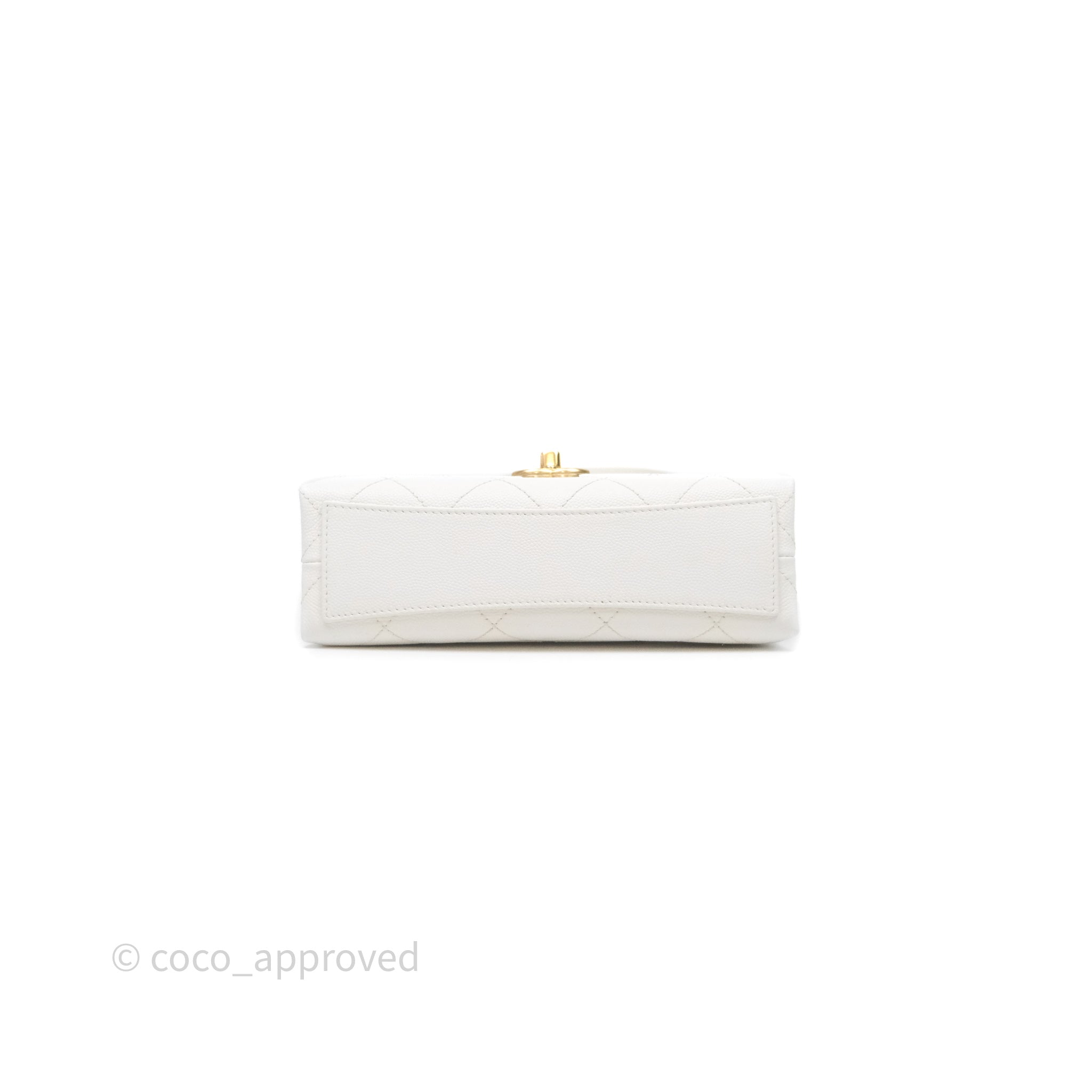 Chanel Bracelet On Chain Small Flap Bag White Caviar Aged Gold Hardware