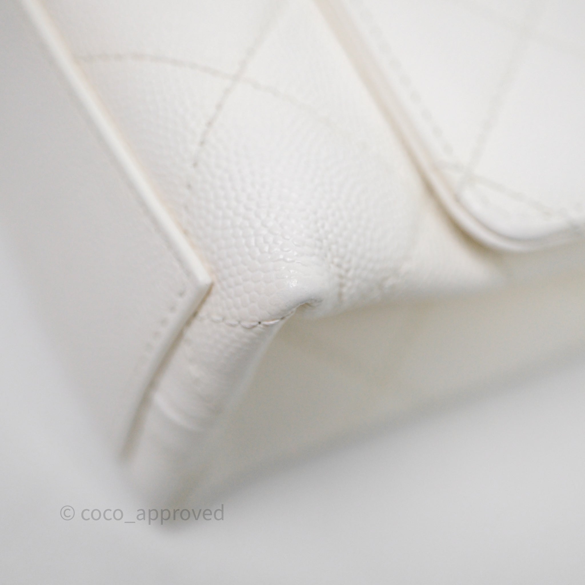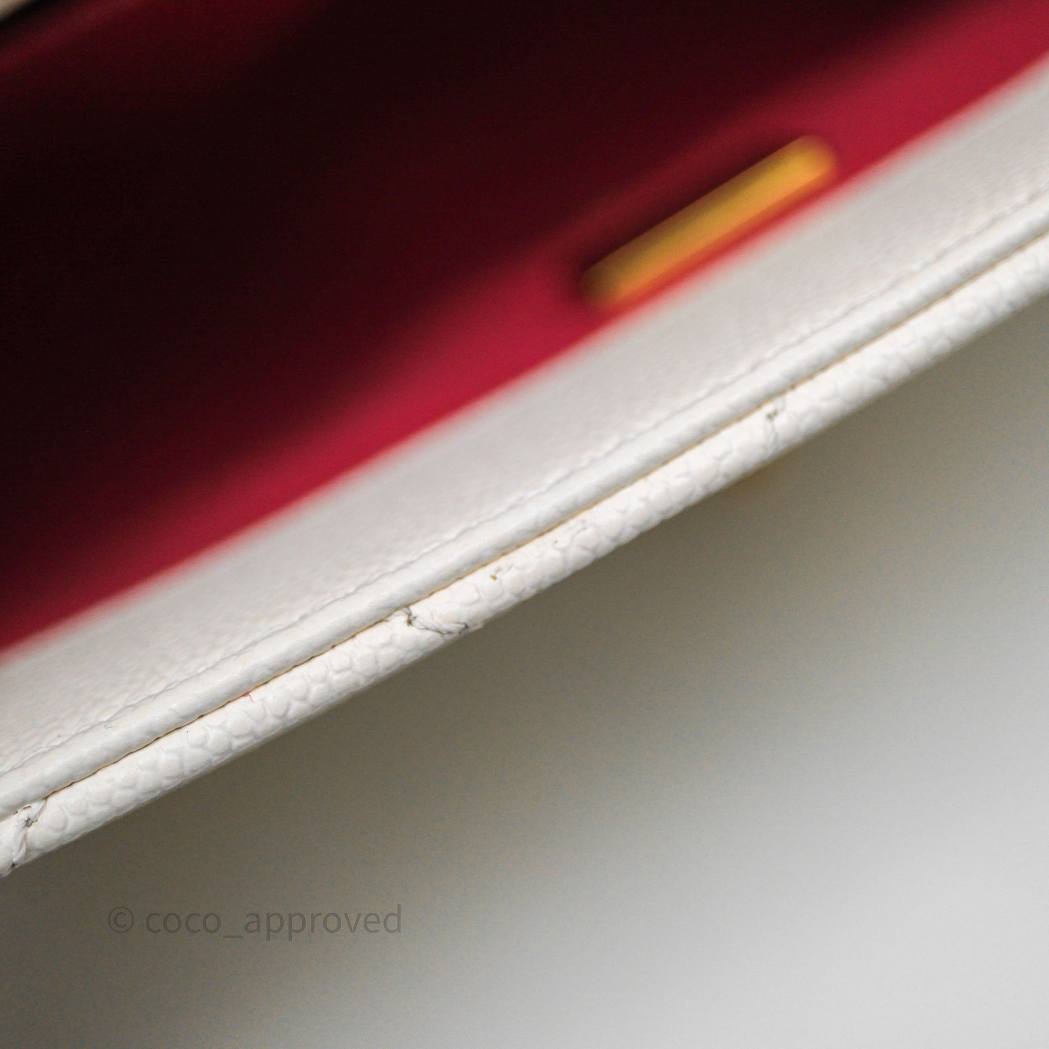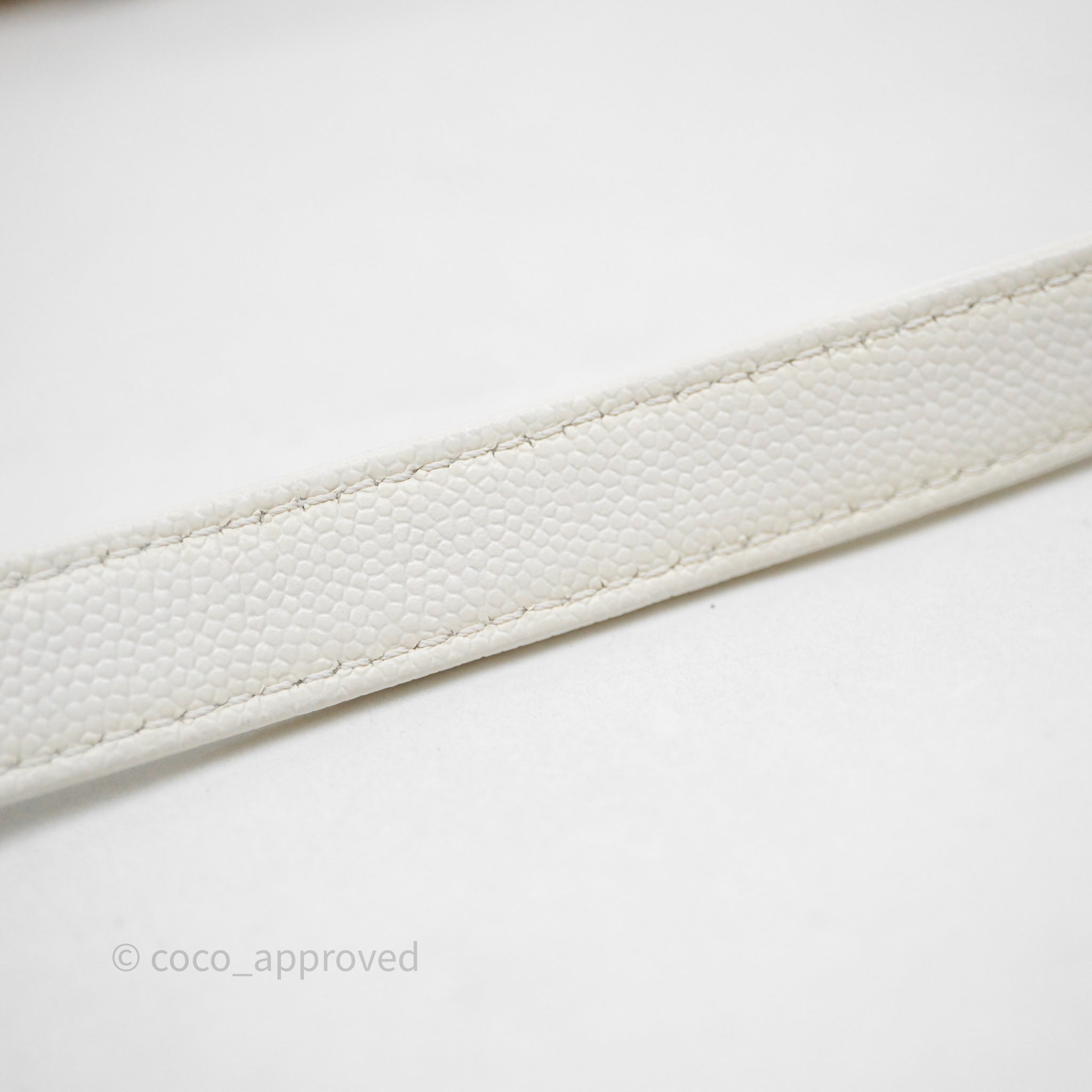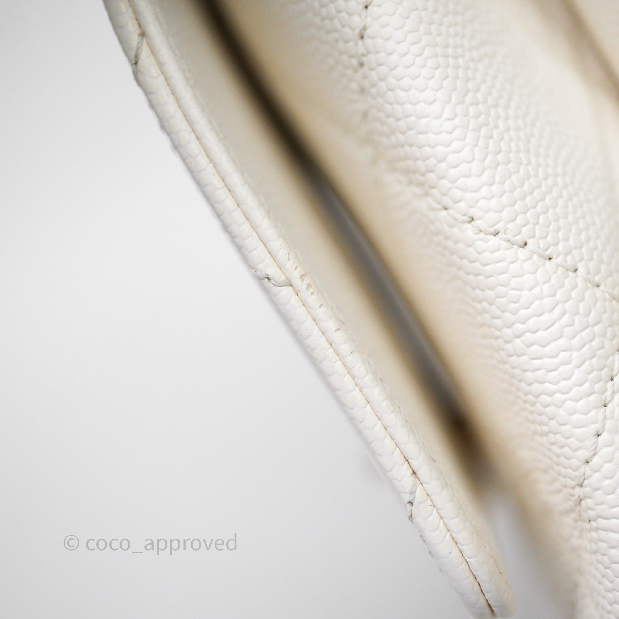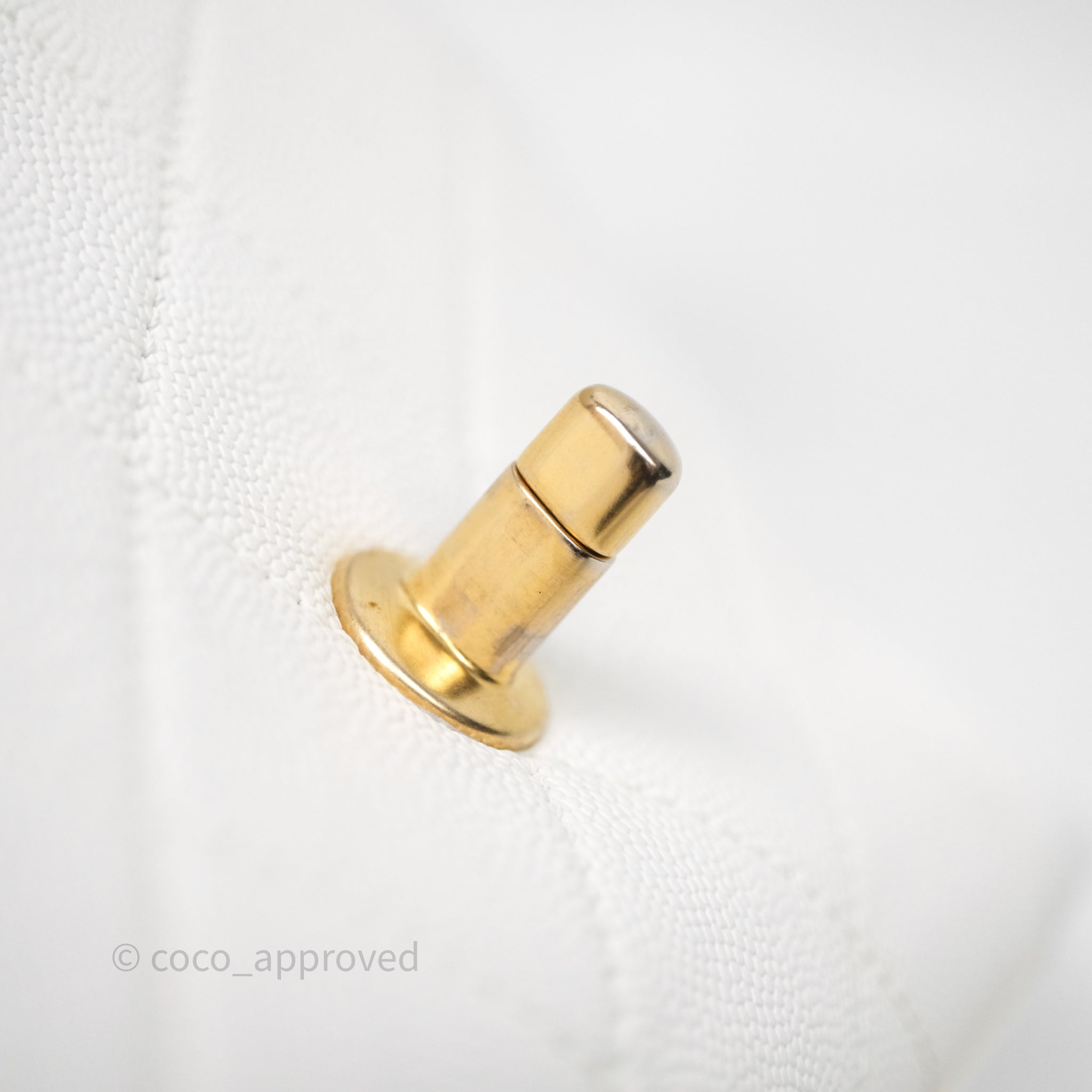 Chanel Bracelet On Chain Small Flap Bag White Caviar Aged Gold Hardware