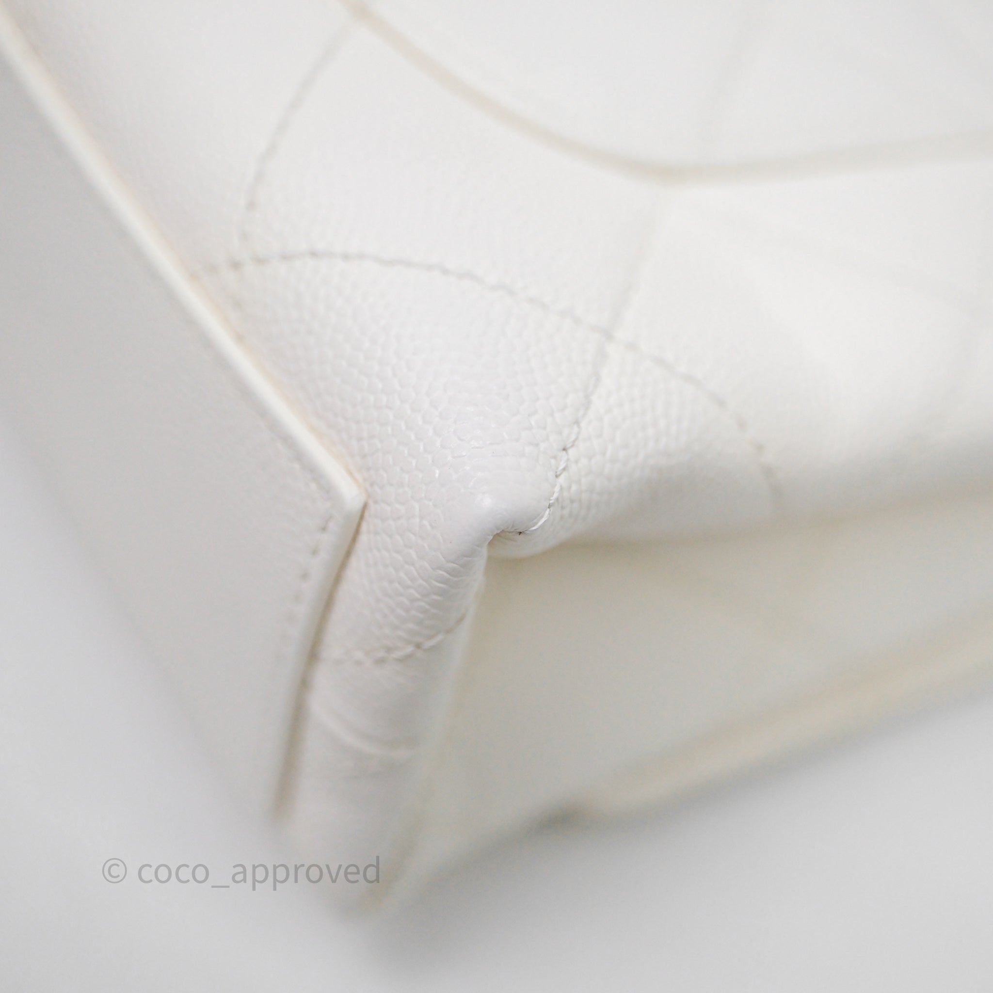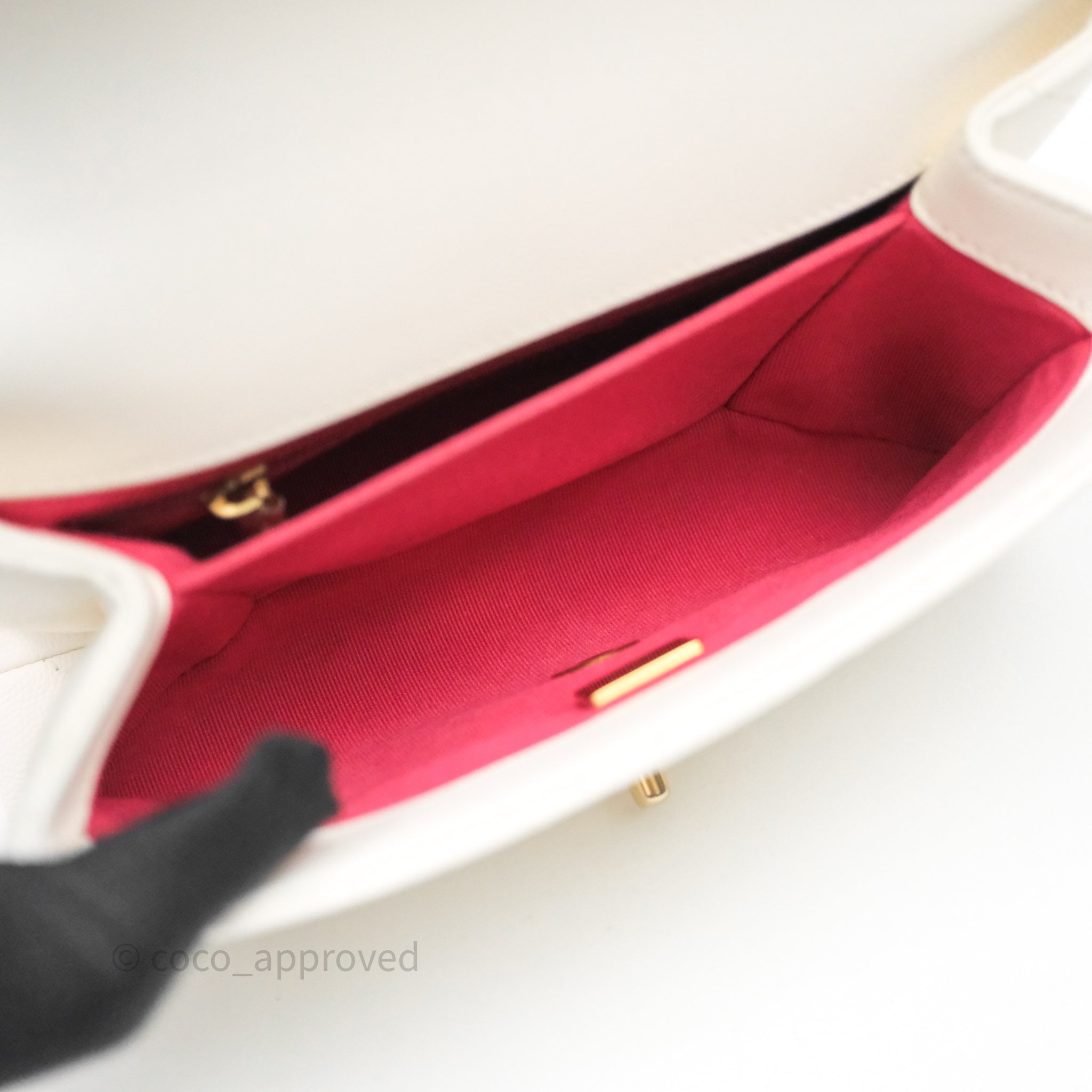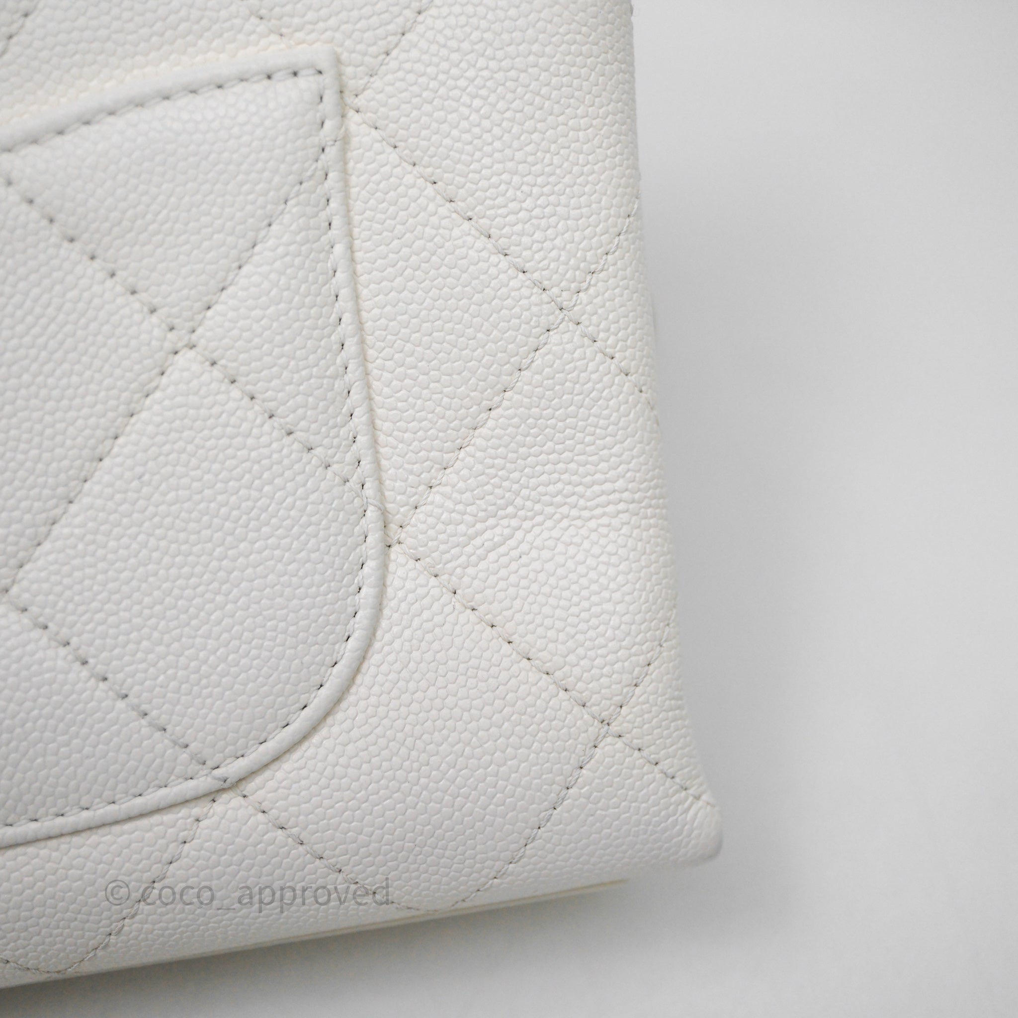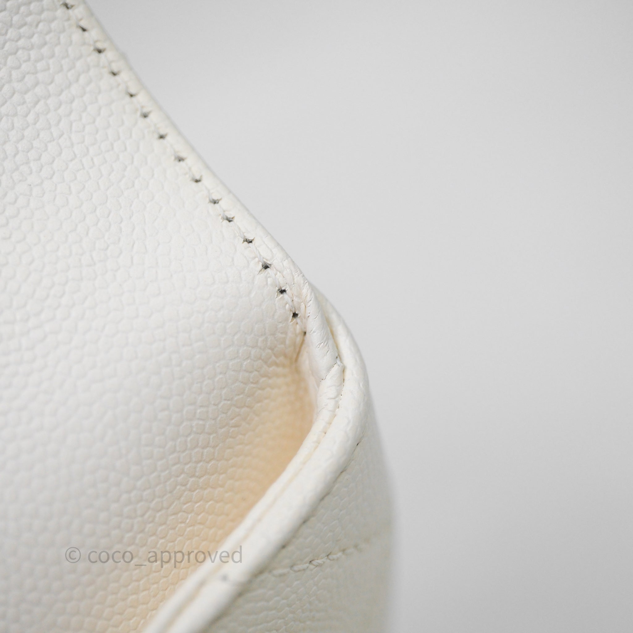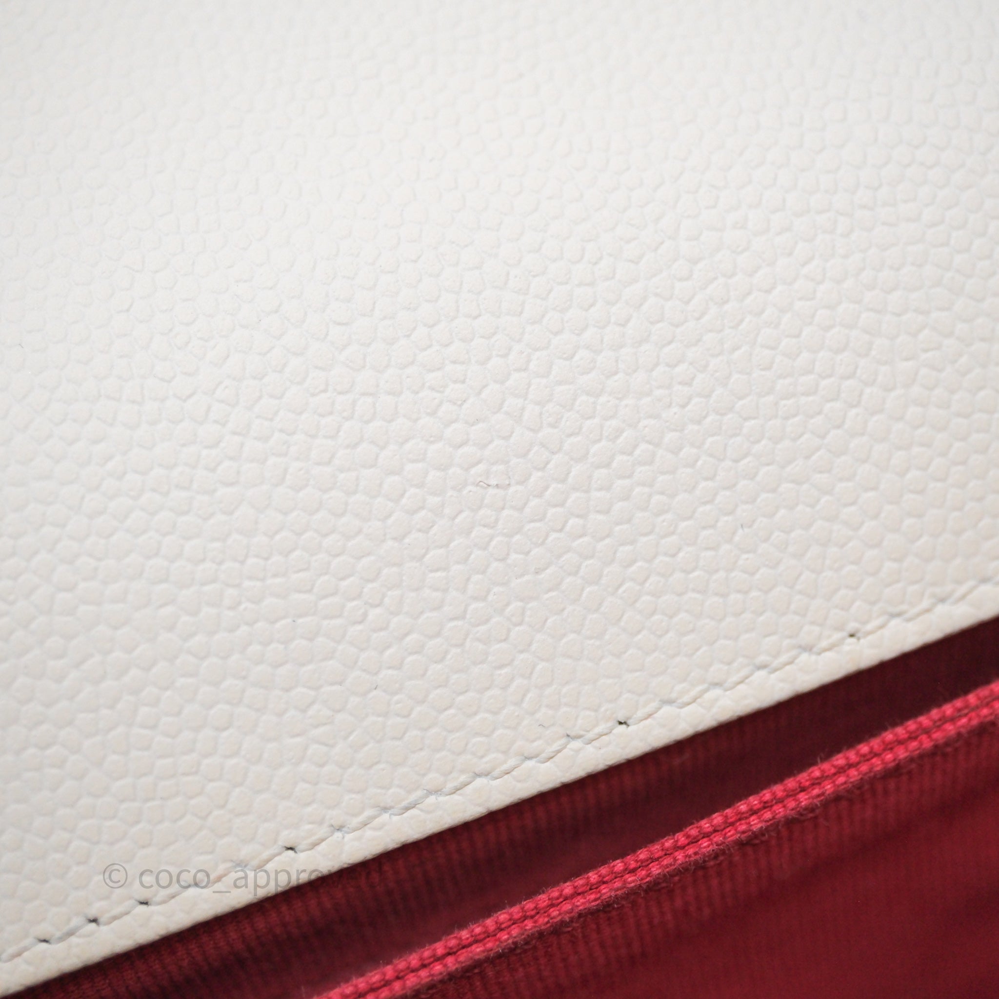 Chanel Bracelet On Chain Small Flap Bag White Caviar Aged Gold Hardware