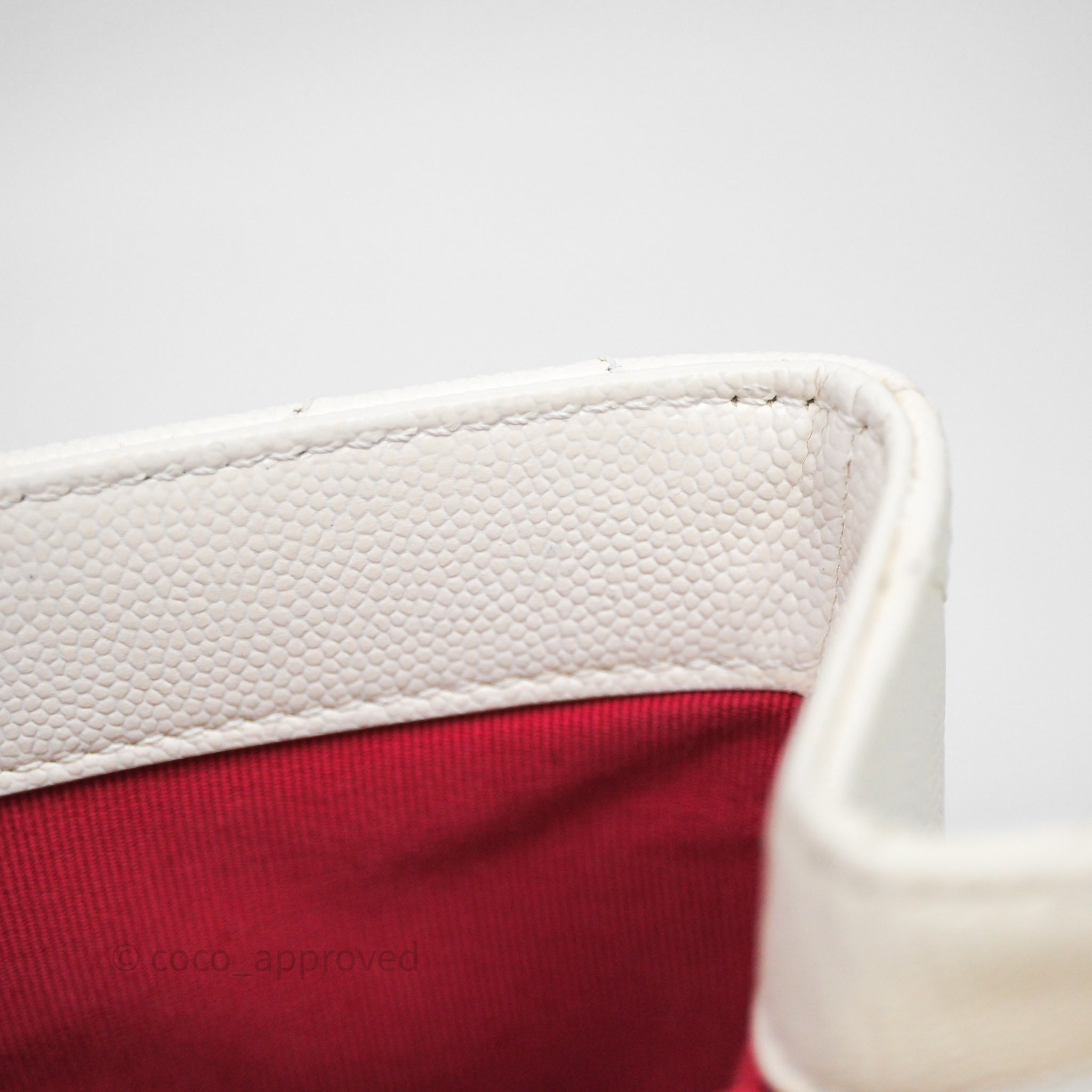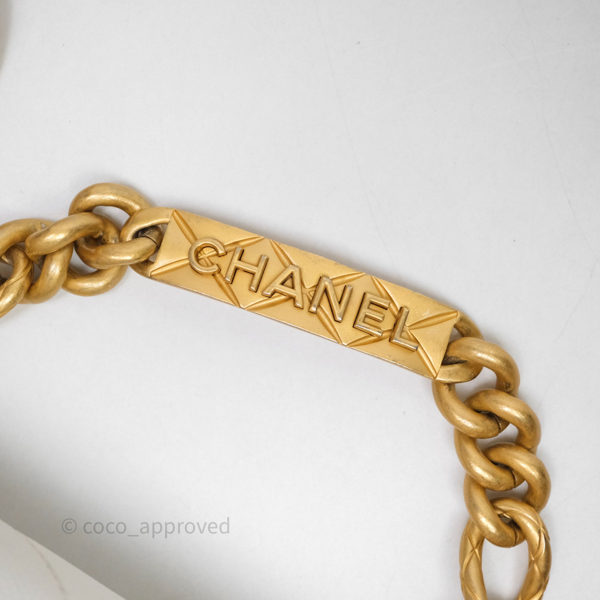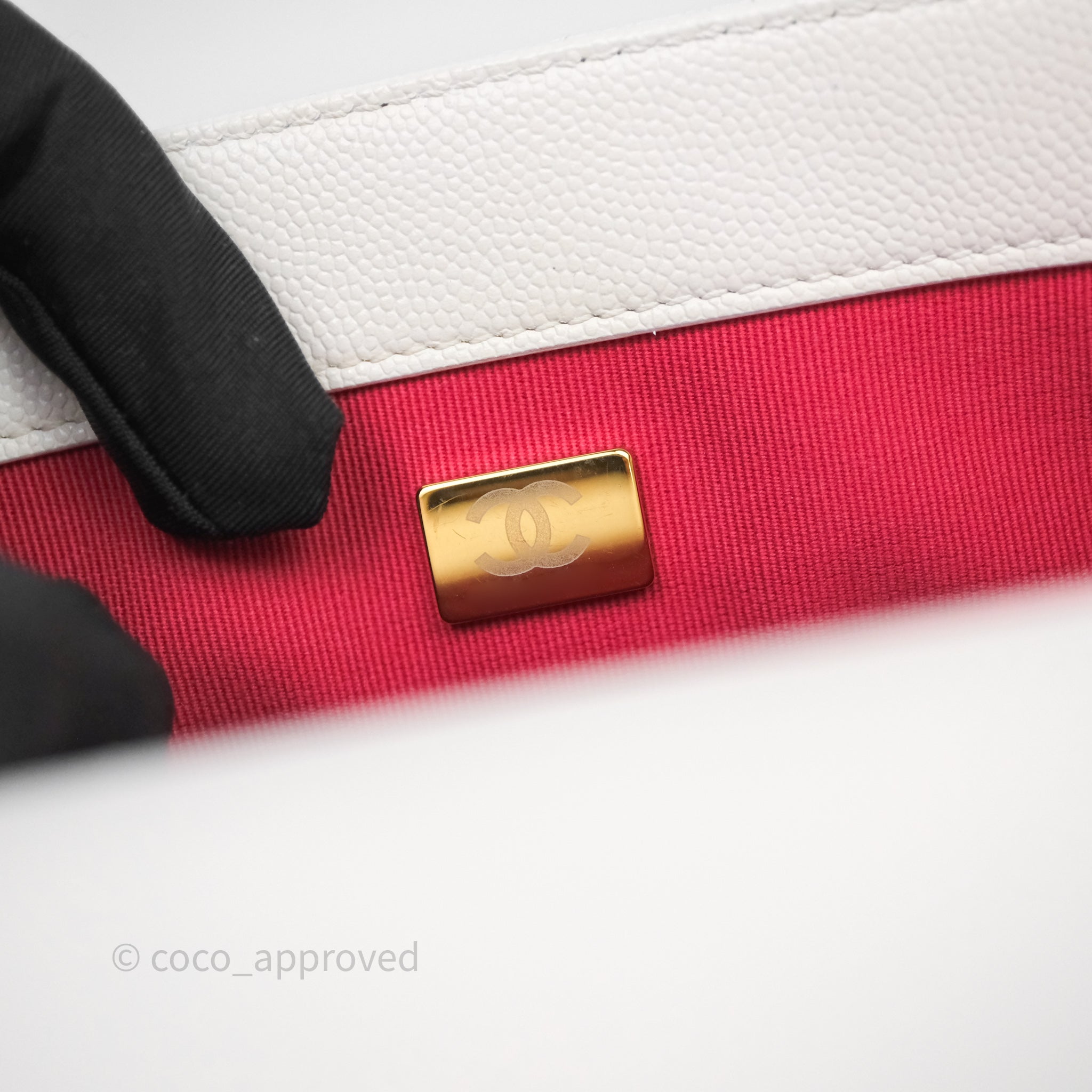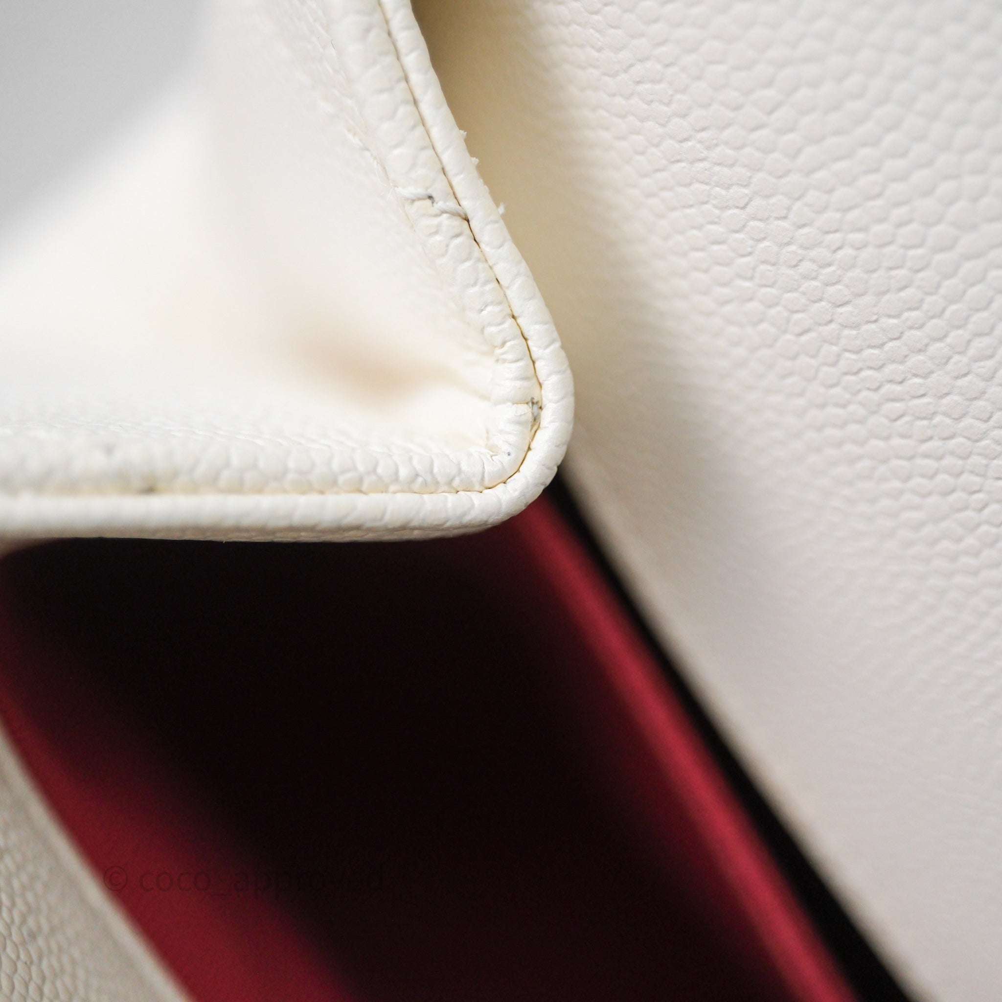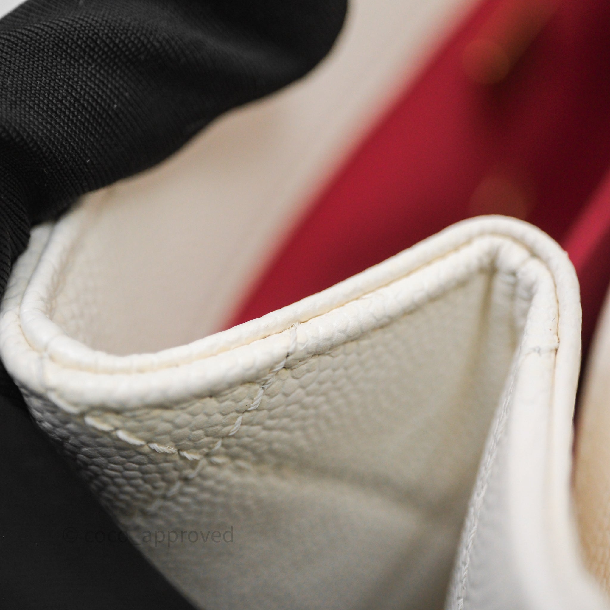 Chanel Bracelet On Chain Small Flap Bag White Caviar Aged Gold Hardware
