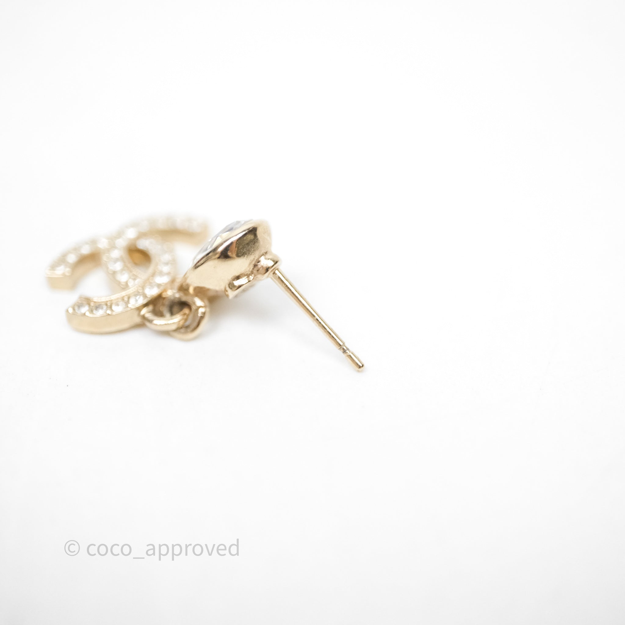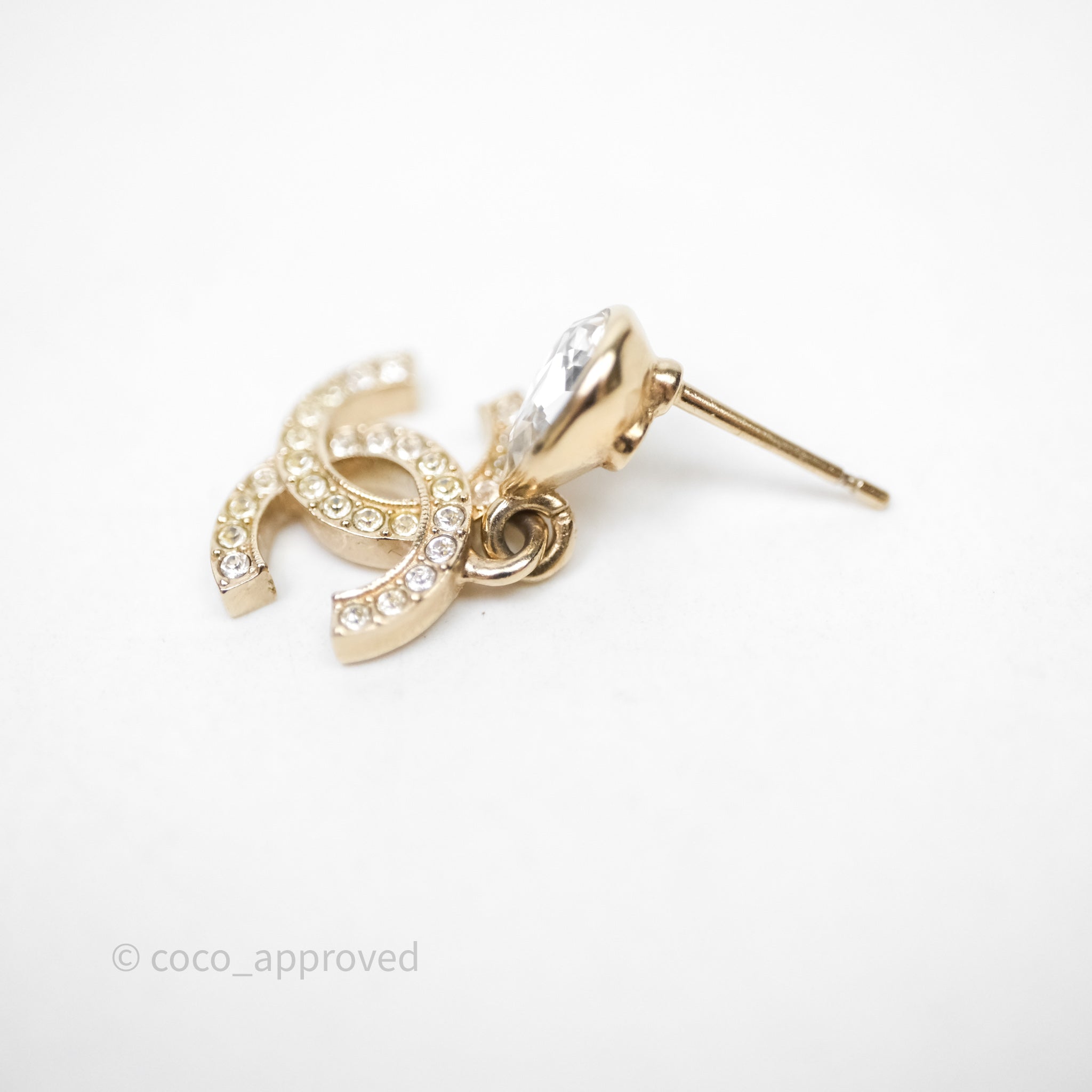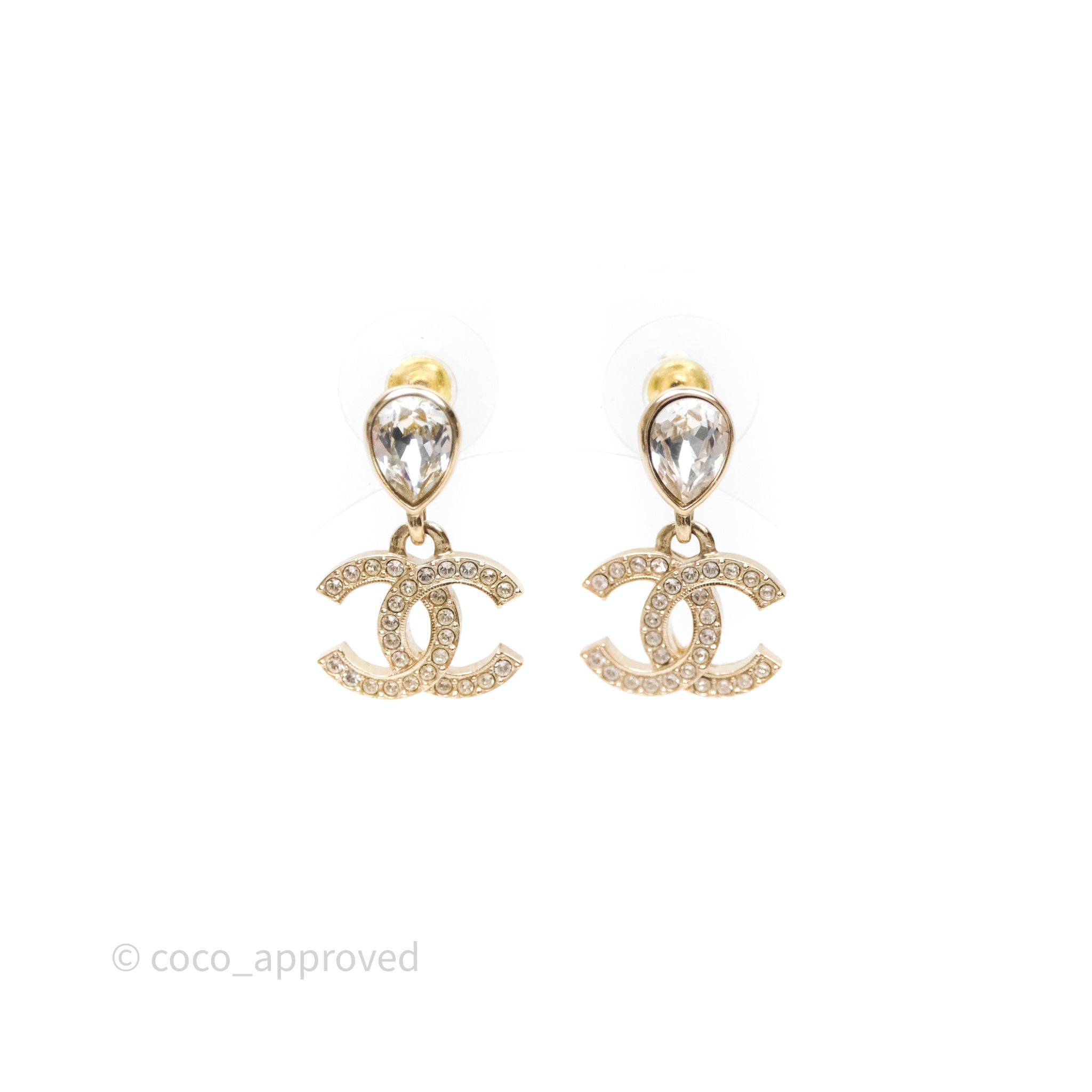 Chanel CC Crystals Drop Earrings Gold Tone 25A