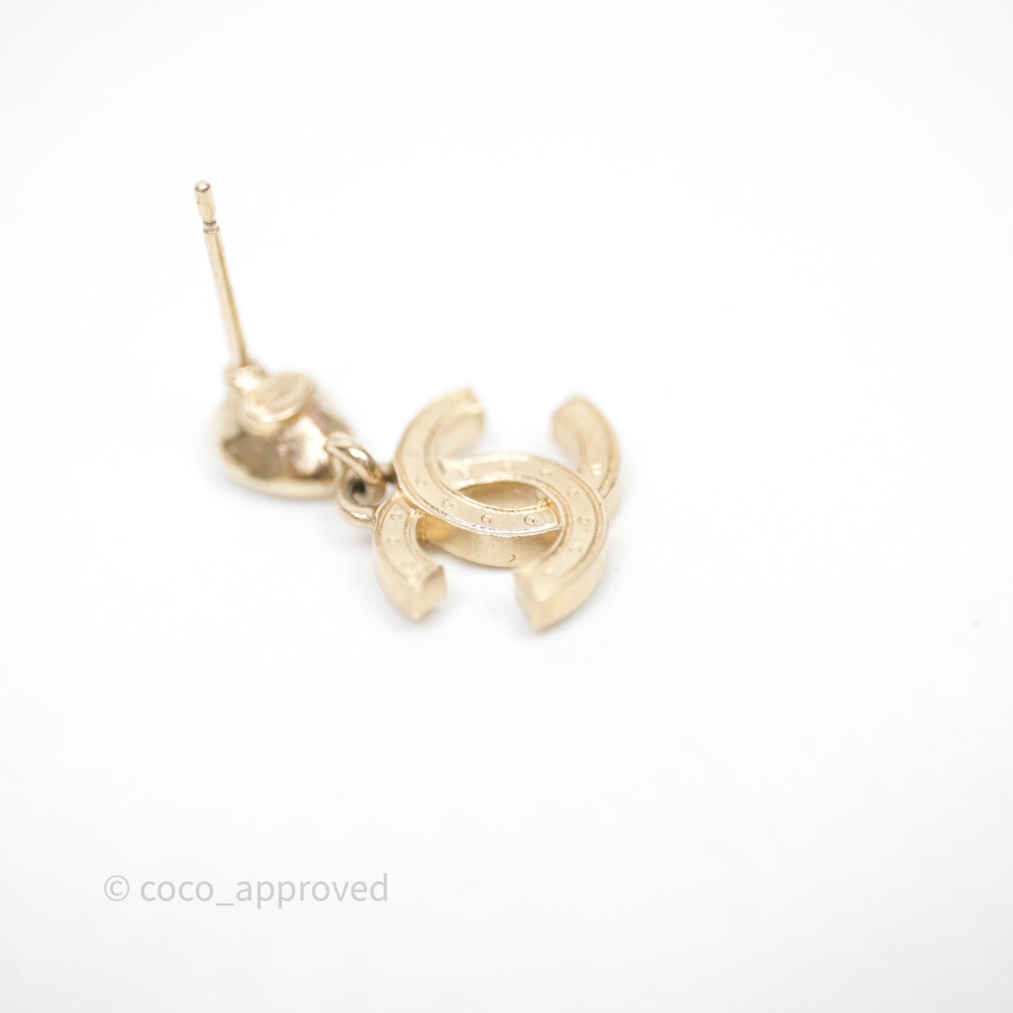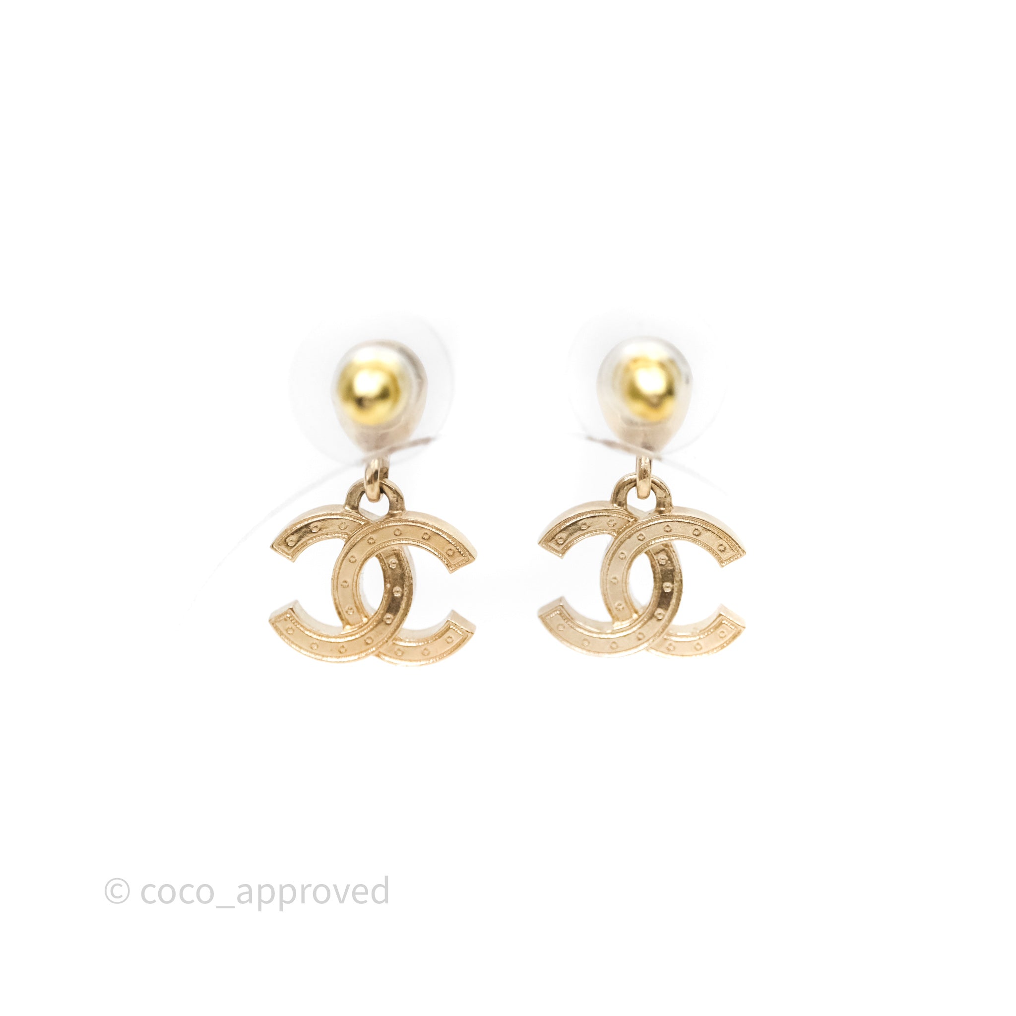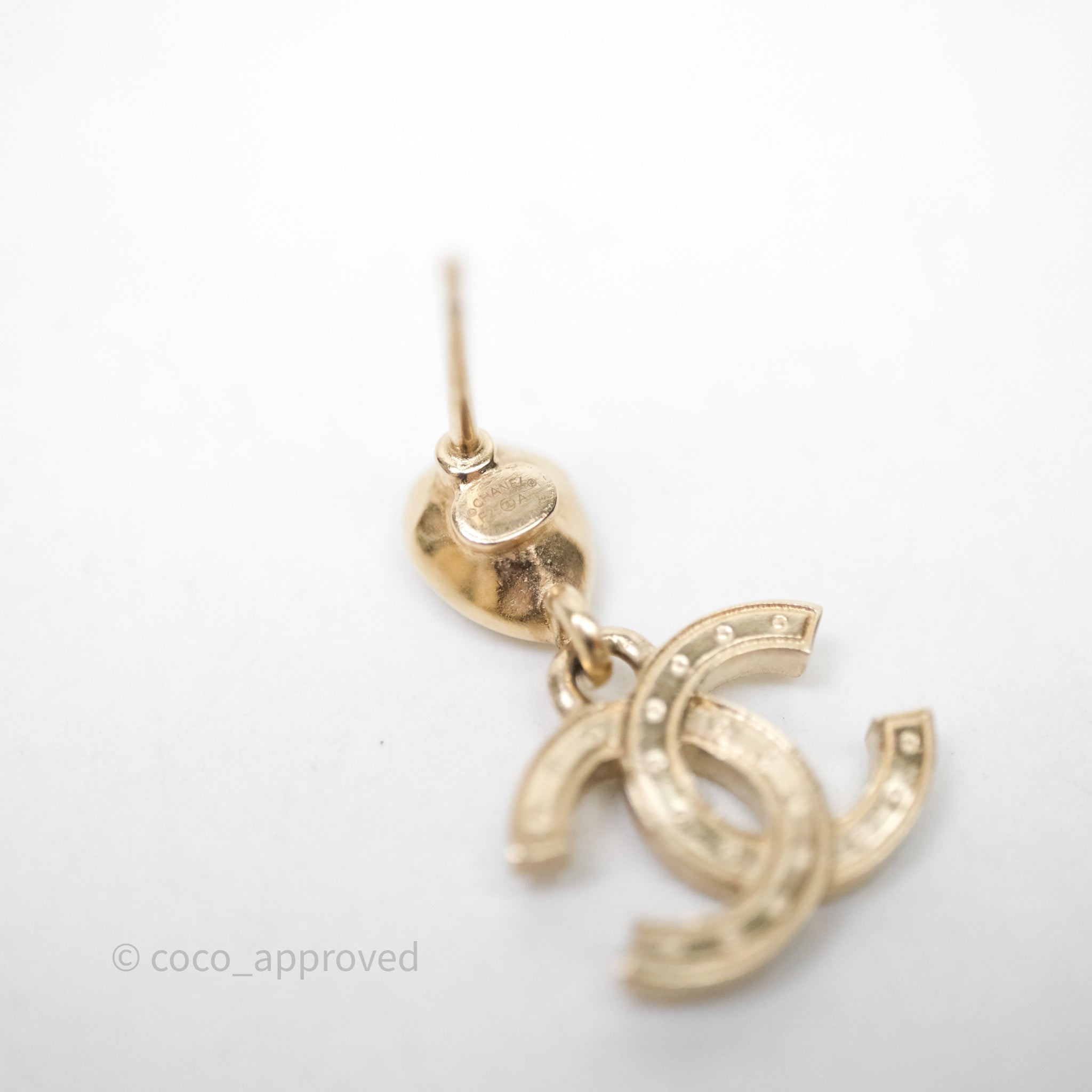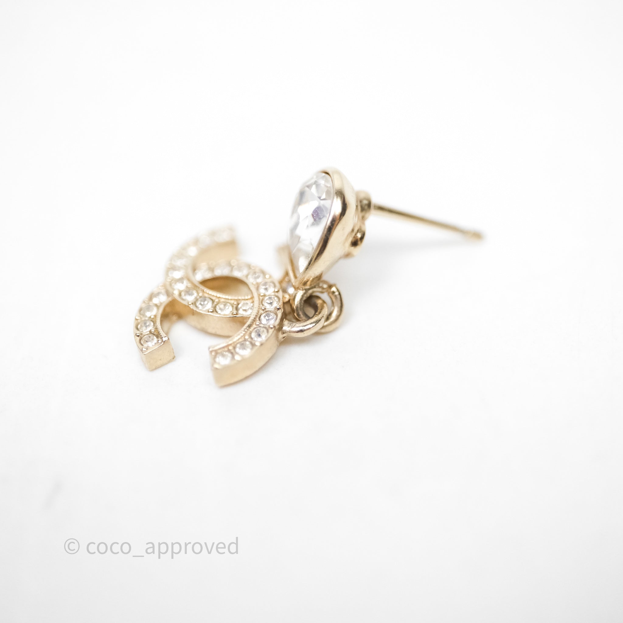 Chanel CC Crystals Drop Earrings Gold Tone 25A