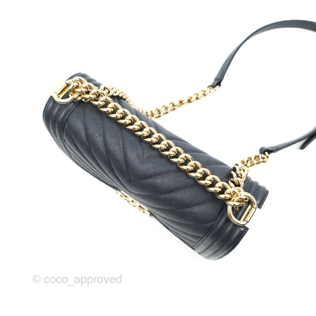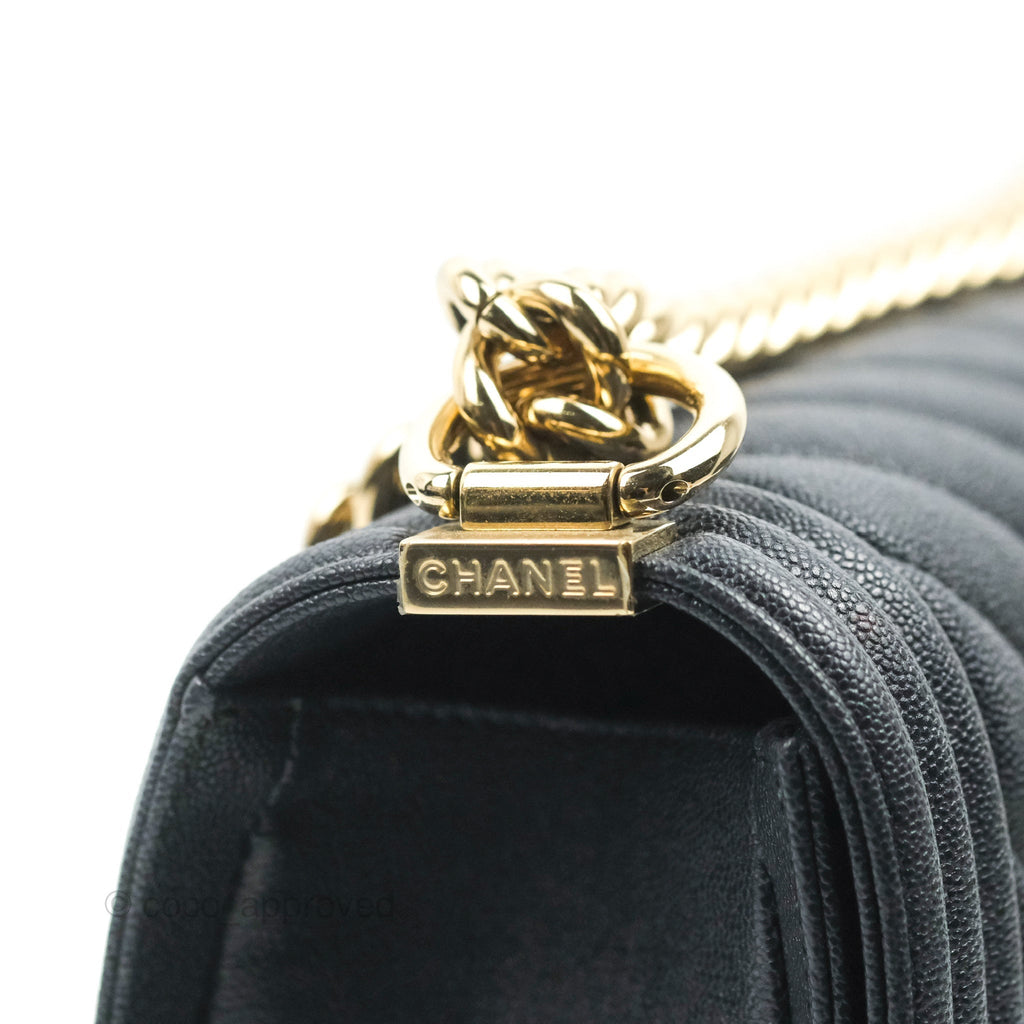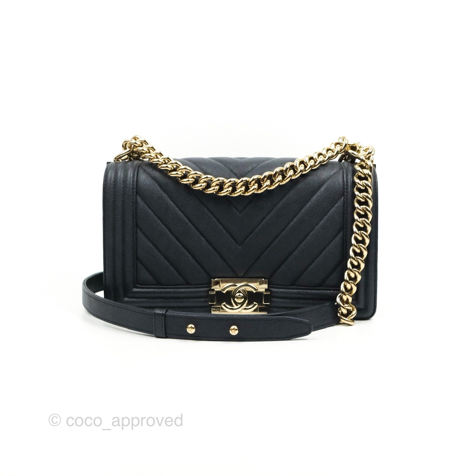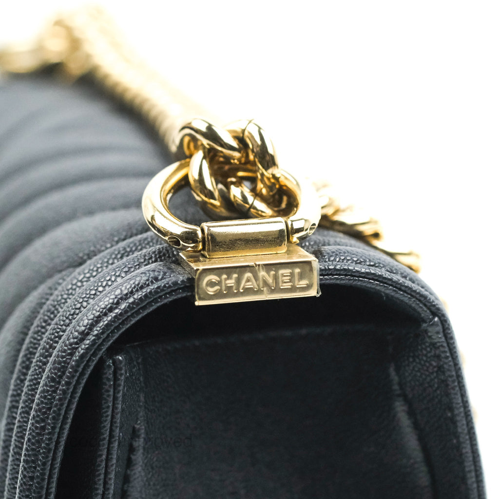 Chanel Chevron Medium Boy Dark Navy Caviar Gold Hardware