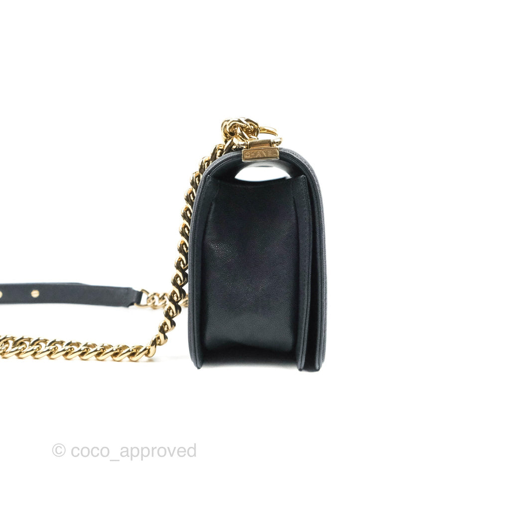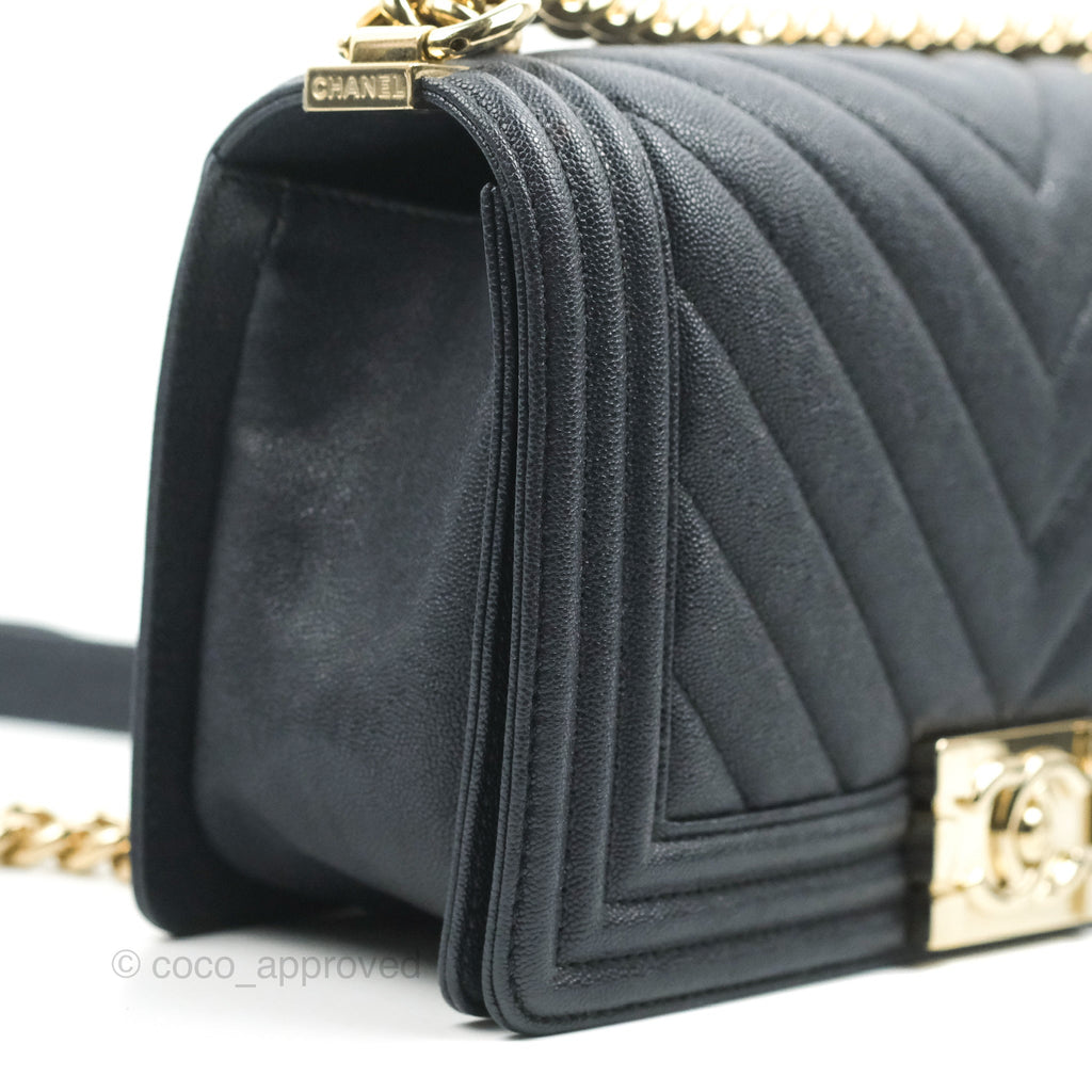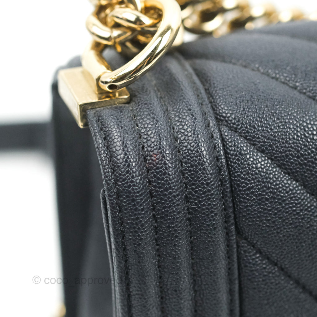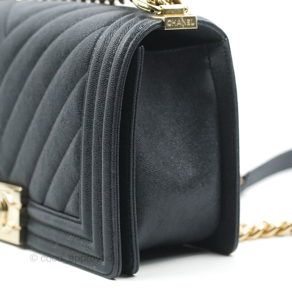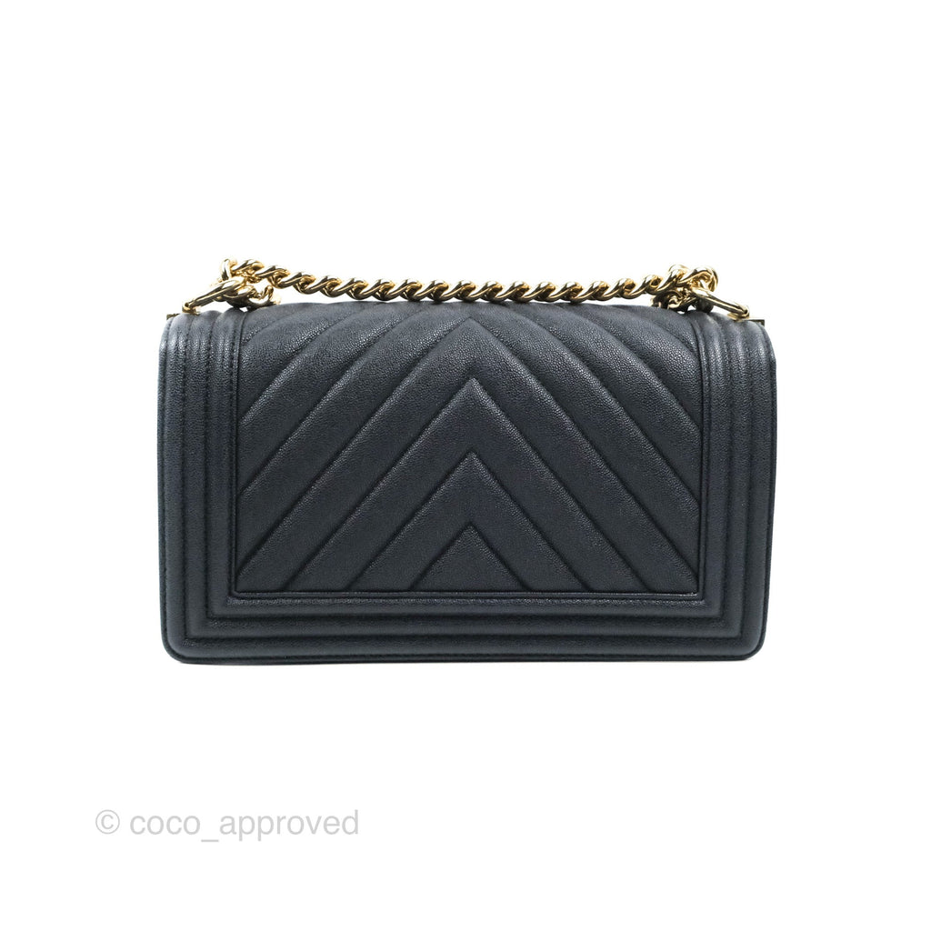 Chanel Chevron Medium Boy Dark Navy Caviar Gold Hardware