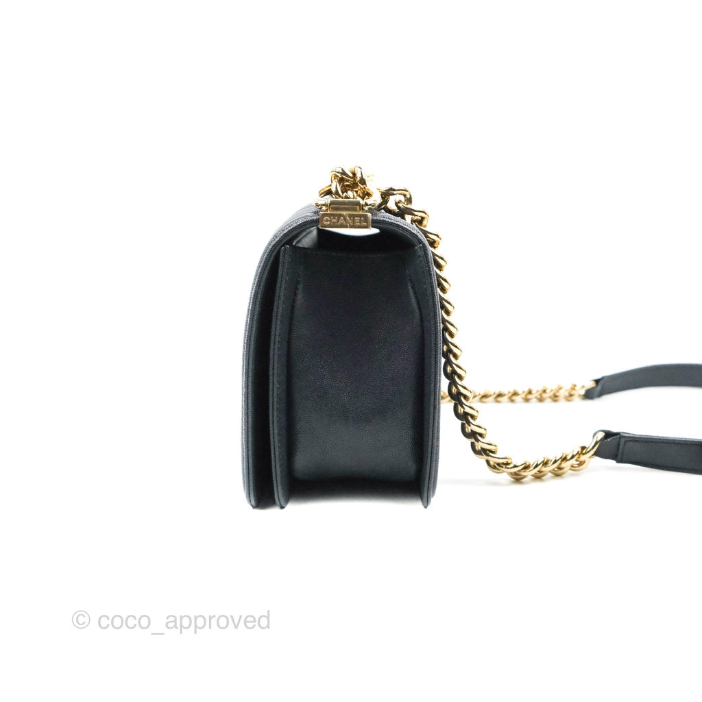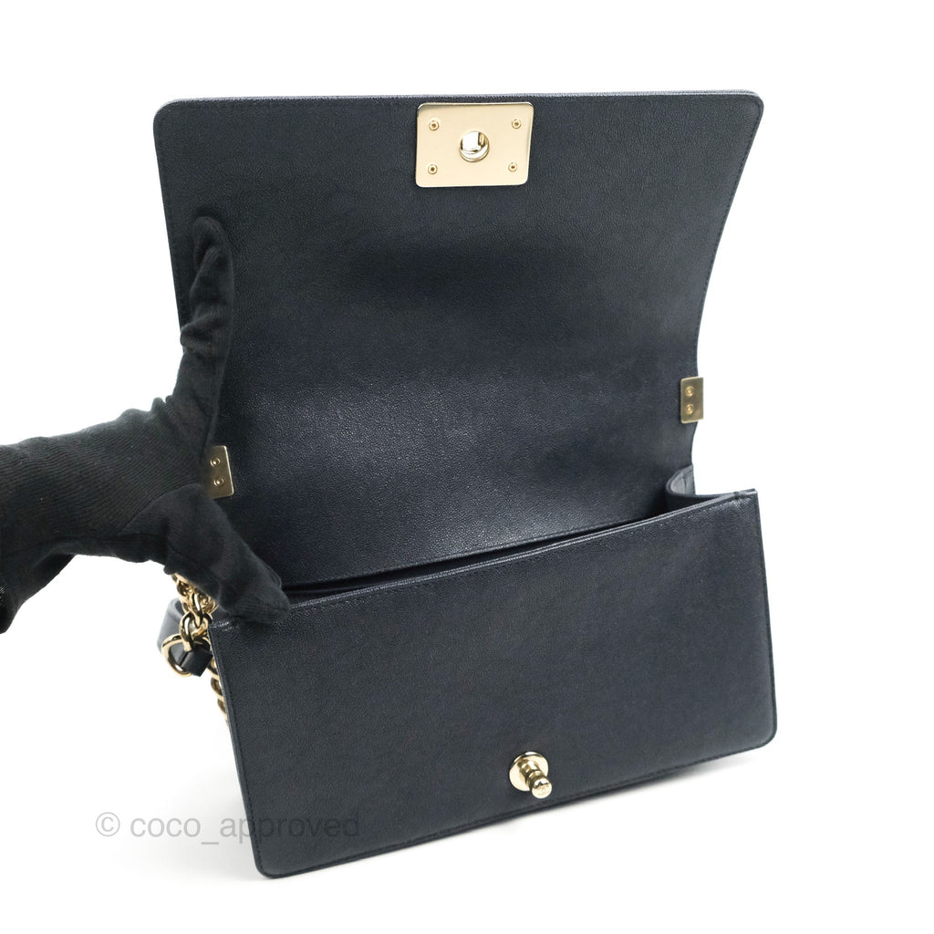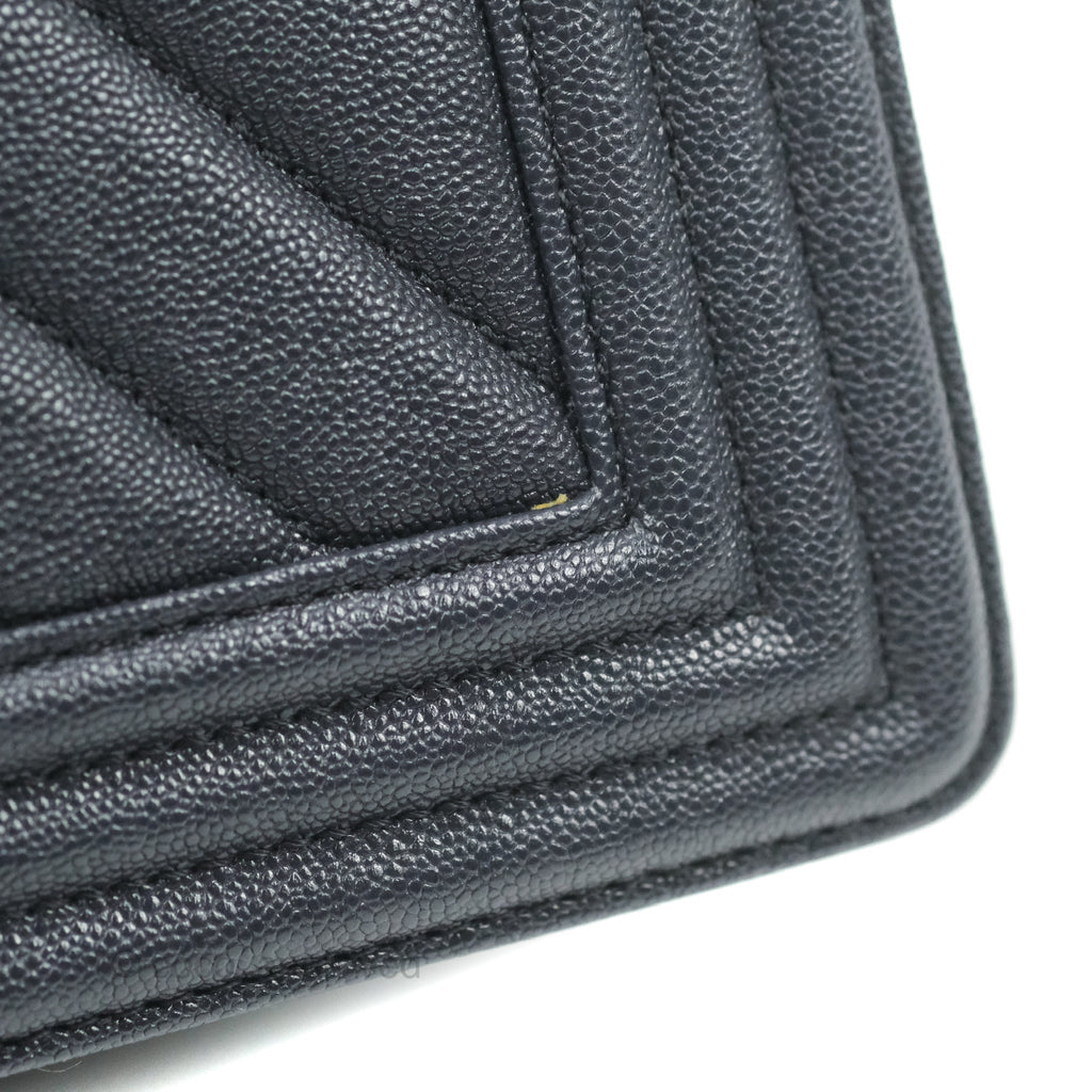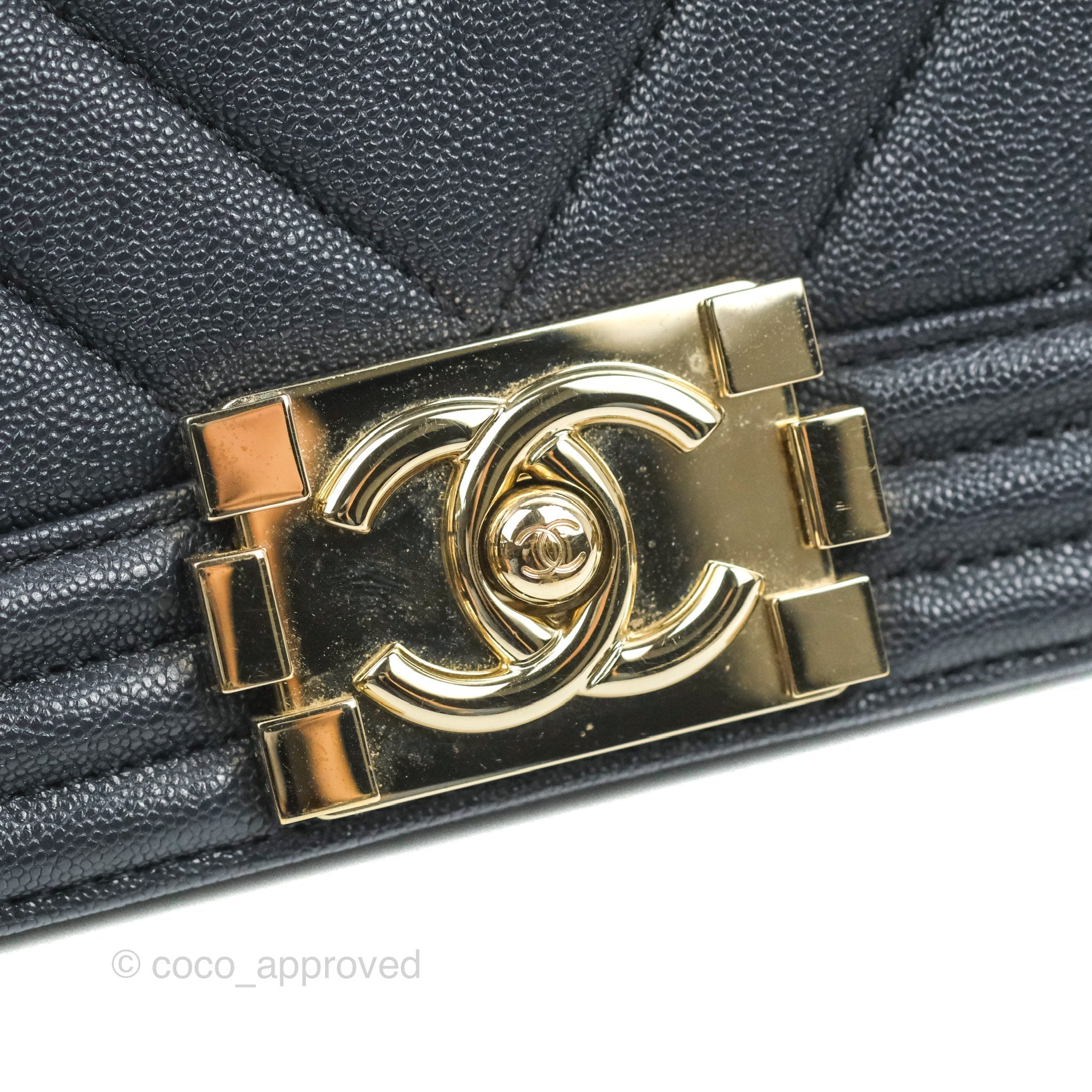 Chanel Chevron Medium Boy Dark Navy Caviar Gold Hardware