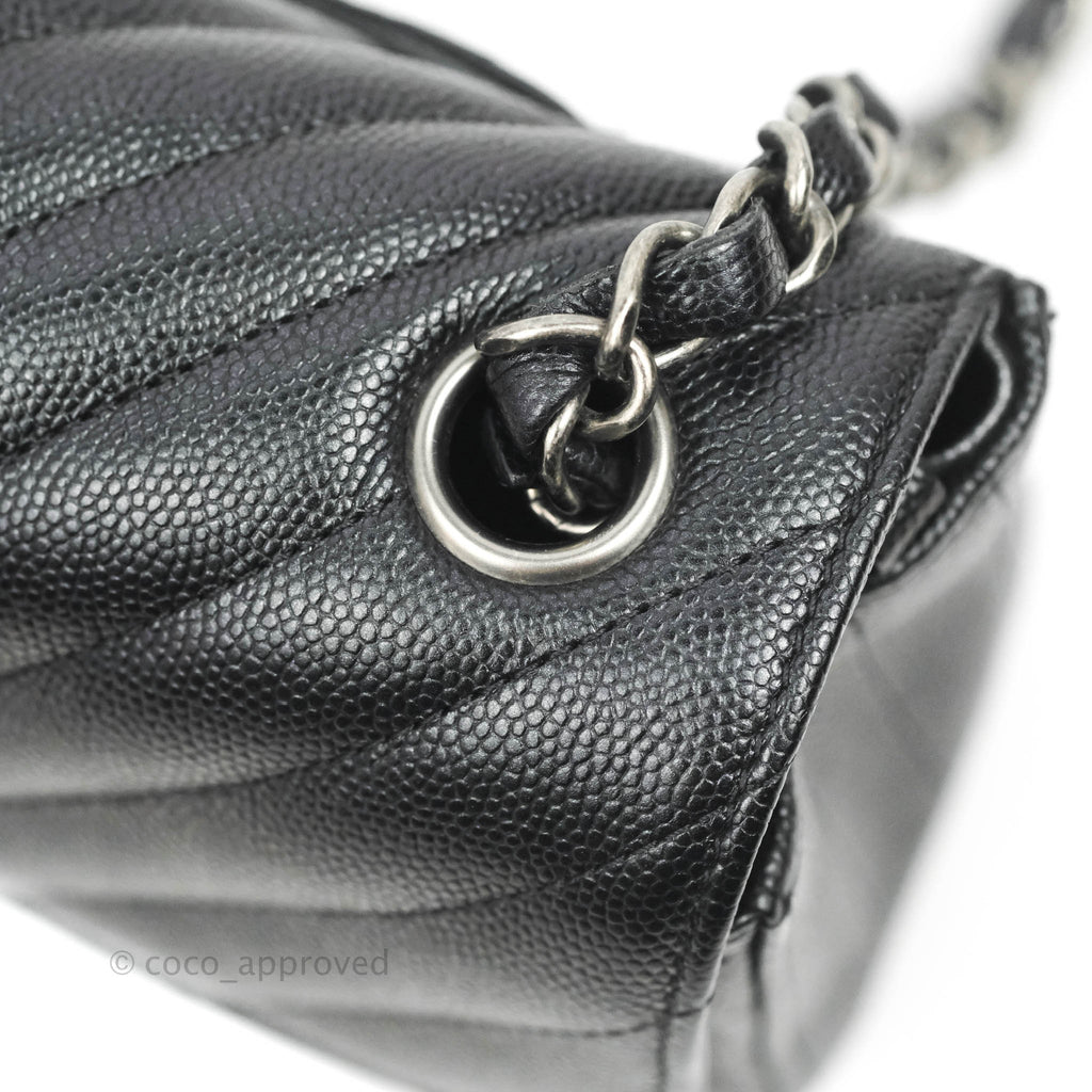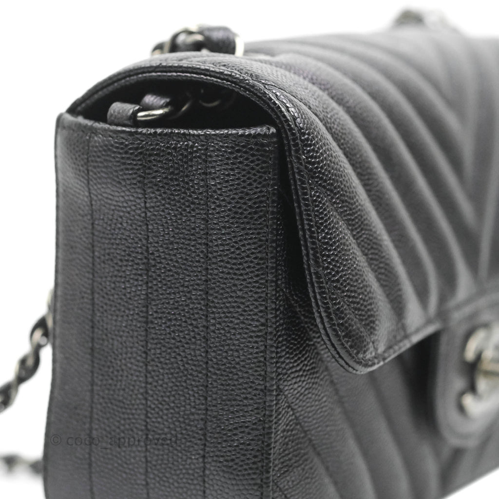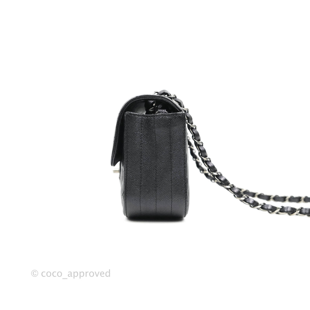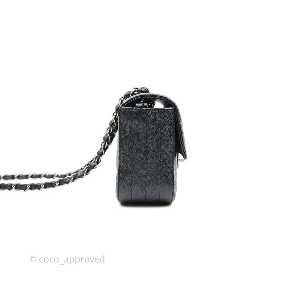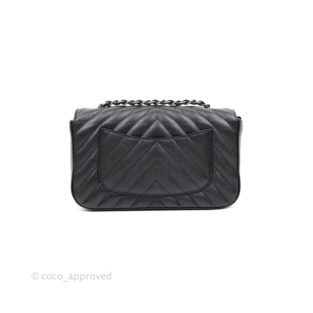 Chanel Chevron Mini Rectangular Flap Iridescent Black Caviar Ruthenium Hardware 17B