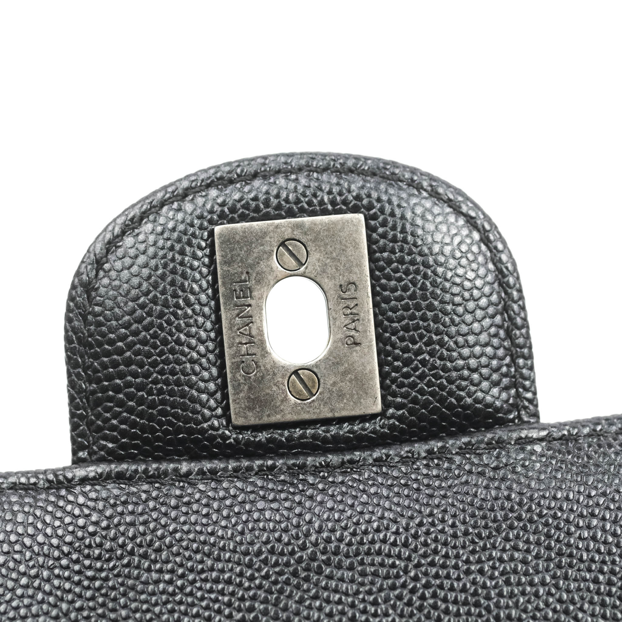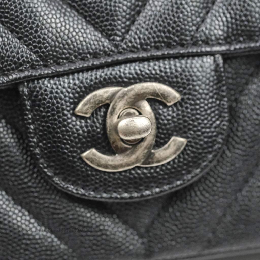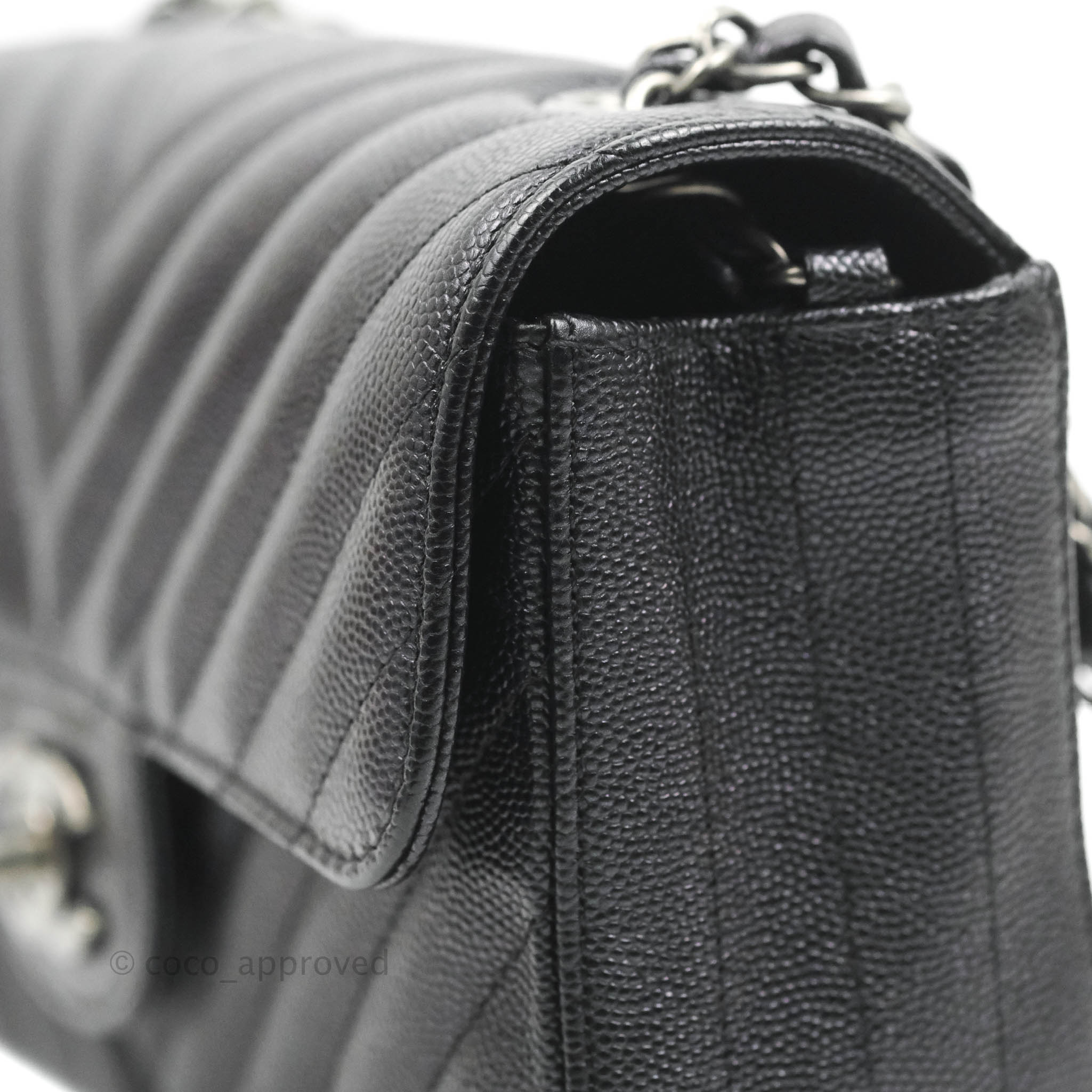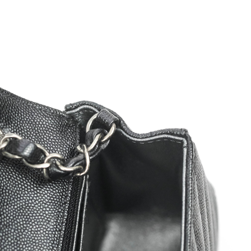 Chanel Chevron Mini Rectangular Flap Iridescent Black Caviar Ruthenium Hardware 17B