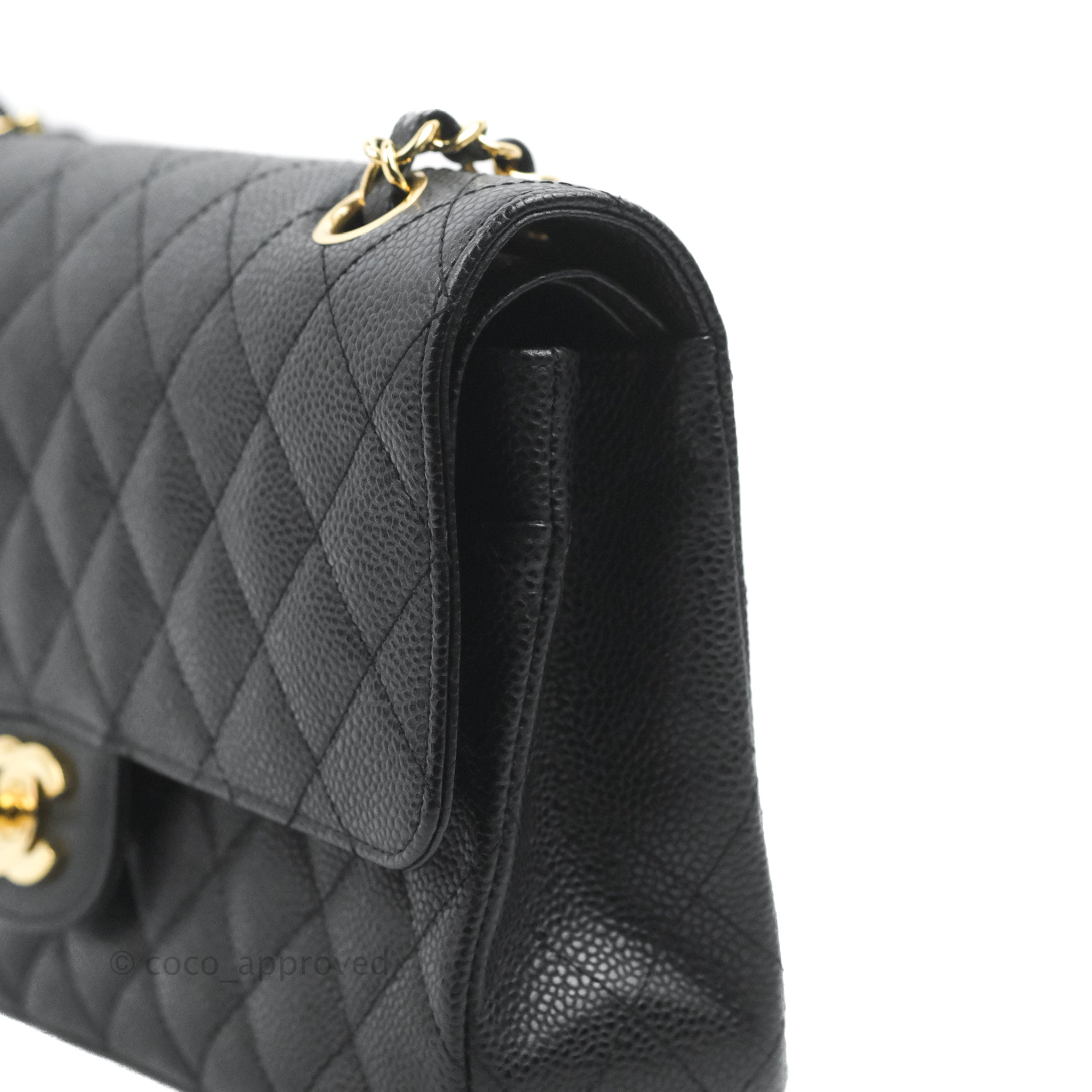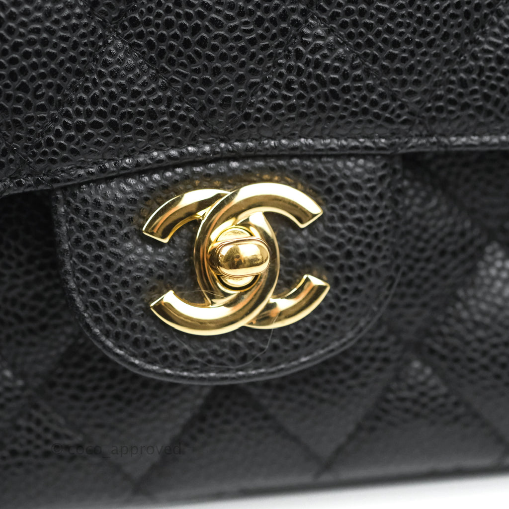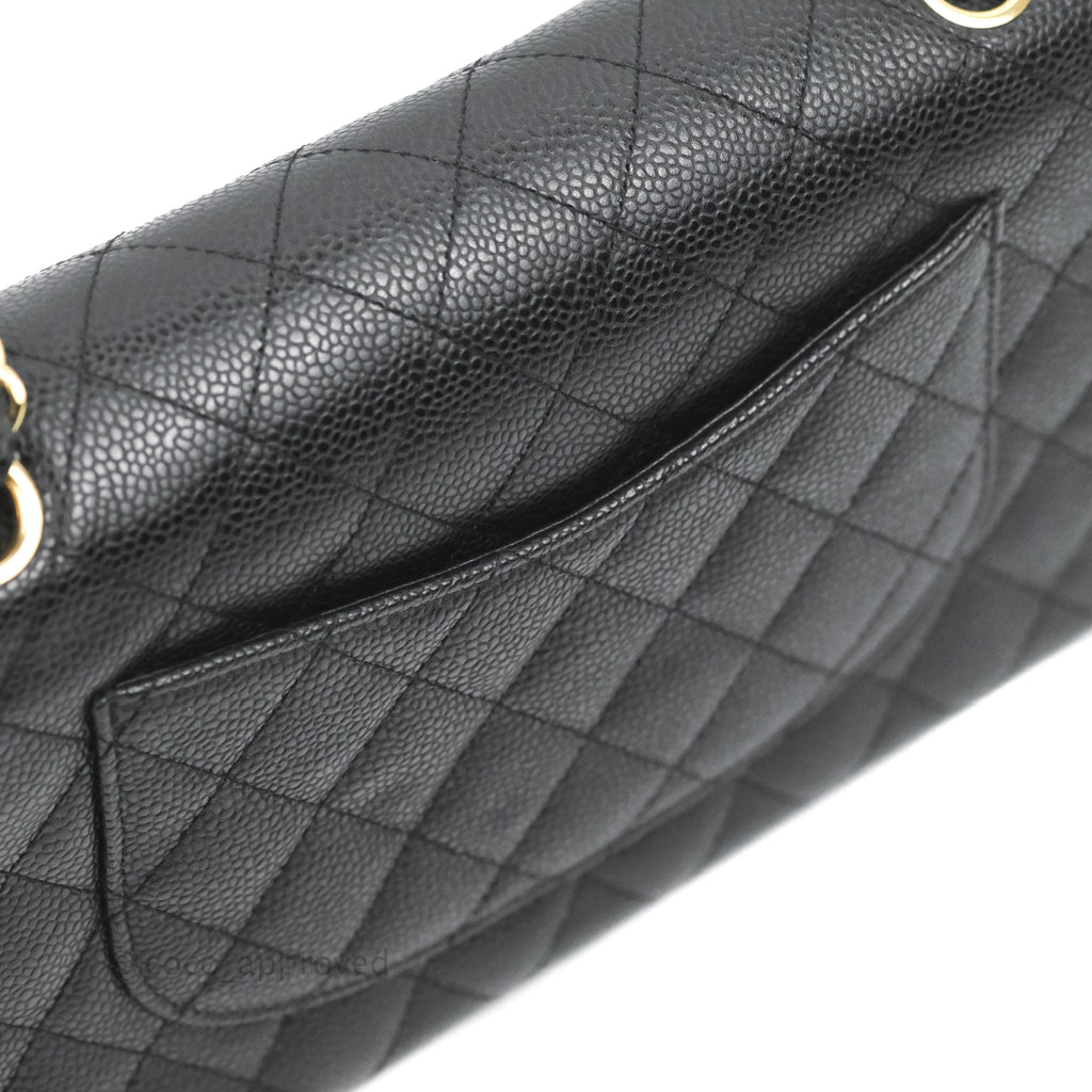 Chanel Quilted Classic M/L Medium Flap Black Caviar Gold Hardware