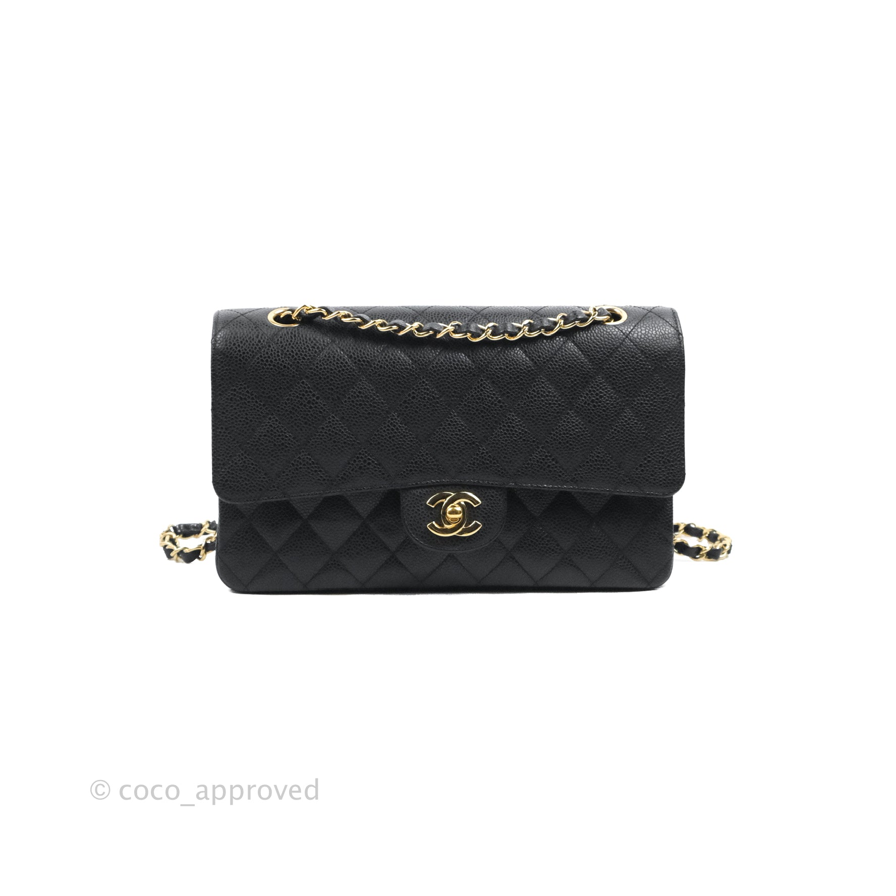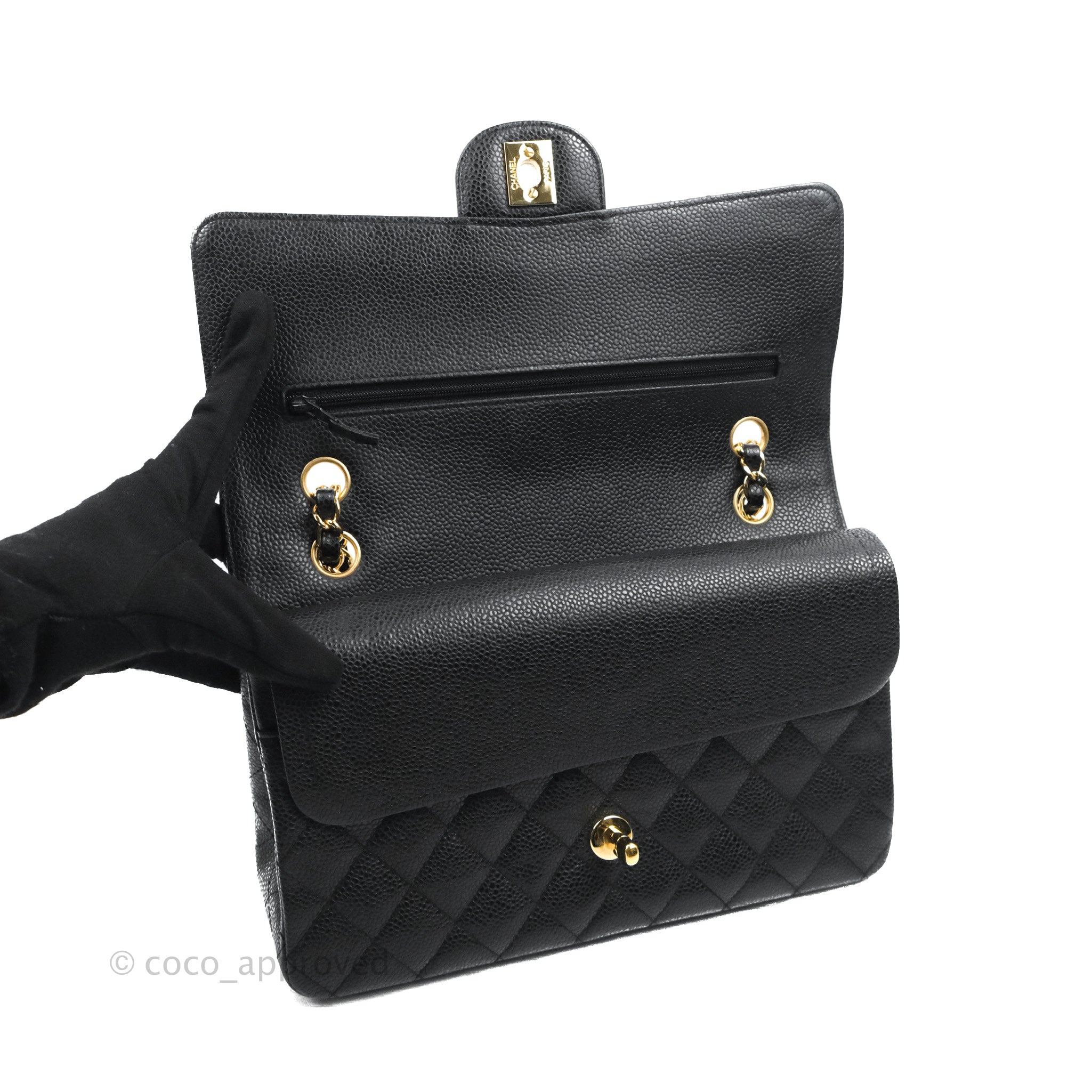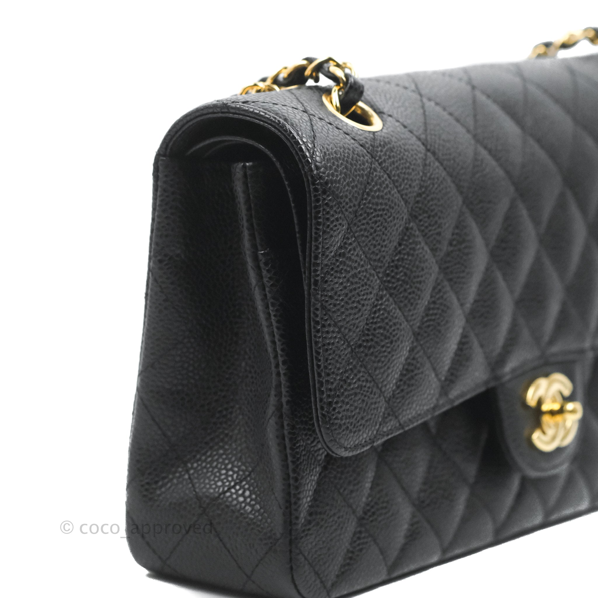 Chanel Quilted Classic M/L Medium Flap Black Caviar Gold Hardware